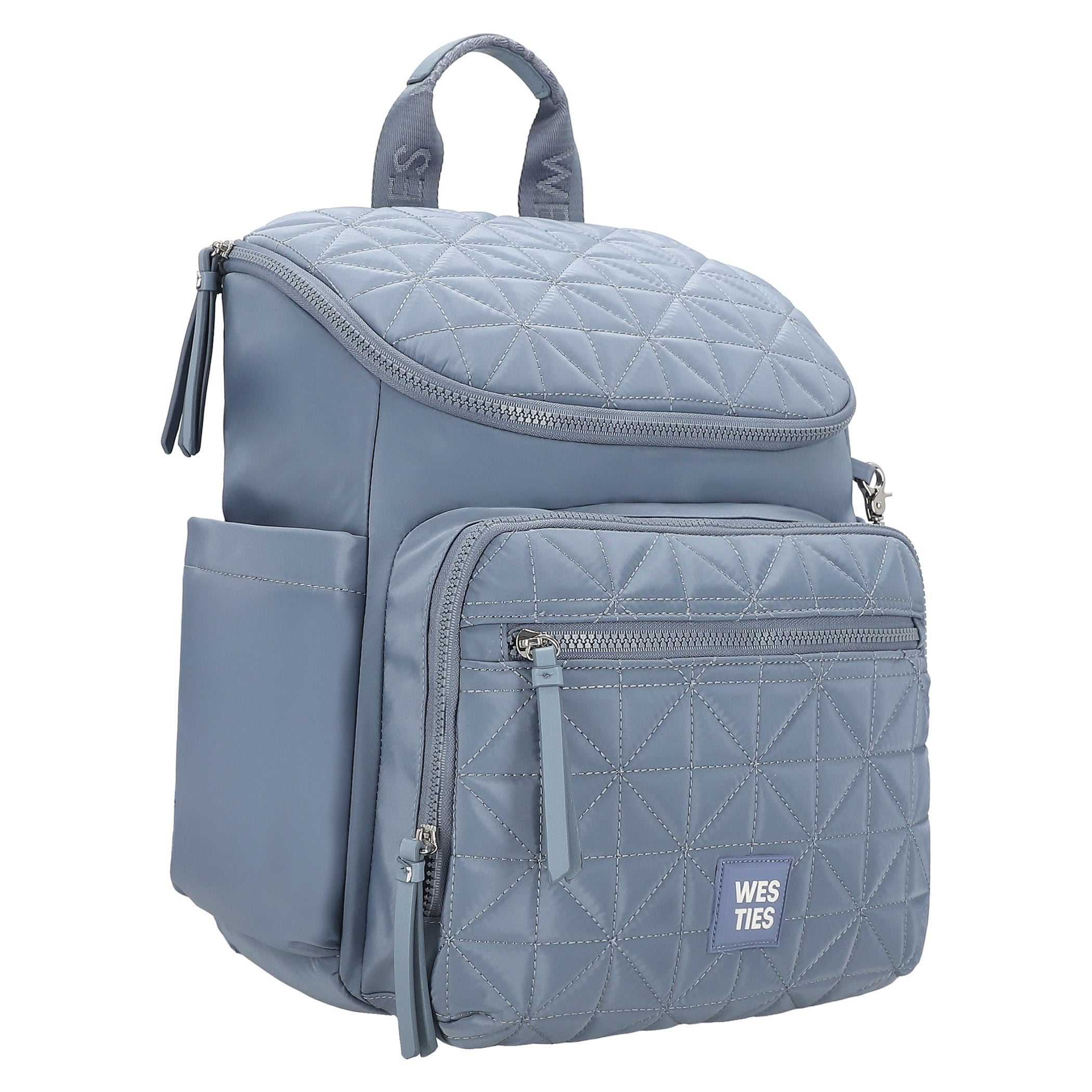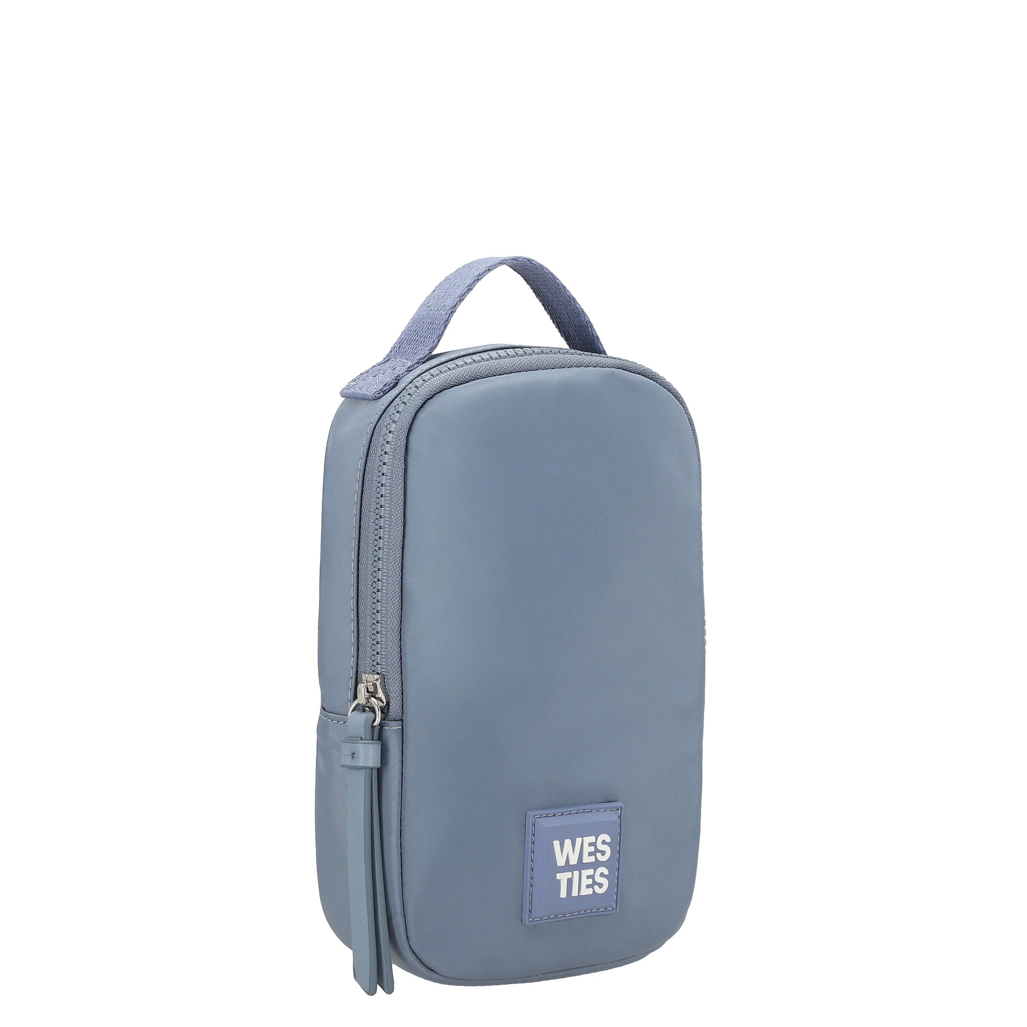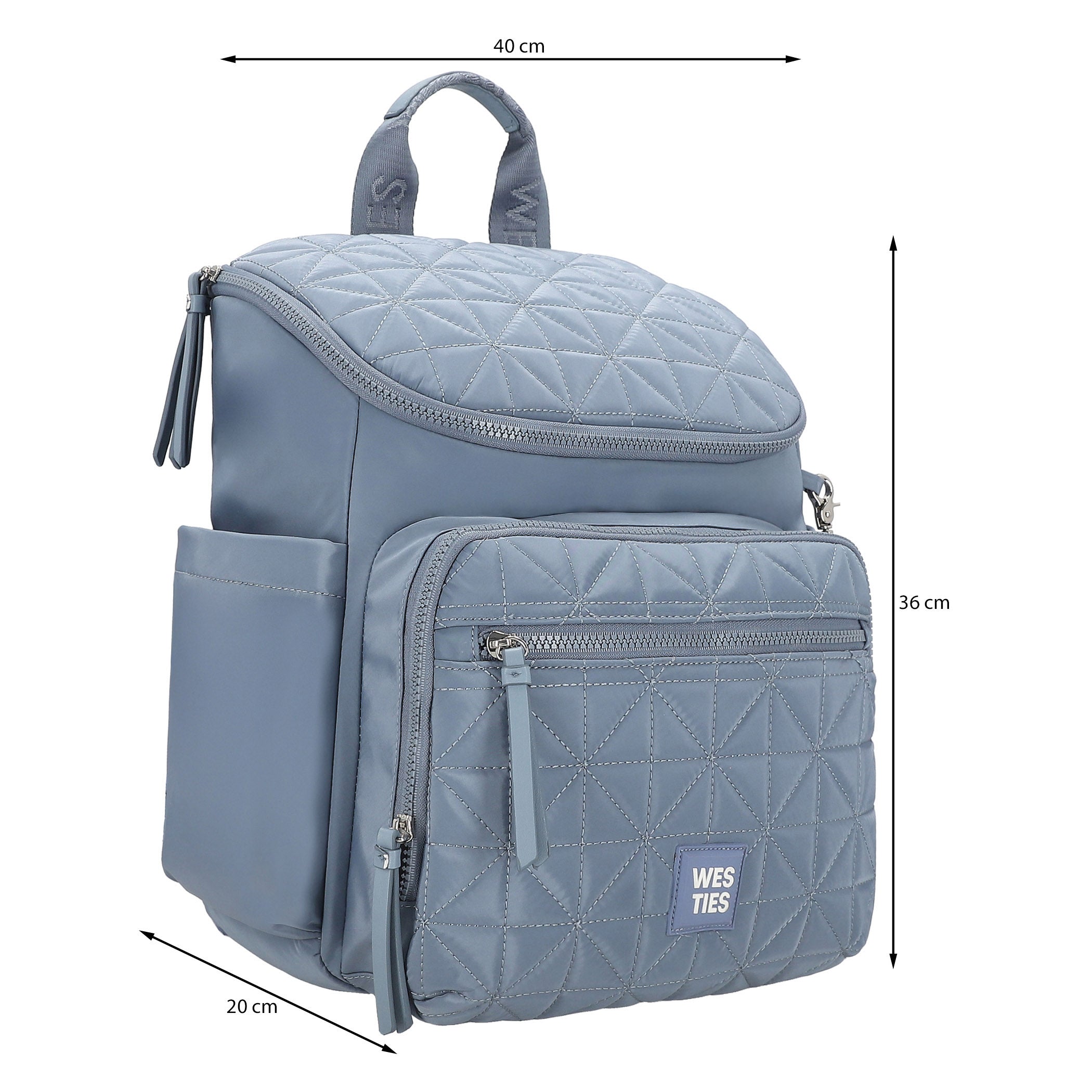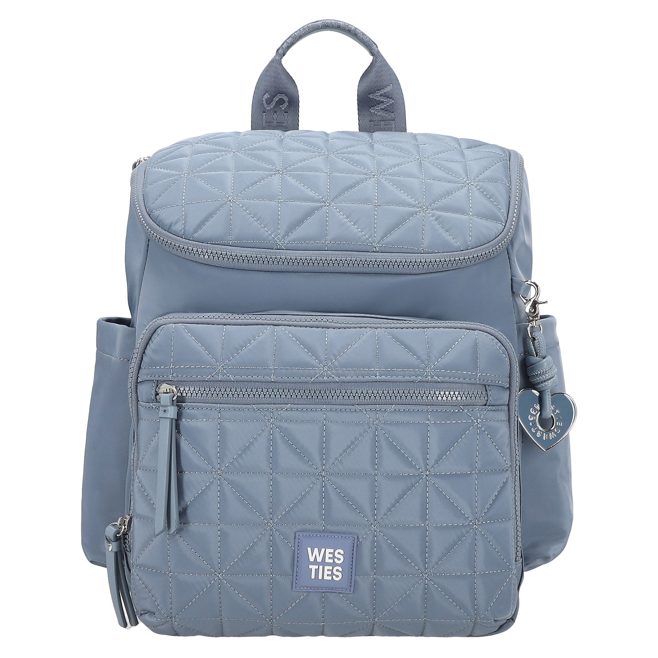 Pañalera Westies para mujer elaborada en material textil con estampado liso, fijación de cierre, forro de poliéster y textura lisa.
