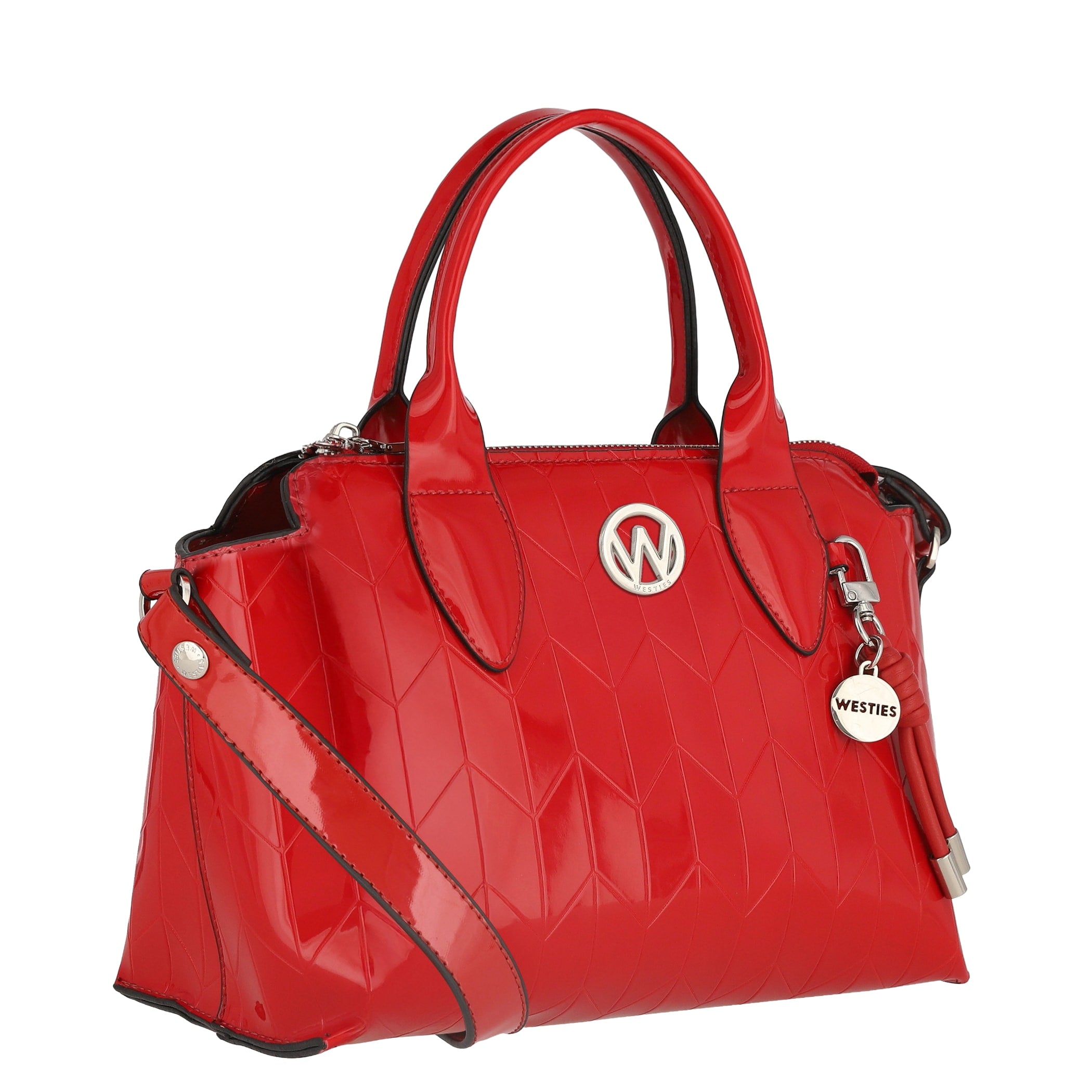 Bolsa de mano Westies para mujer elaborada en material charol sintético con estampado liso, fijación de cierre, forro de poliéster y textura lisa.