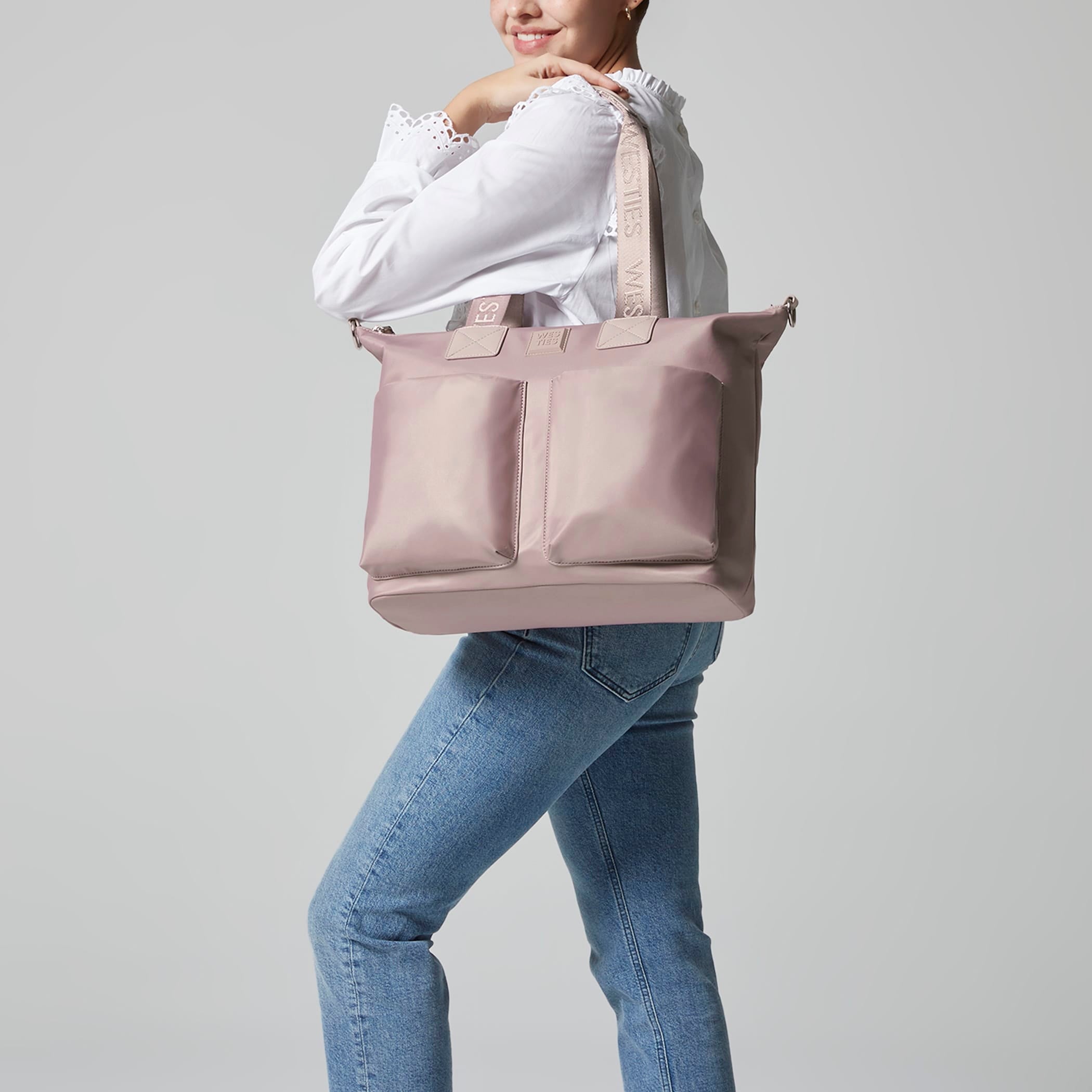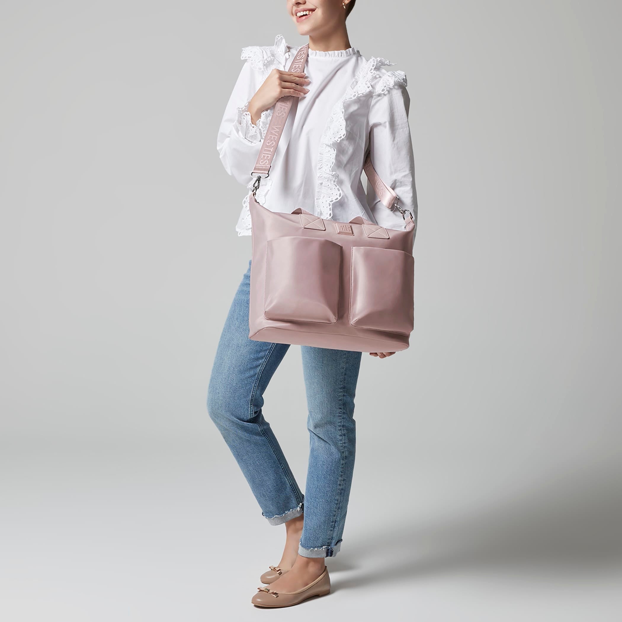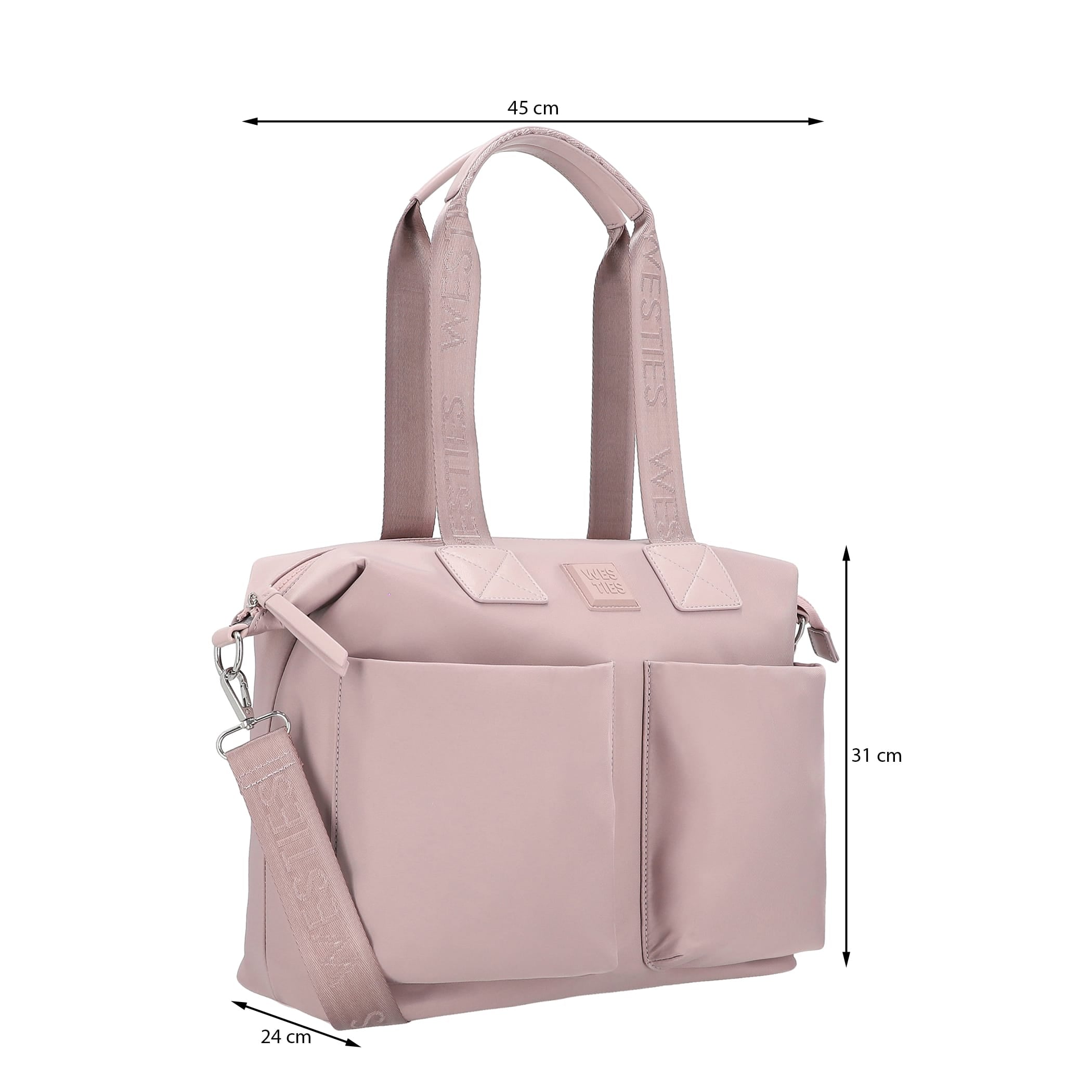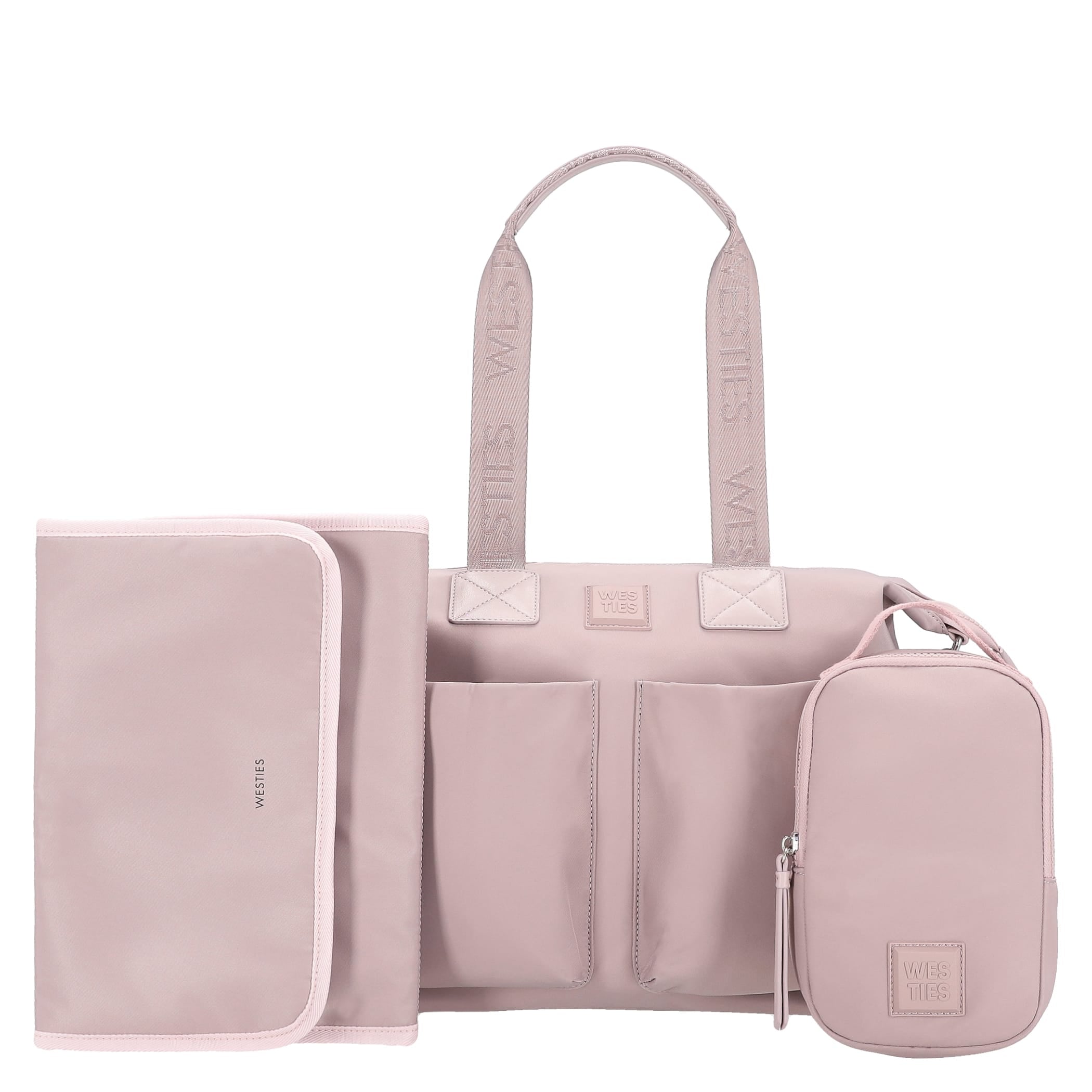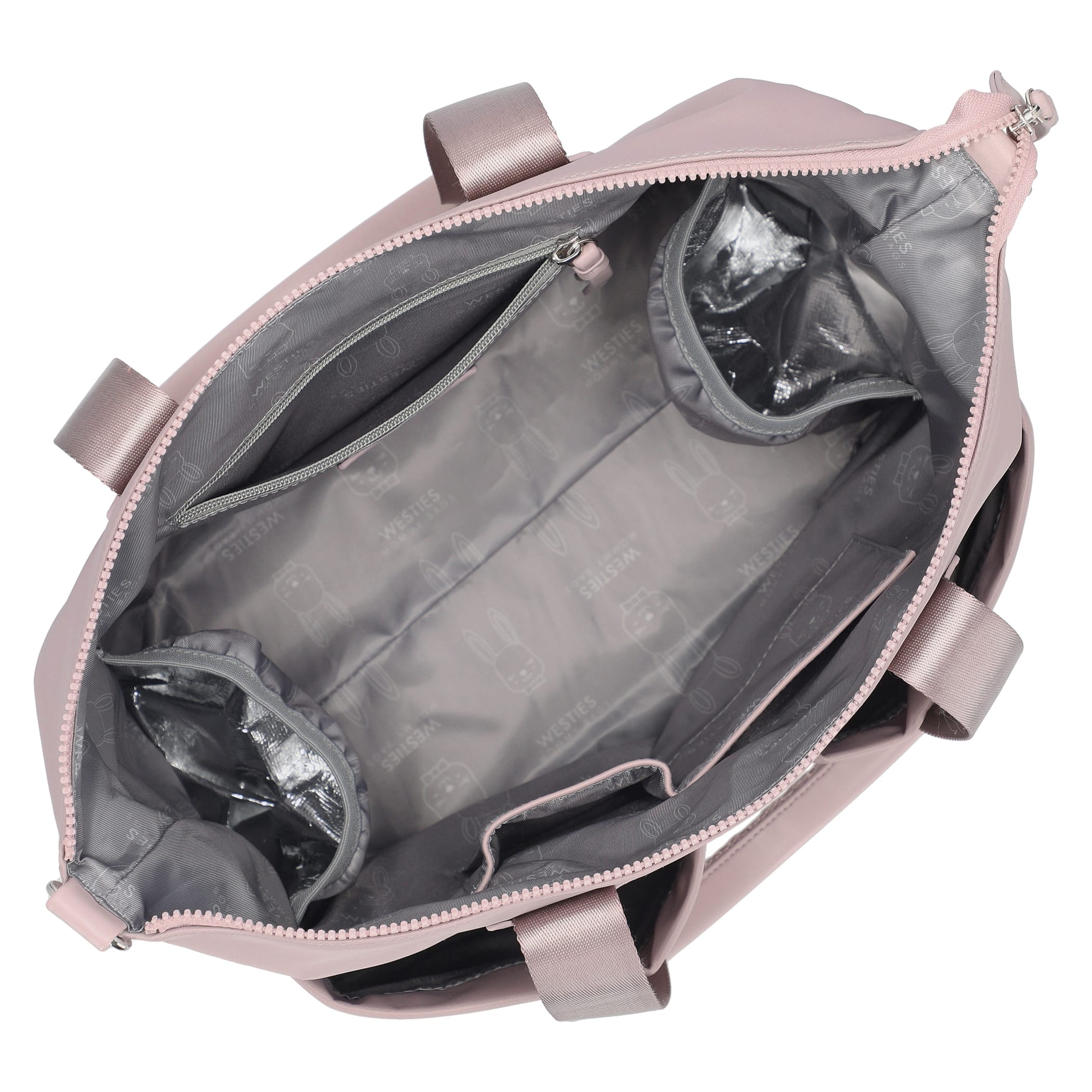Pañalera tote Westies para mujer elaborado en material textil con estampado liso, fijación de cierre, forro textil y textura lisa.