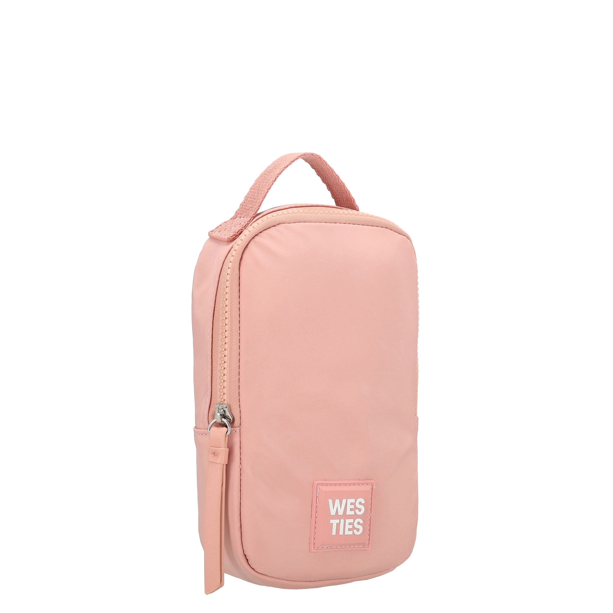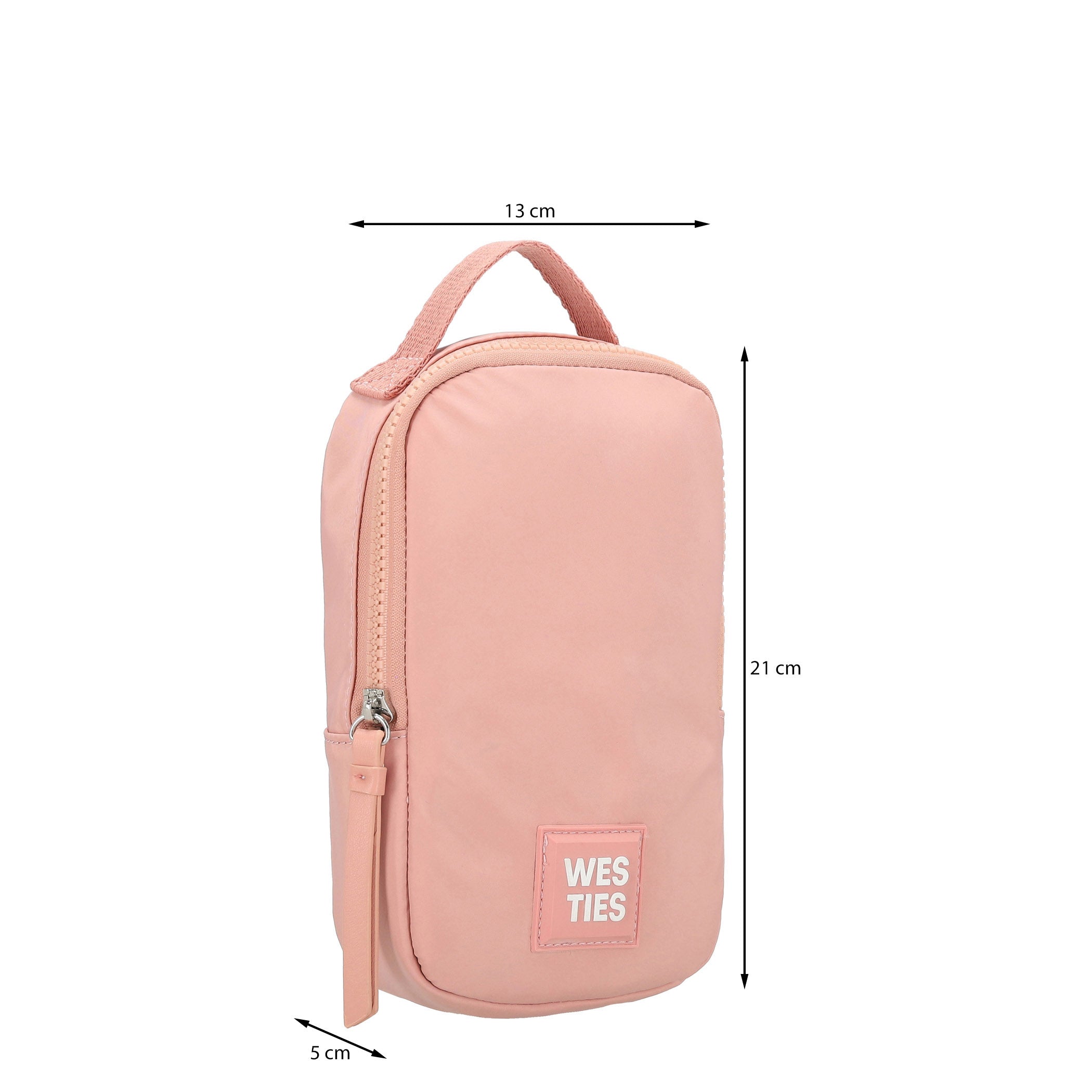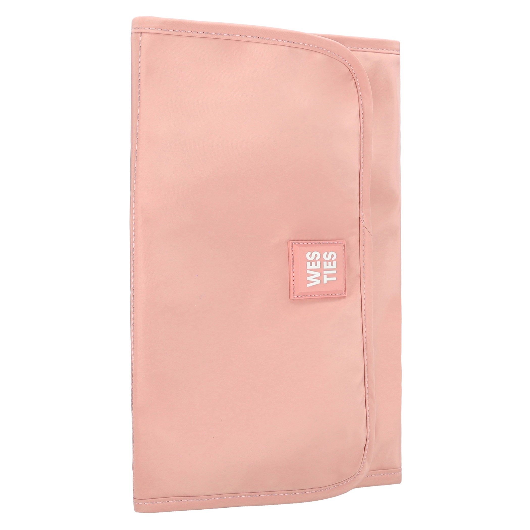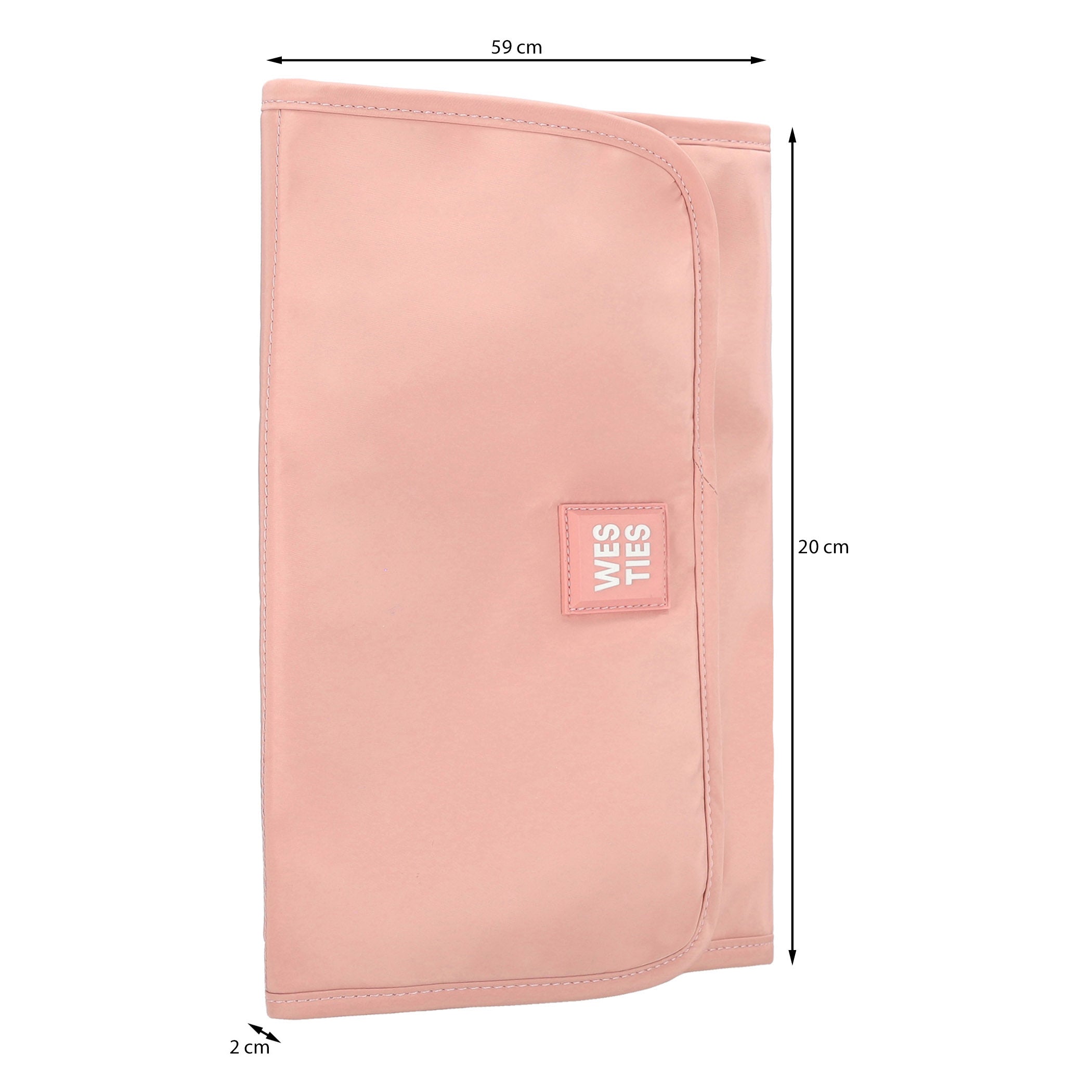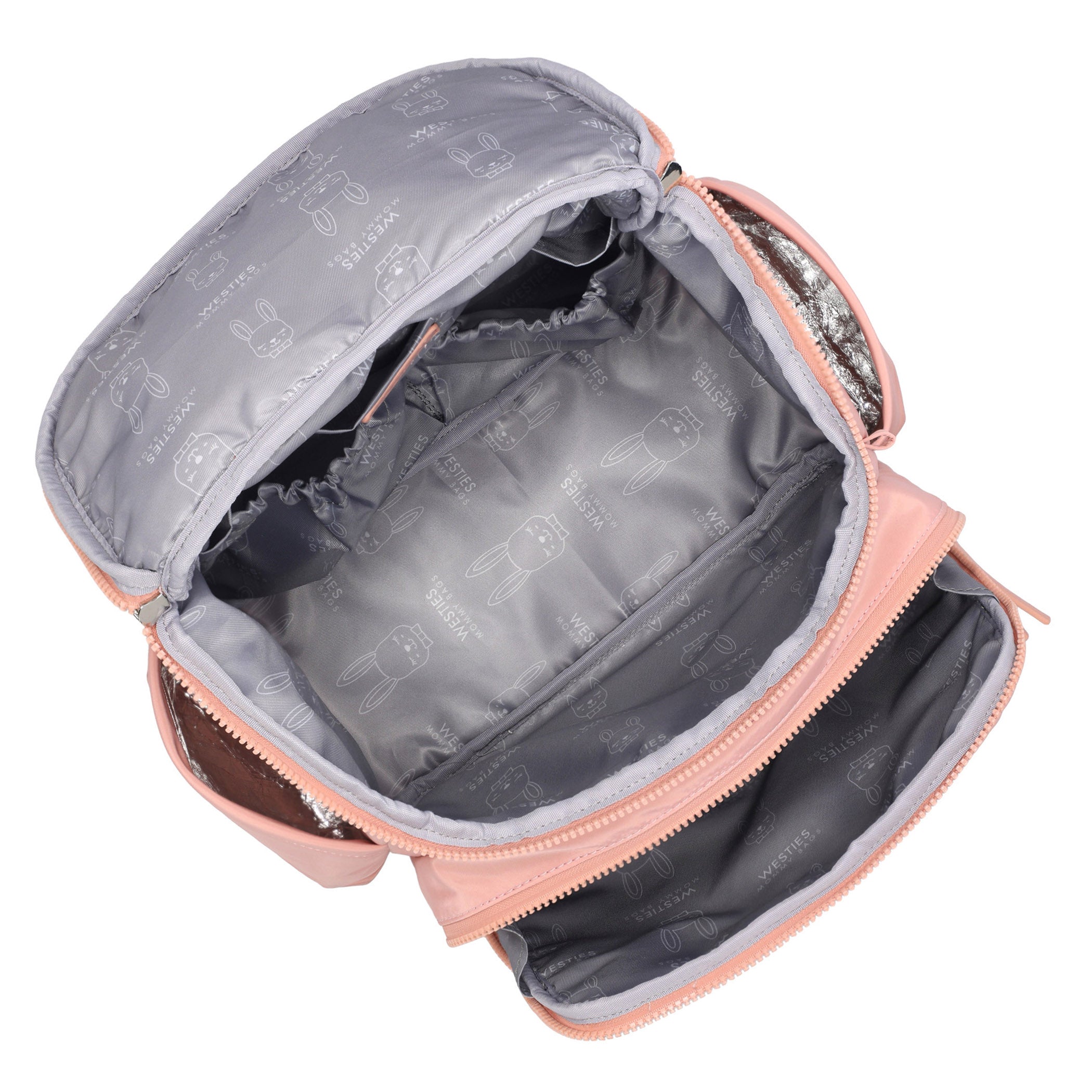 Pañalera Westies para mujer elaborada en material textil con estampado liso, fijación de cierre, forro de poliéster y textura lisa.