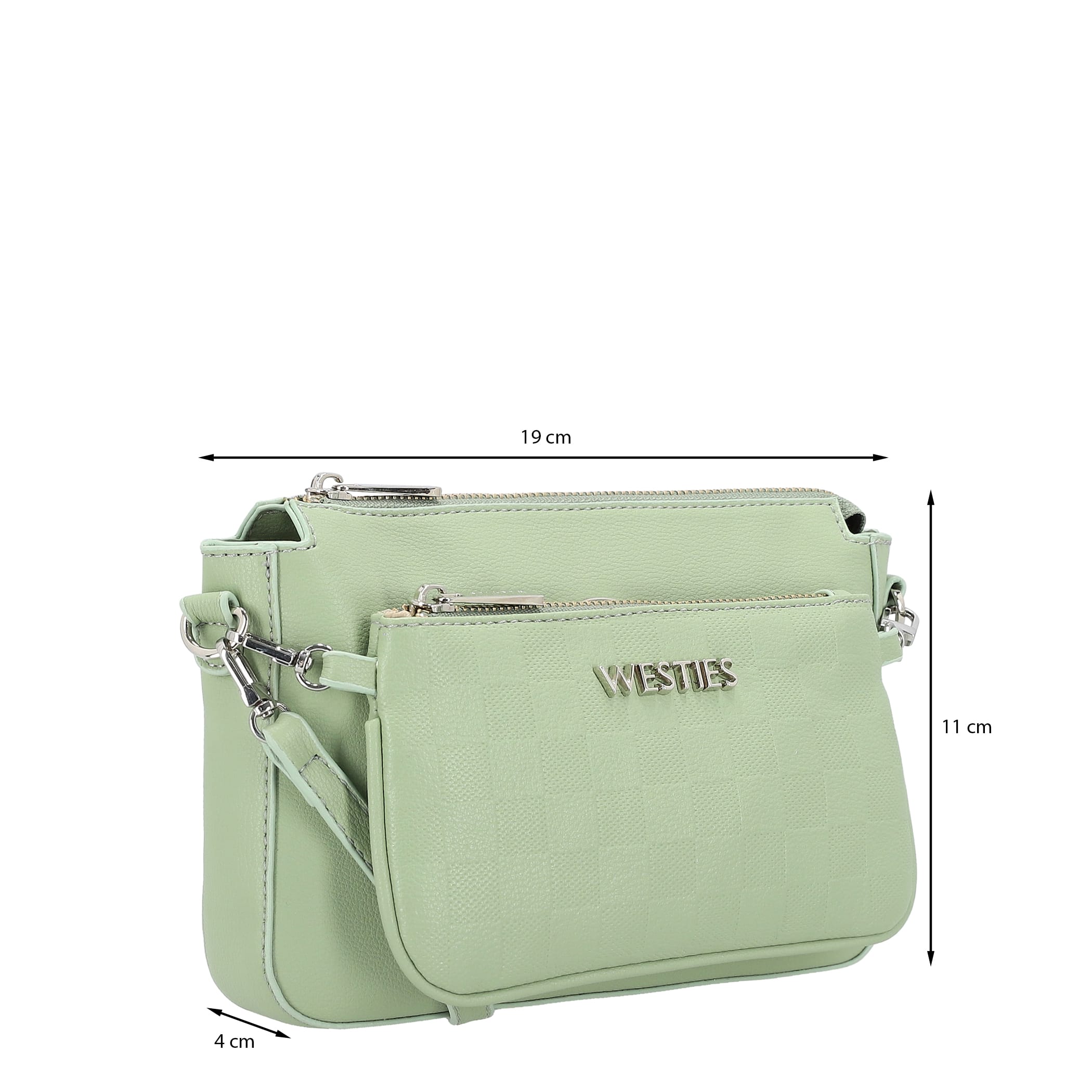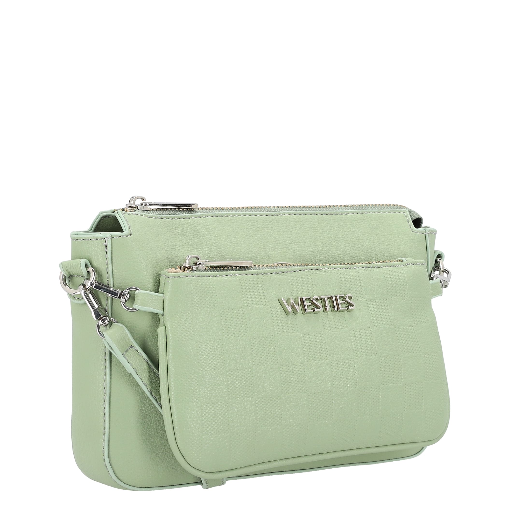 Bolsa crossbody Westies para mujer elaborado en material sintético con fijación de cierre, forro textil y textura flouter.
