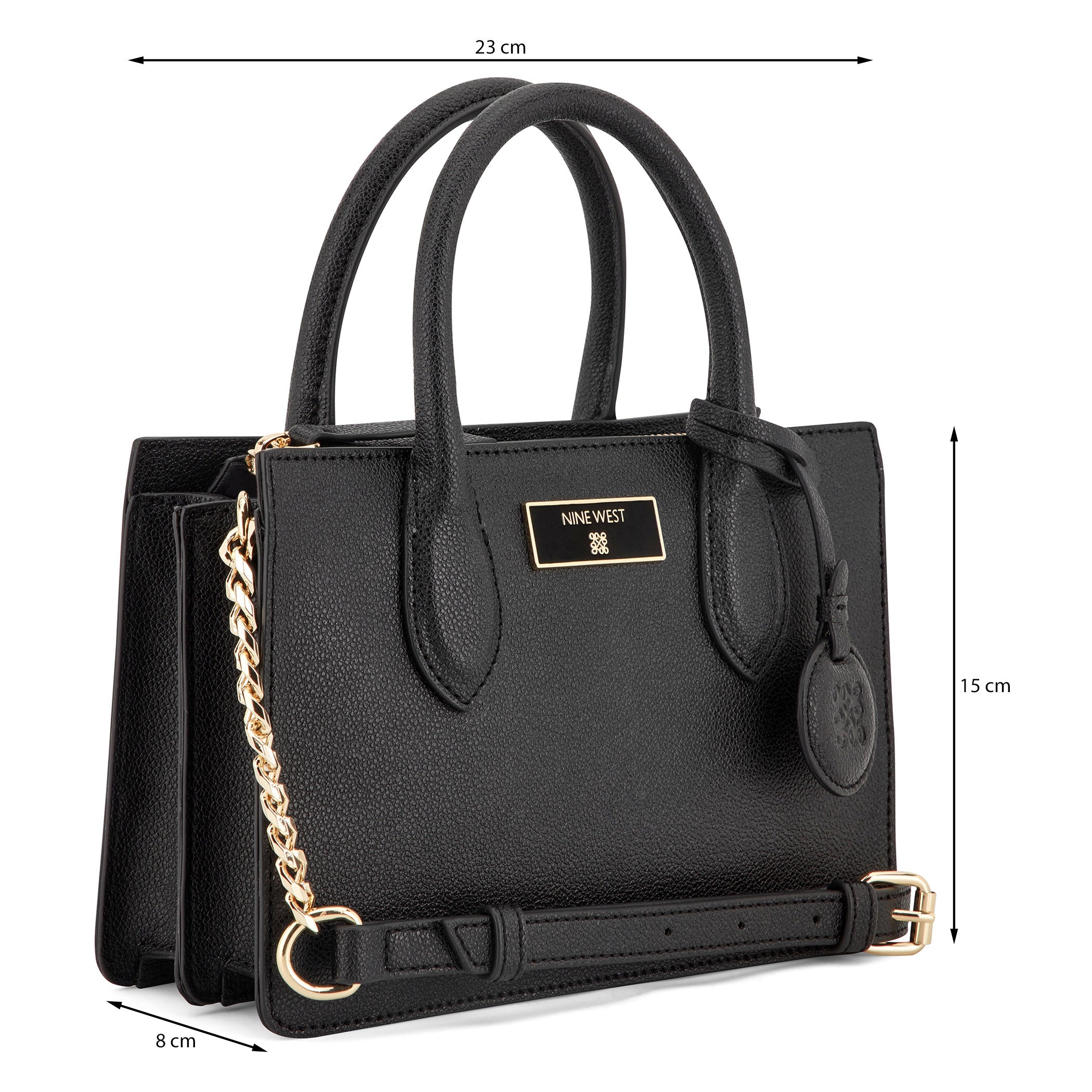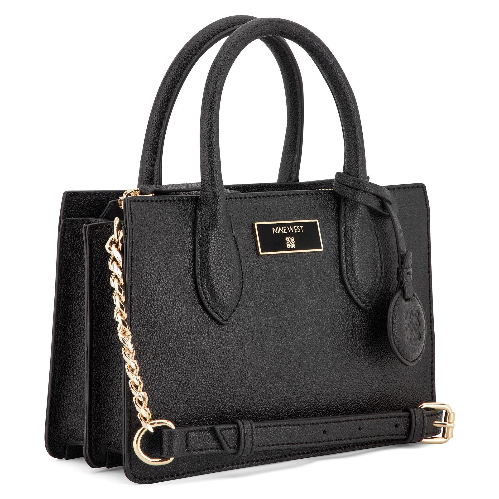 Bolsa de mano Nine West para mujer elaborada en material sintético con aplicación lisa, estampado liso, fijación de cierre y textura lisa.