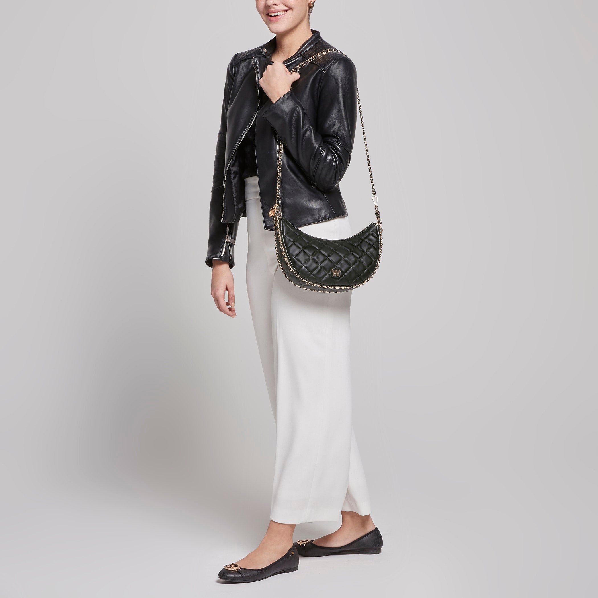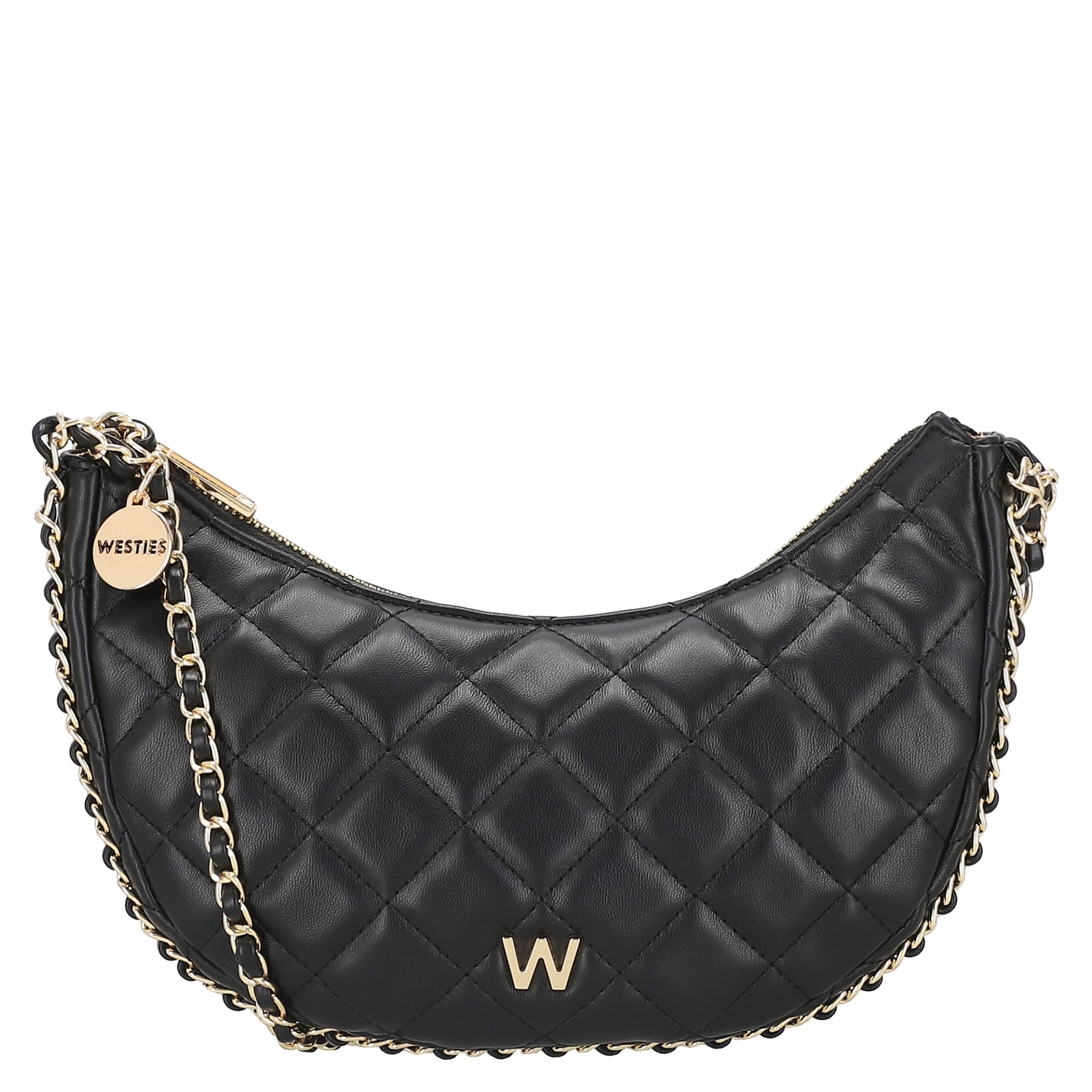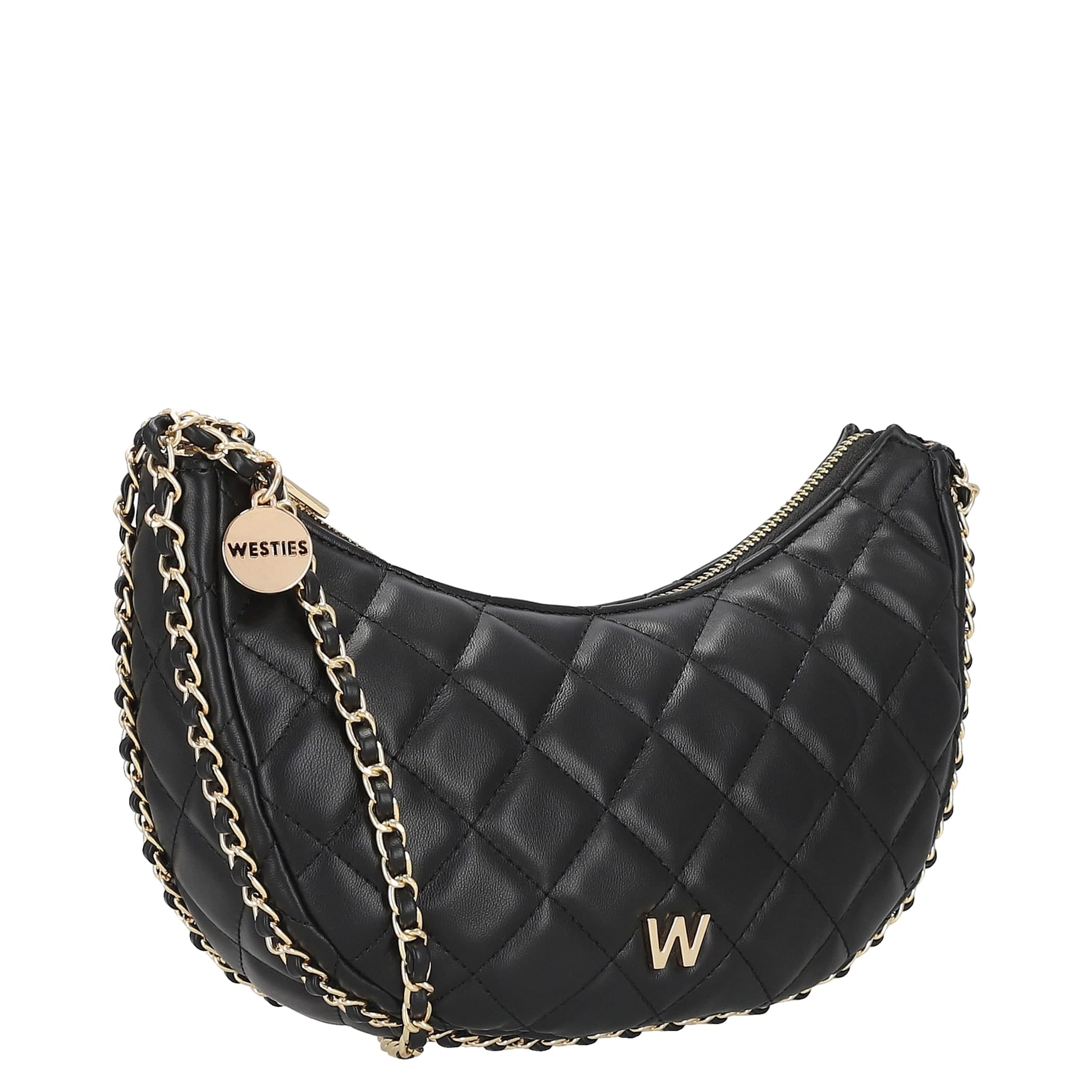 Bolsa crossbody Westies para mujer elaborado en material sintético con aplicación de cadena, estampado liso, fijación de cierre y textura lisa.