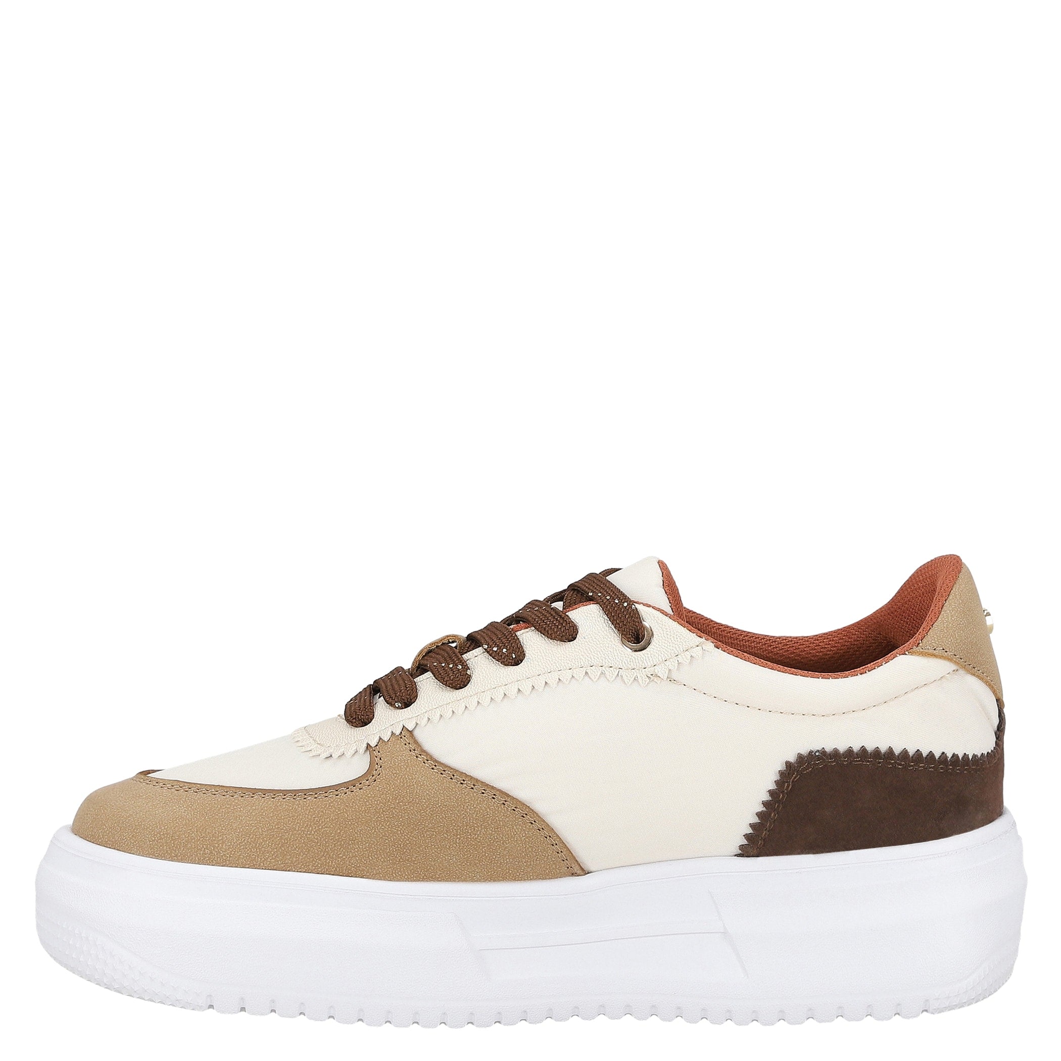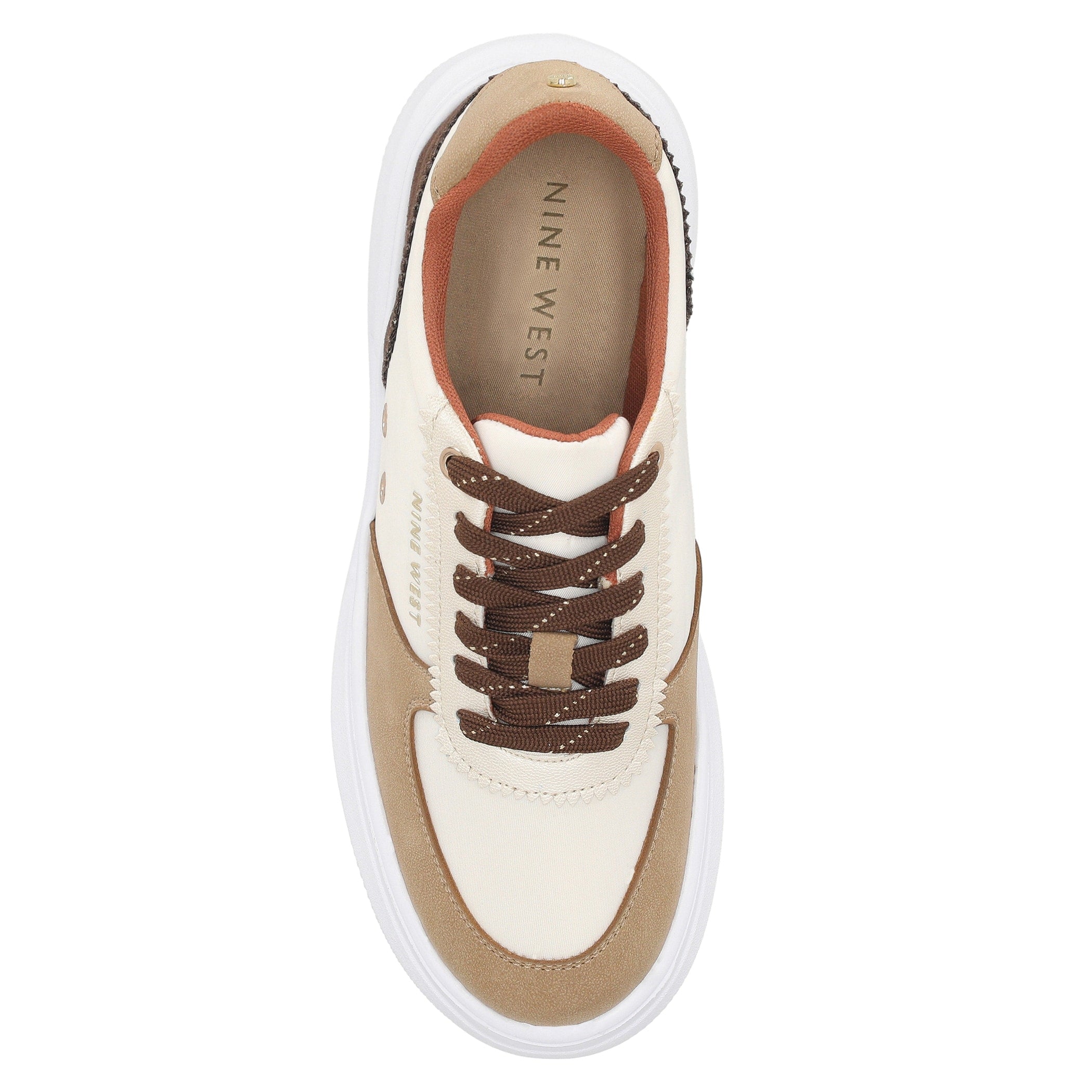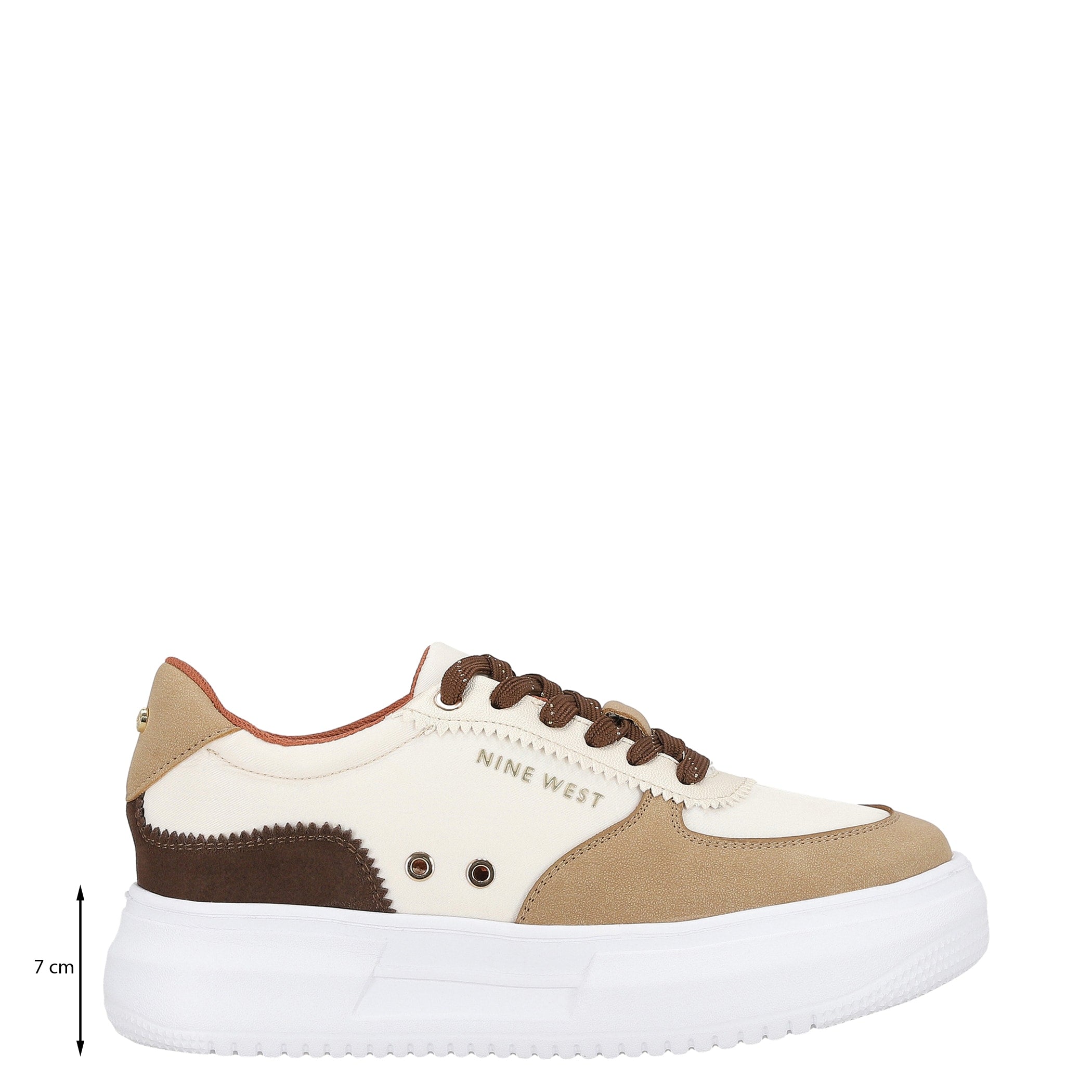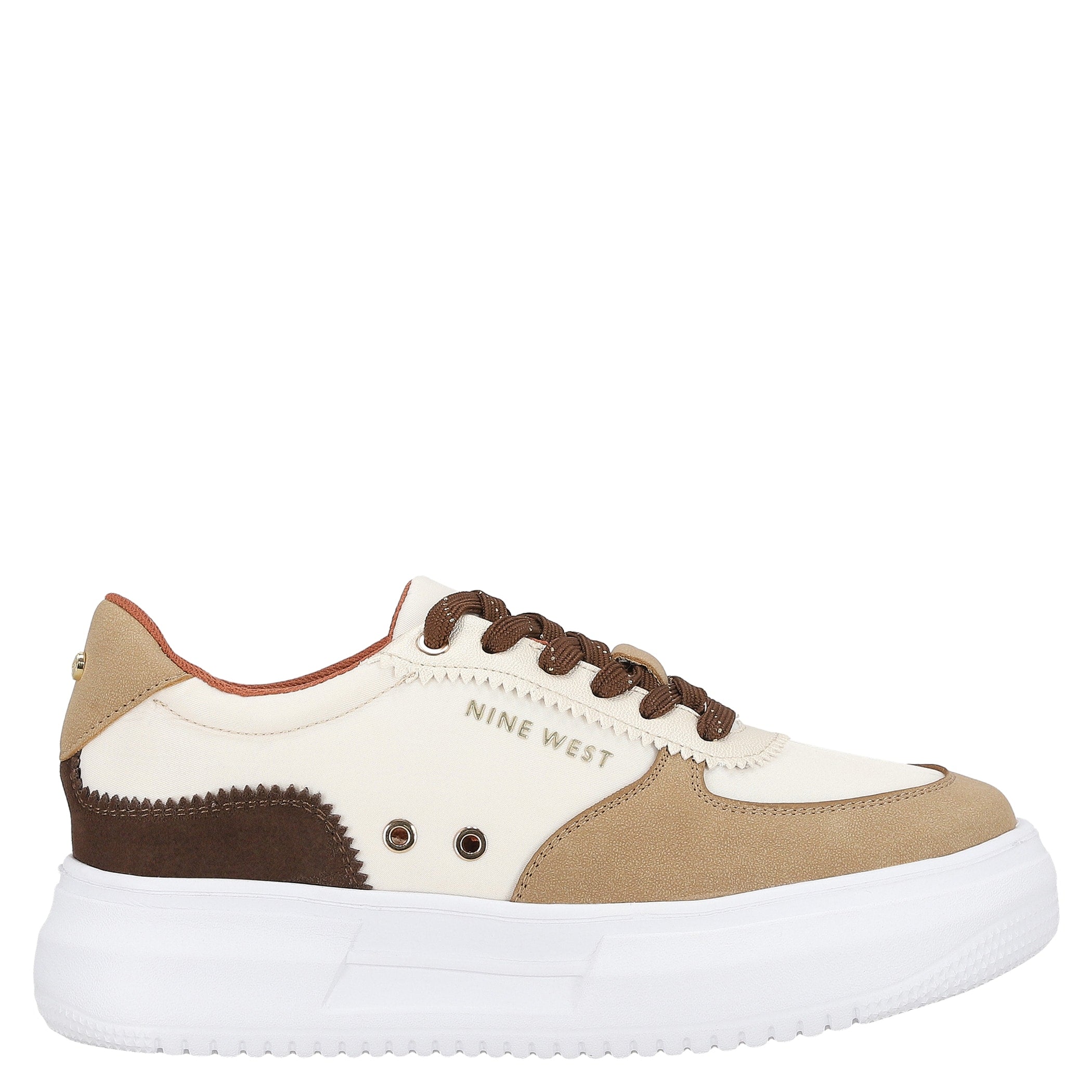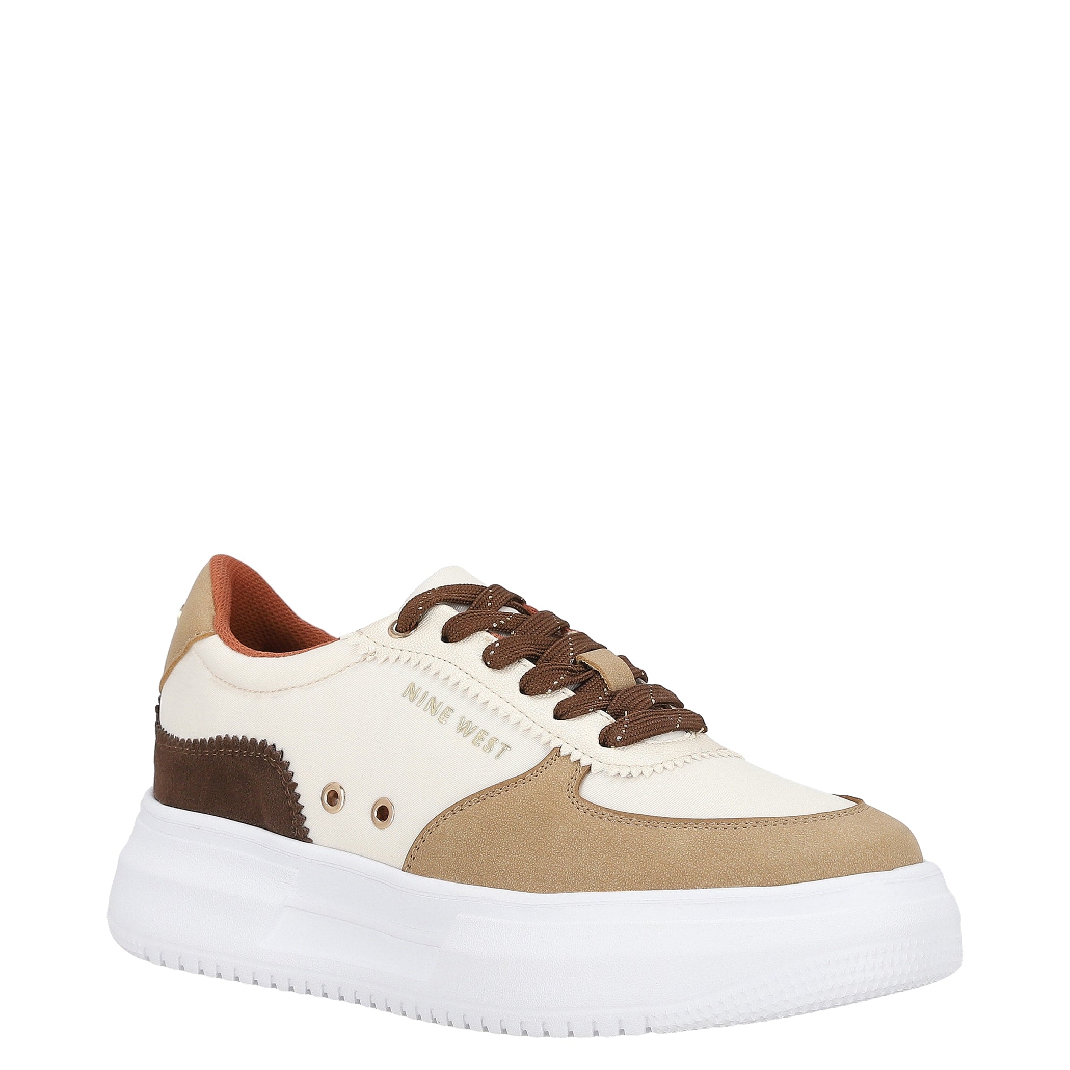 Tenis Nine West para mujer elaborado en material textil con estampado liso, fijación de agujeta, punta redonda, cuña flat y textura lisa.