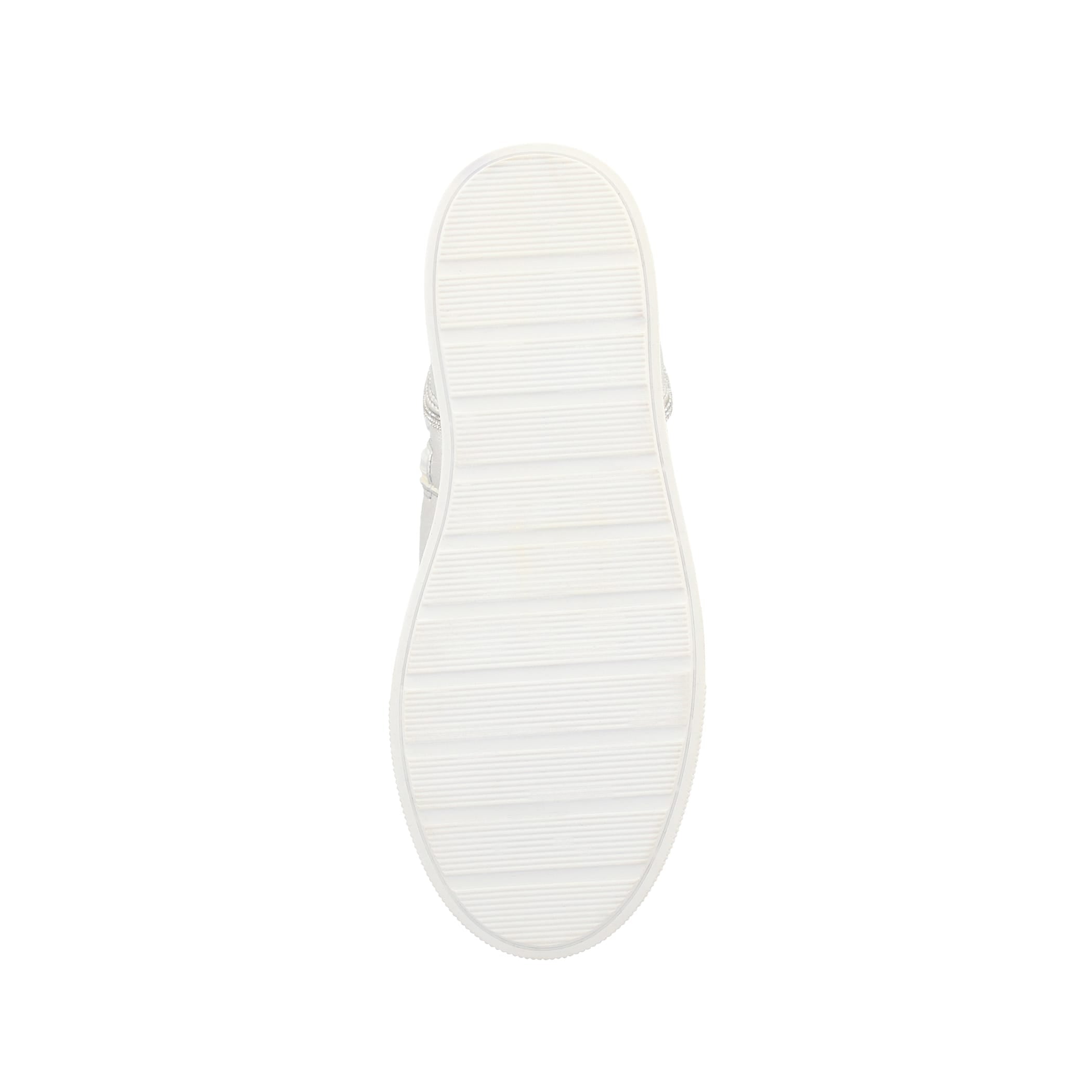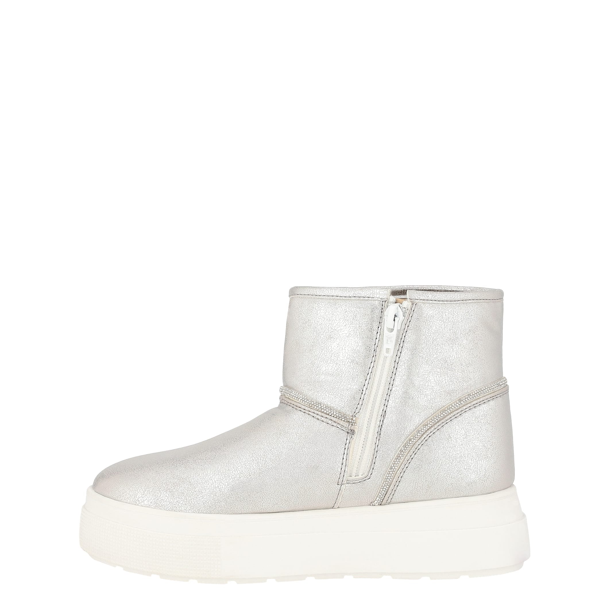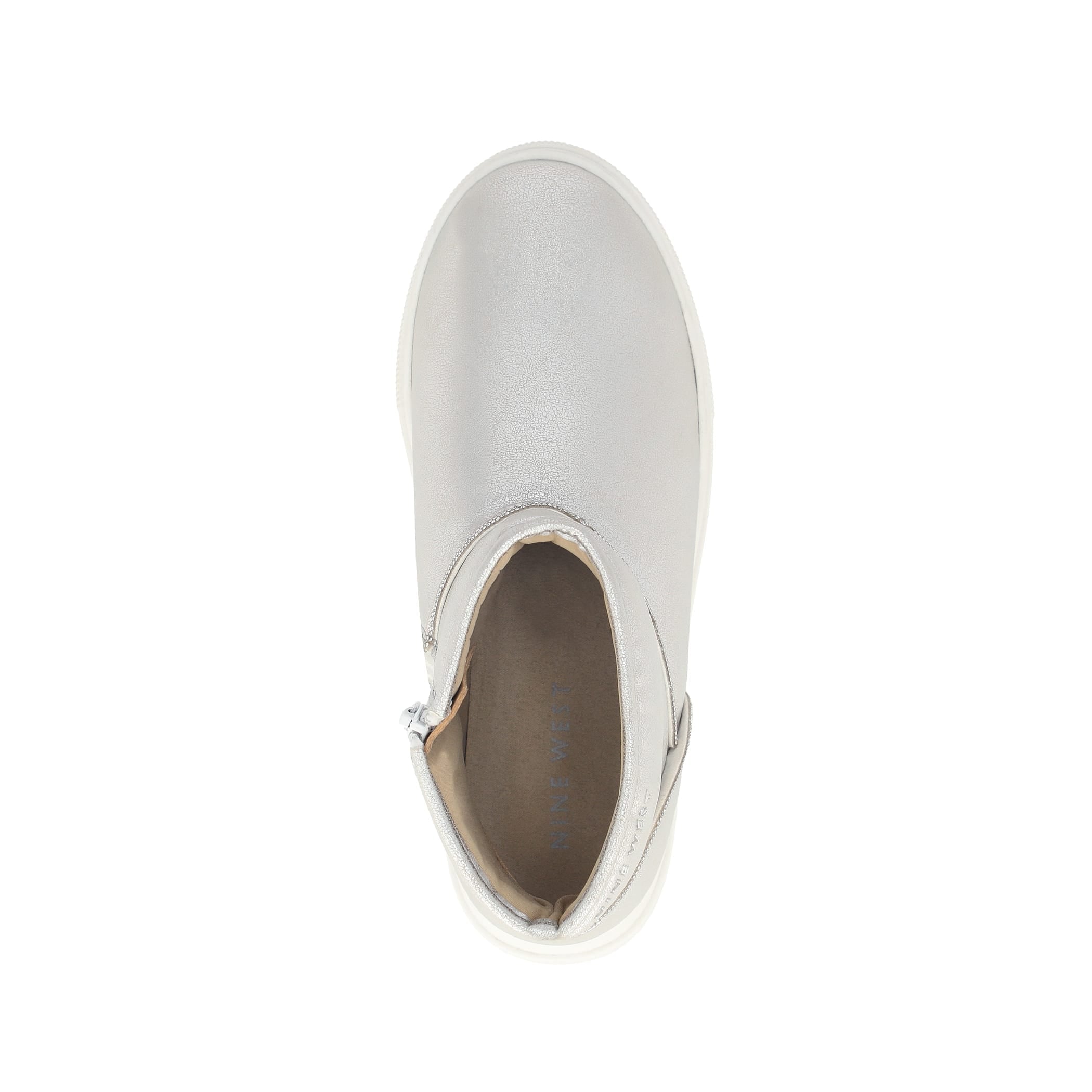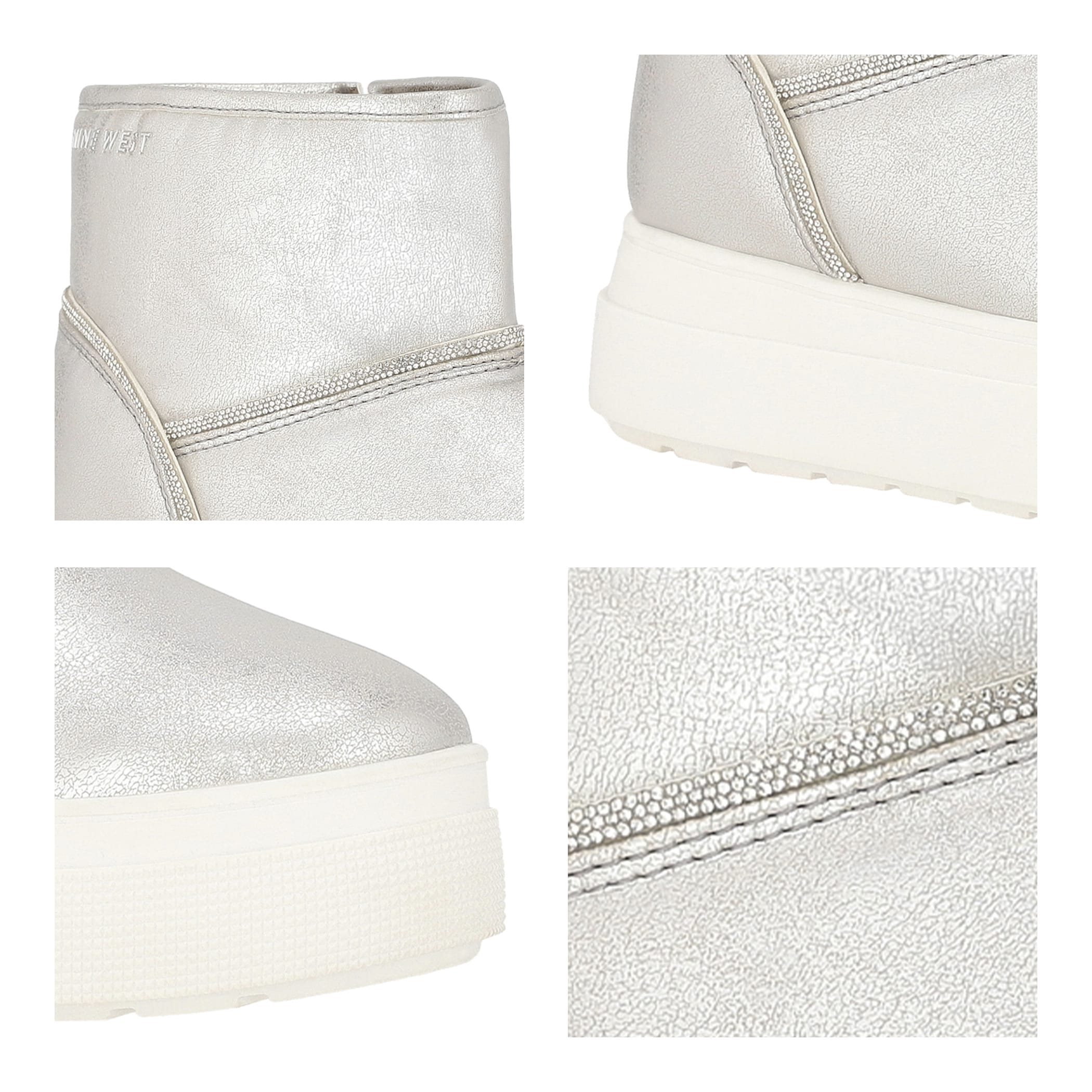 Botín Nine West para niñas elaborado en material sintético con estampado liso, fijación abierta, punta redonda, textura lisa, cuña flat, suela de inyección y forro textil.
