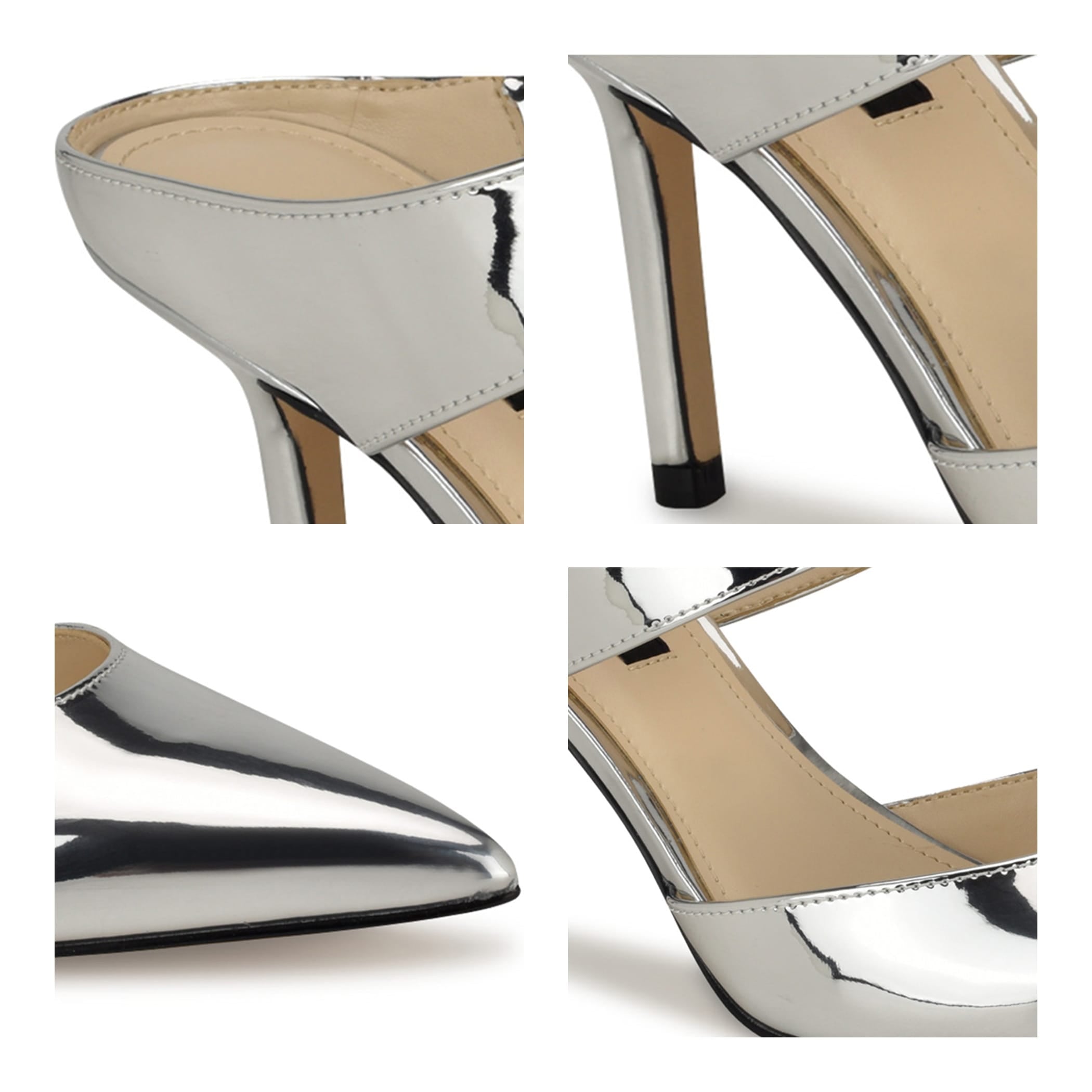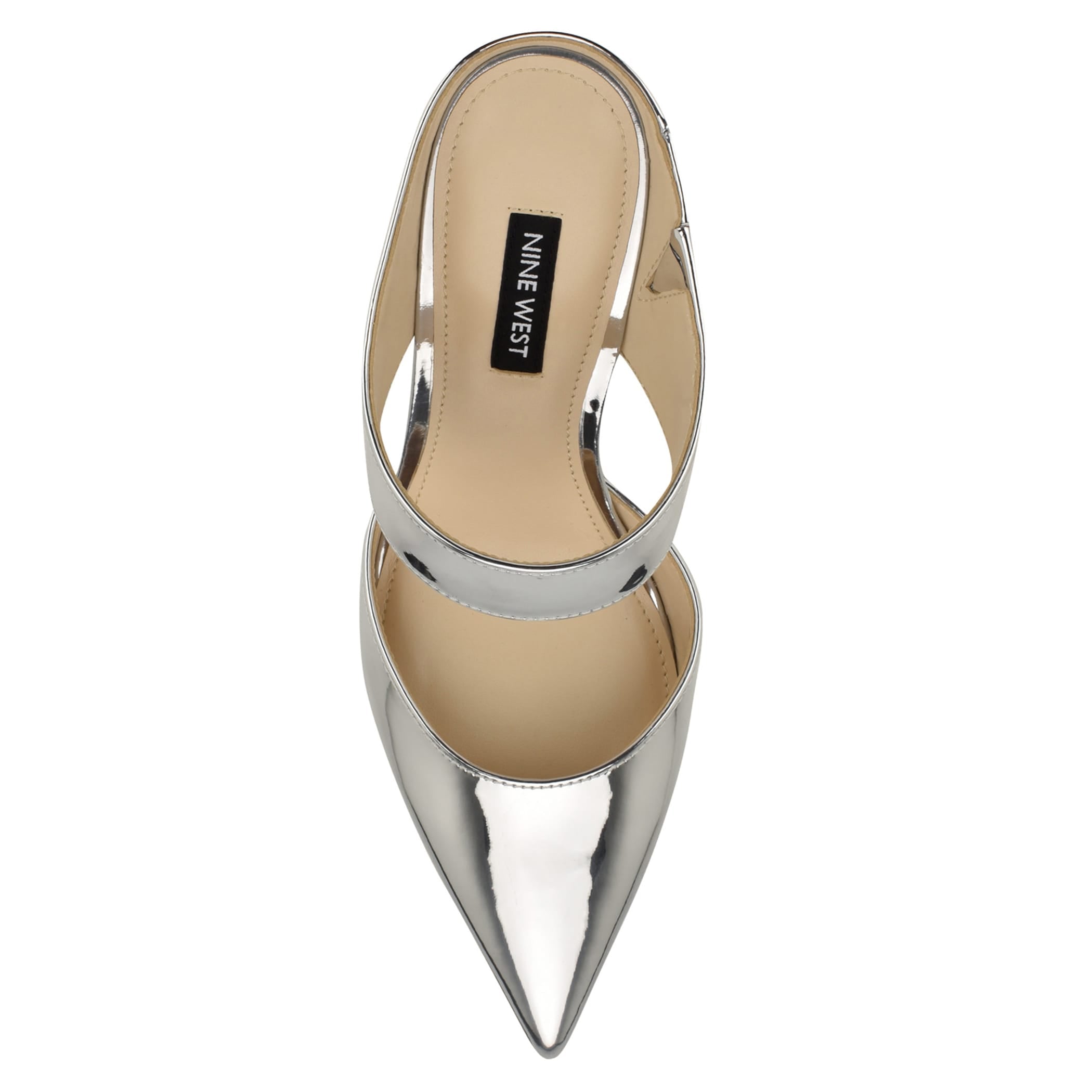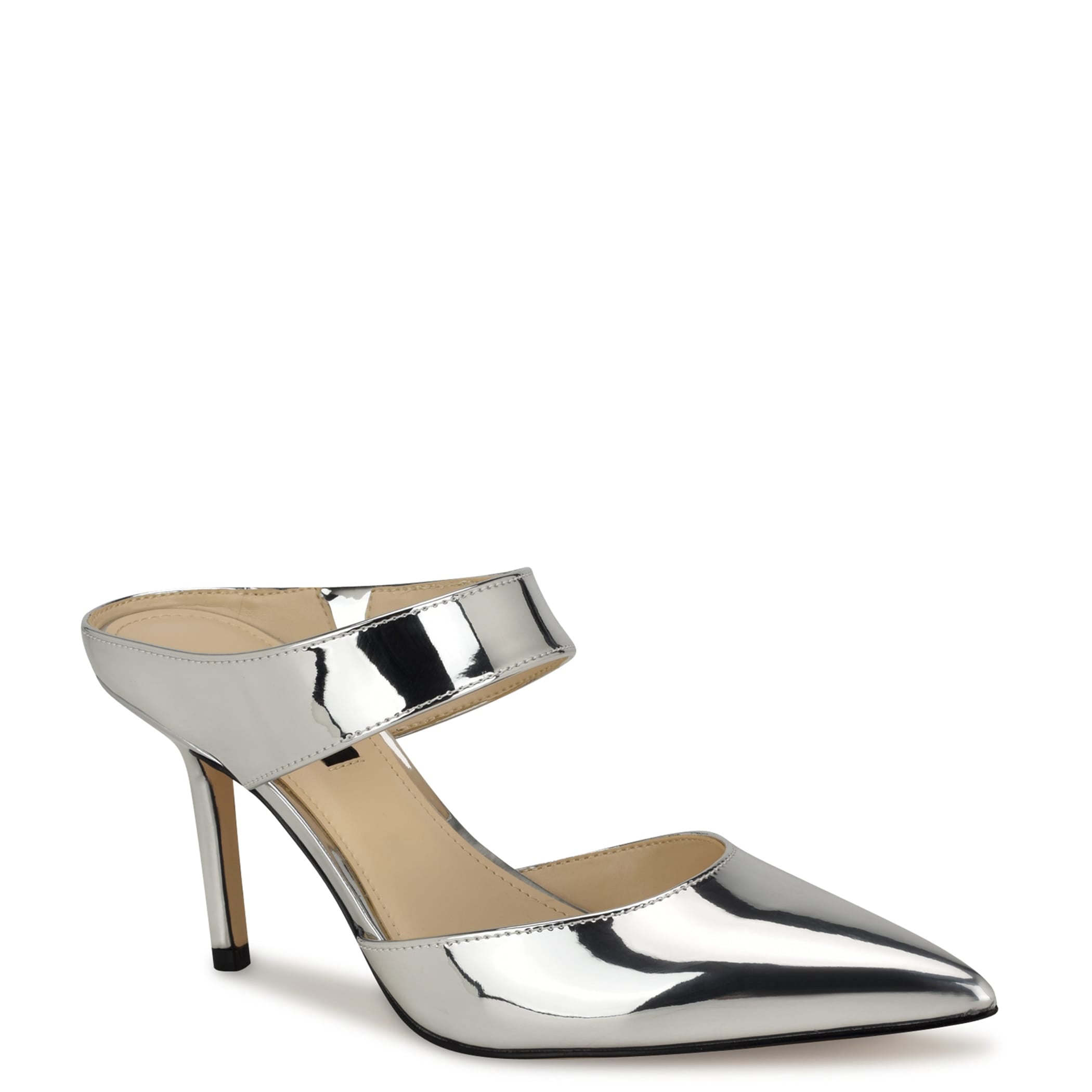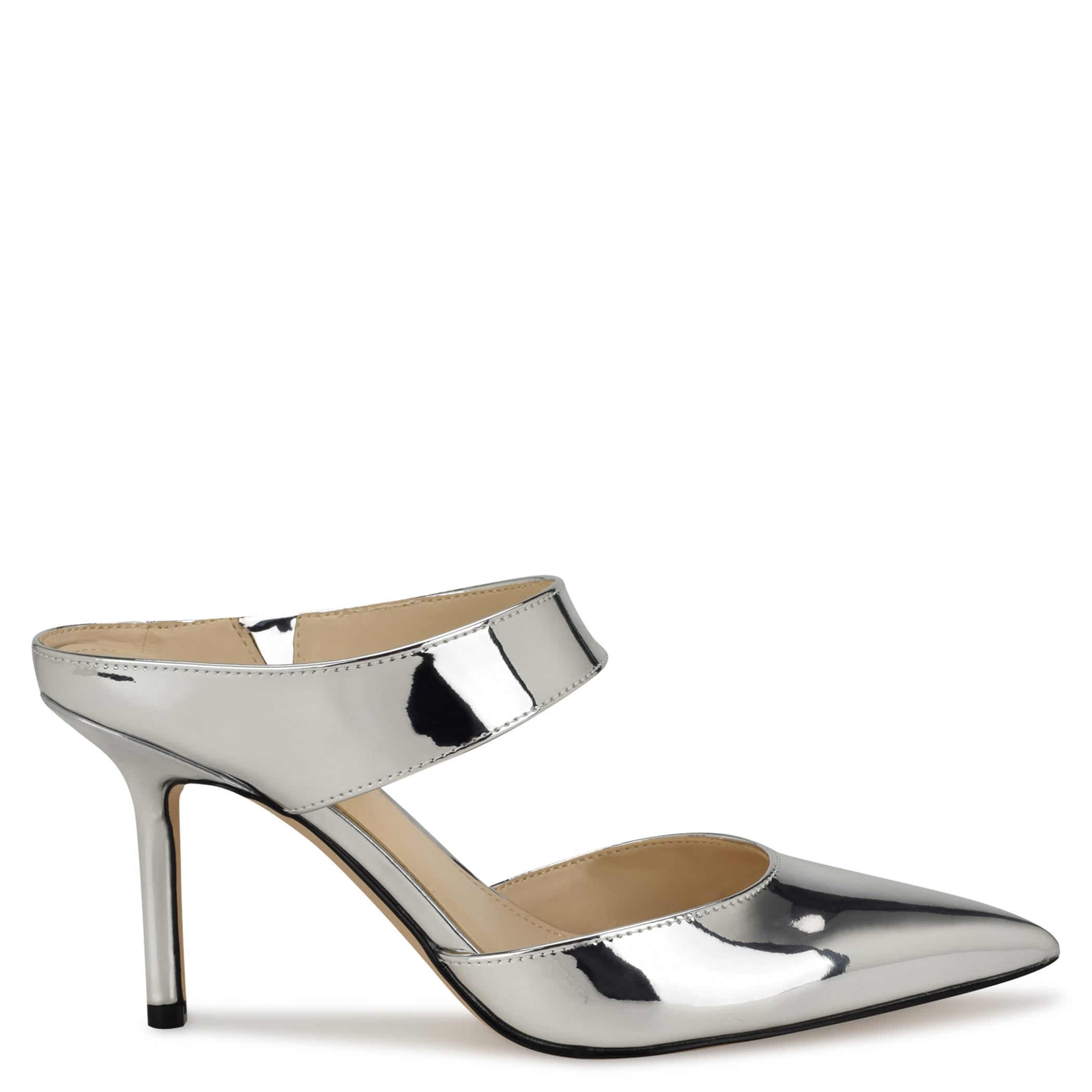 Zapato Destalonado Con Tacon Darian3 Sintetico Plata Nine West