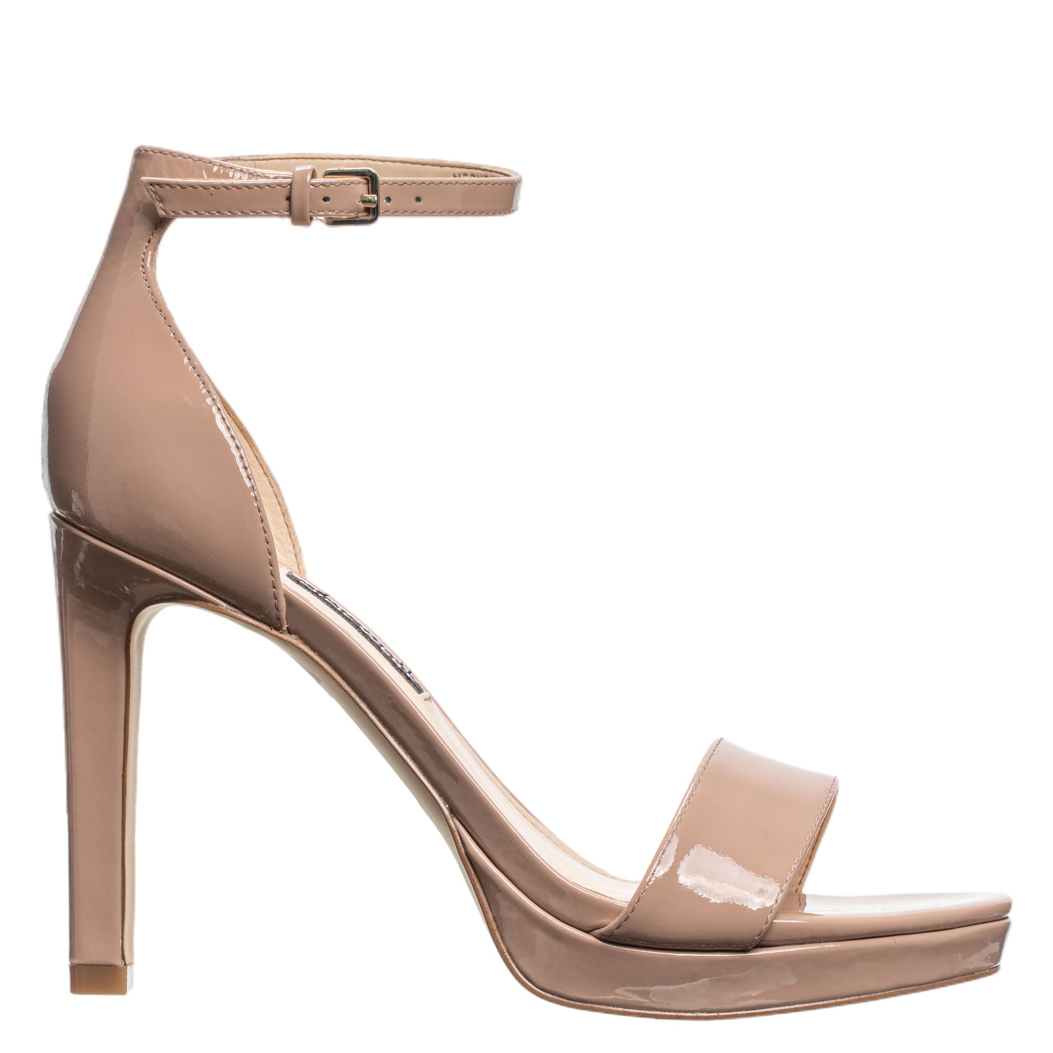 Sandalia Nine West elaborada con los mejores materiales, estampado liso, tacón alto y textura lisa.