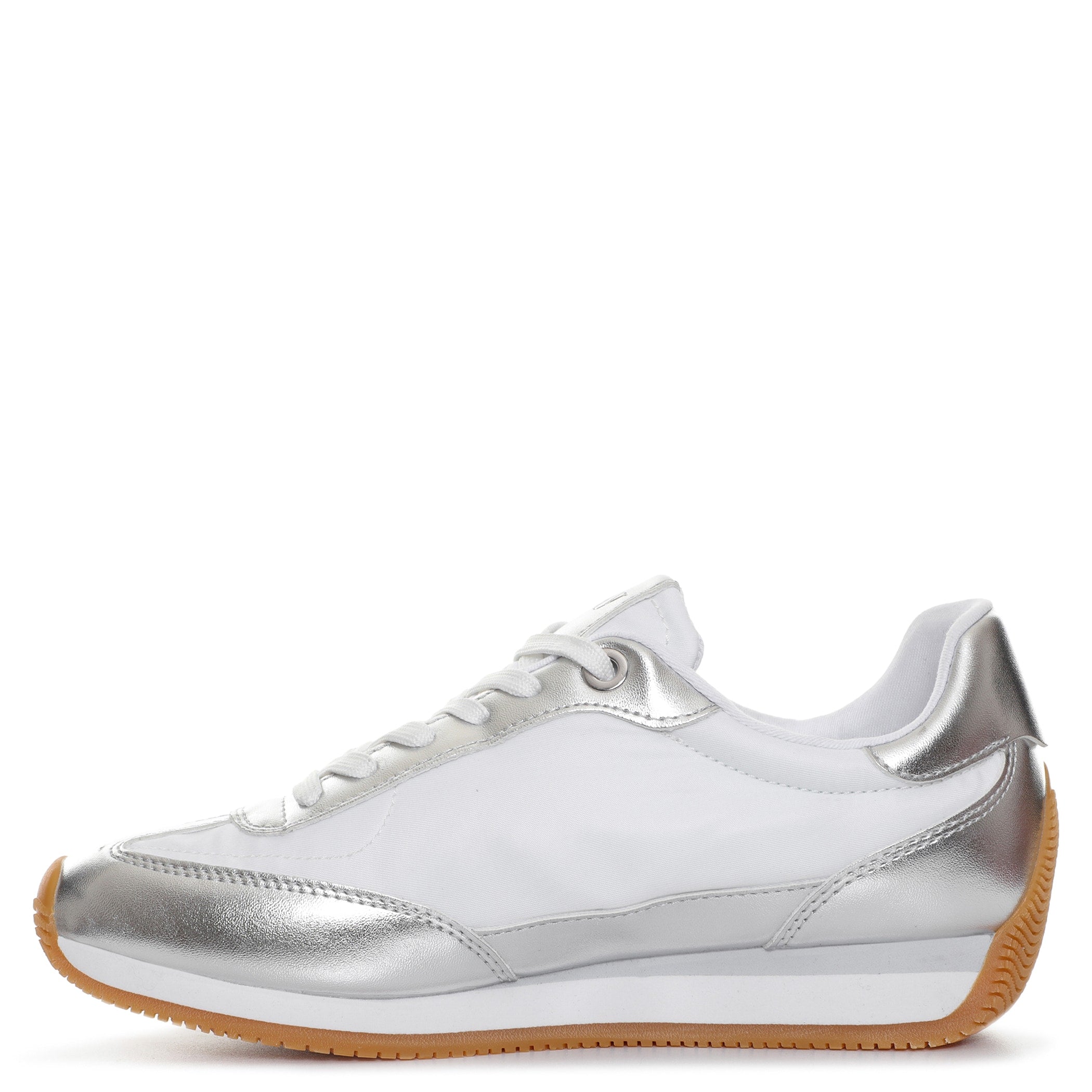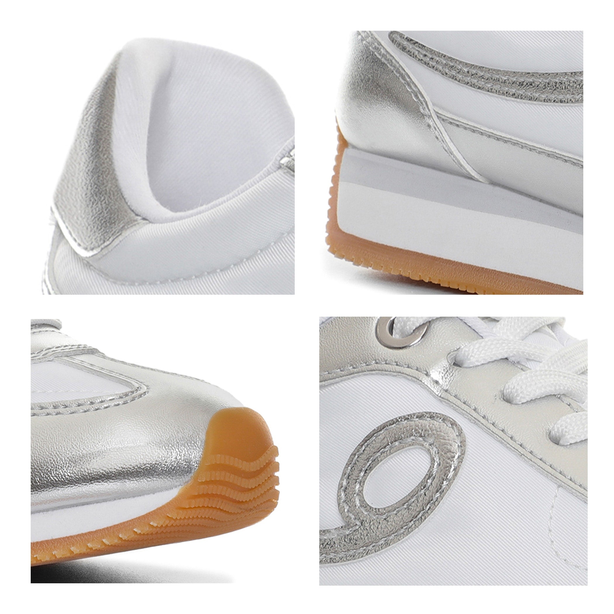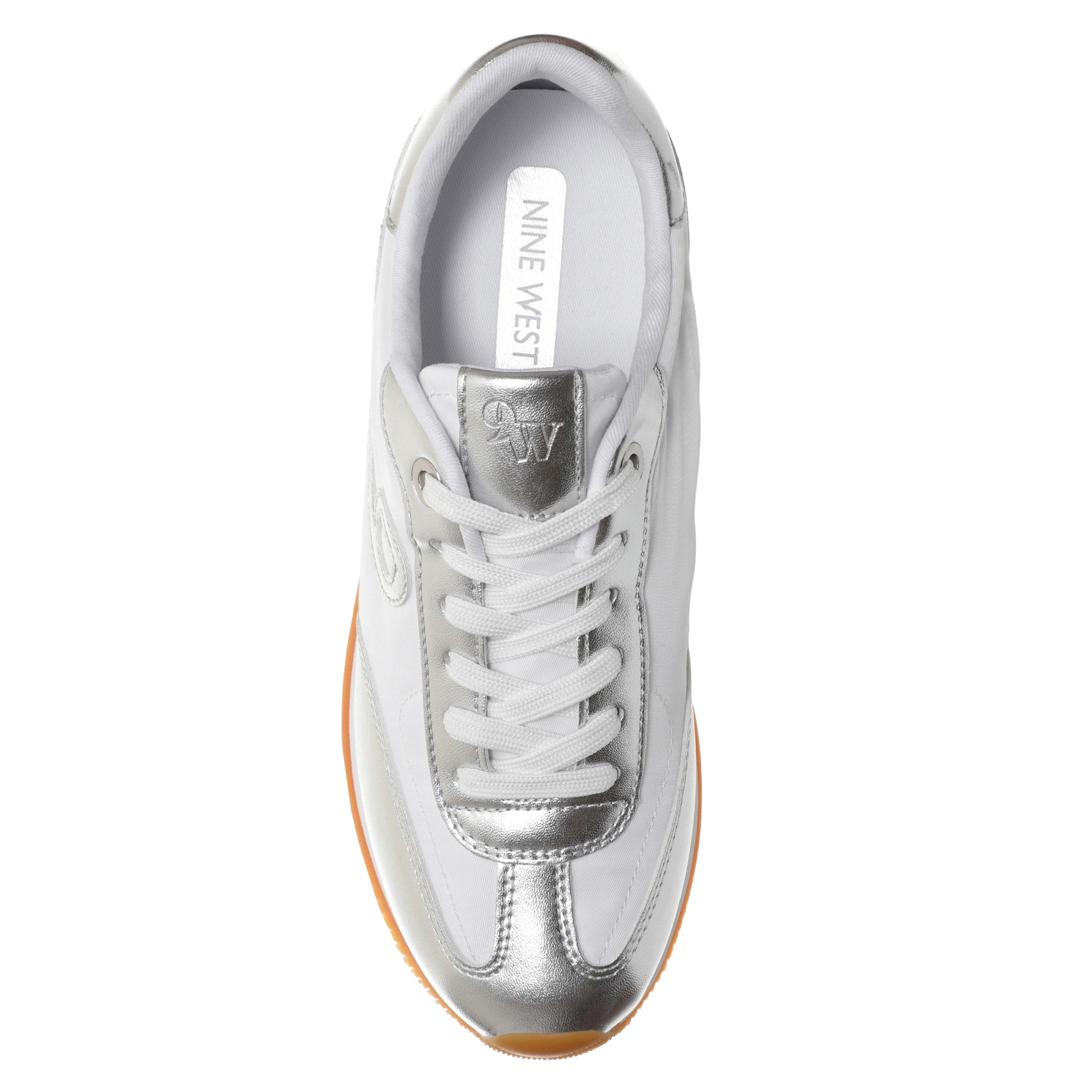 Tenis Nine West para mujer elaborado en material textil con estampado liso, fijación de agujeta, punta redonda y textura lisa.
