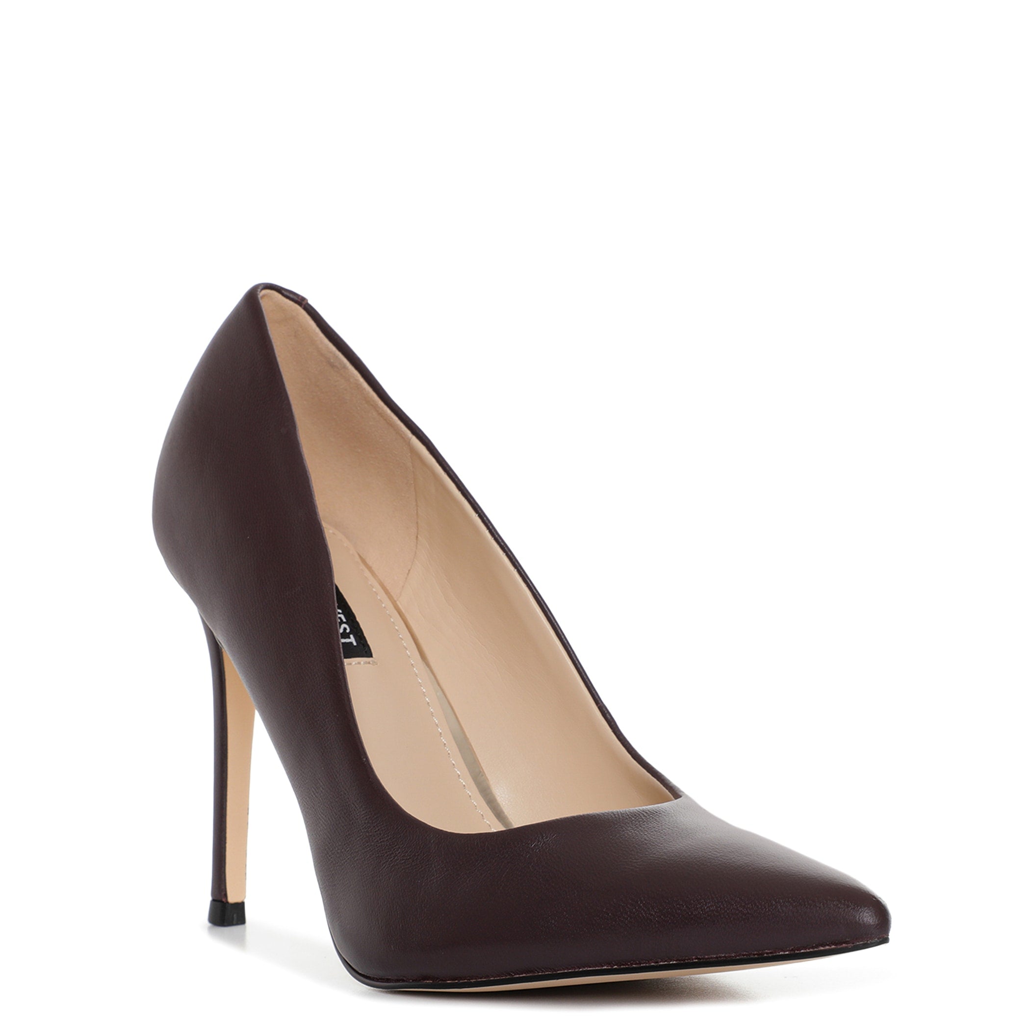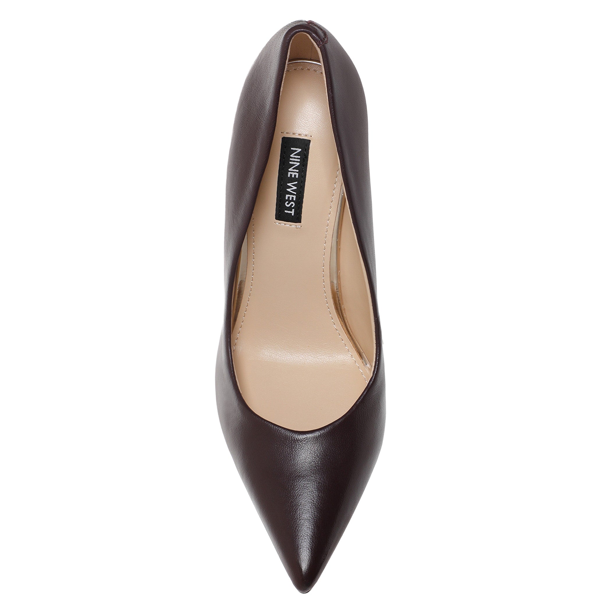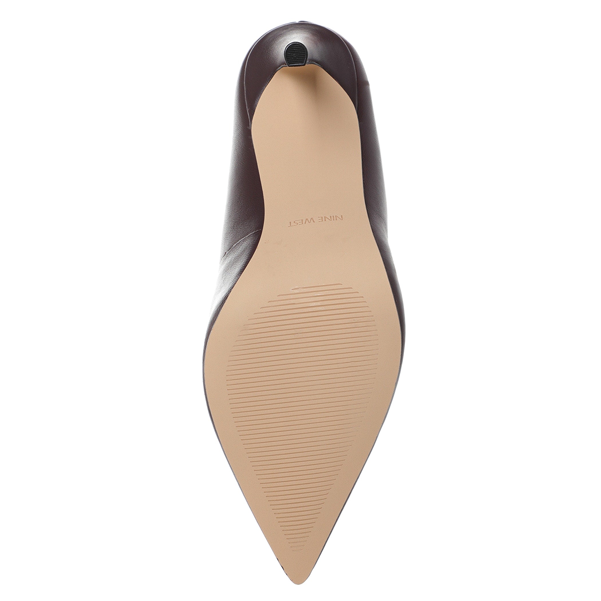 Zapatilla Nine West para mujer elaborada en material piel con estampado liso, fijación abierta, punta puntal, cuña alta y textura lisa.
