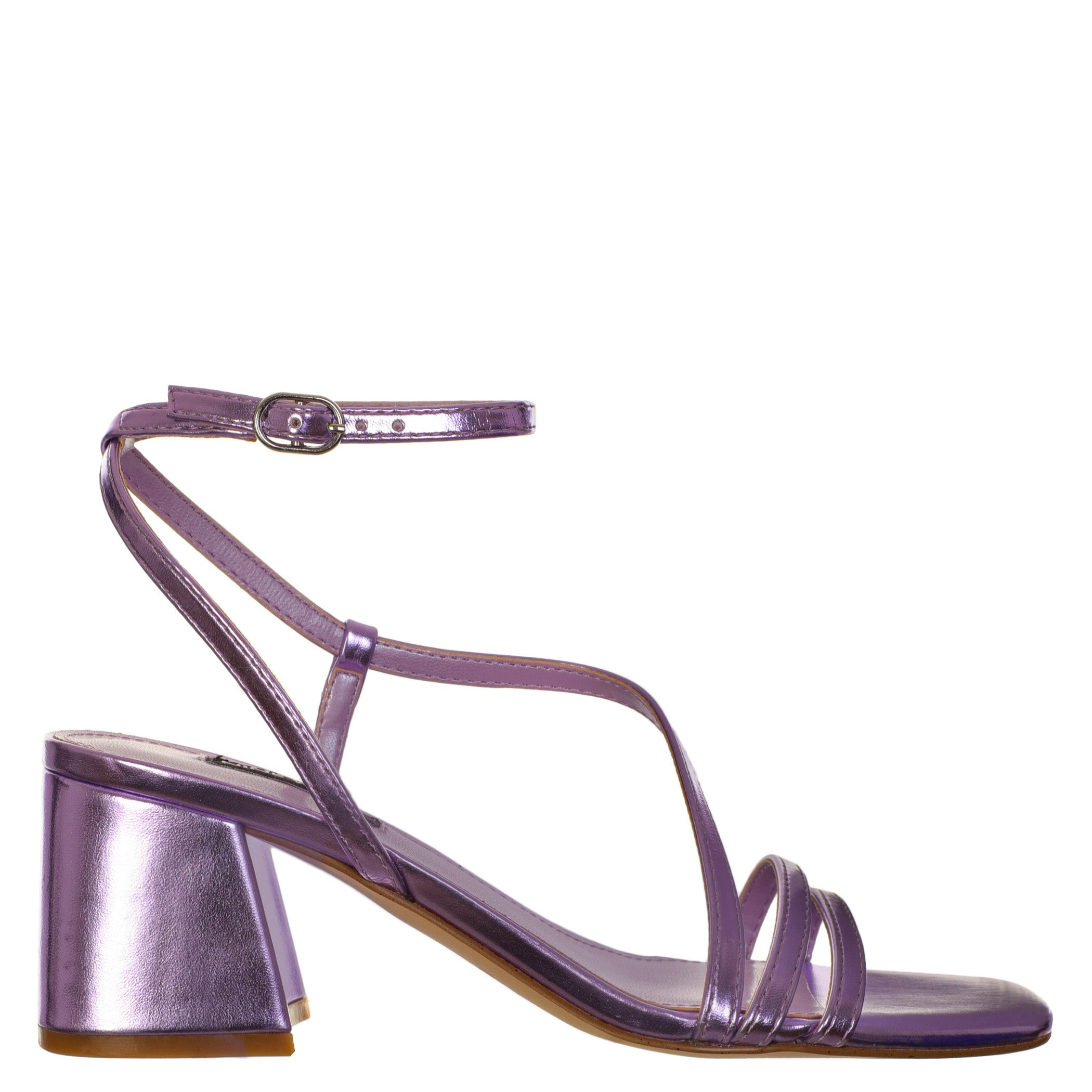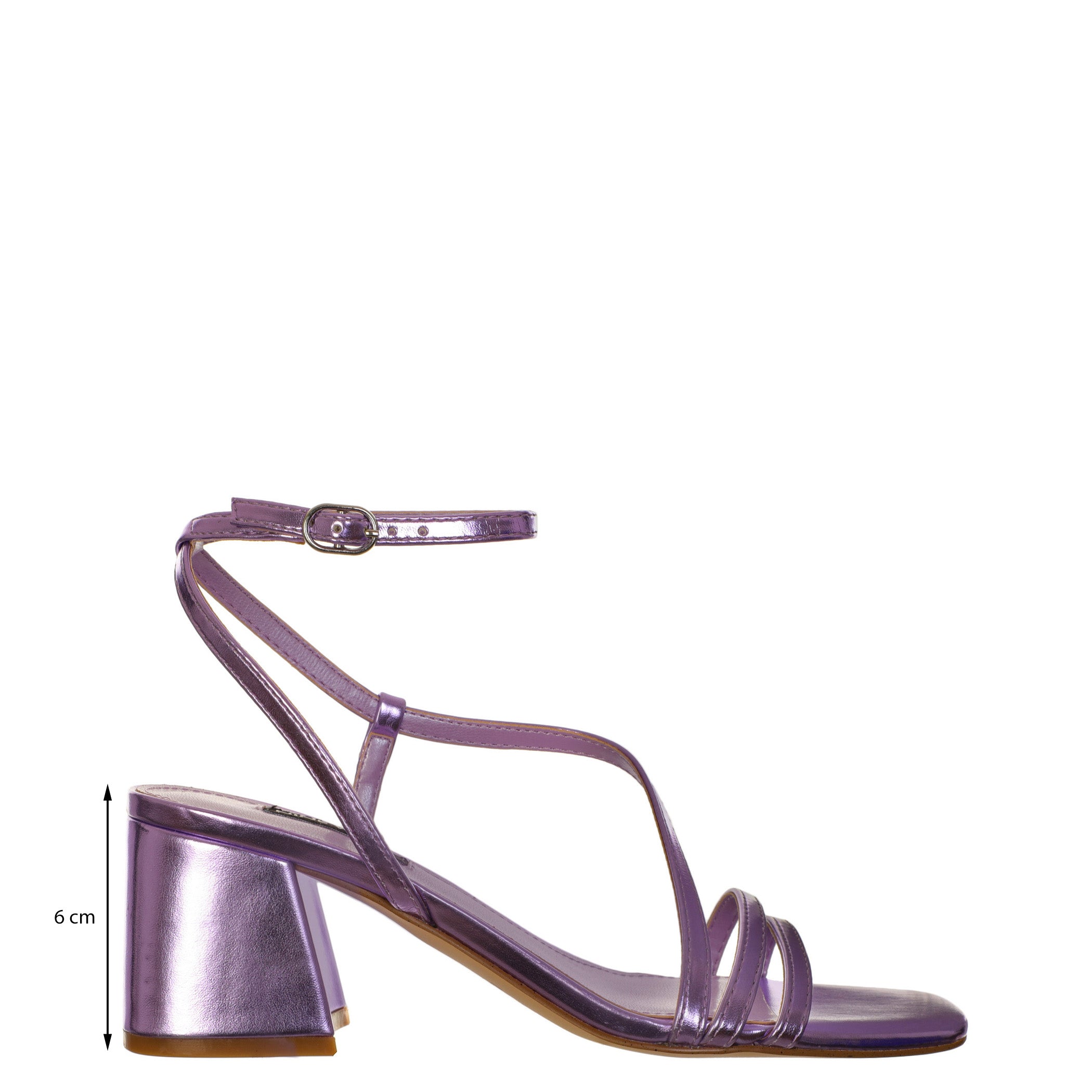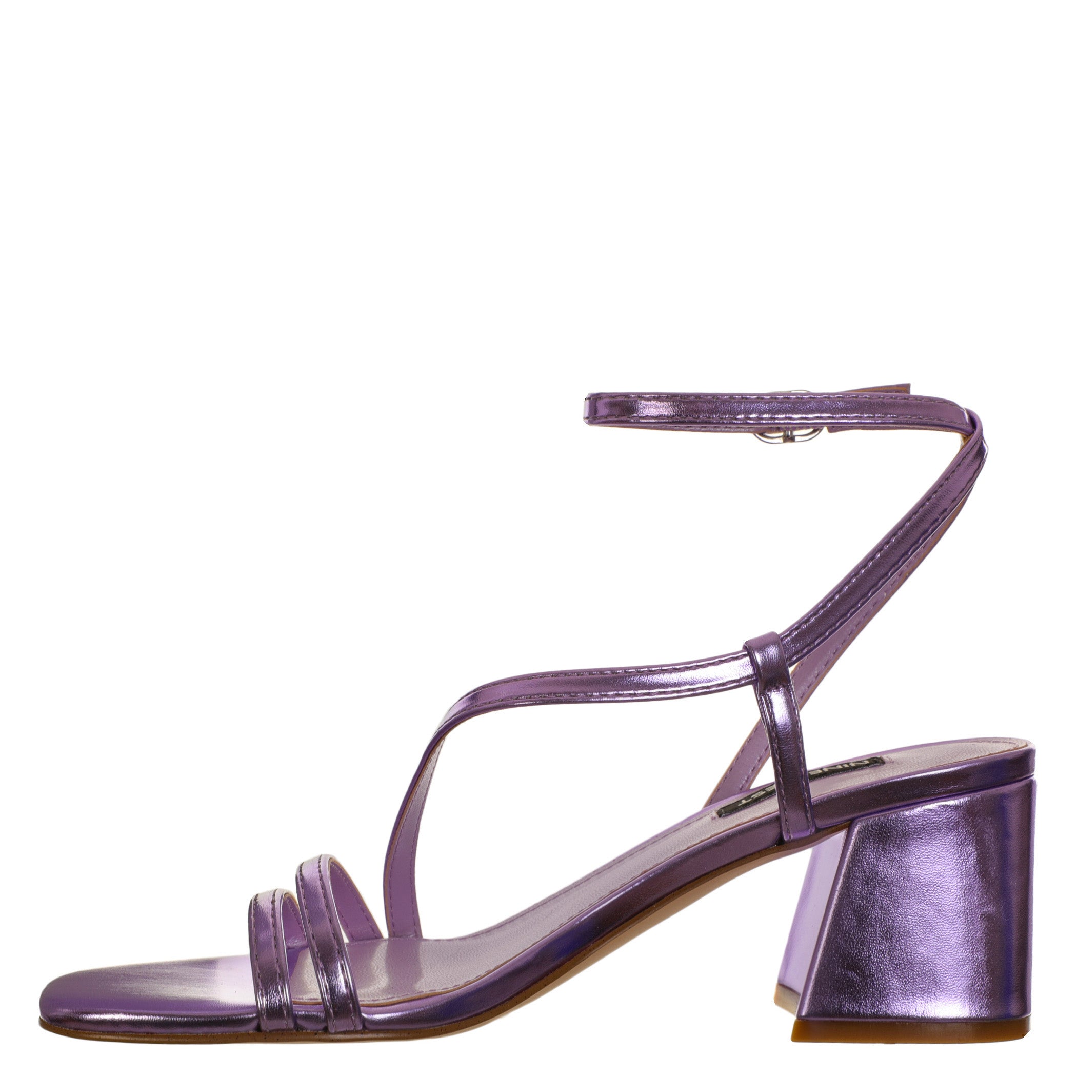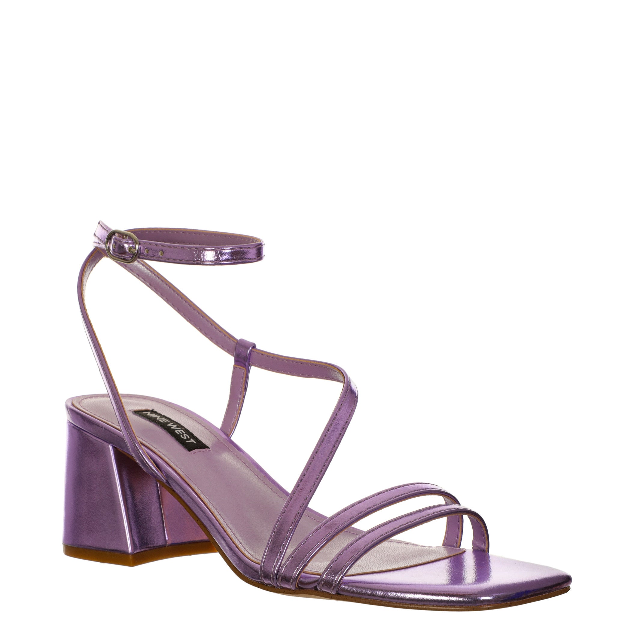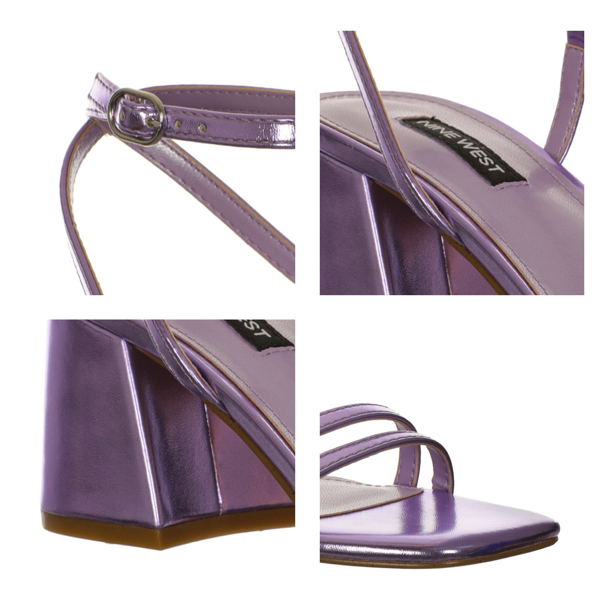 Sandalia Nine West para mujer elaborado en material sintético con aplicación liso, estampado liso, forro sintético, suela sintética, fijación pulsera, punta cuadrada, textura lisa, con una altura de tacón 6 cm.