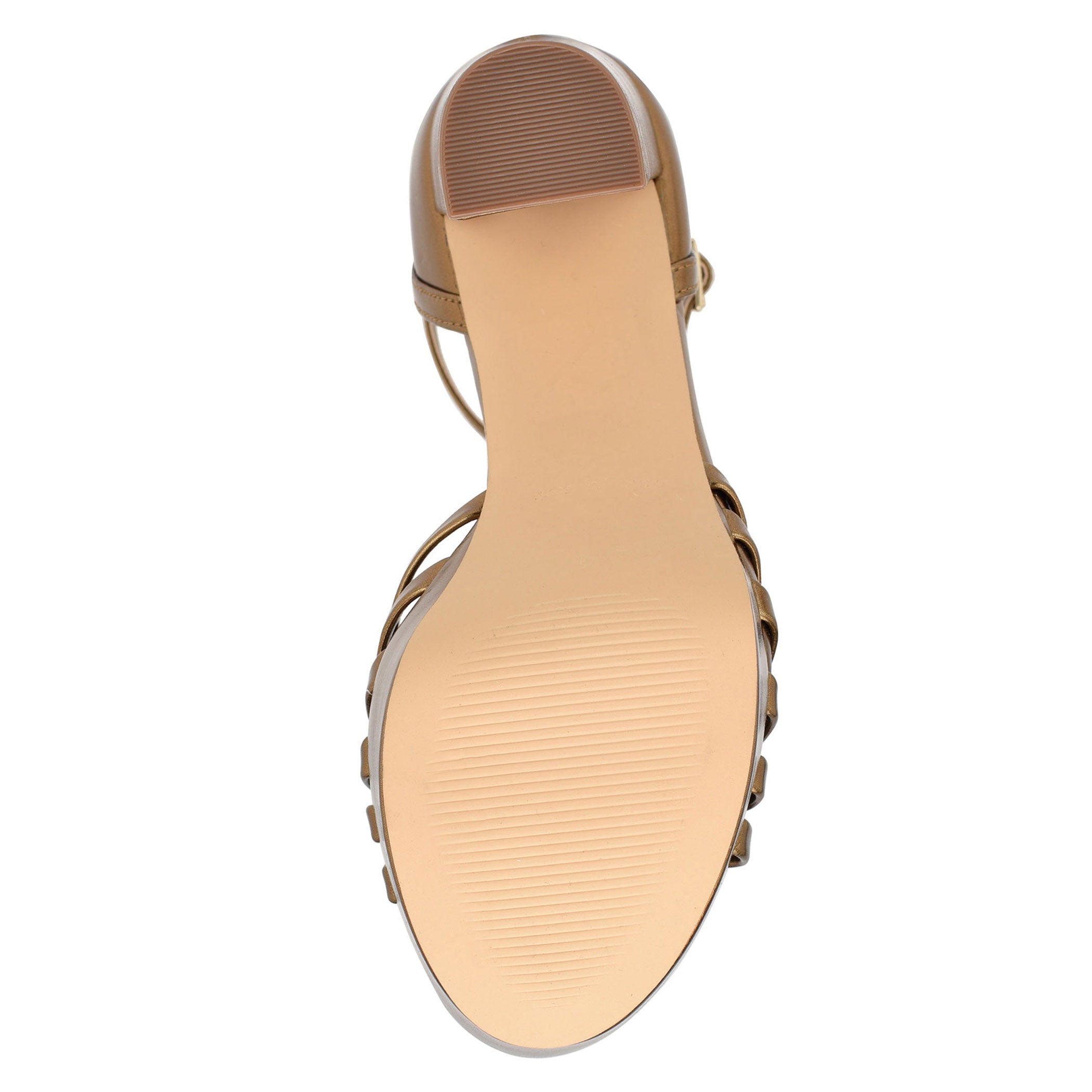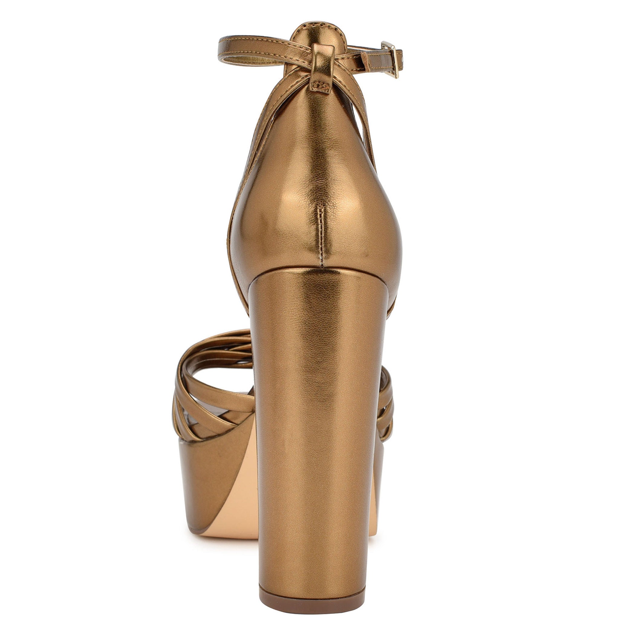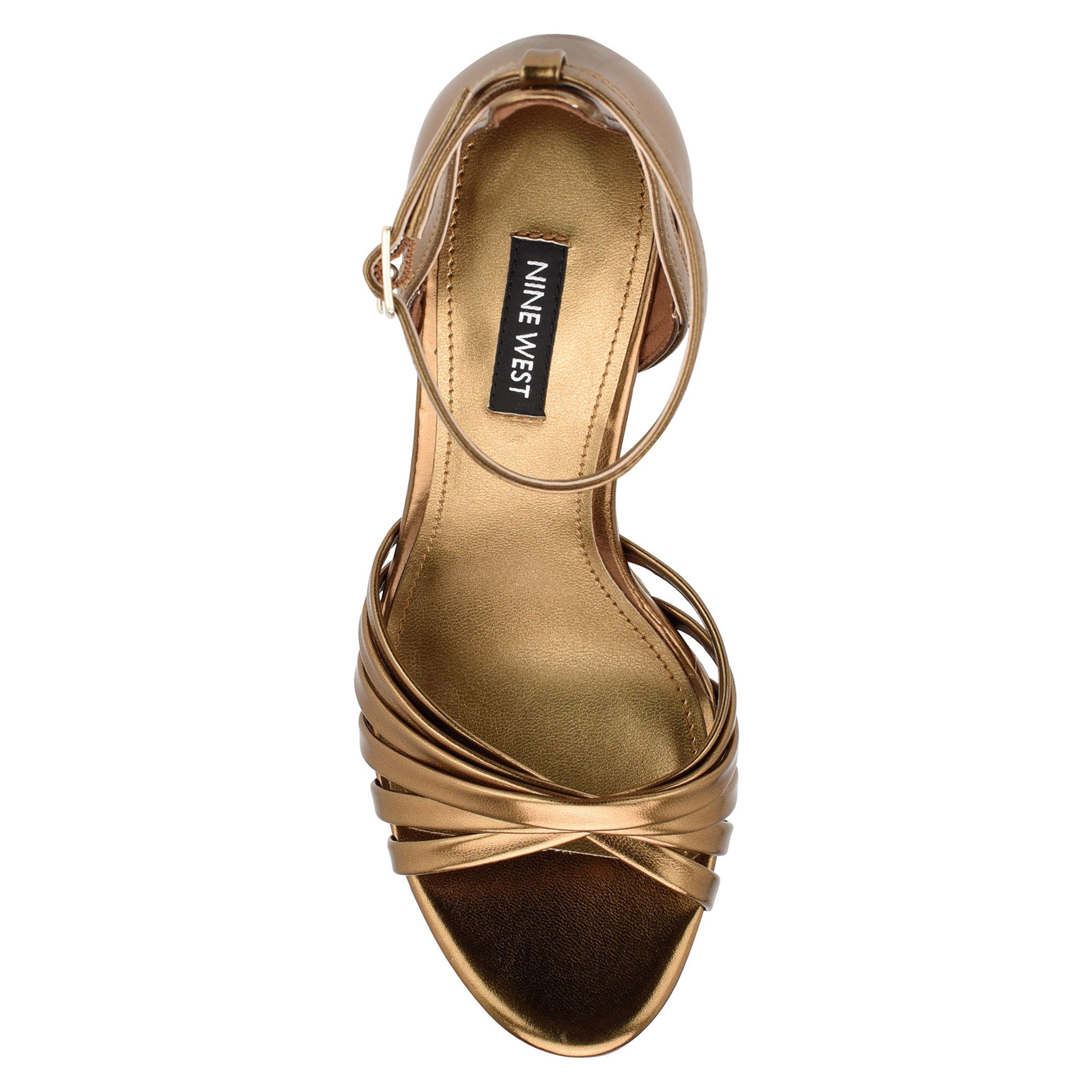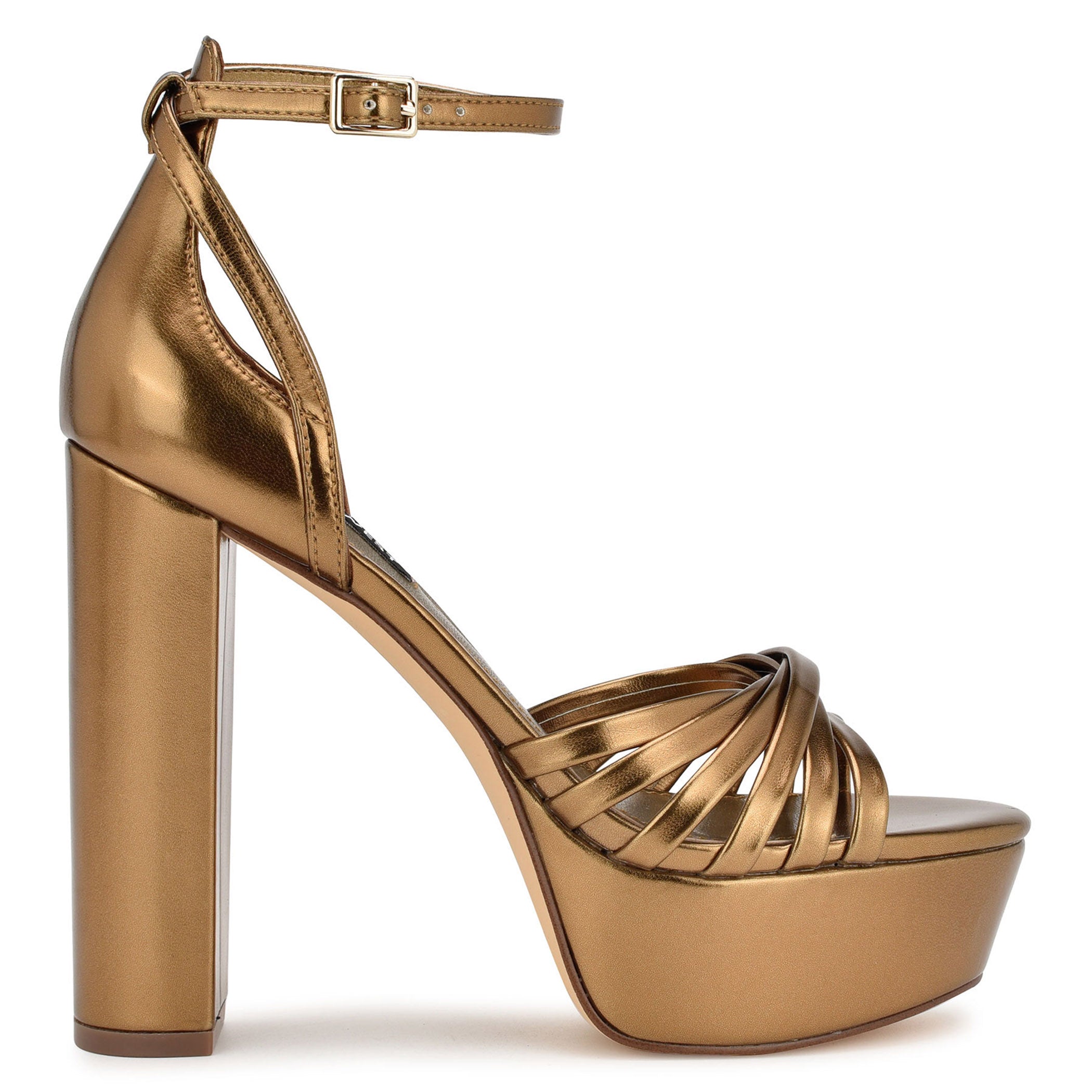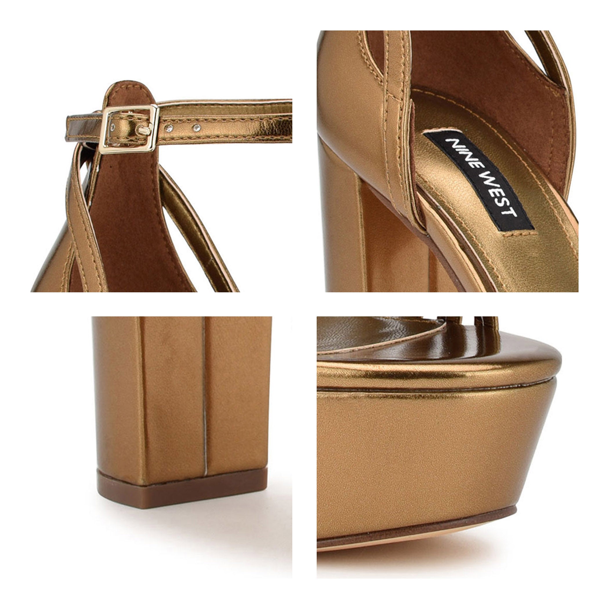 Sandalia Nine West para mujer elaborado en material sintético con pulsera en el tobillo, tipo de tacón cuadrado con cuña alta, punta cuadrada, y textura lisa.