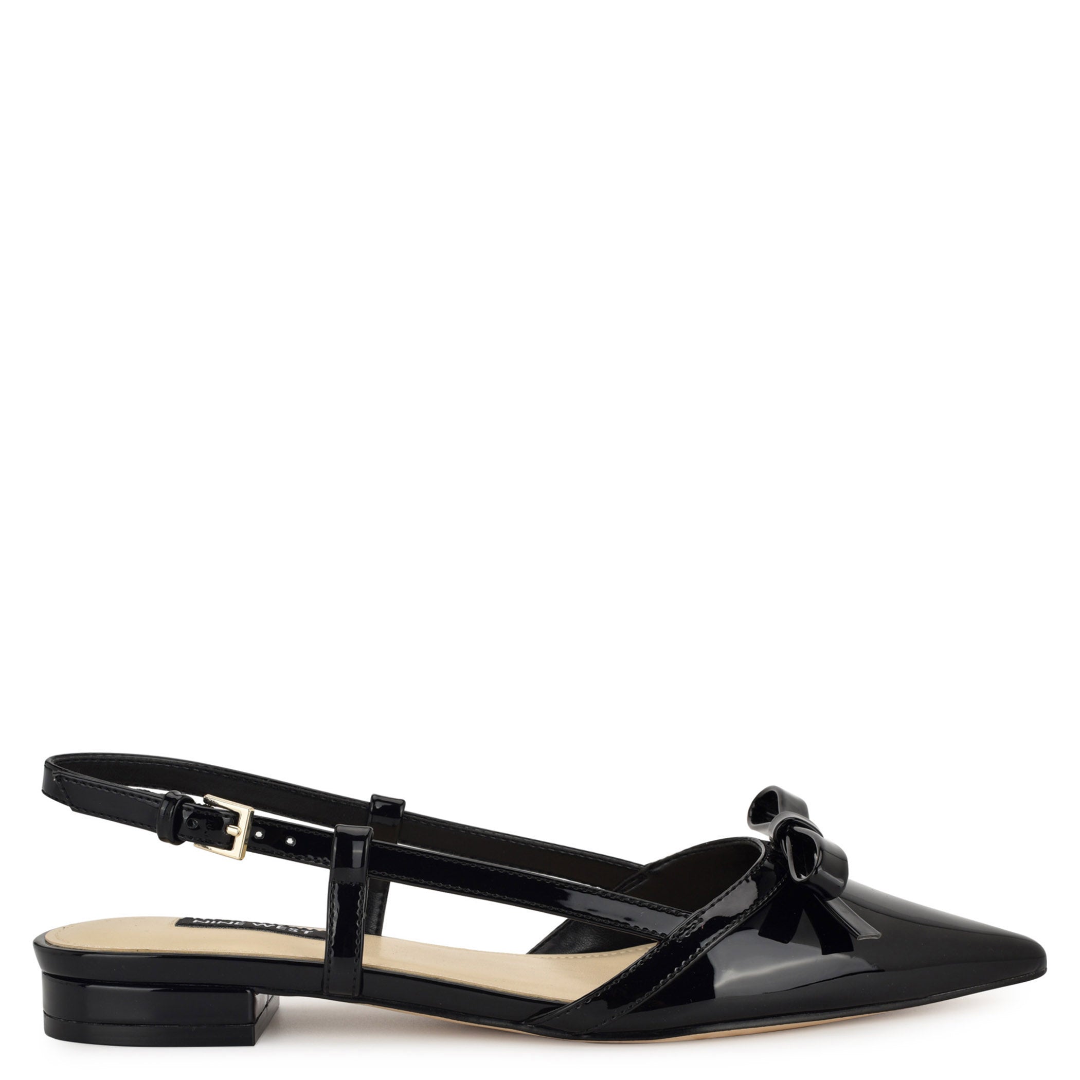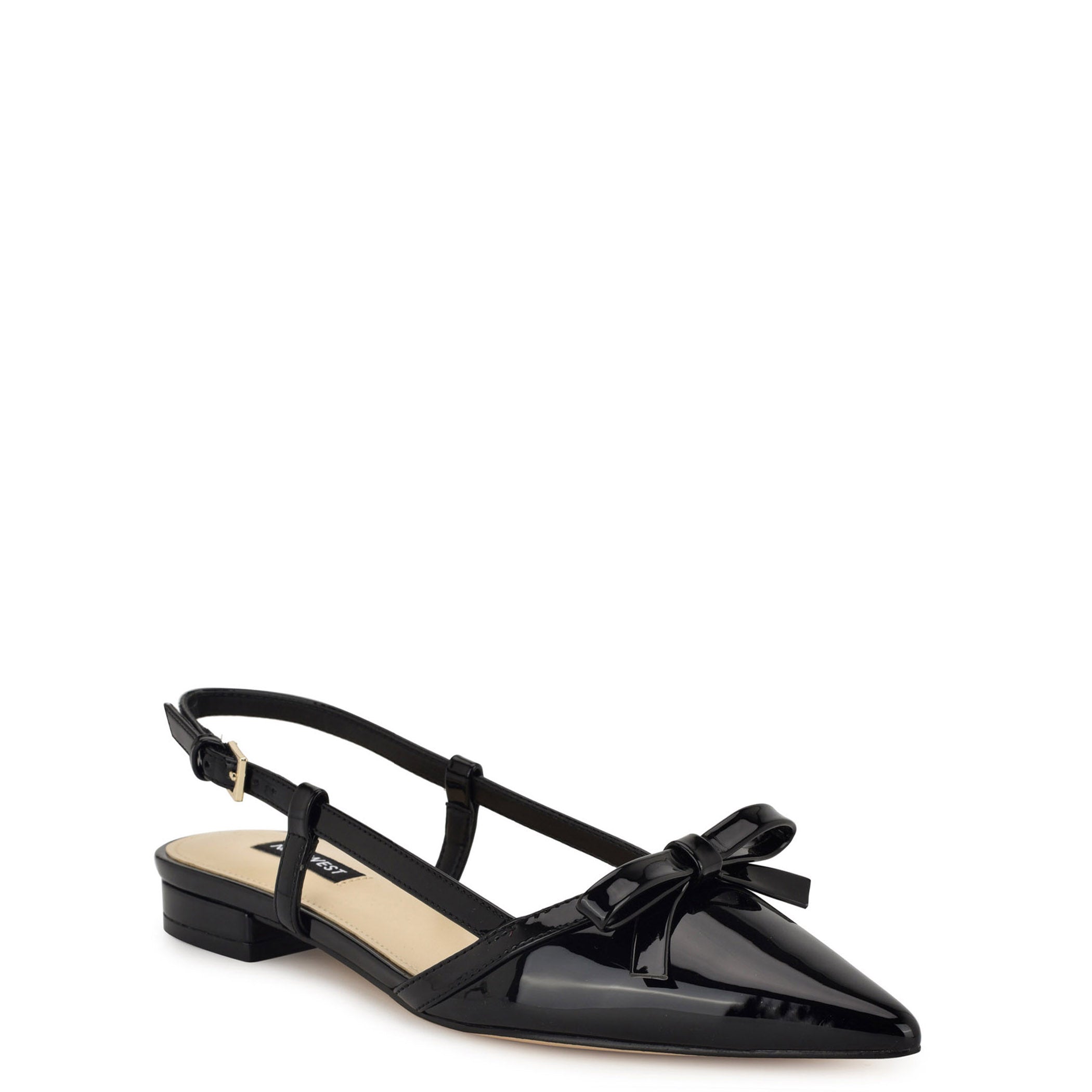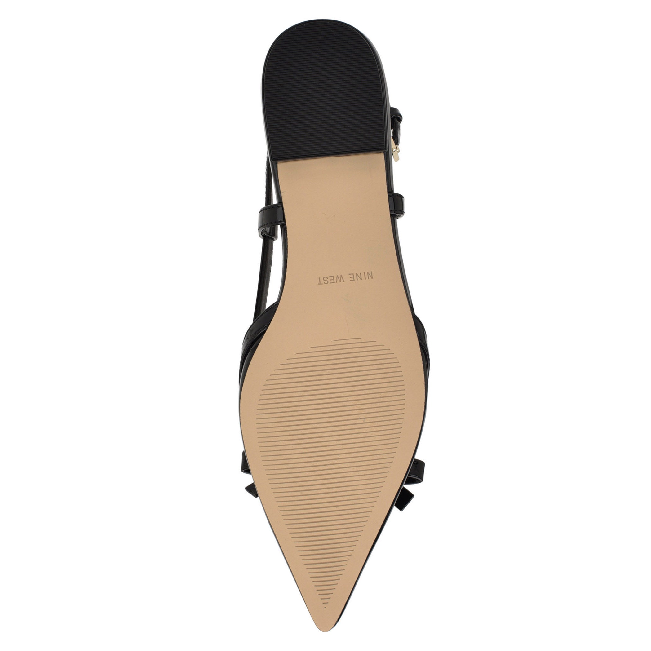 Ballerina Nine West para mujer elaborada en material sintético con aplicación de moño, estampado liso, fijación de hebilla, punta puntal y textura lisa.
