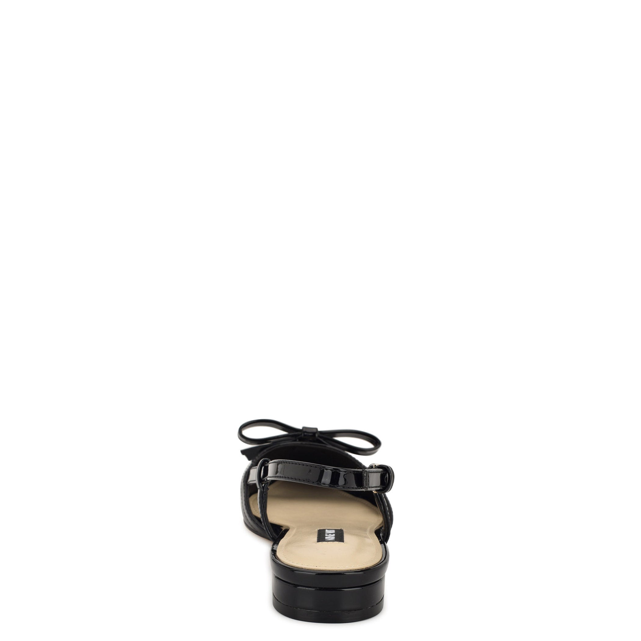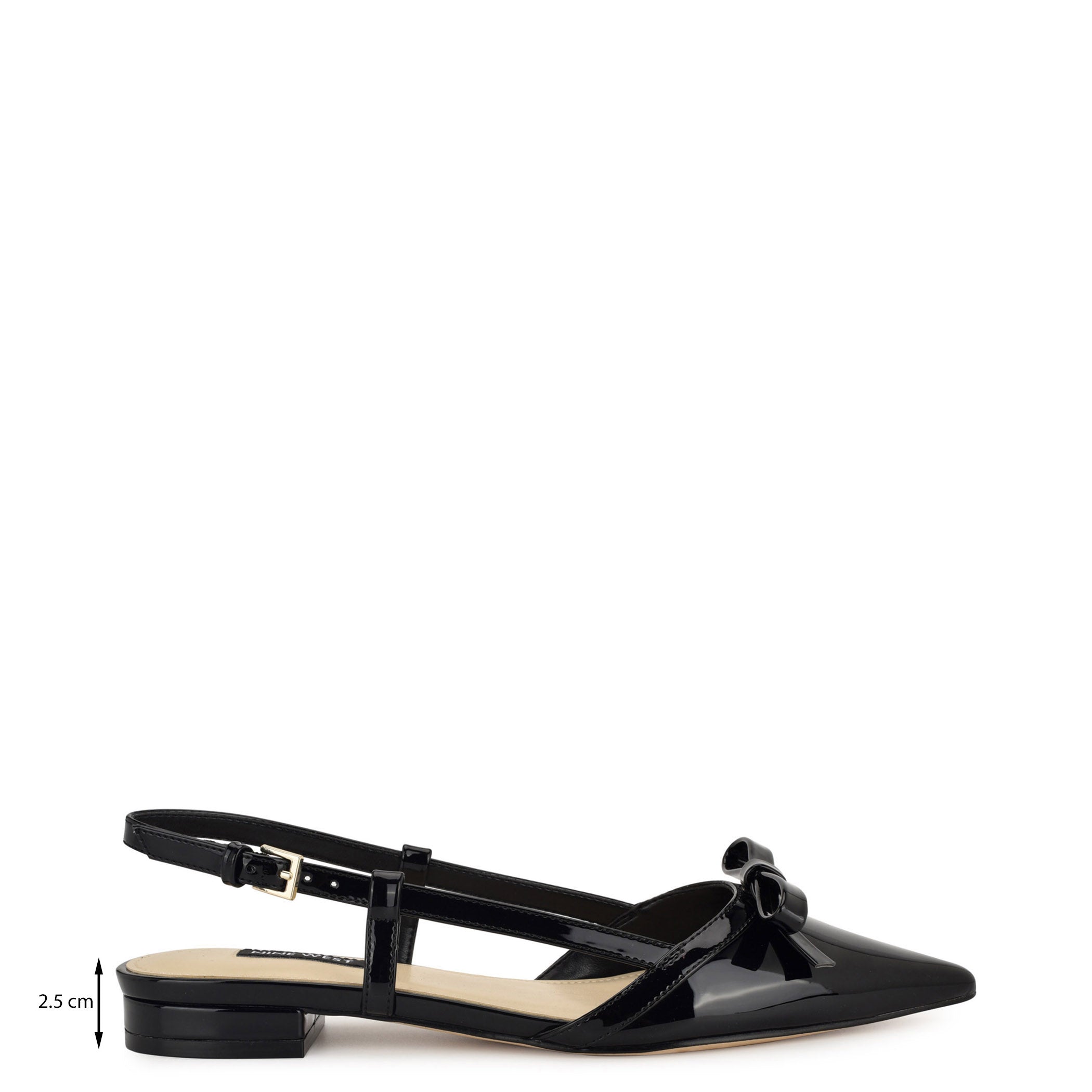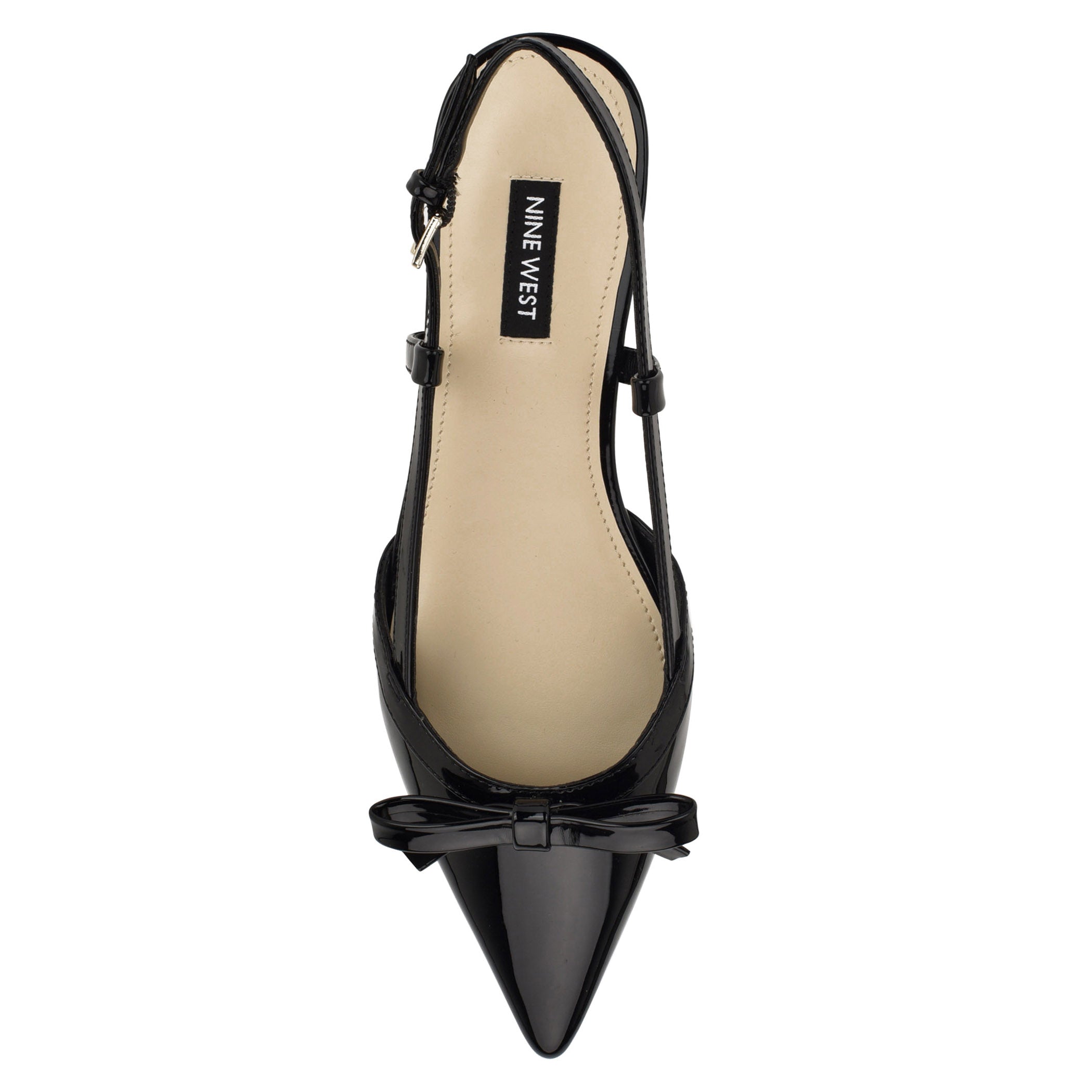 Ballerina Nine West para mujer elaborada en material sintético con aplicación de moño, estampado liso, fijación de hebilla, punta puntal y textura lisa.
