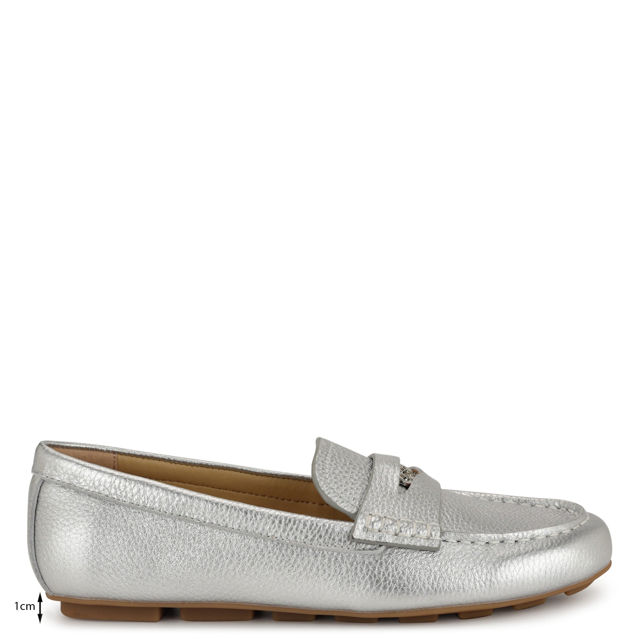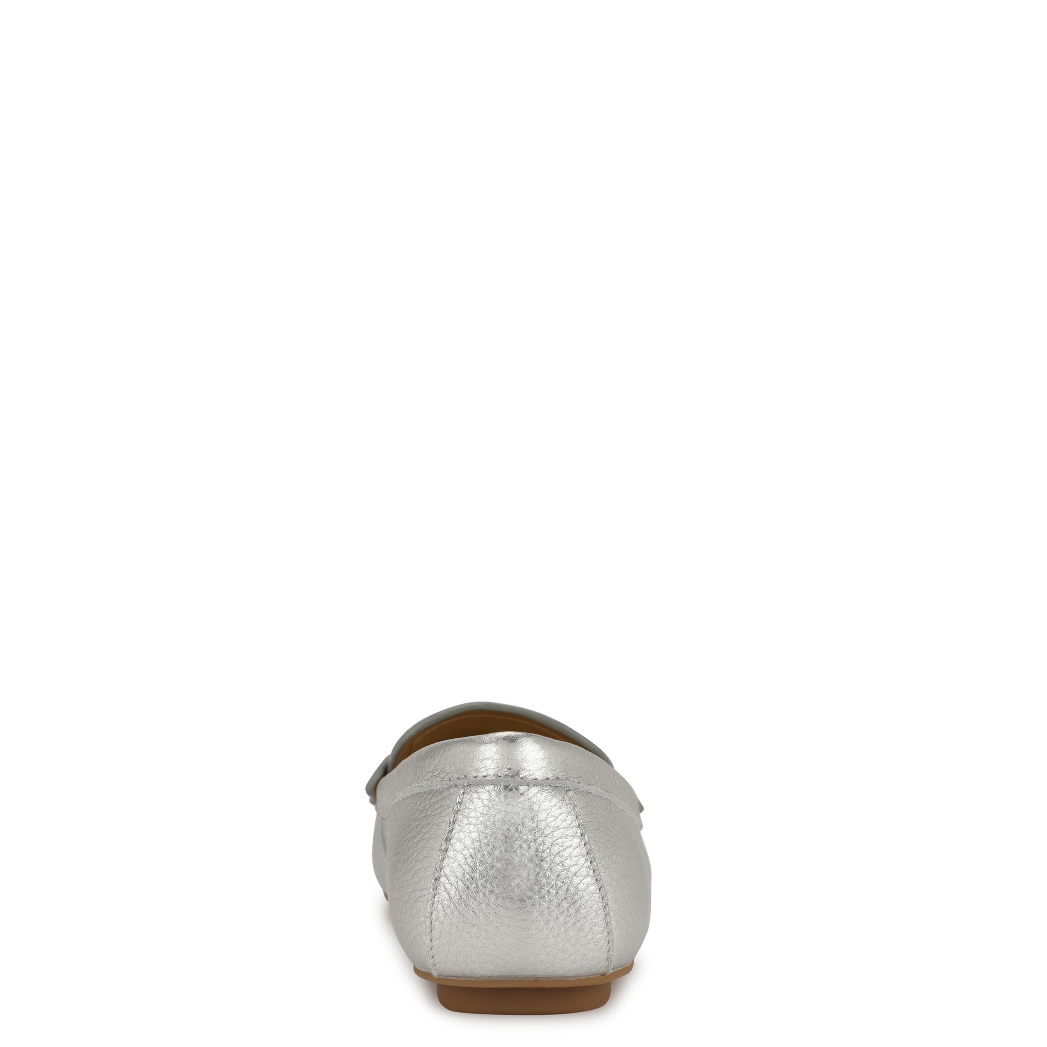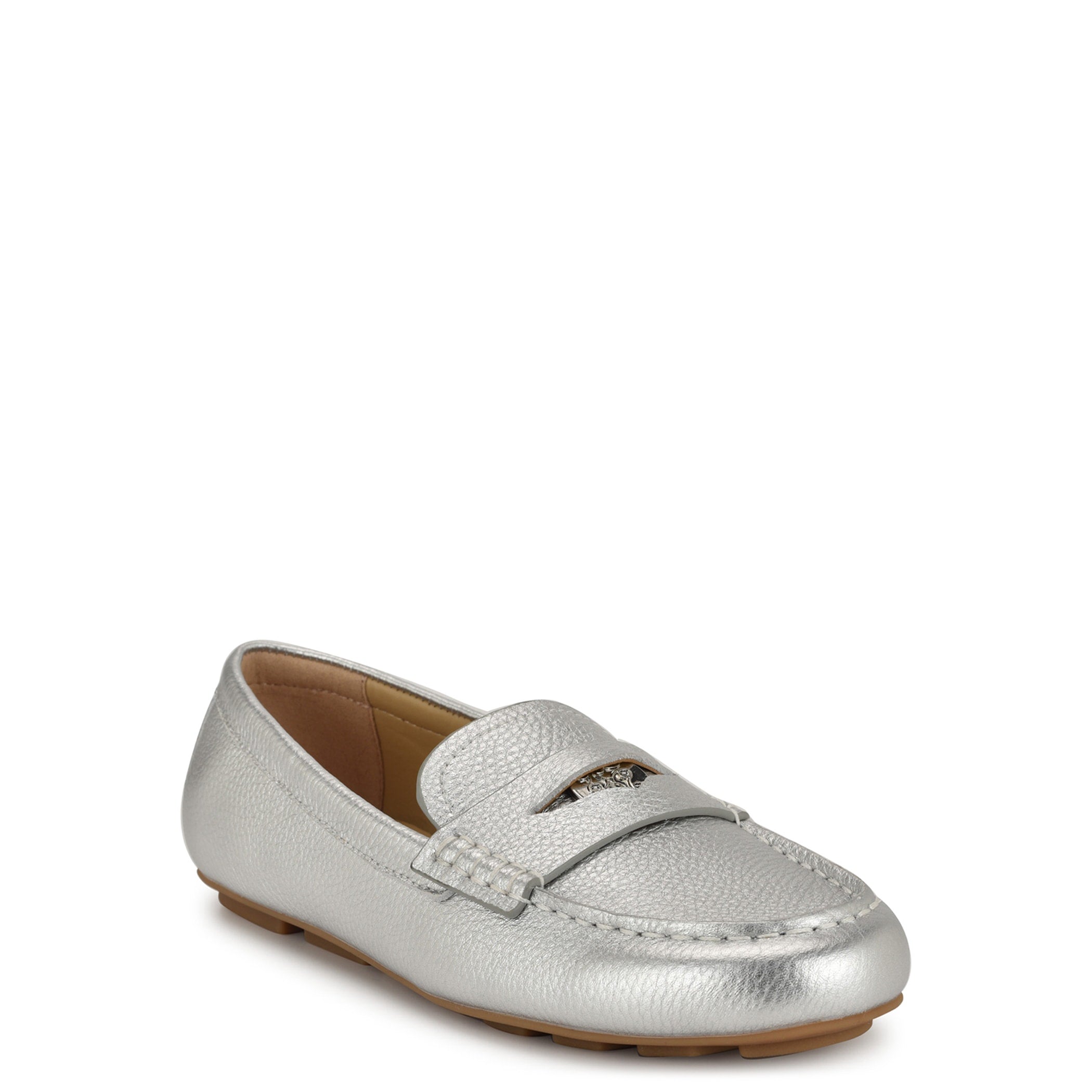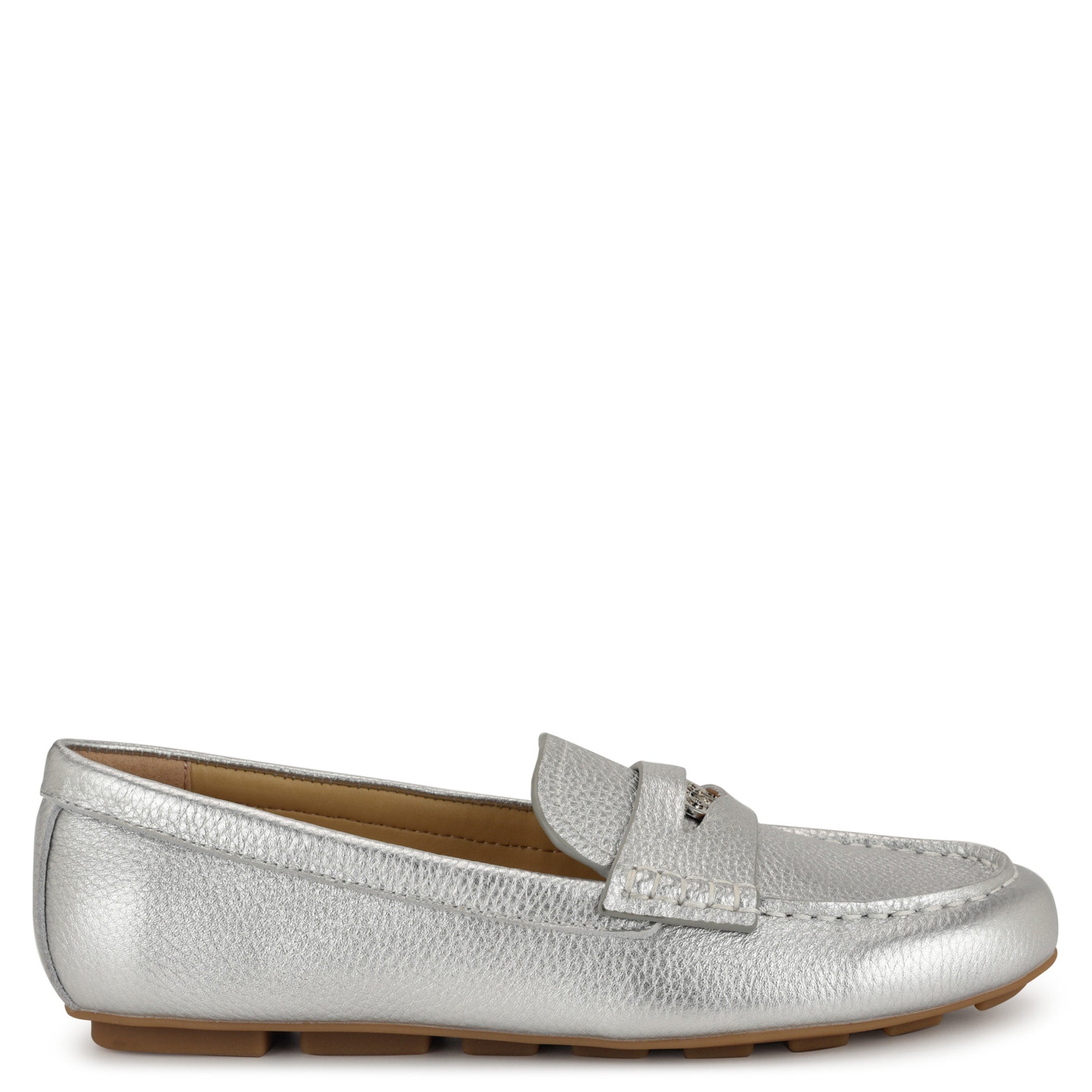 Zapato tipo mocasín Nine West para mujer elaborado en material de piel con estampado liso, fijación abierta, punta redonda y textura lisa.