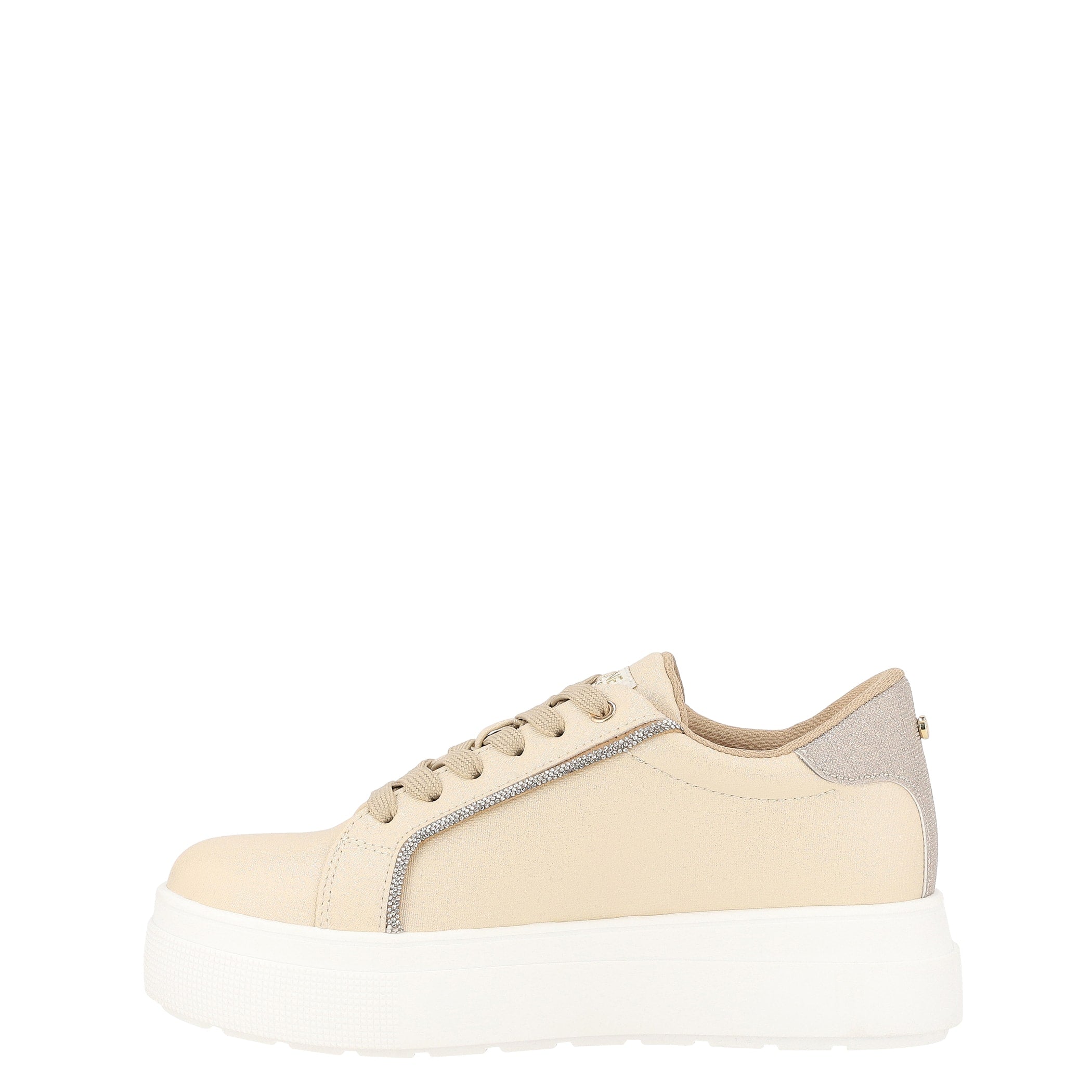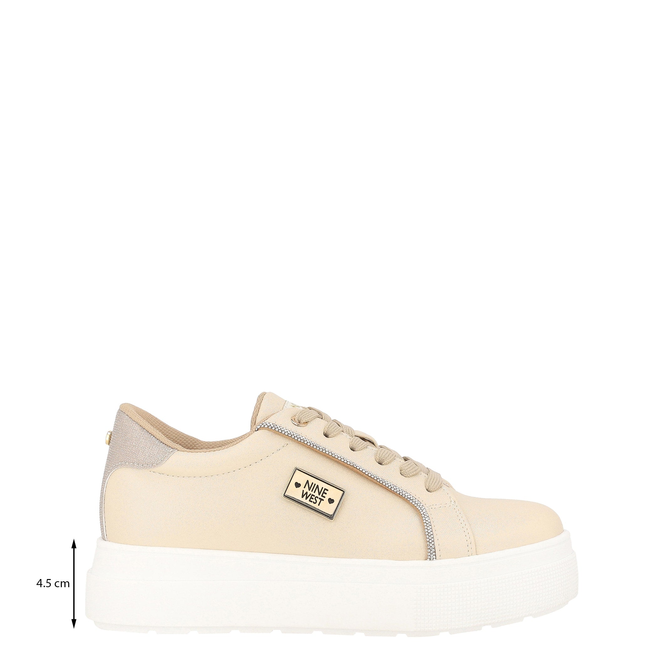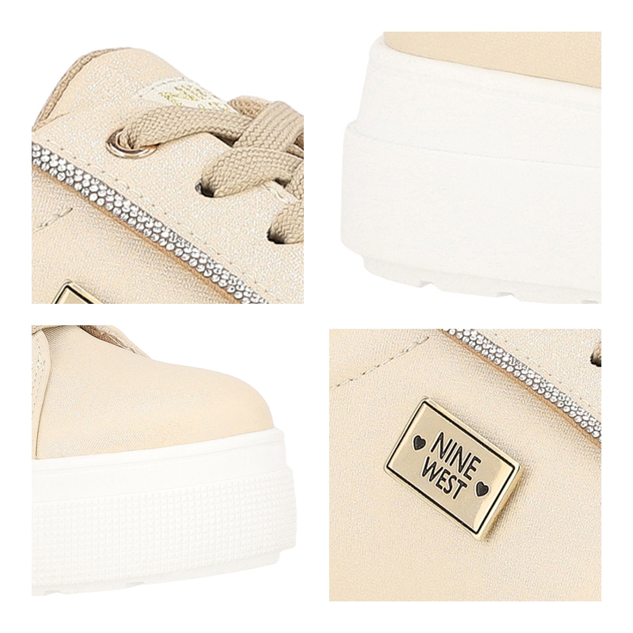 Tenis Nine West para niñas elaborado en material sintético con aplicación lisa, estampado liso, fijación de agujeta, punta redonda, textura lisa, forro textil, suela de inyección y cuña flat.