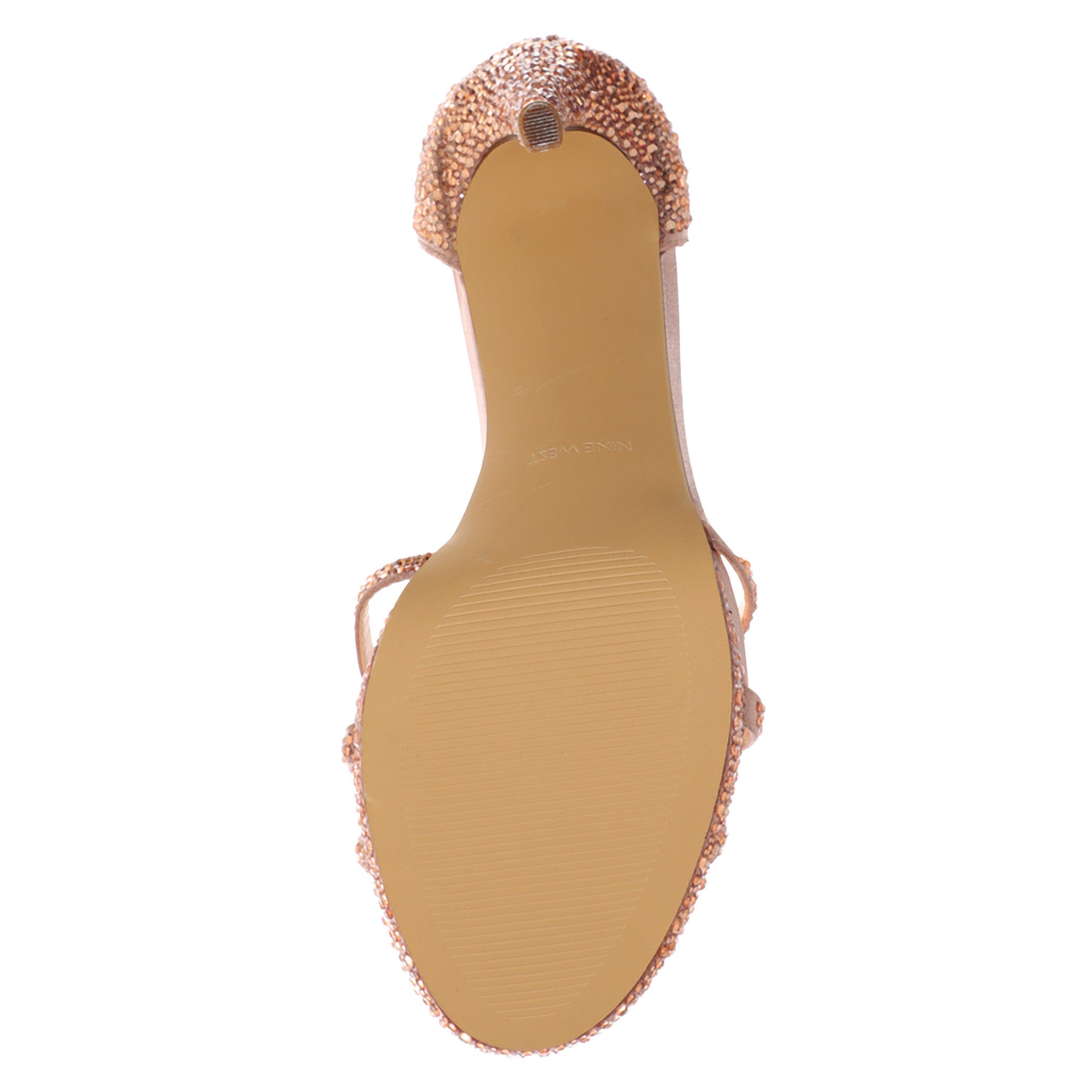 Sandalia Nine West para mujer elaborada en material satin con estampado liso, fijación de pulsera, punta redonda y textura lisa.
