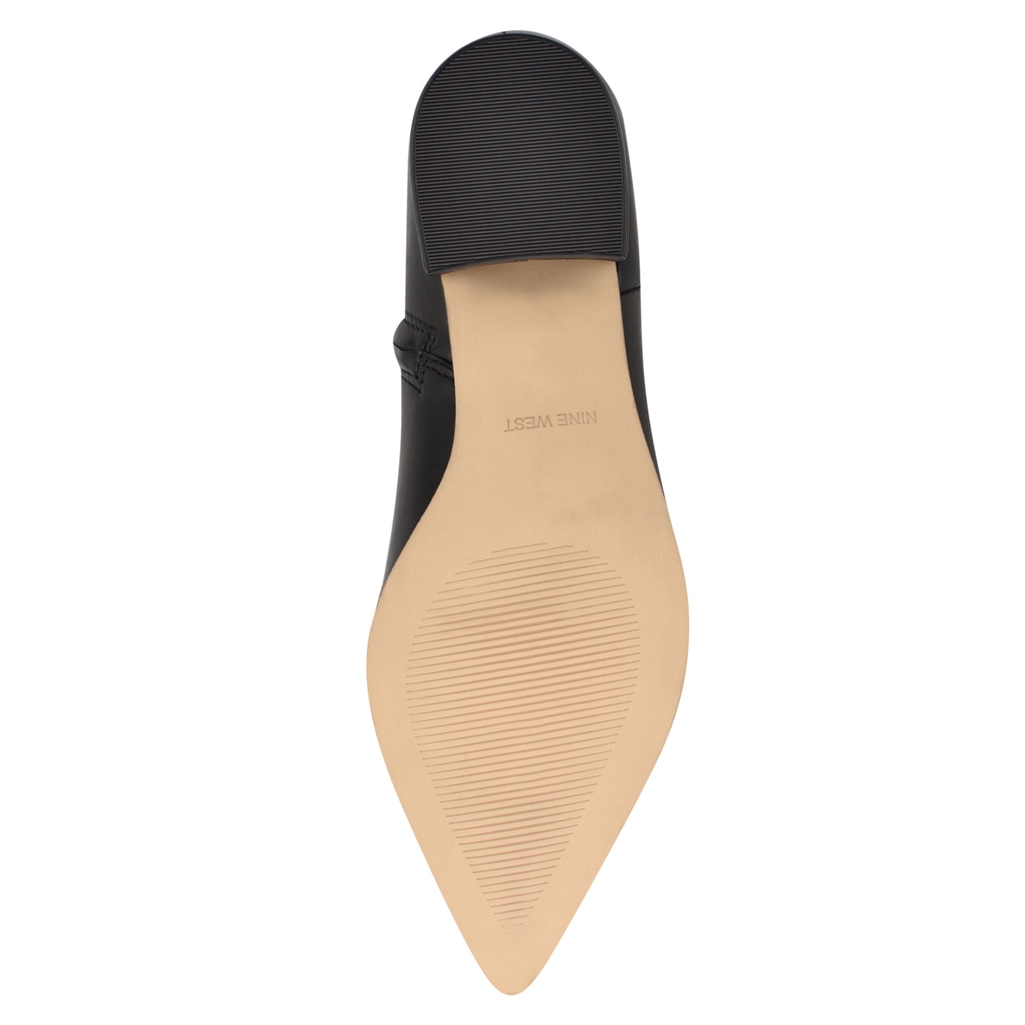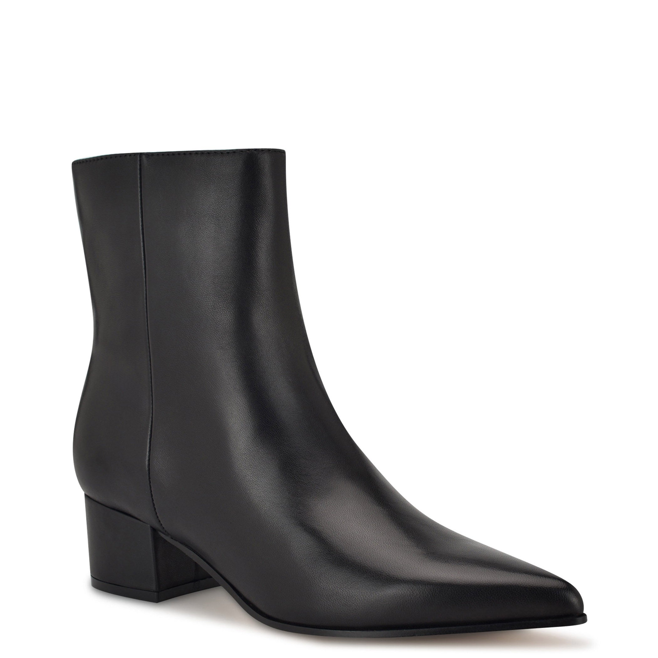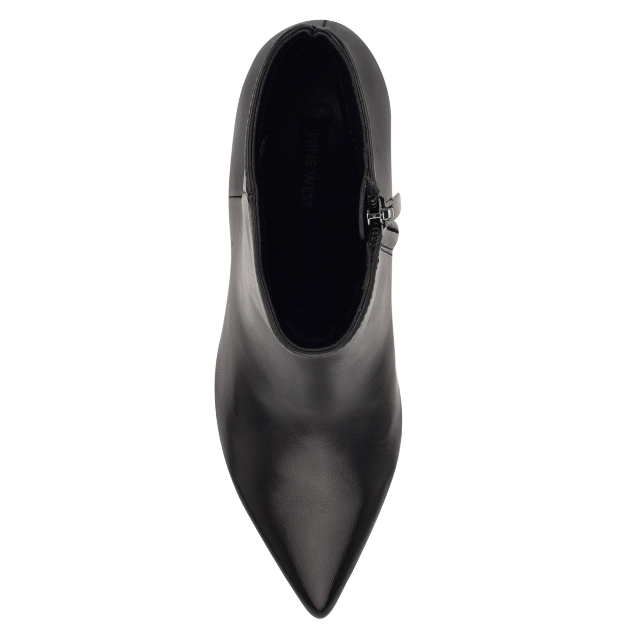 Botín Nine West para mujer elaborado en material de piel con estampado liso, cuña baja, fijación de cierre, punta puntal y textura lisa.