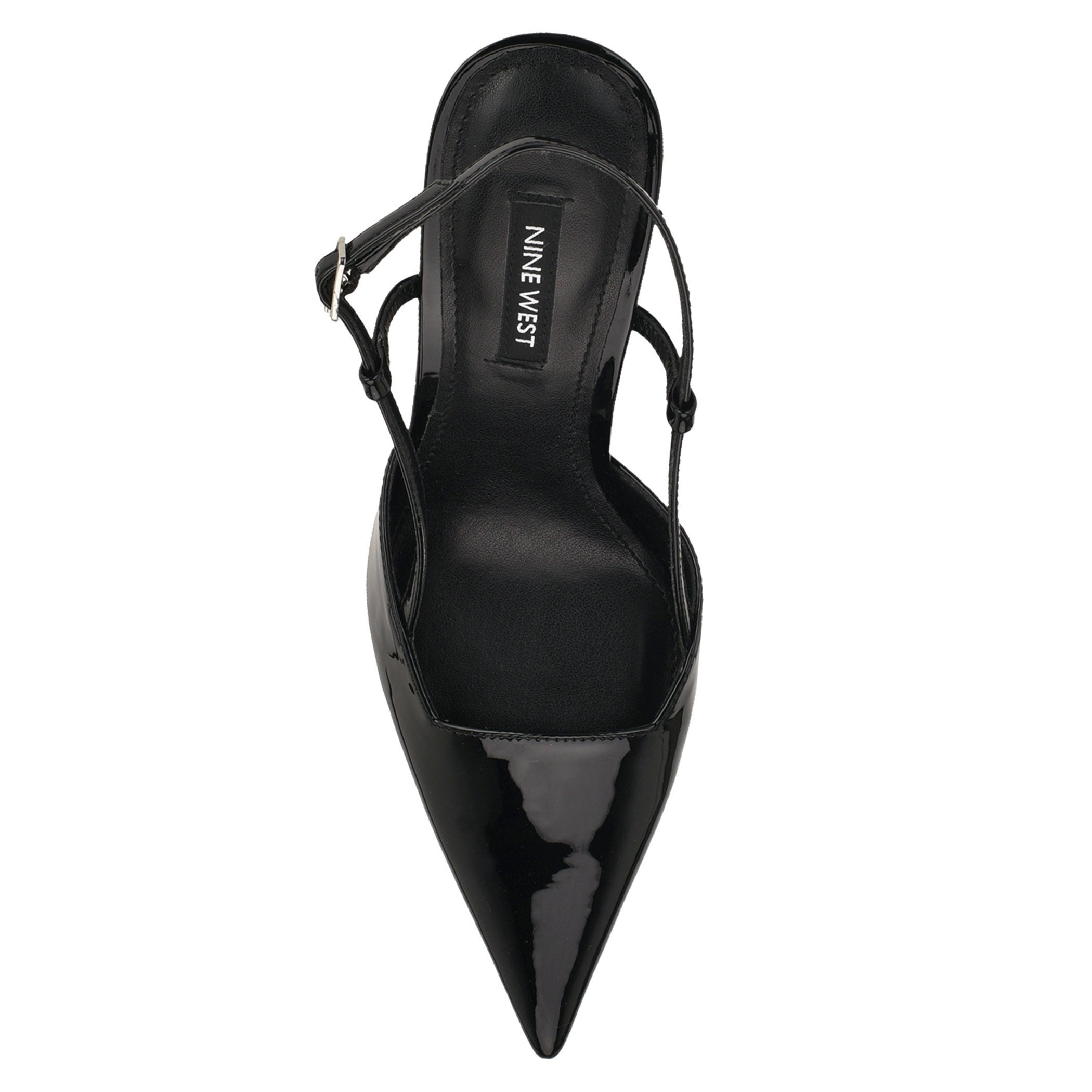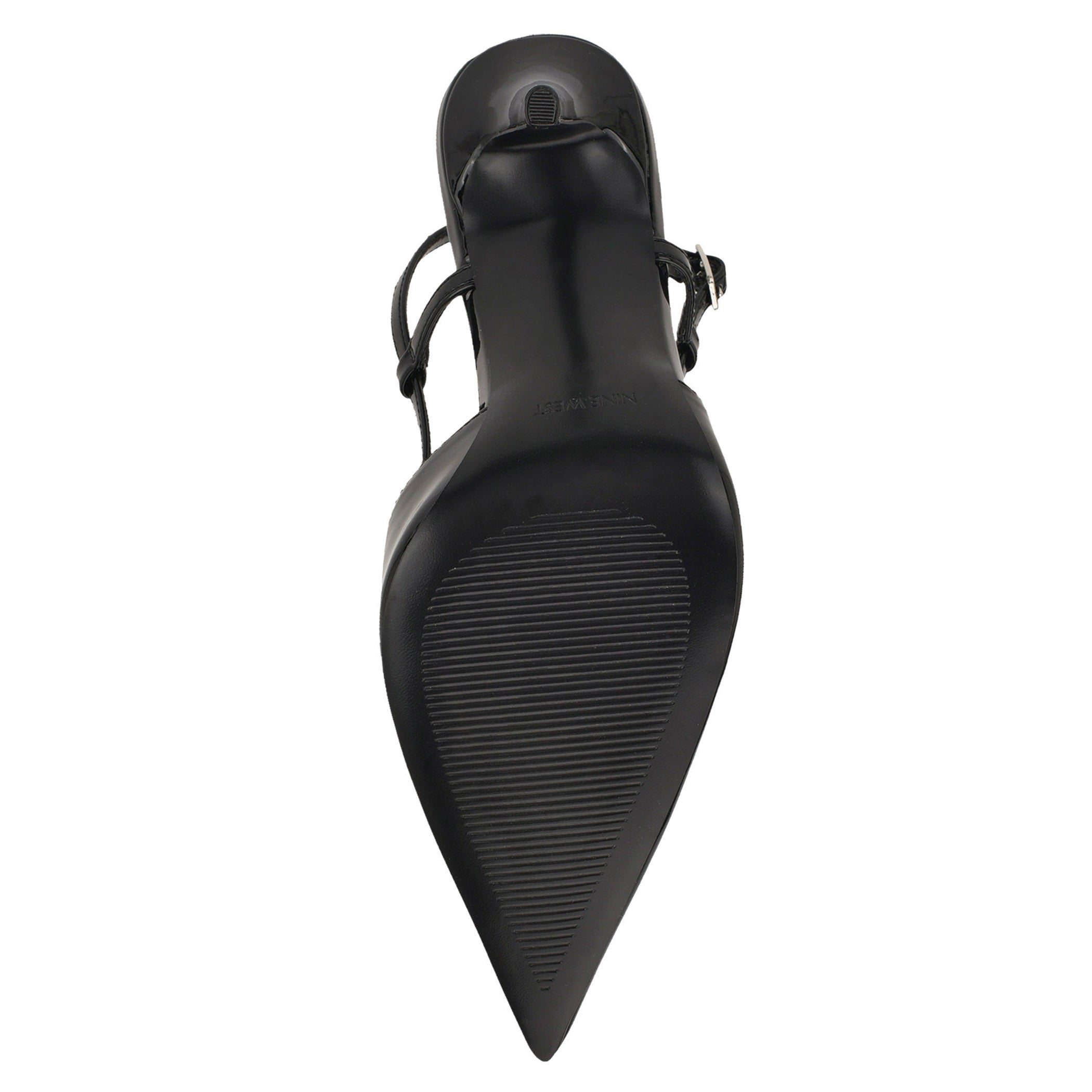 Zapatilla Nine West para mujer elaborada en material sintético con estampado liso, fijación de hebilla, punta puntal y textura lisa.