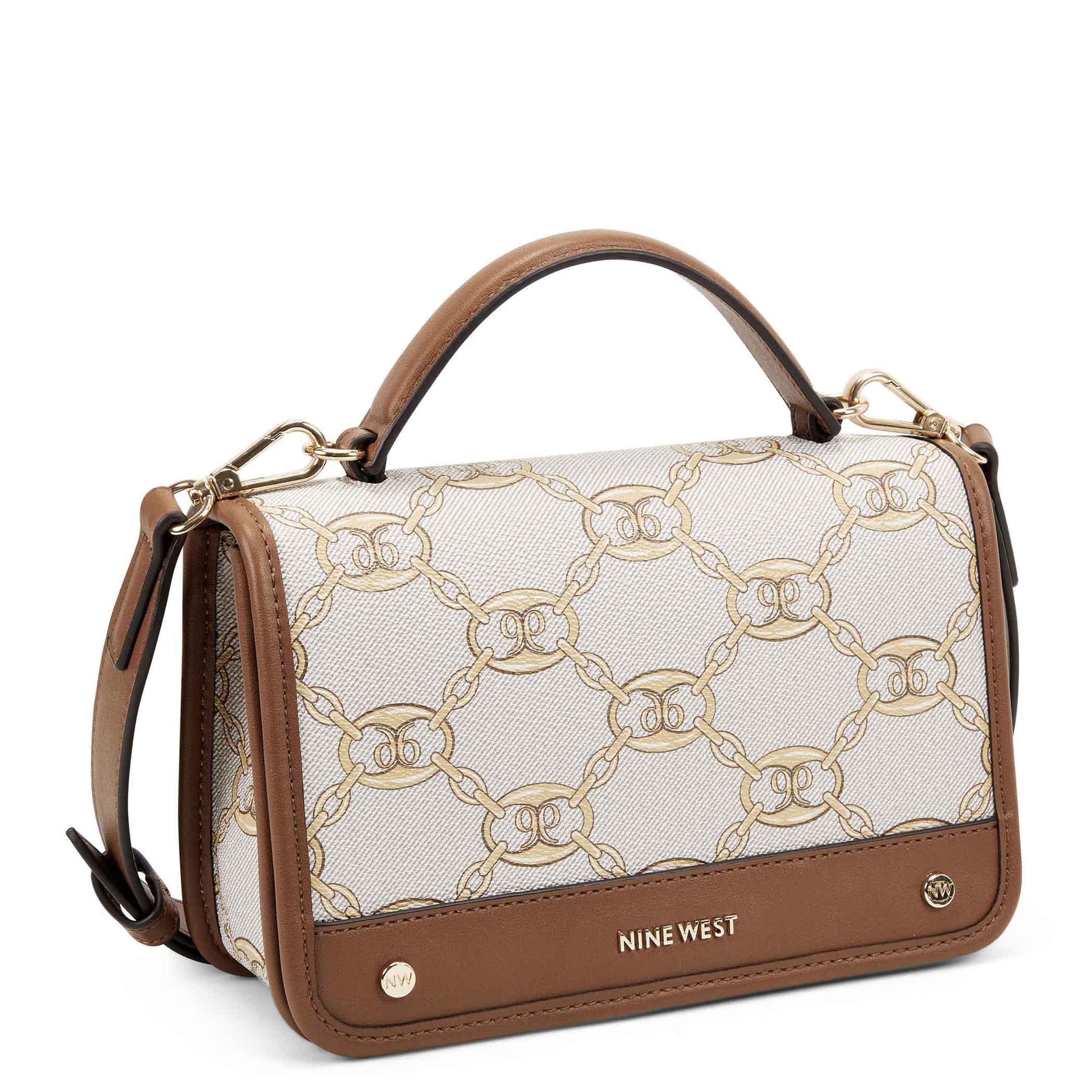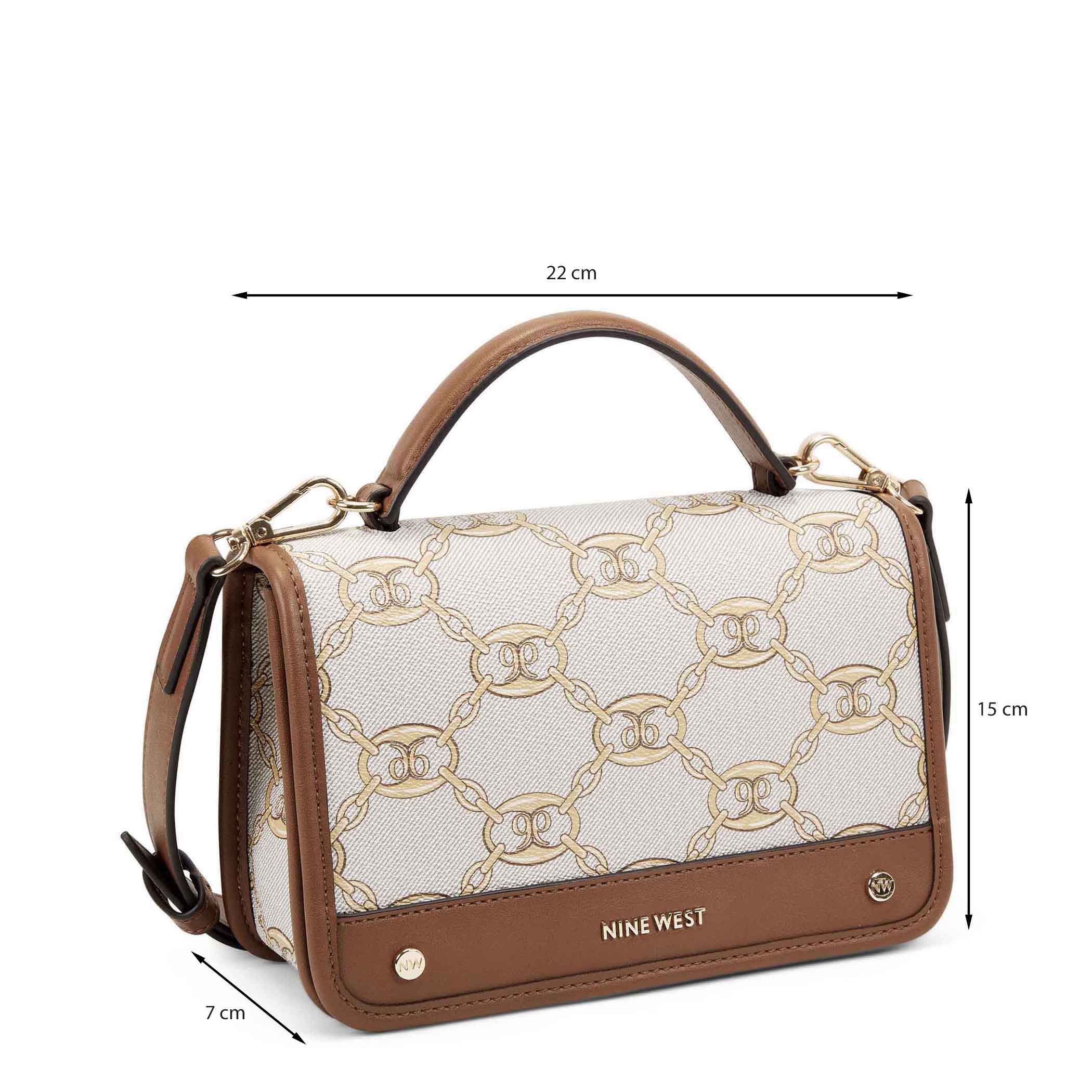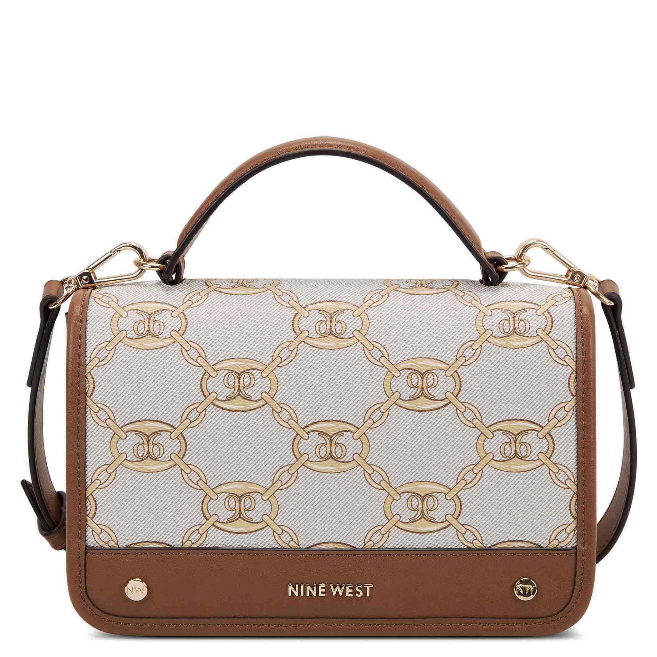 Bolsa crossbody Nine West para mujer elaborado en material sintético con aplicación logotipo, estampado de logotipo, fijación de imán y textura lisa.