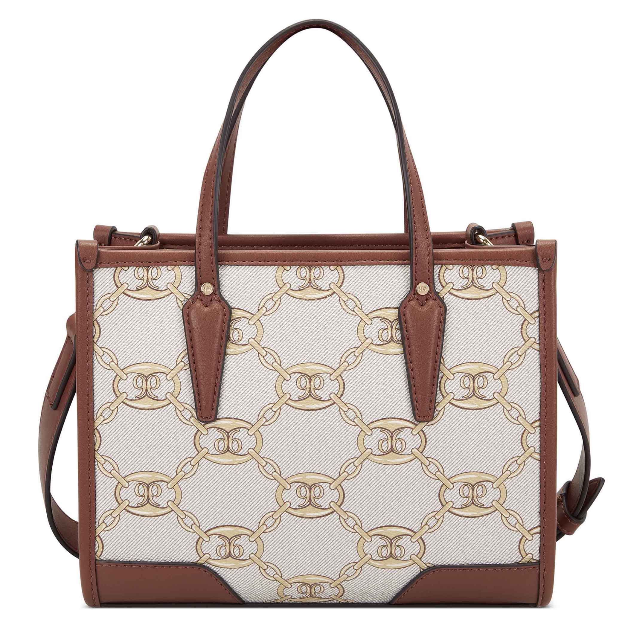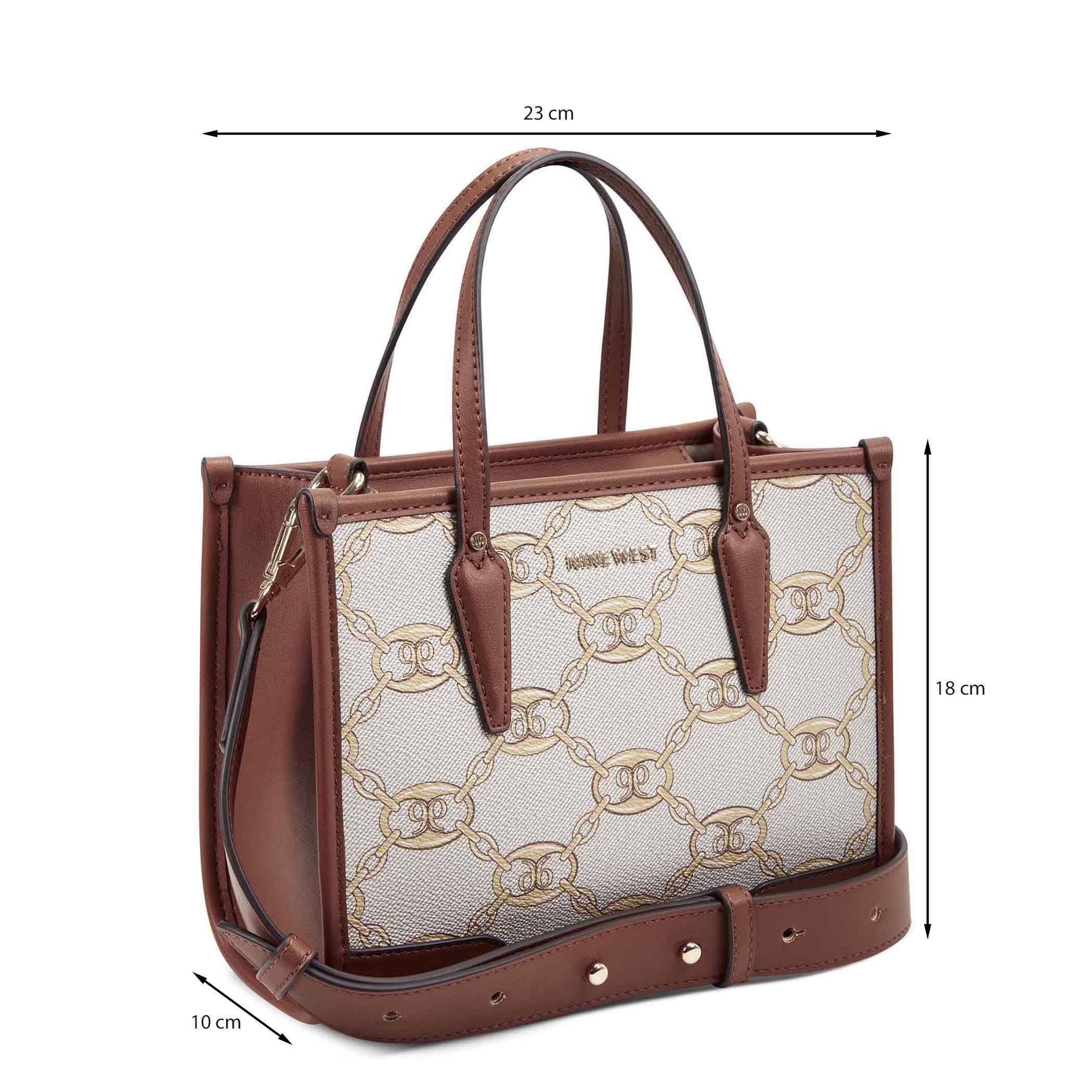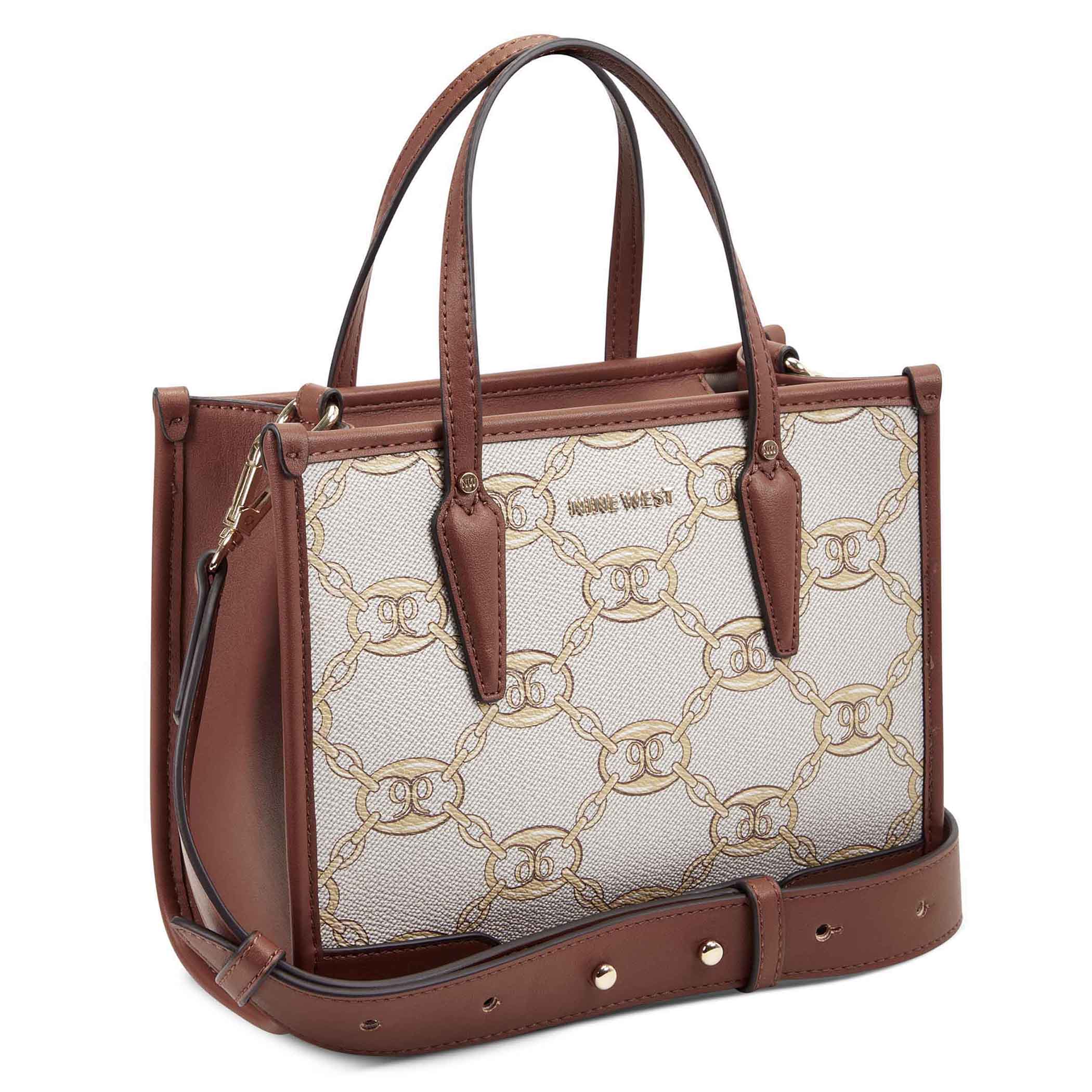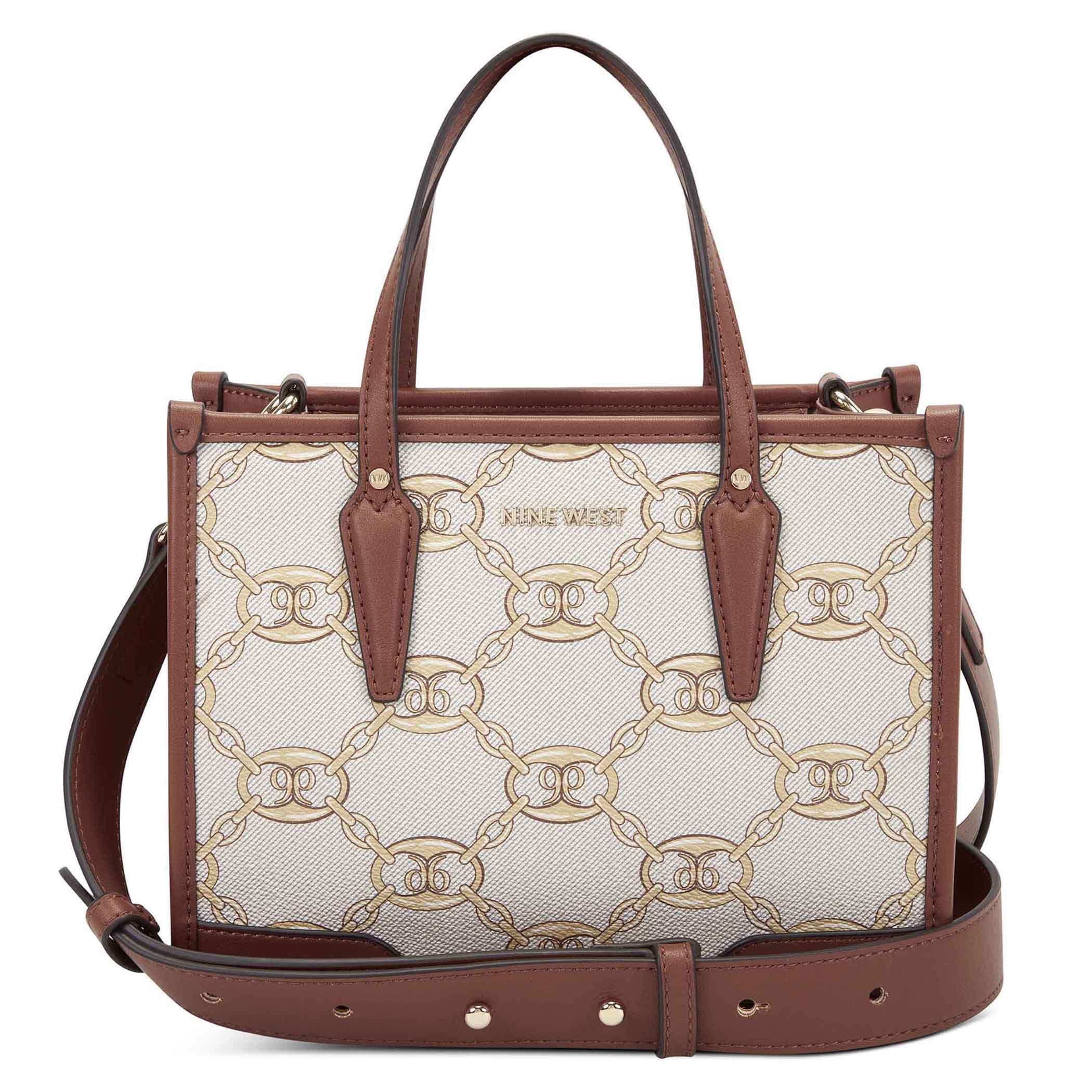 Bolsa tote Nine West para mujer elaborado en material sintético con aplicación de logotipo, estampado de logotipo, fijación de cierre y textura lisa.