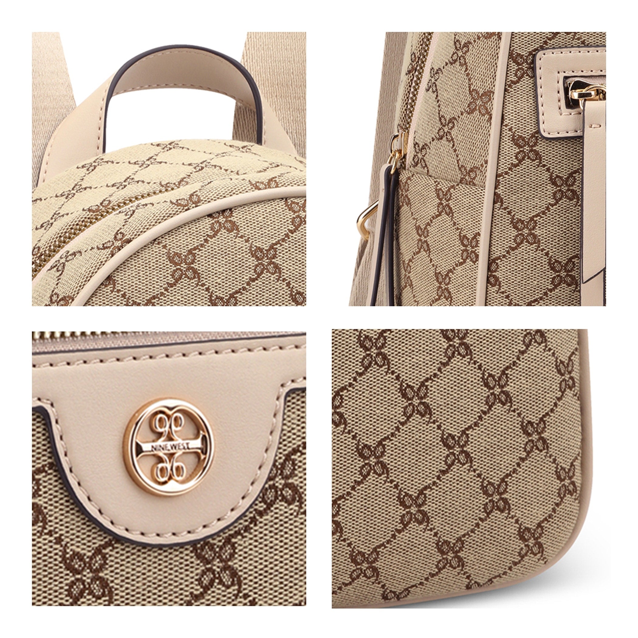 Mochila Nine West para mujer elaborada en material sintético con estampado gráfico, fijación de cierre y textura lisa.