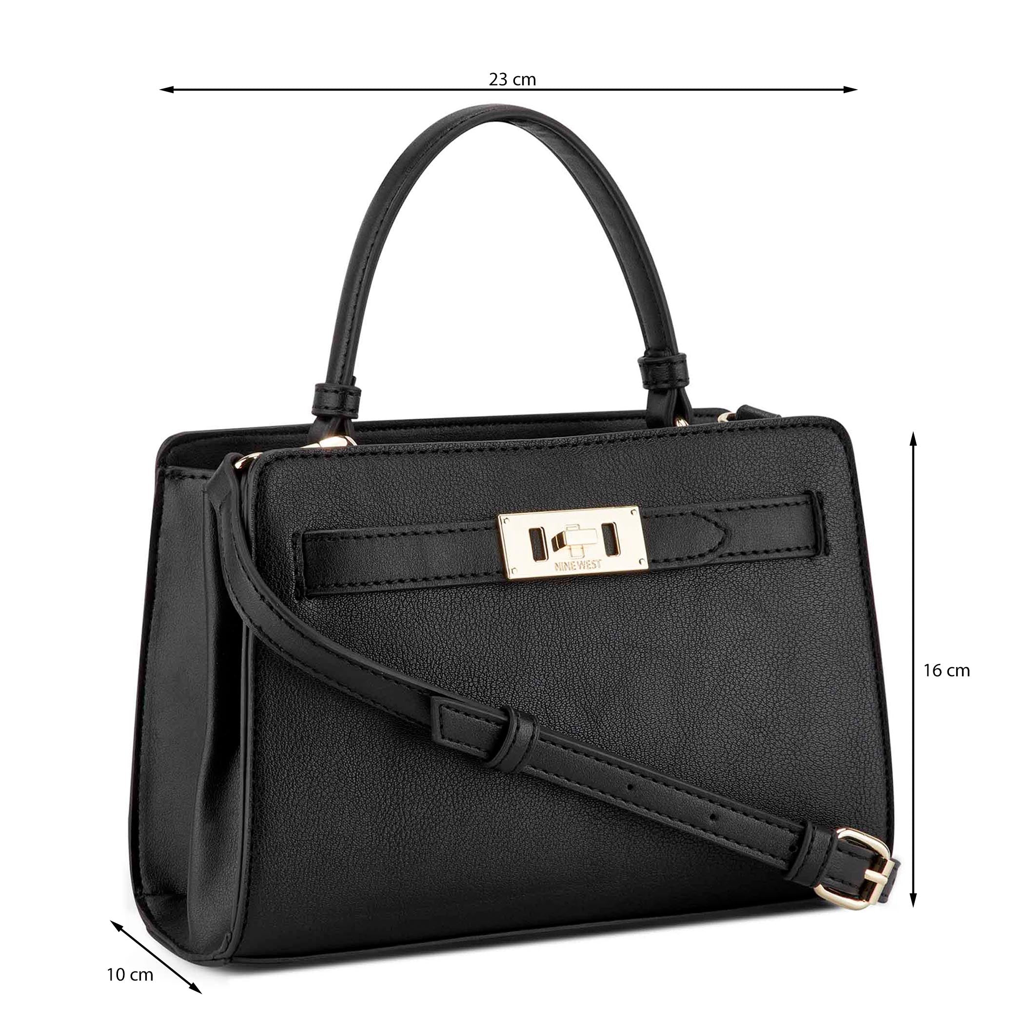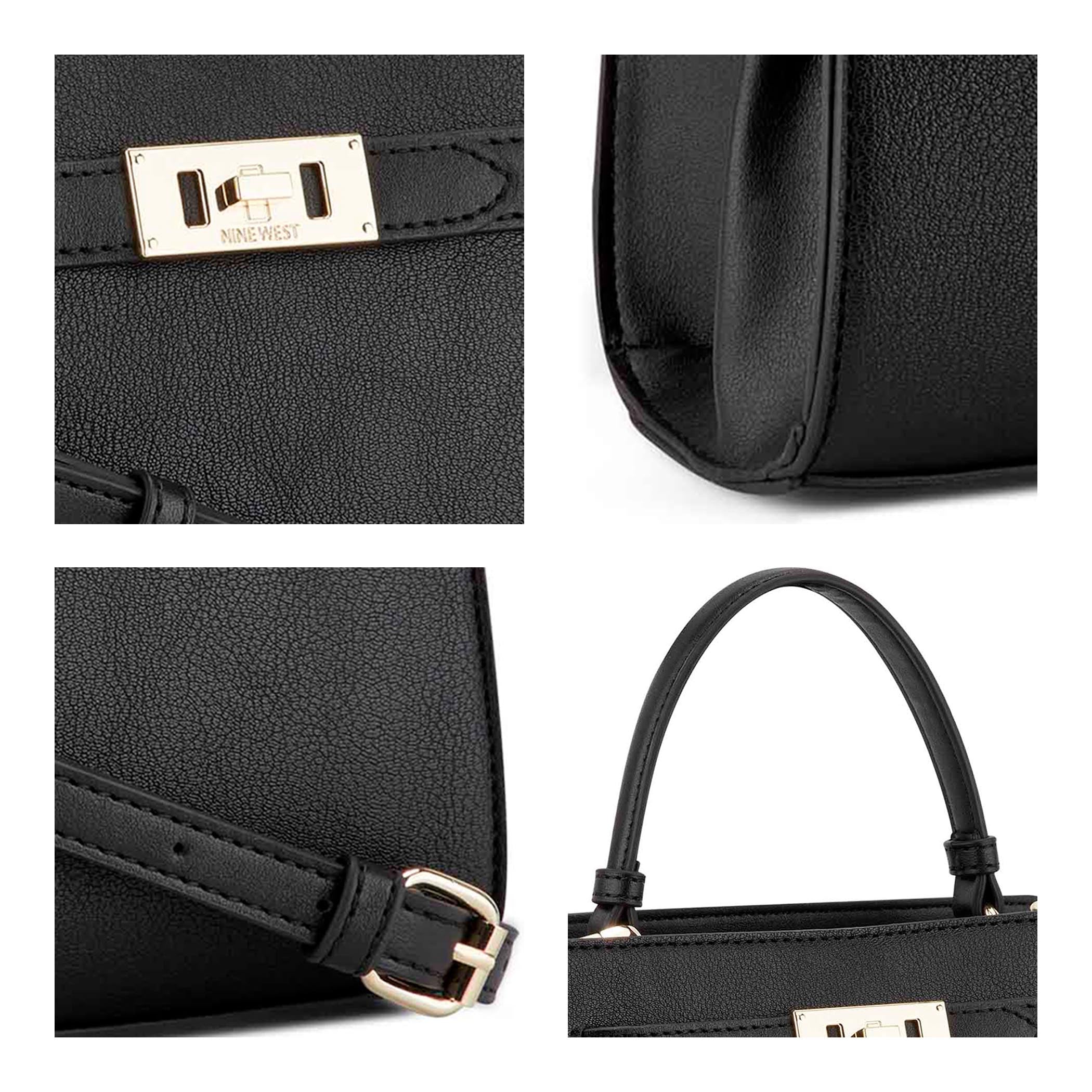 Bolsa de mano Nine West para mujer elaborado en material sintético con aplicación de hebilla, estampado logotipo NW, fijación de cierre, forro textil y textura lisa.