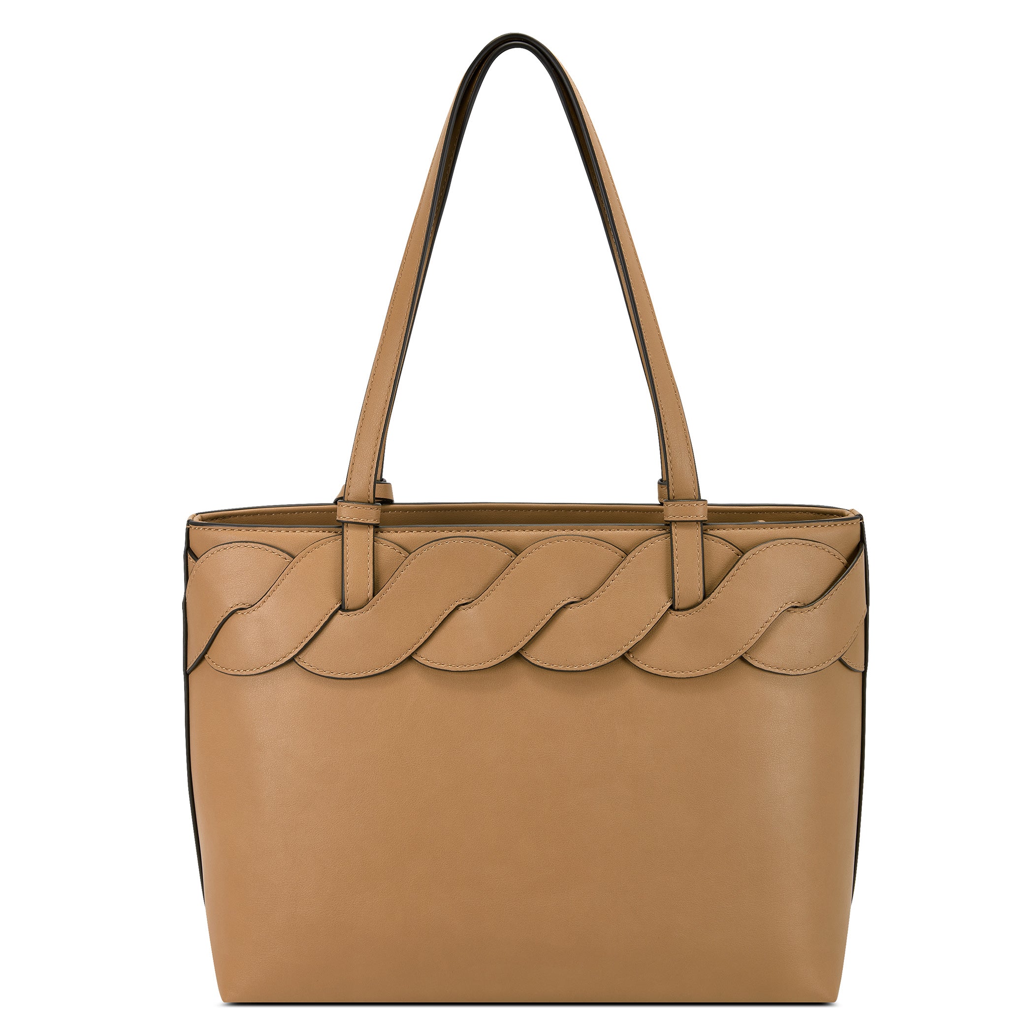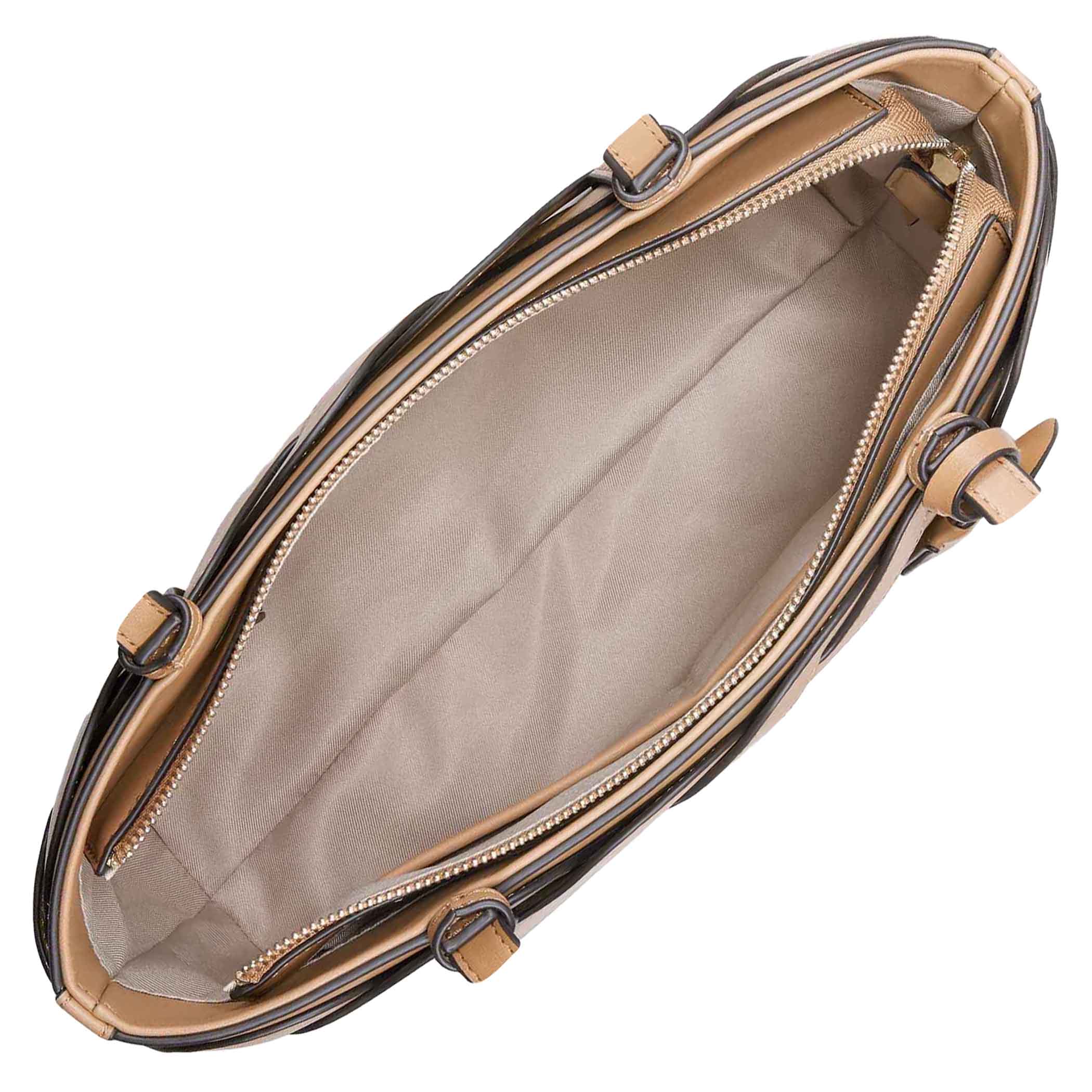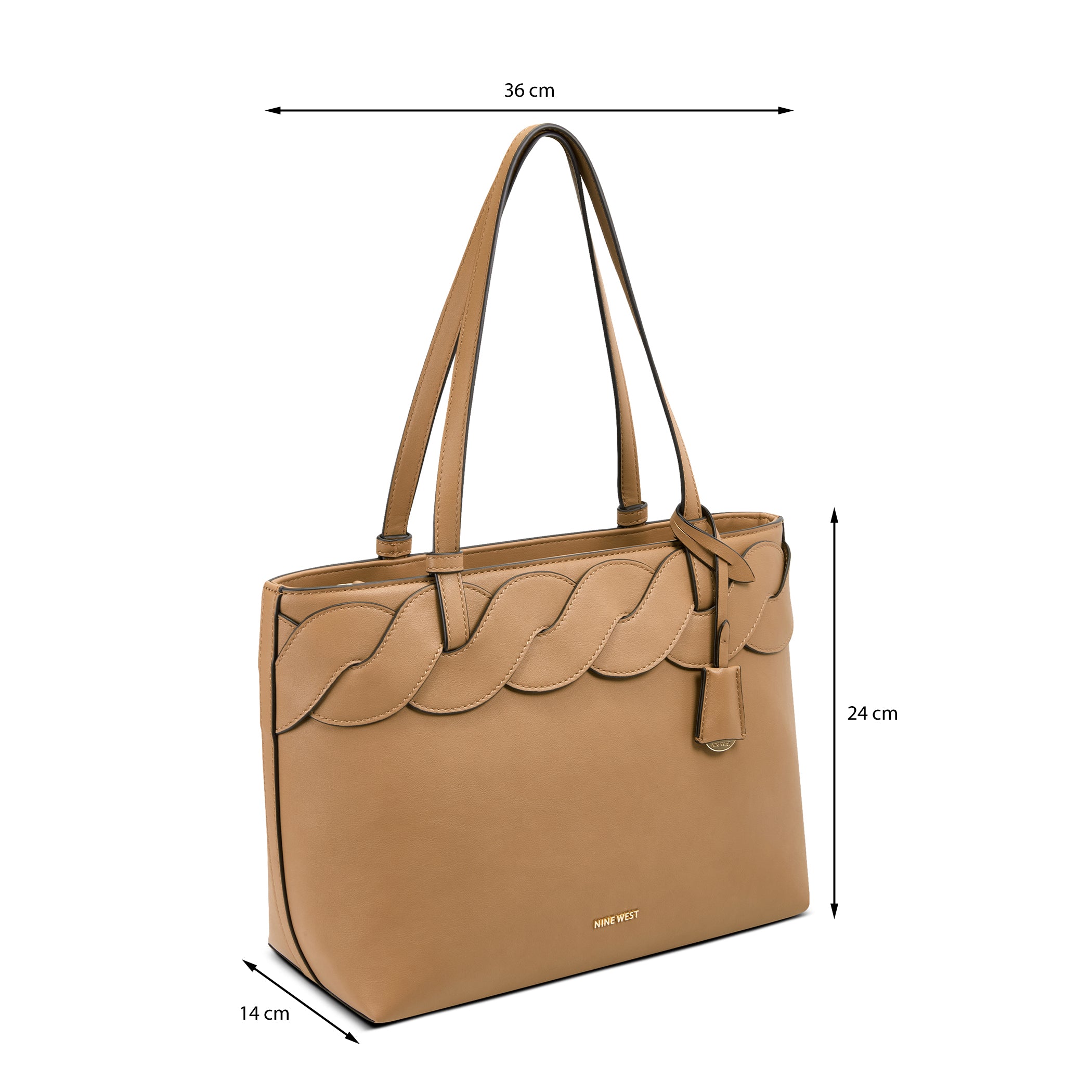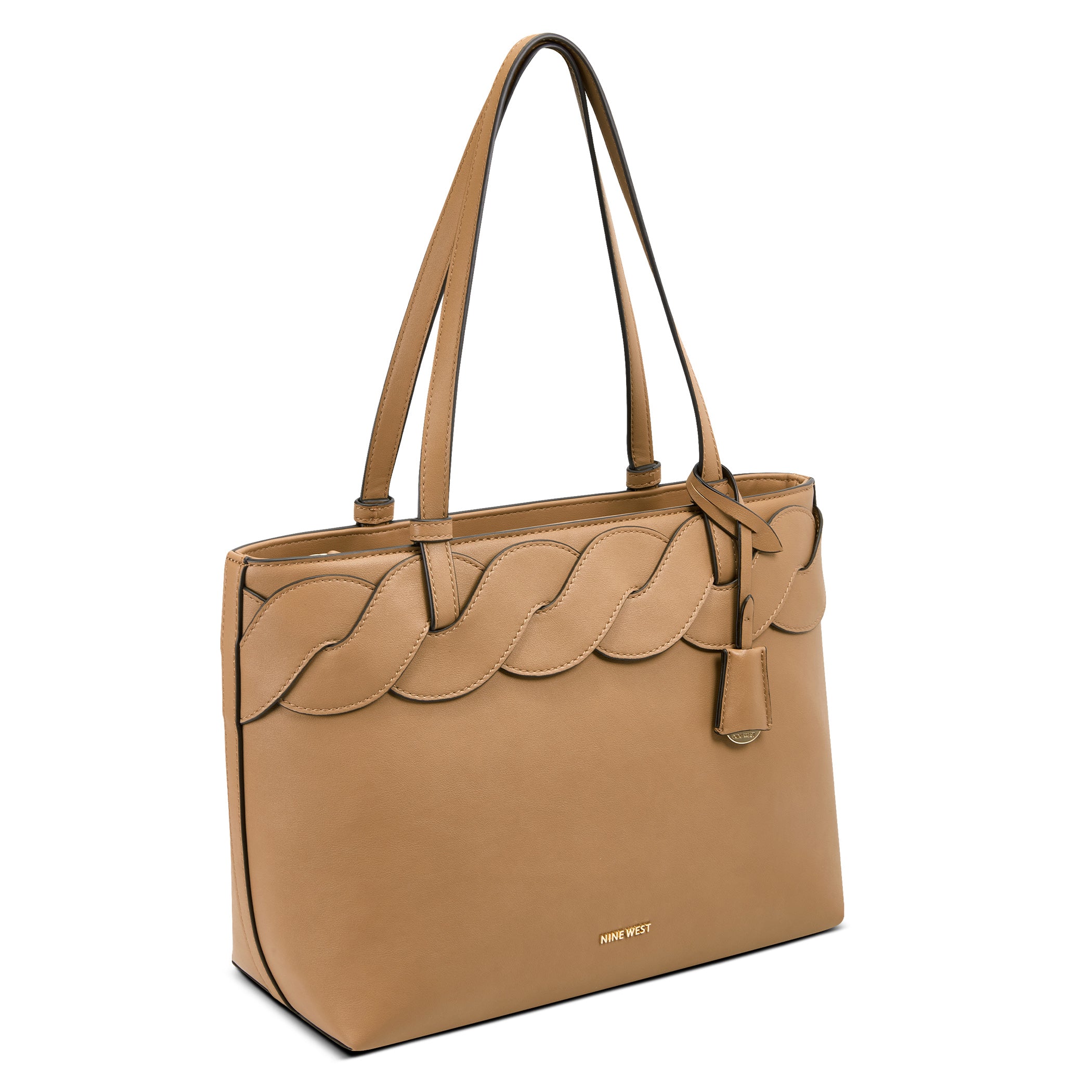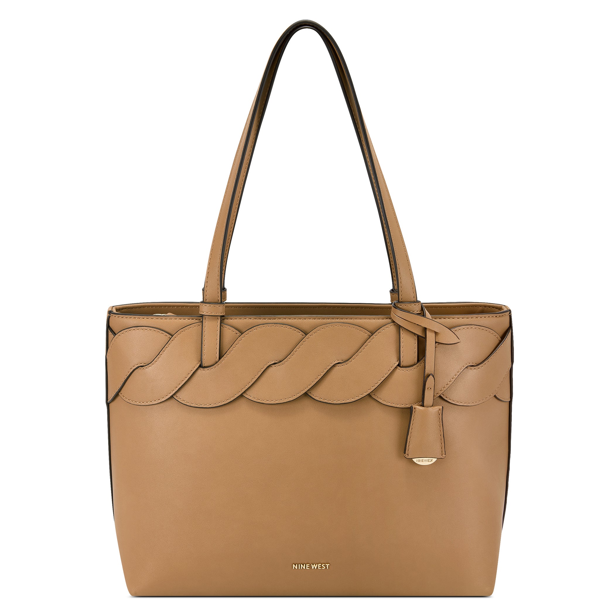 Bolsa tote Nine West para mujer elaborado en material sintético con aplicación de trenzado, estampado liso, fijación de cierre y textura lisa.