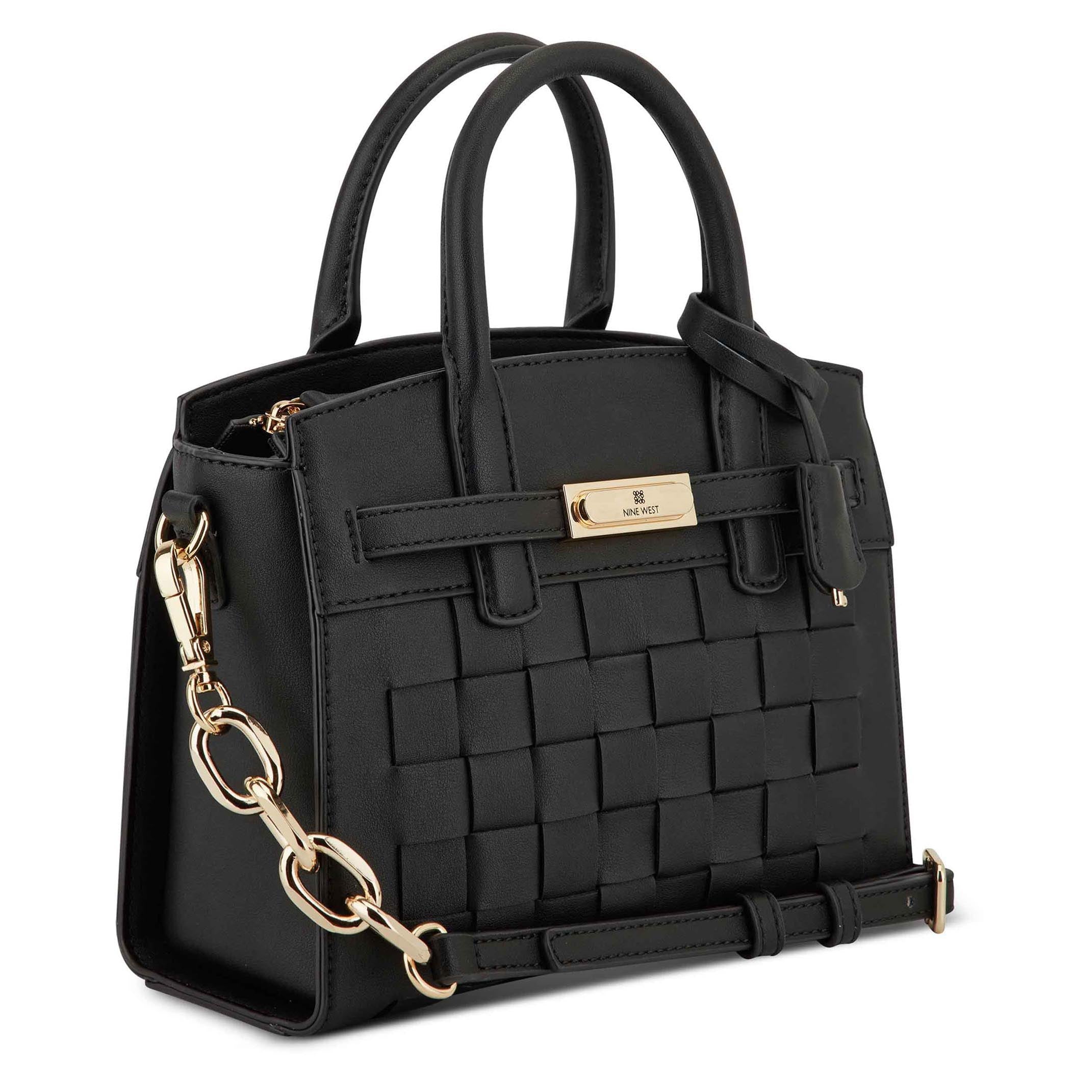 Bolsa de mano Nine West para mujer elaborado en material sintético con fijación de cierre y textura lisa.