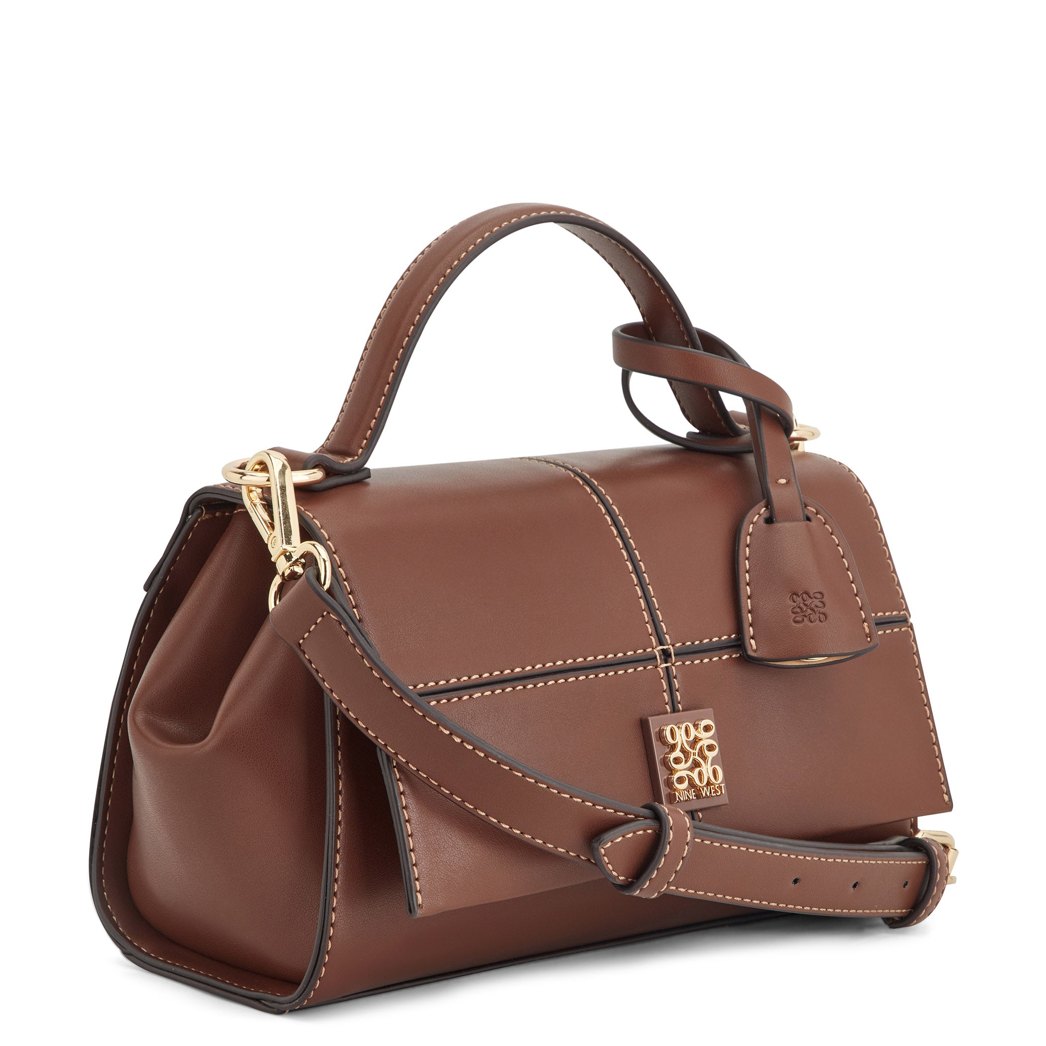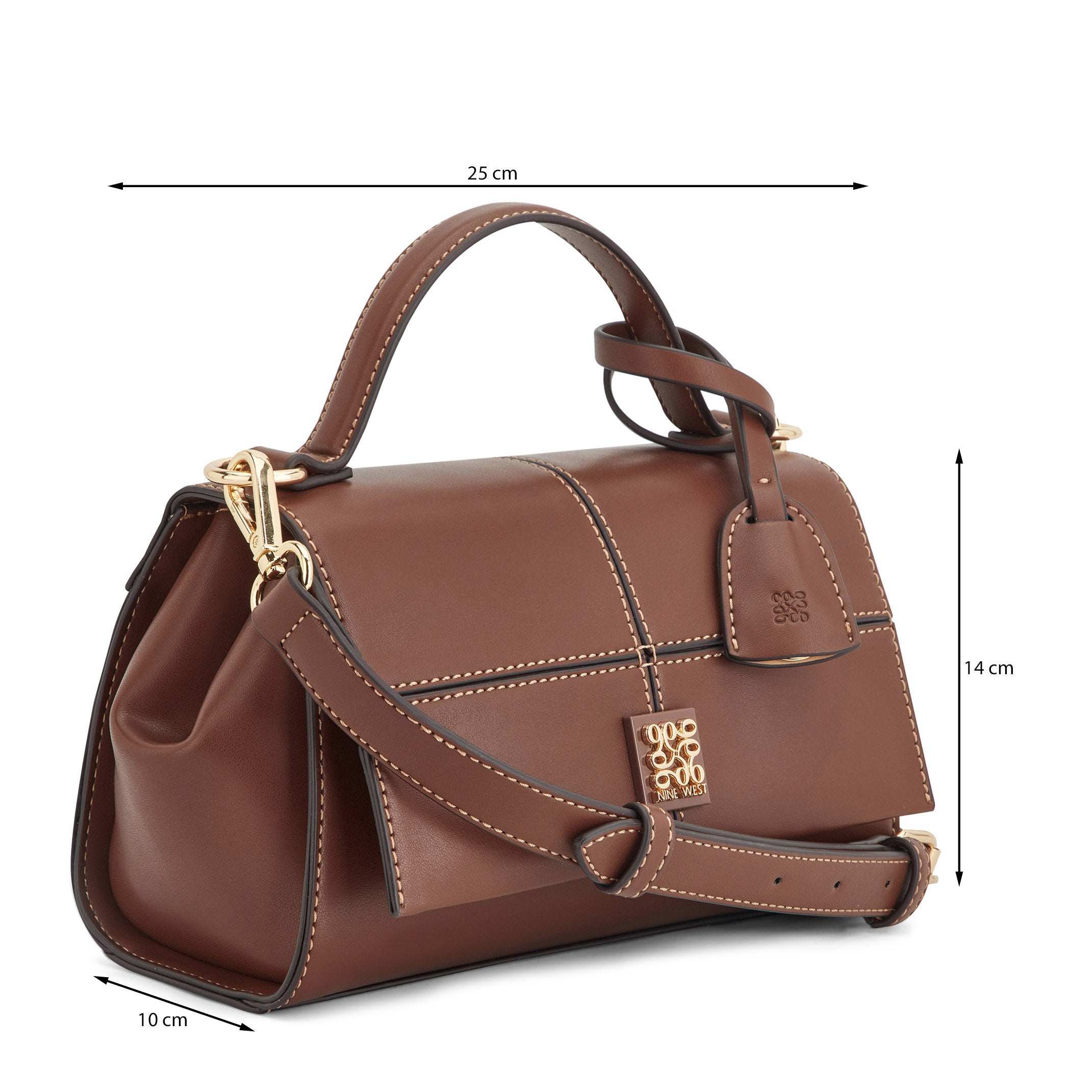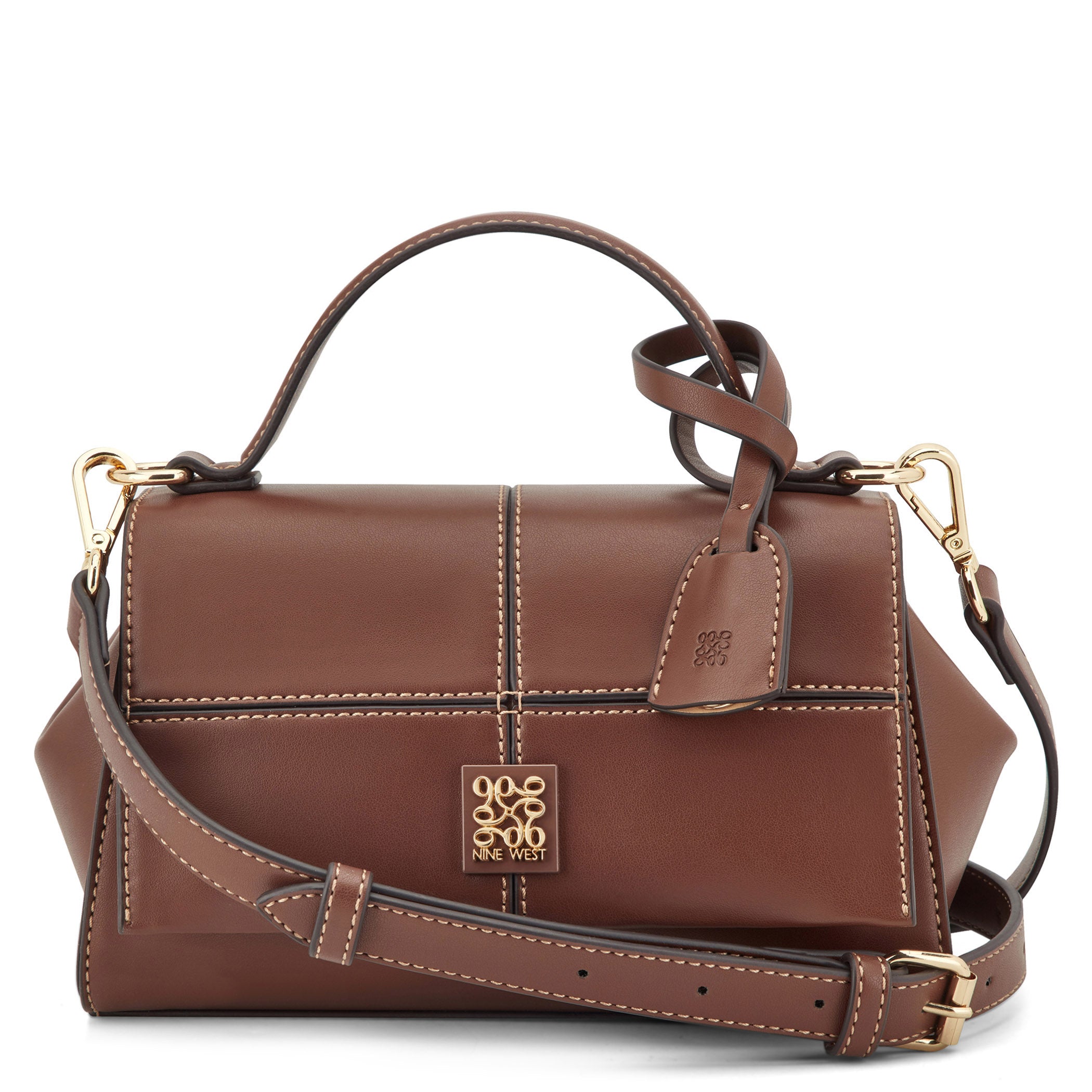 Bolsa crossbody Nine West para mujer elaborada en material sintético con aplicación de herraje, estampado liso, fijación de imán y textura lisa.