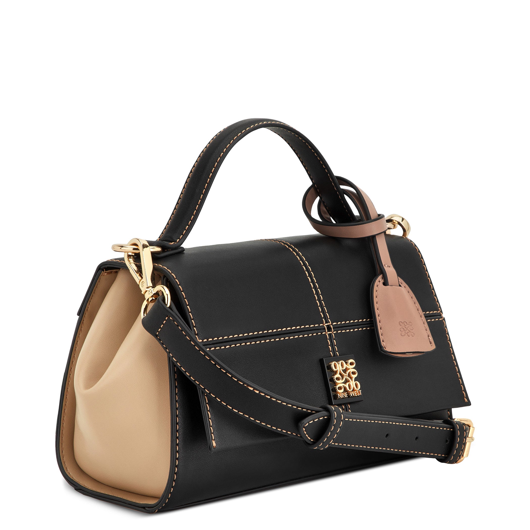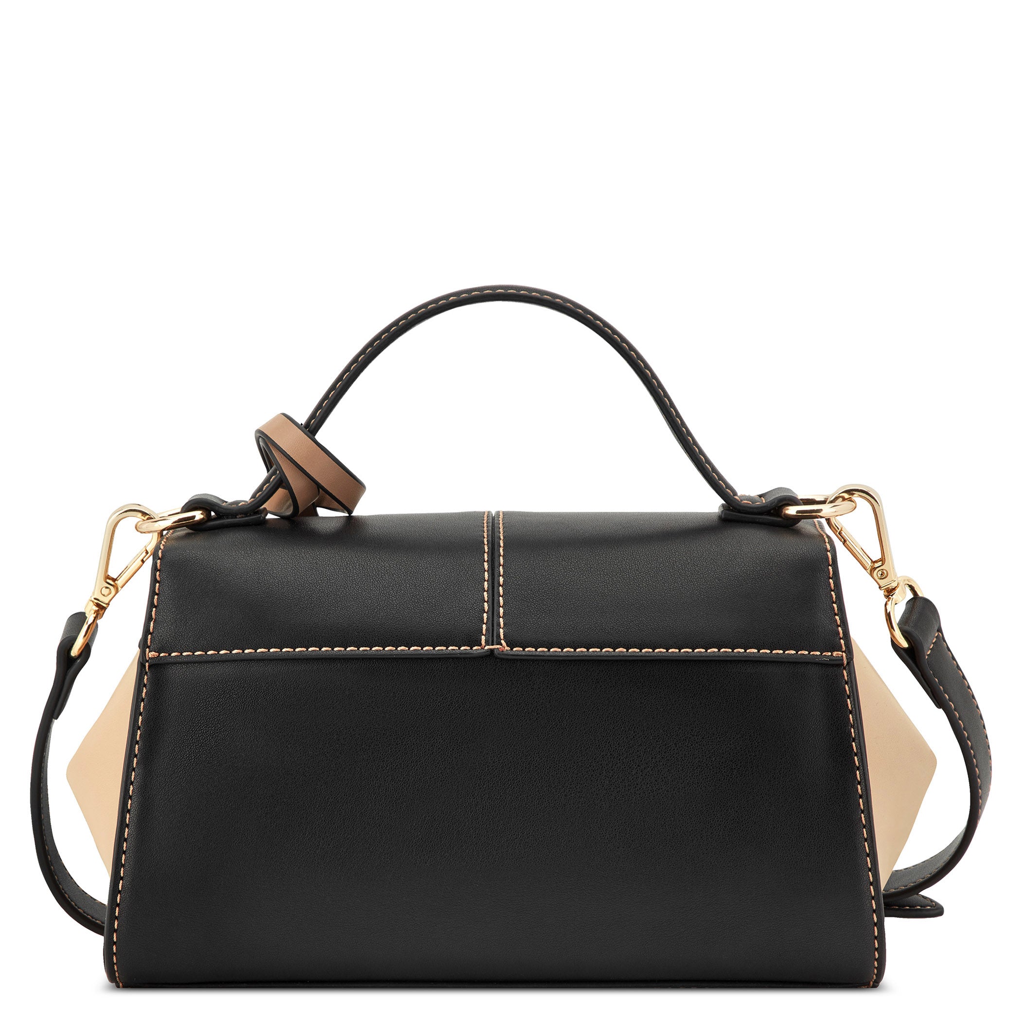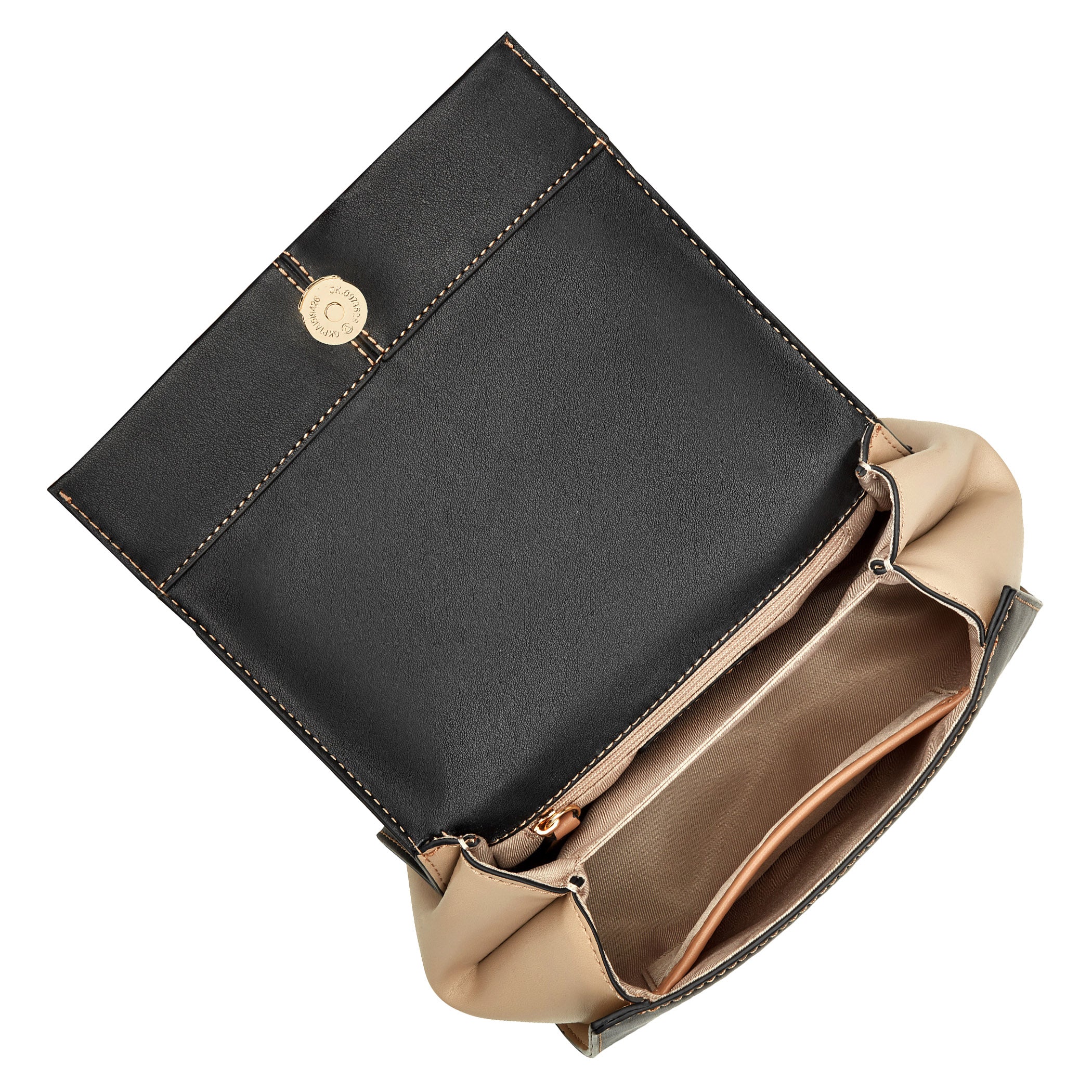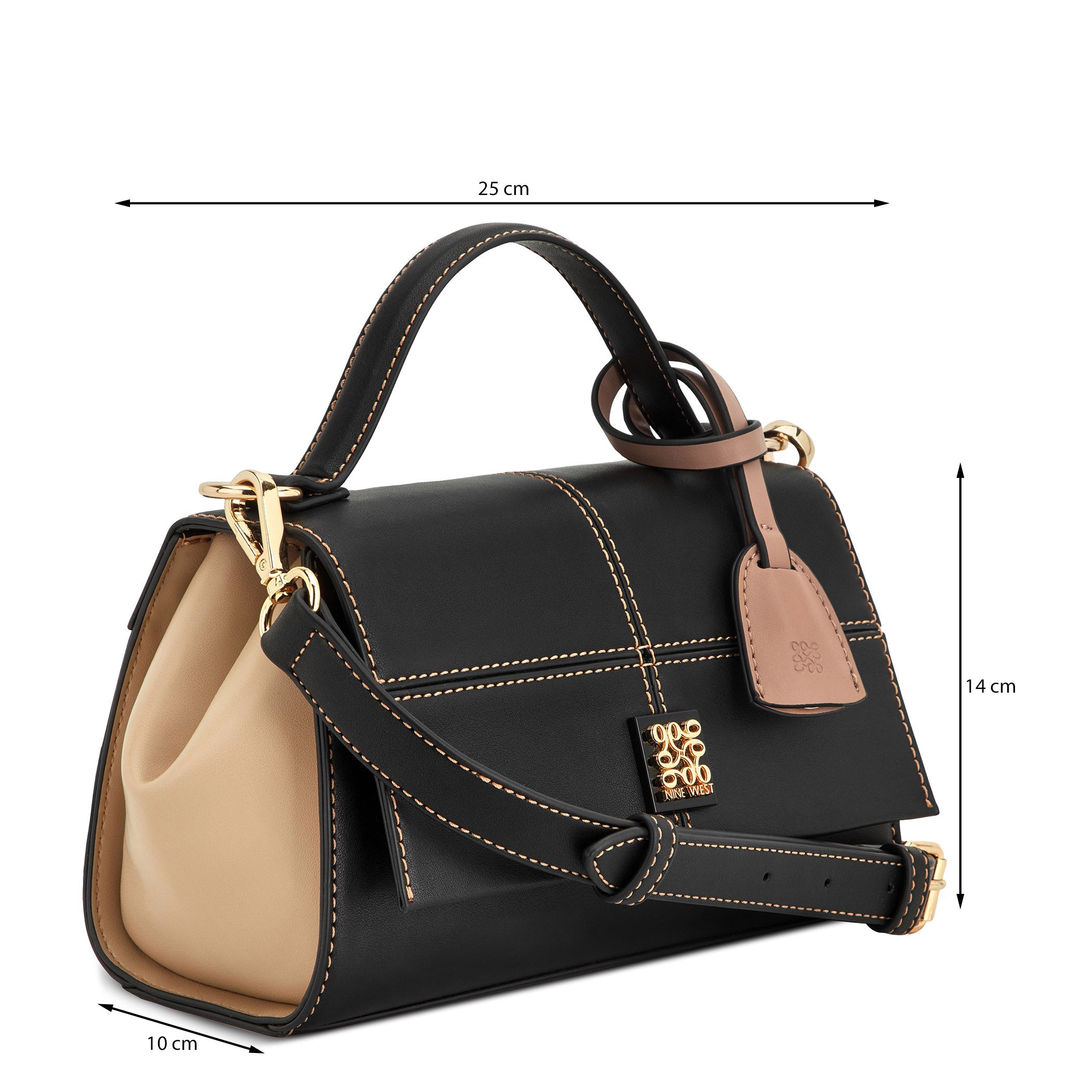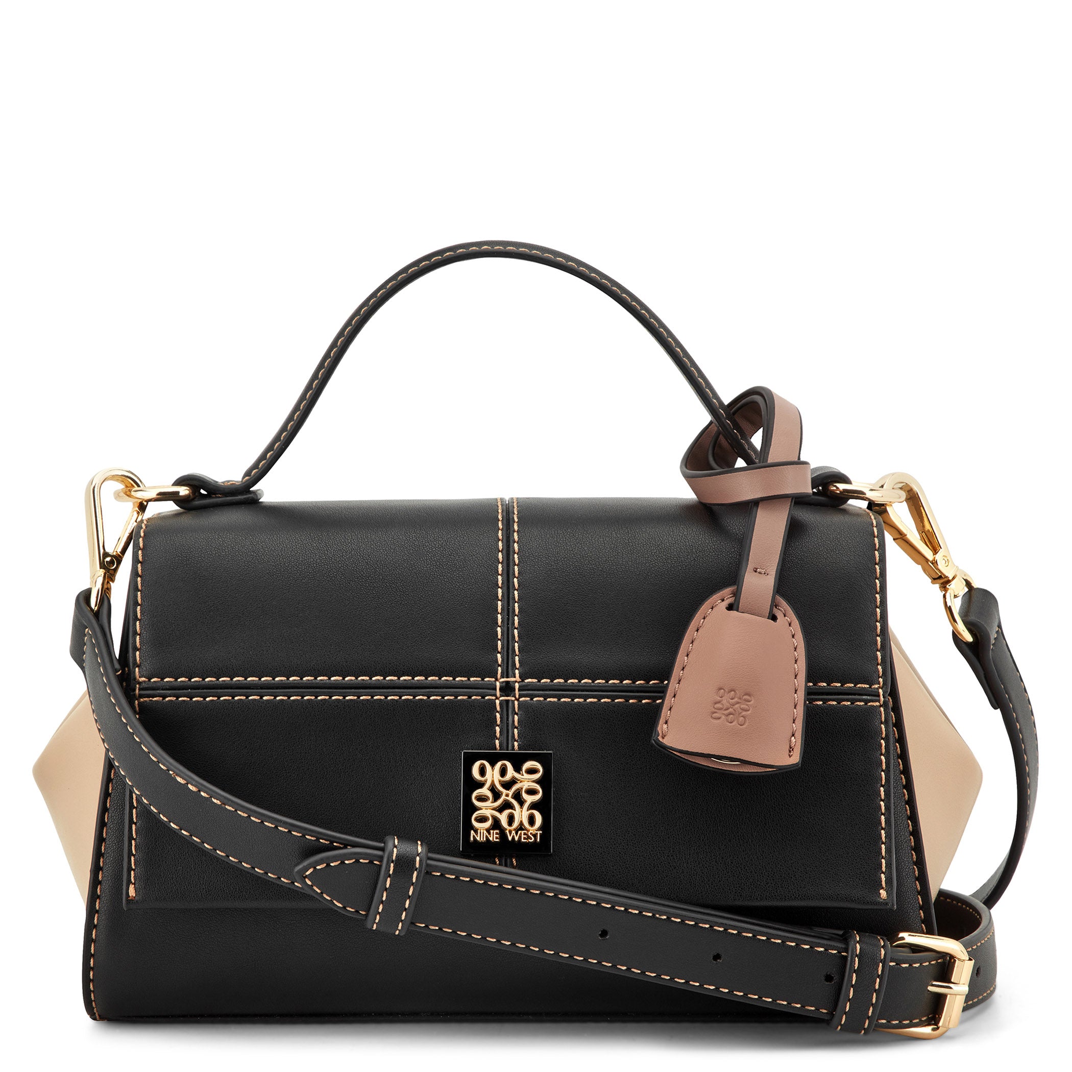 Bolsa crossbody Nine West para mujer elaborada en material sintético con aplicación de herraje, estampado liso, fijación de imán y textura lisa.