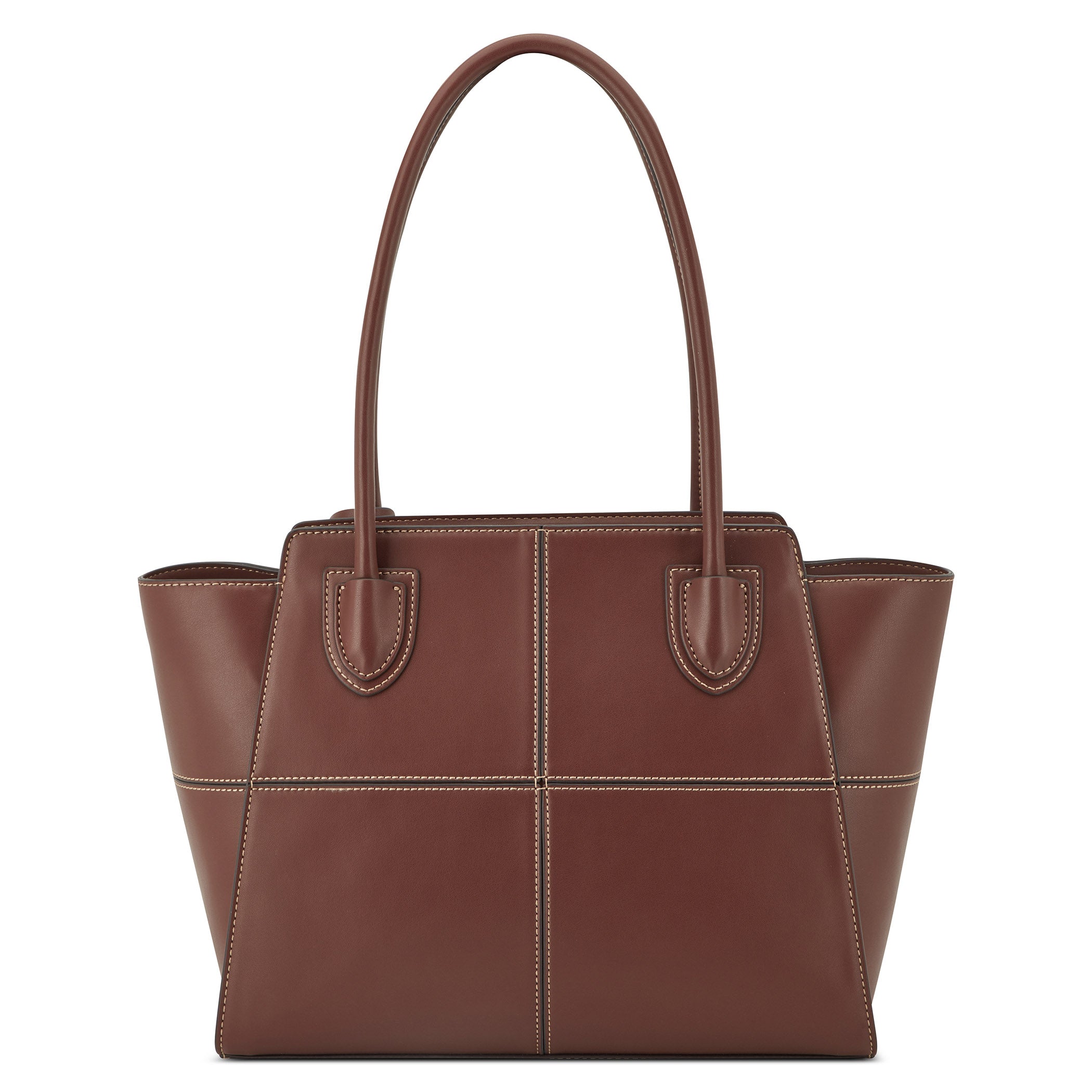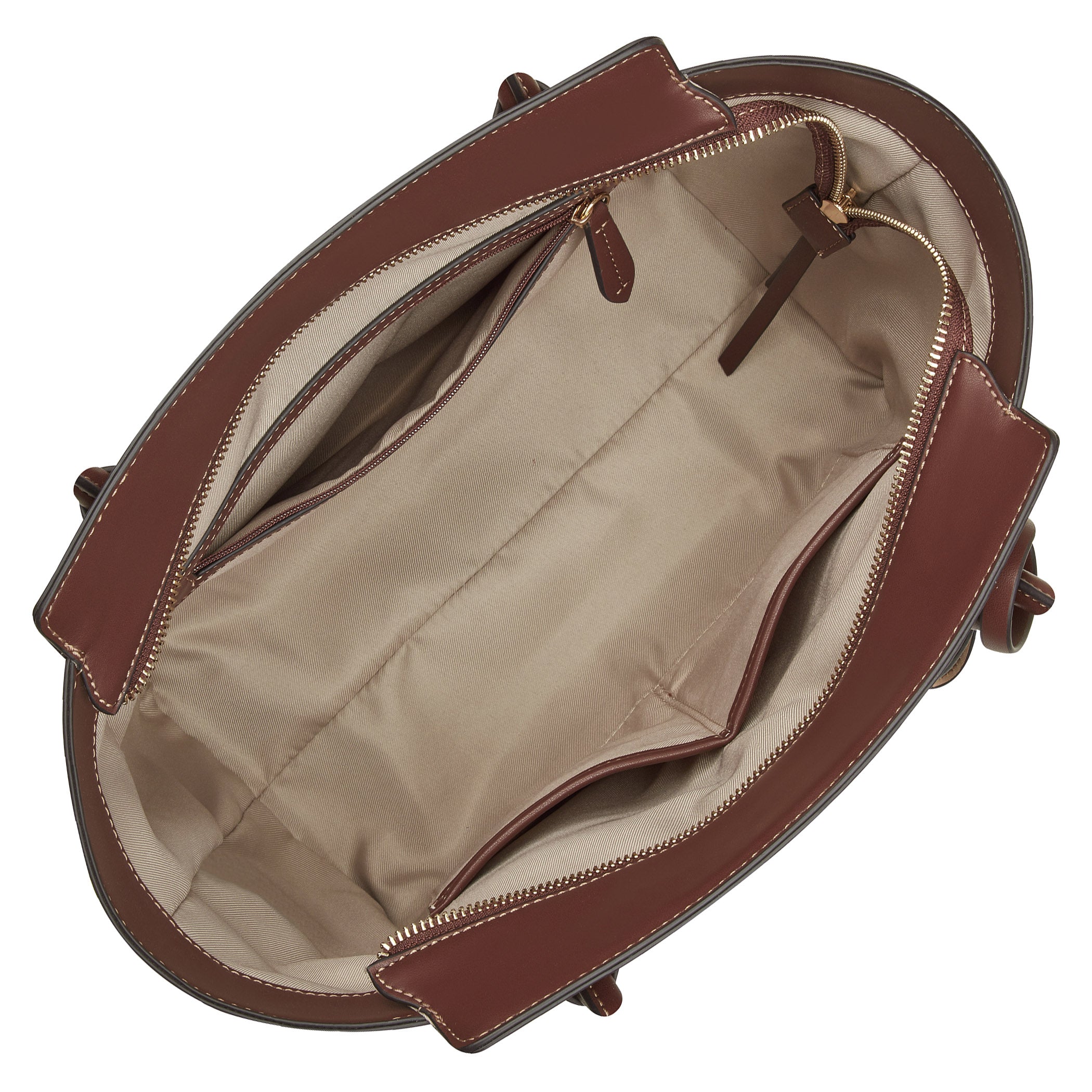 Bolsa tote Nine West para mujer elaborada en material sintético con aplicación de herraje, estampado liso, fijación de cierre y textura lisa.