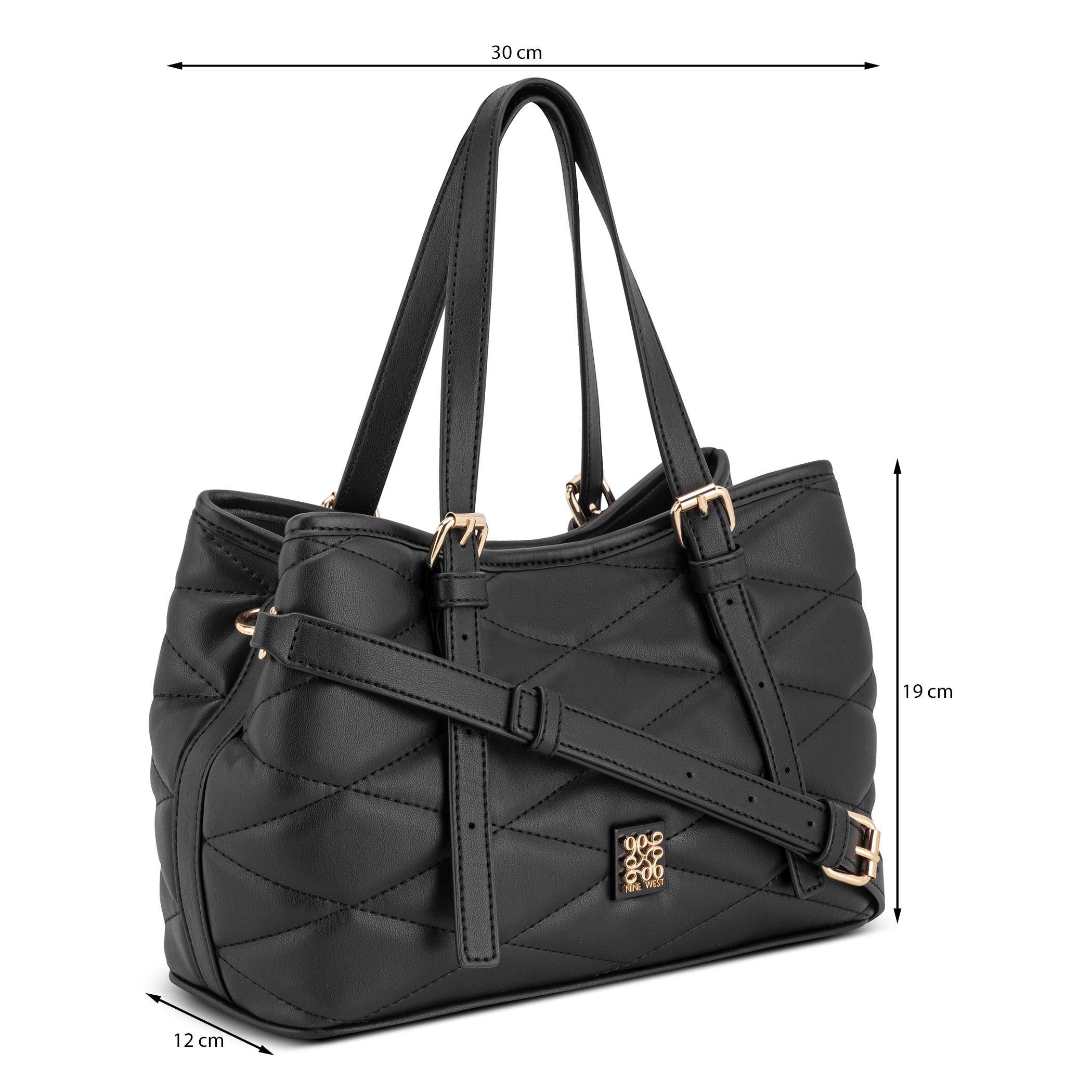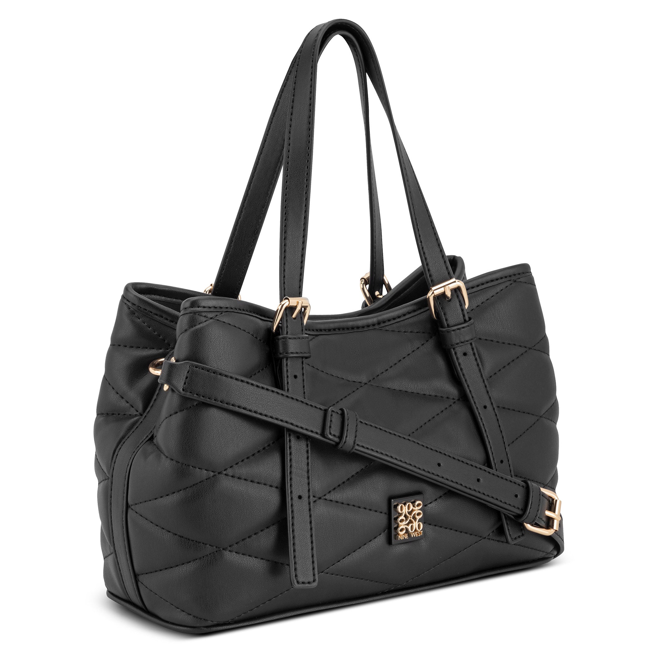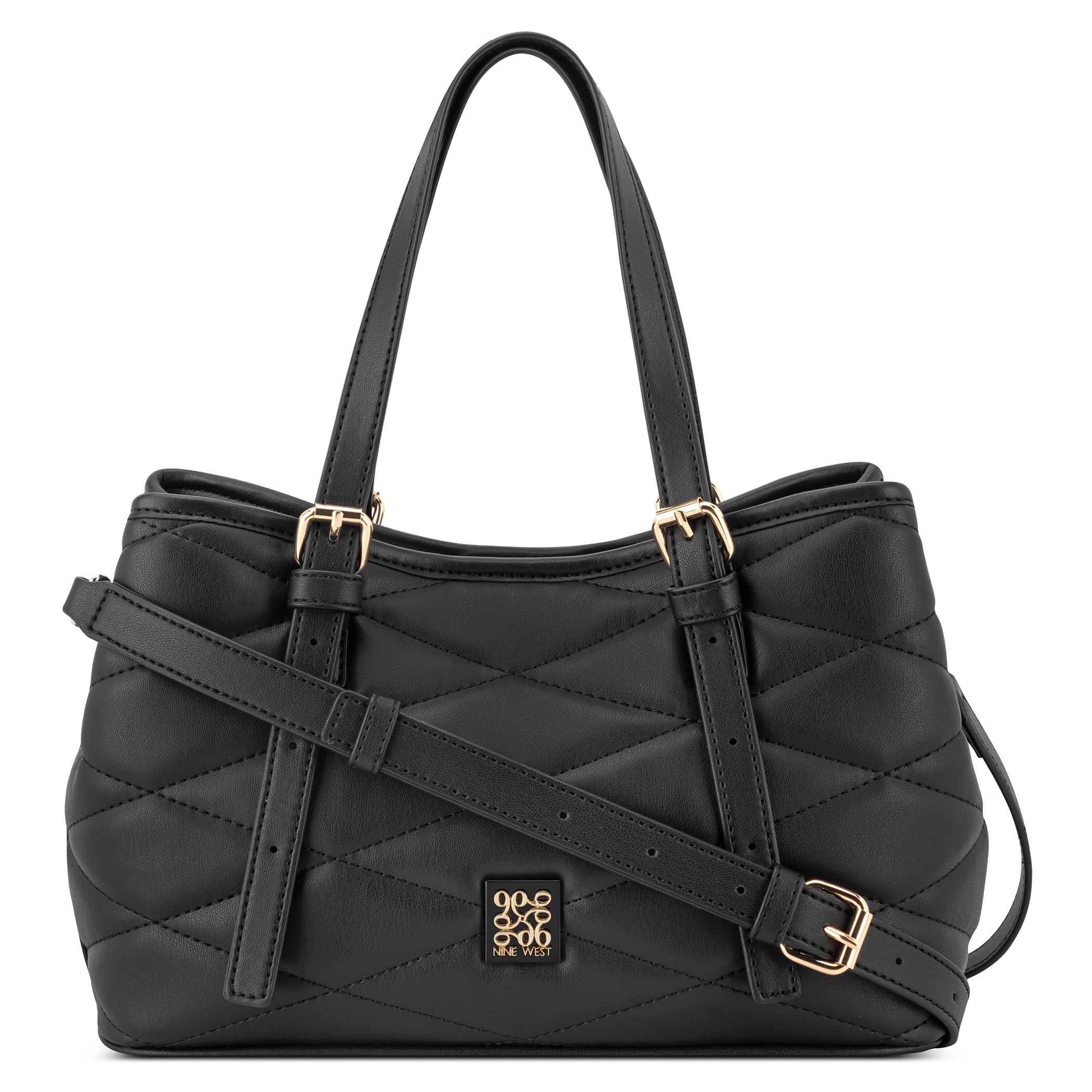 Bolsa de mano Nine West para mujer elaborada en material sintético con aplicación lisa, estampado liso, fijación de cierre y textura capitonada.