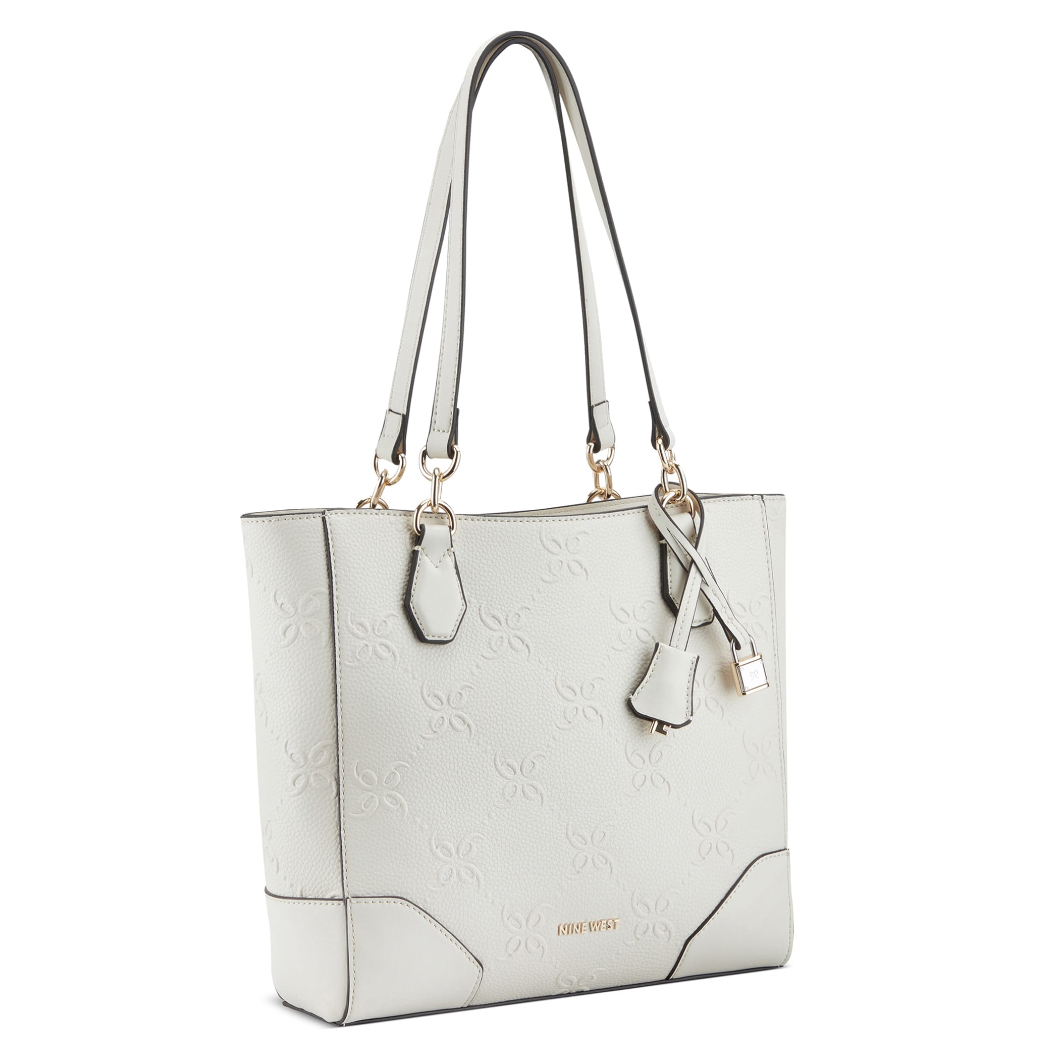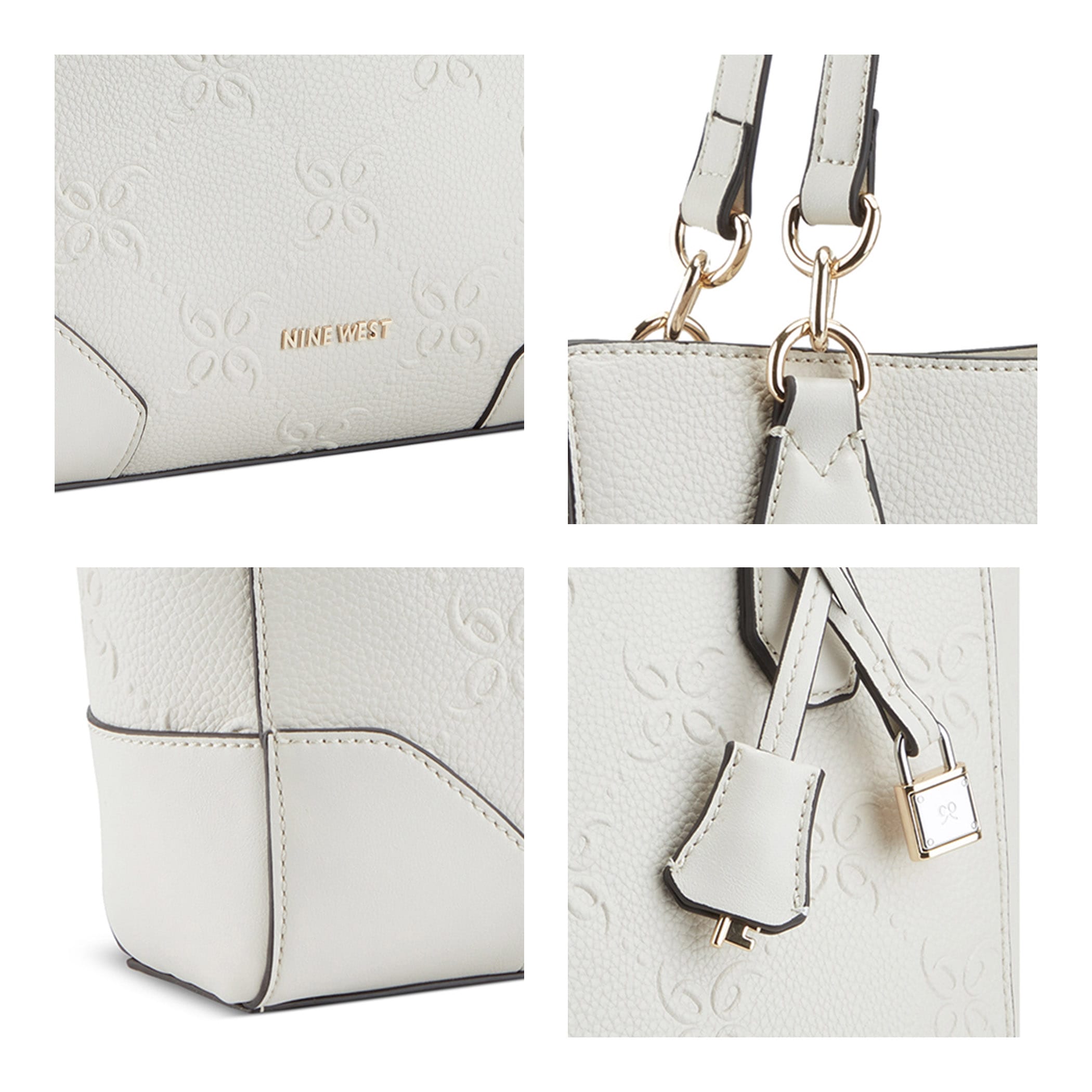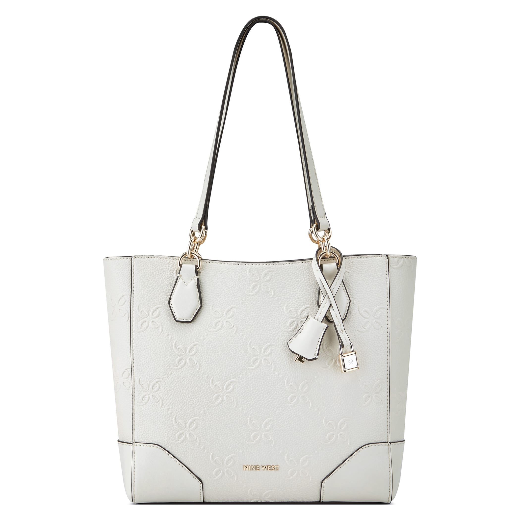 Bolsa tote Nine West para mujer elaborado en material sintético con aplicación de accesorio dorado, forro textil, fijación de cierre y textura lisa.