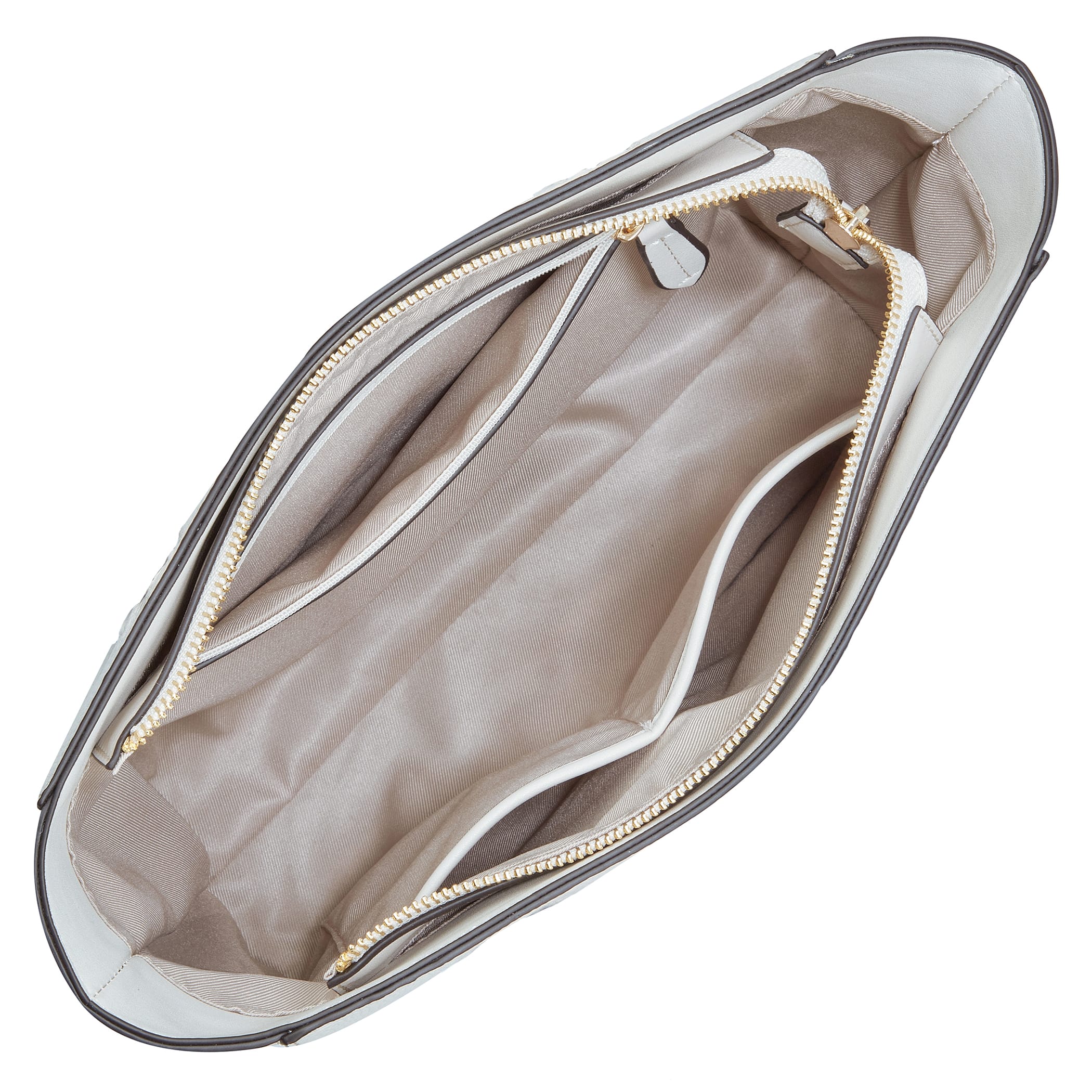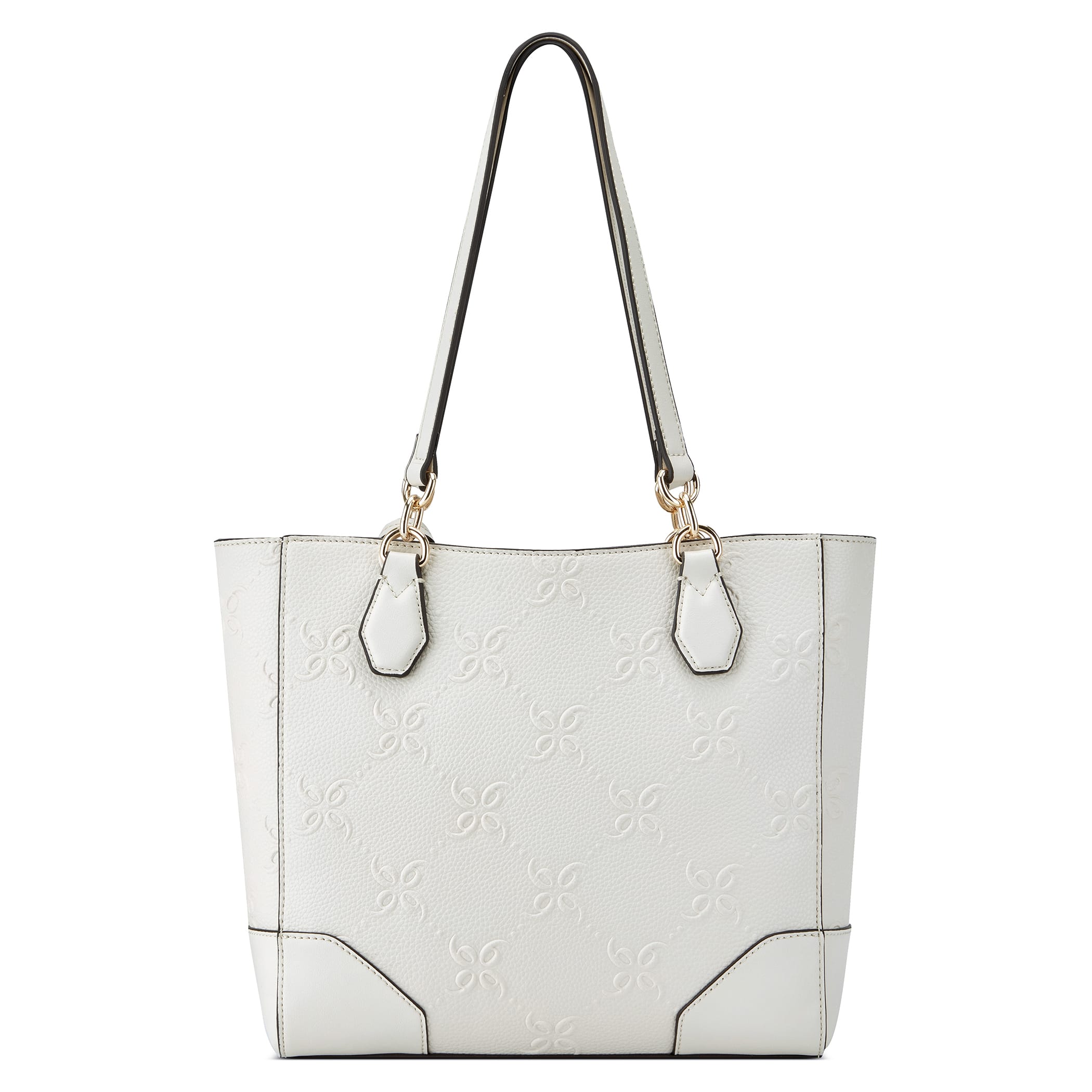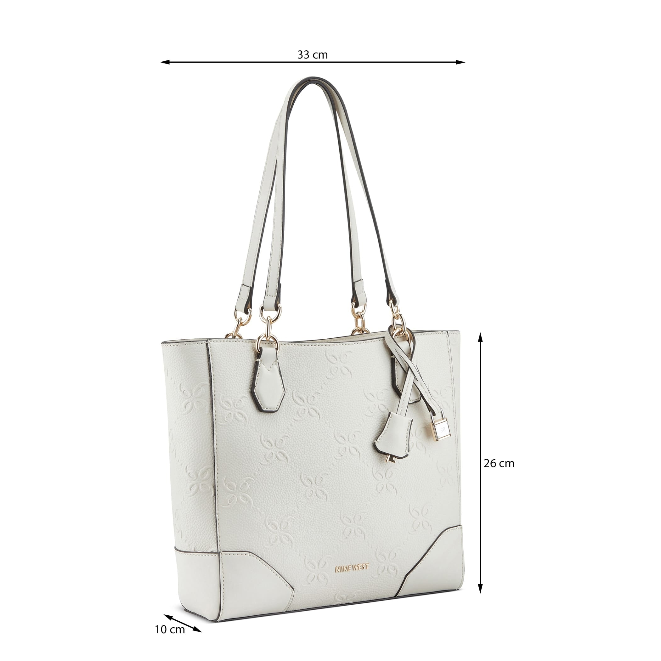 Bolsa tote Nine West para mujer elaborado en material sintético con aplicación de accesorio dorado, forro textil, fijación de cierre y textura lisa.