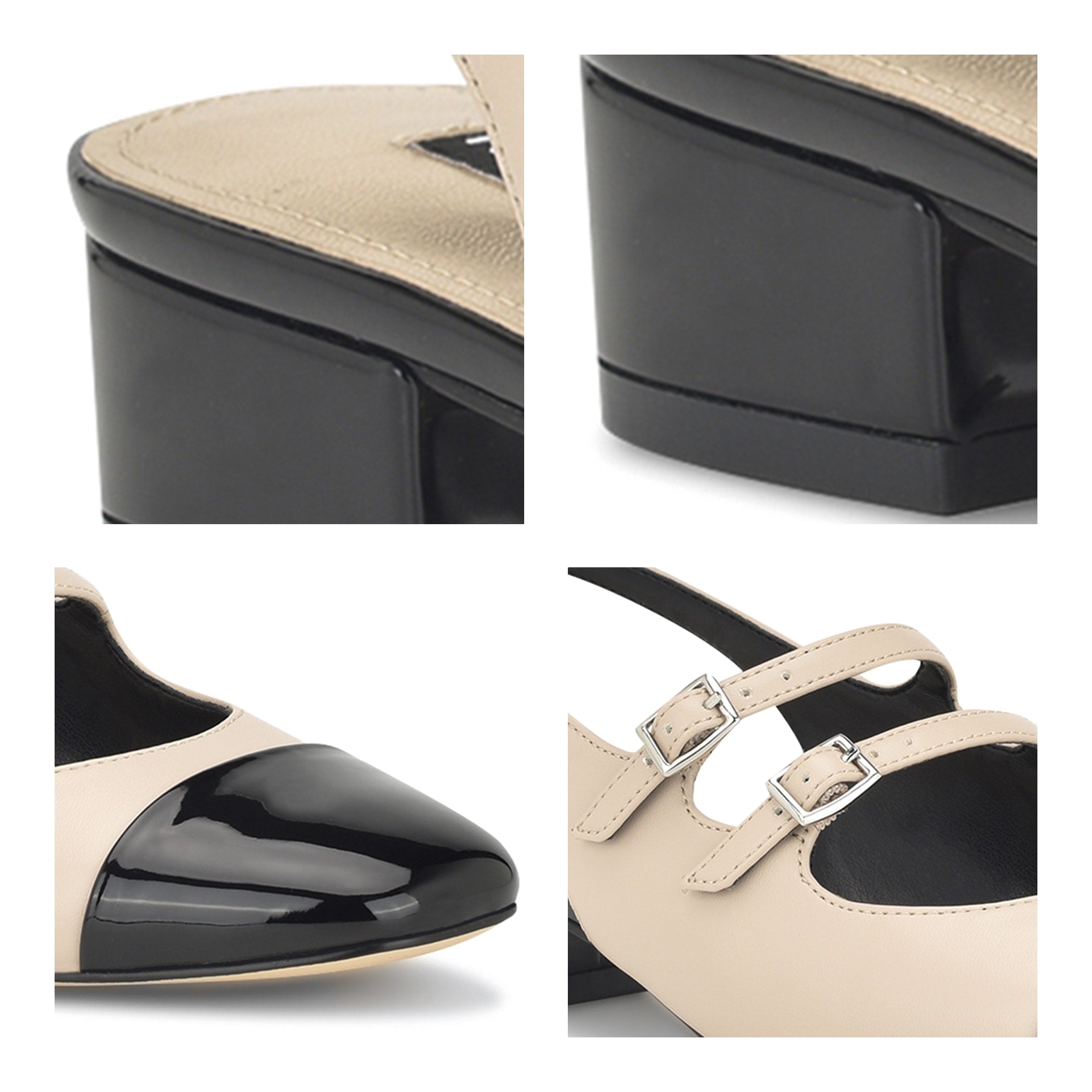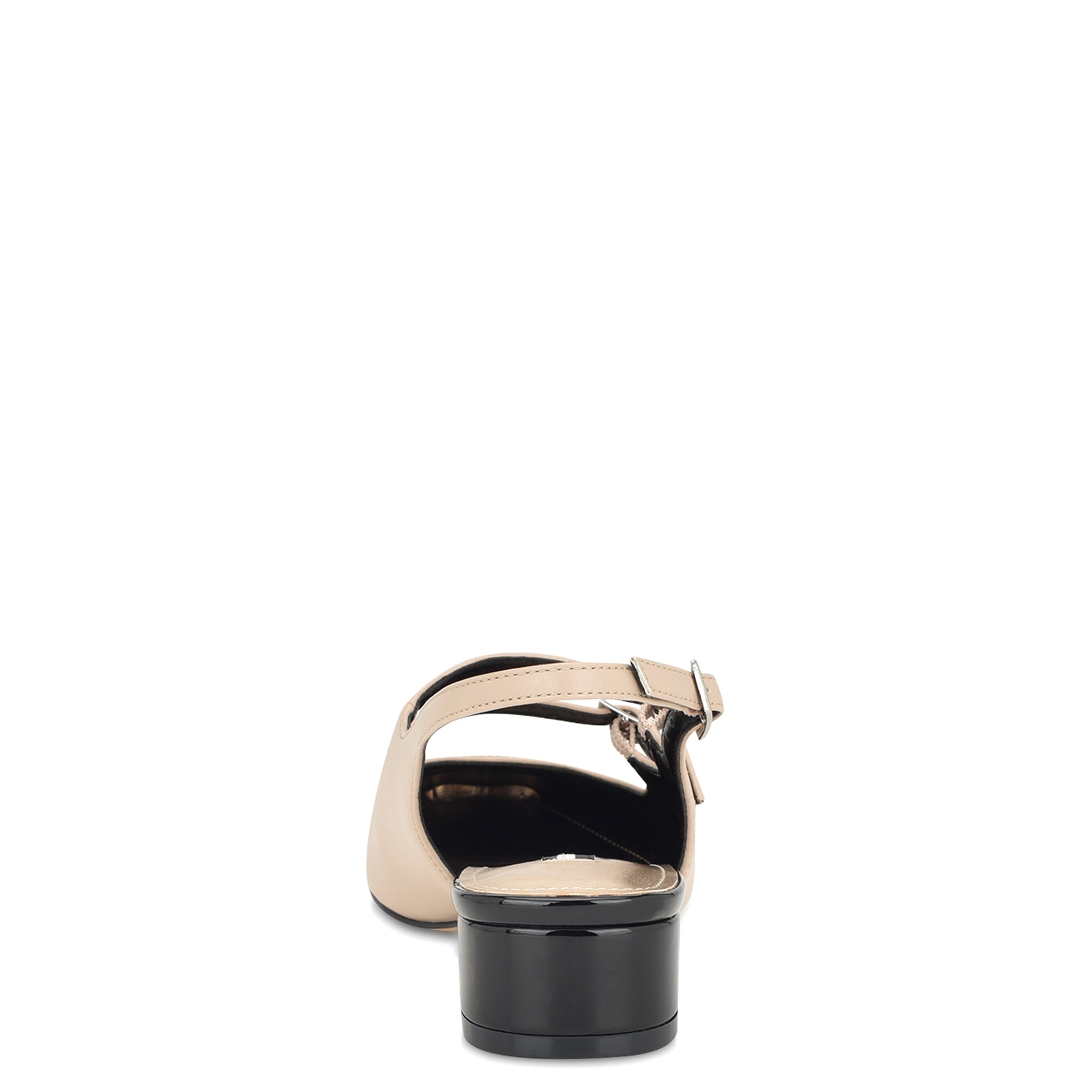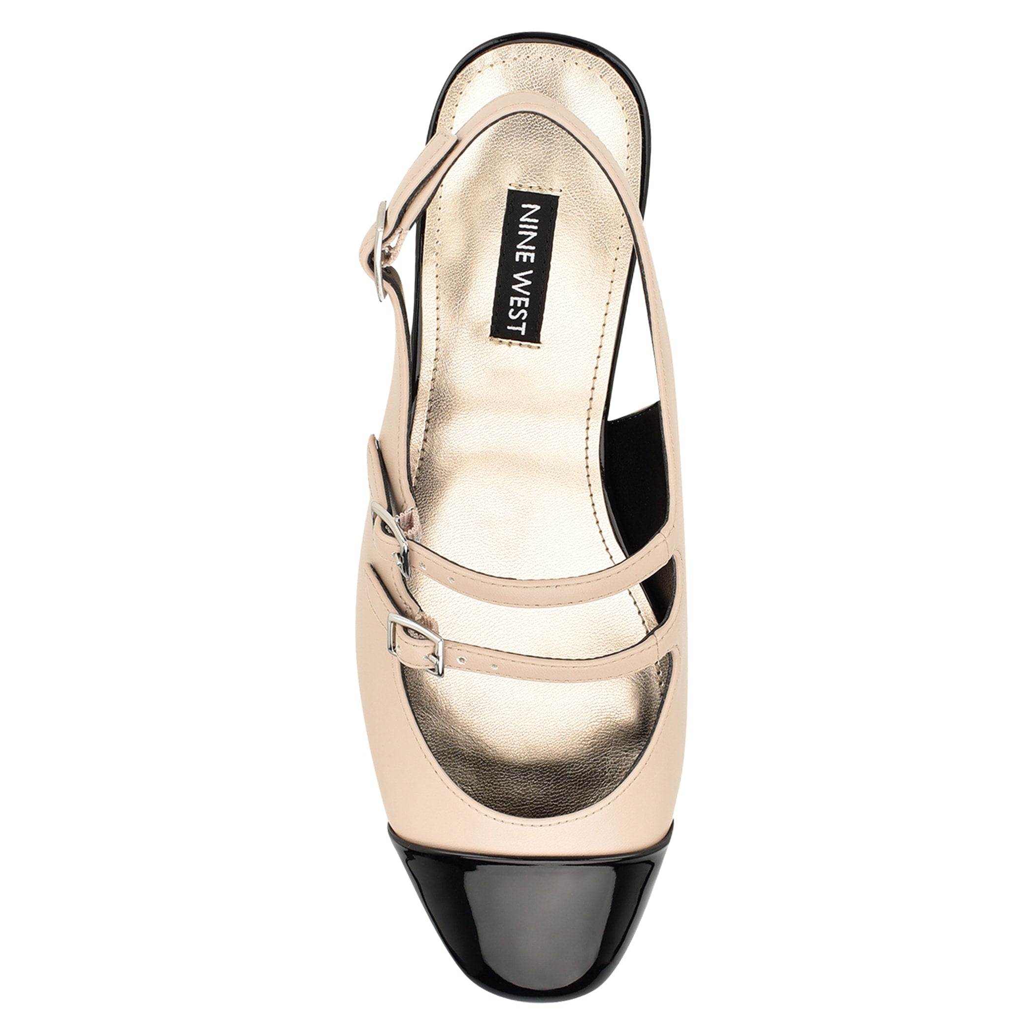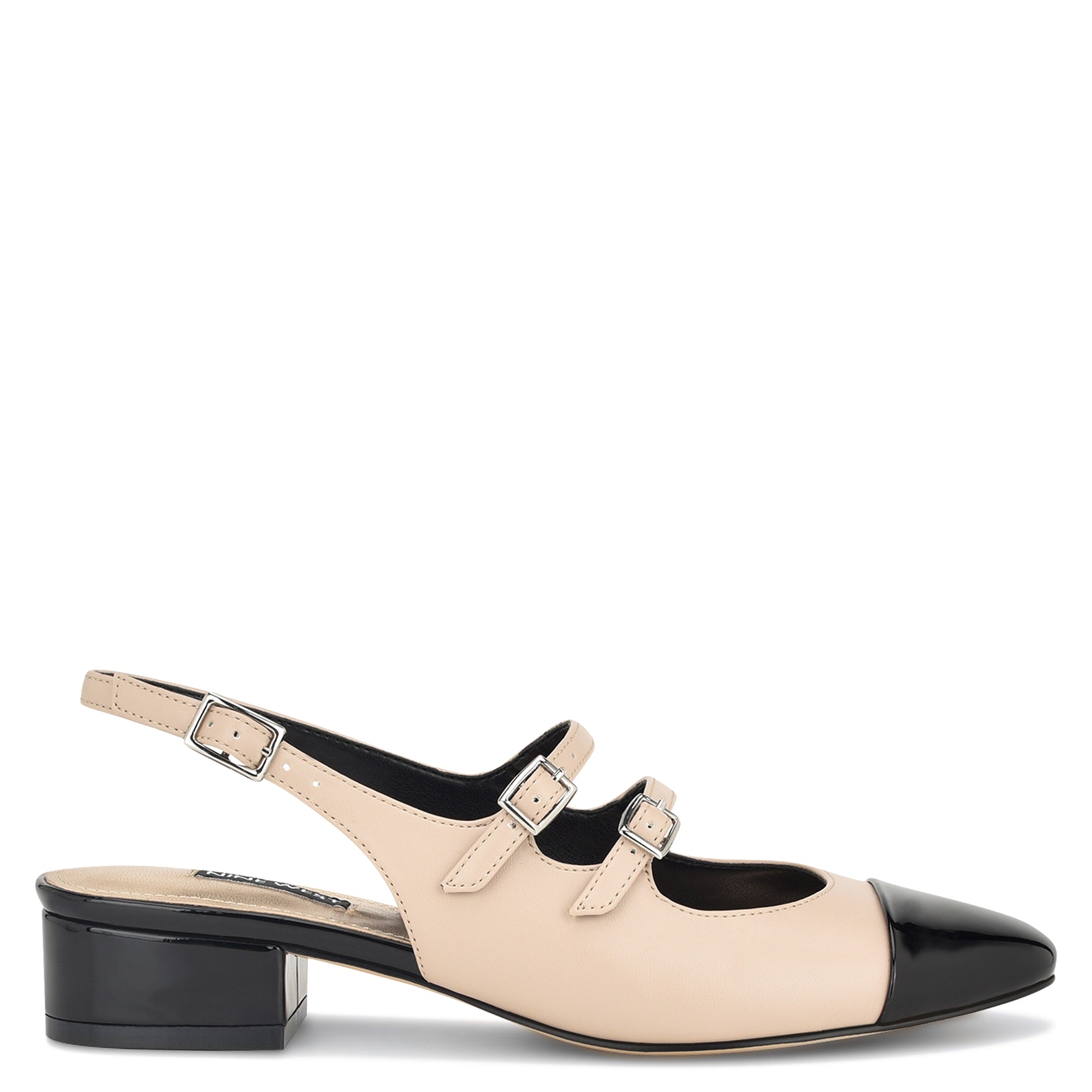 Zapatilla Nine West para mujer elaborado en material sintético con estampado liso, fijación de hebilla, punta redonda, textura lisa, cuña baja y suela sintética.