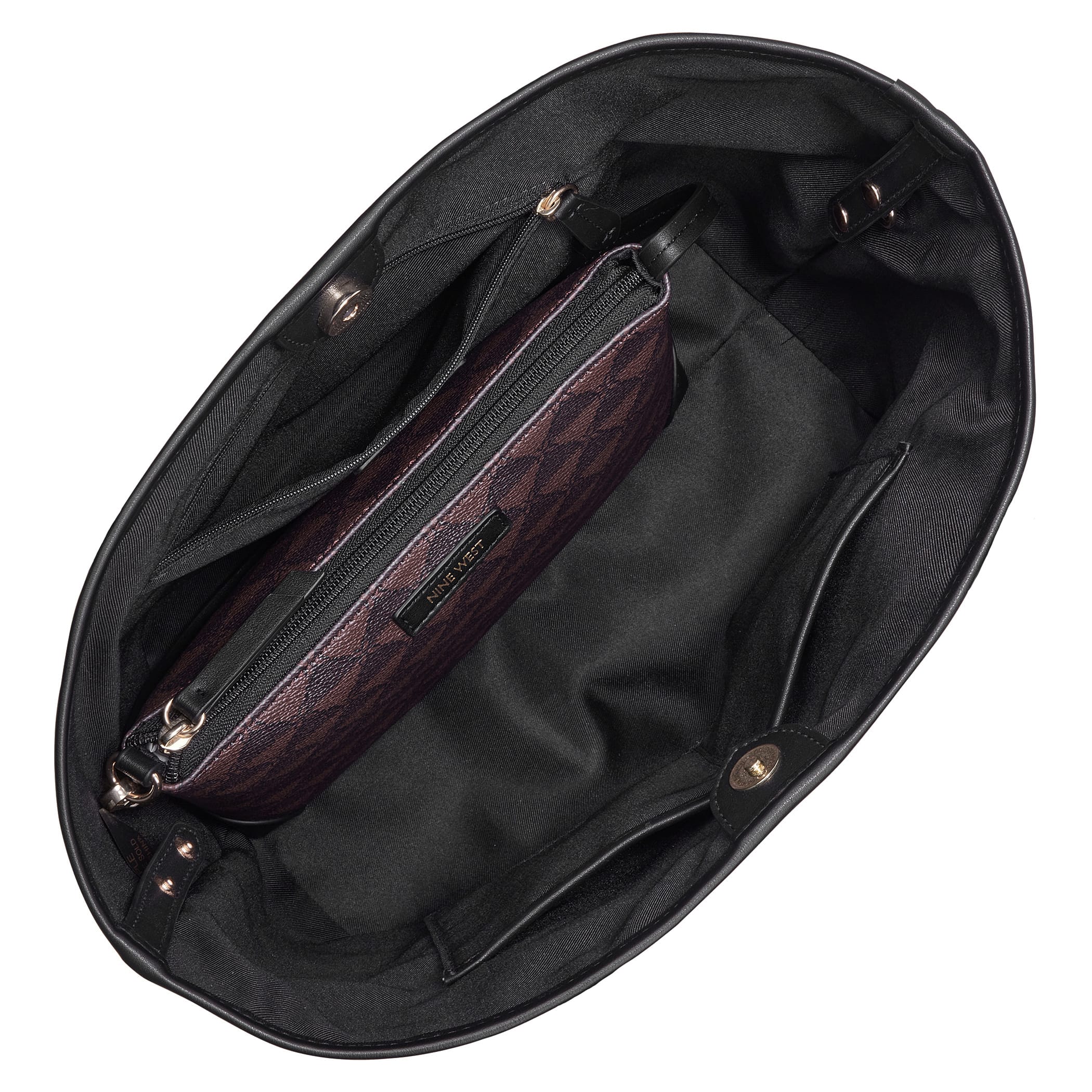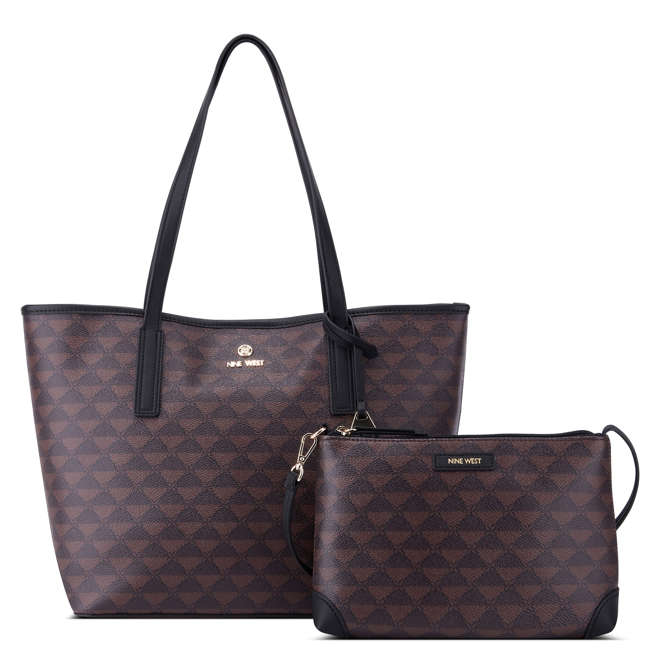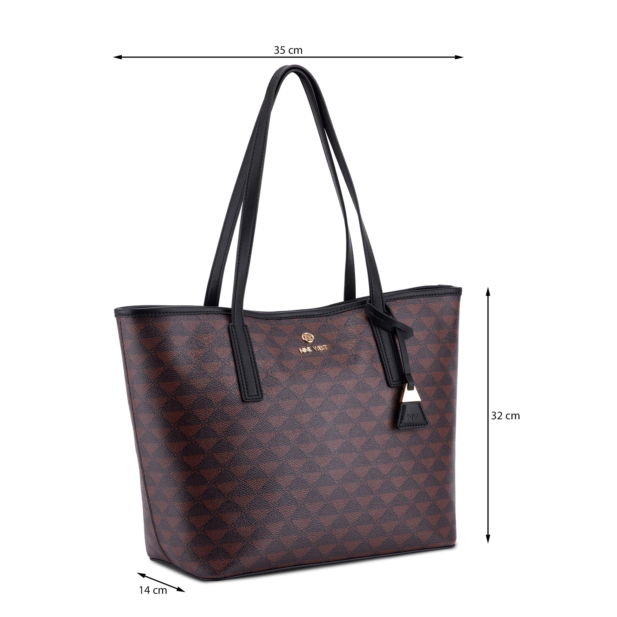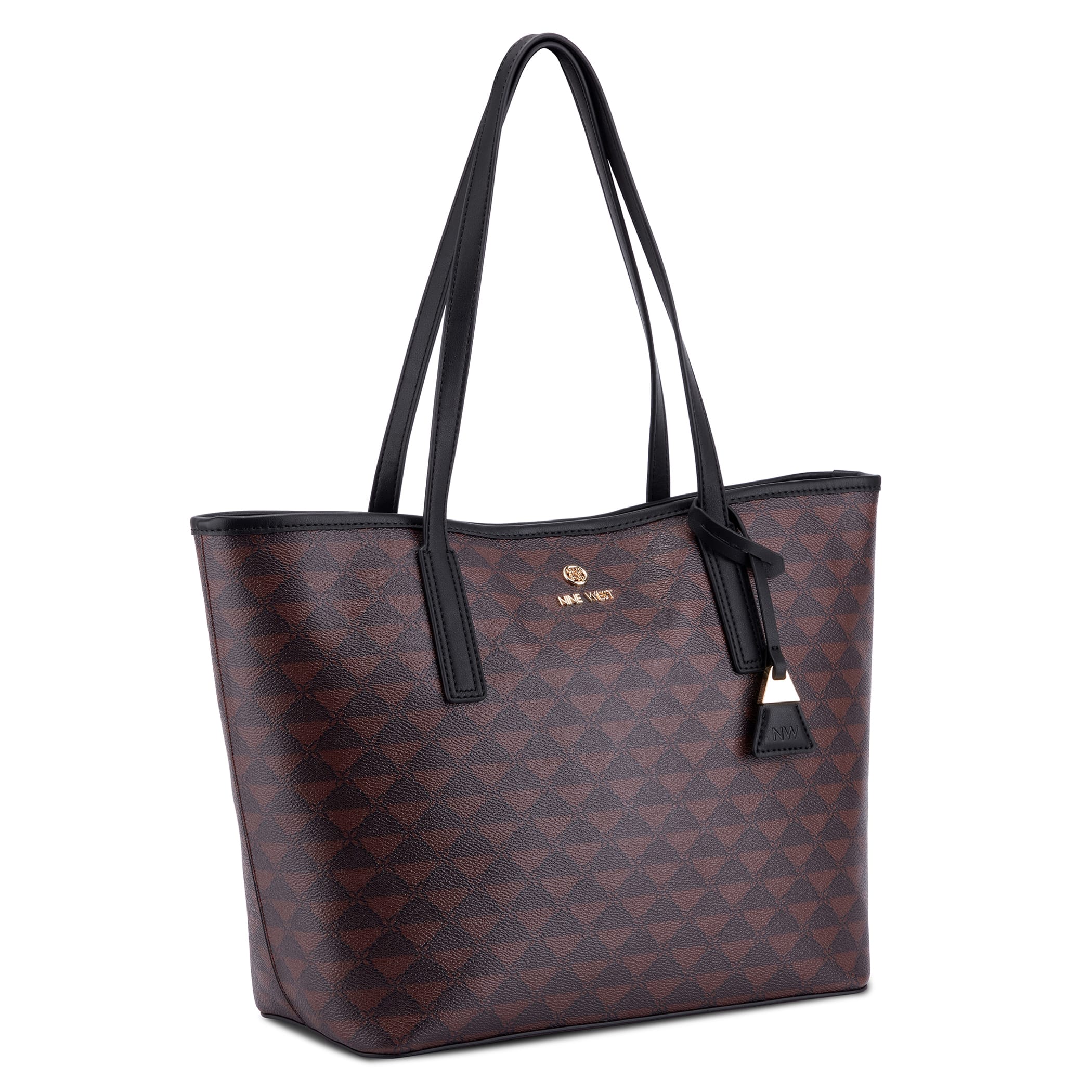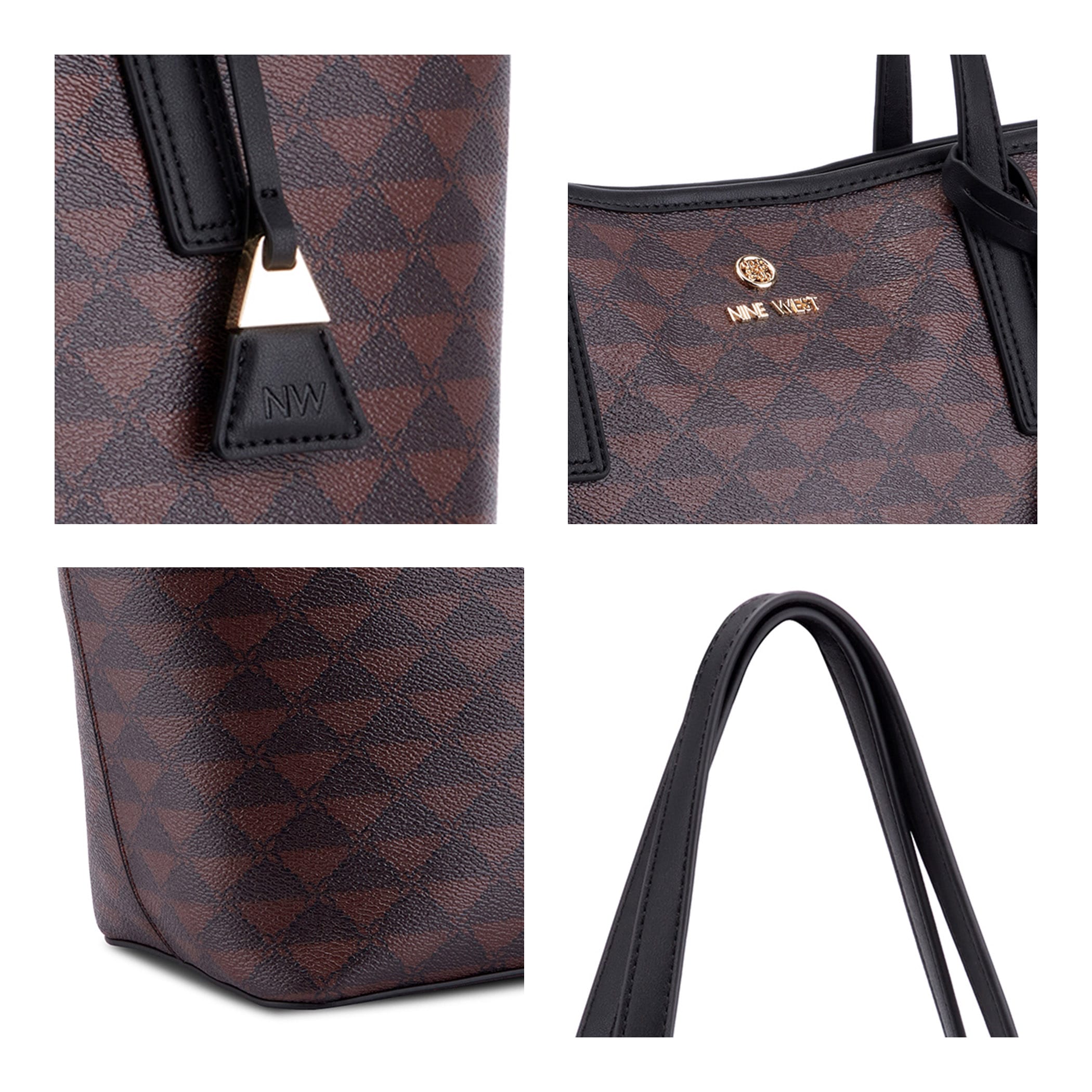 Bolsa tote Nine West para mujer elaborado en material sintético con aplicación con bolsa, estampado capitonado, forro textil, fijación de cierre y textura capitonada.