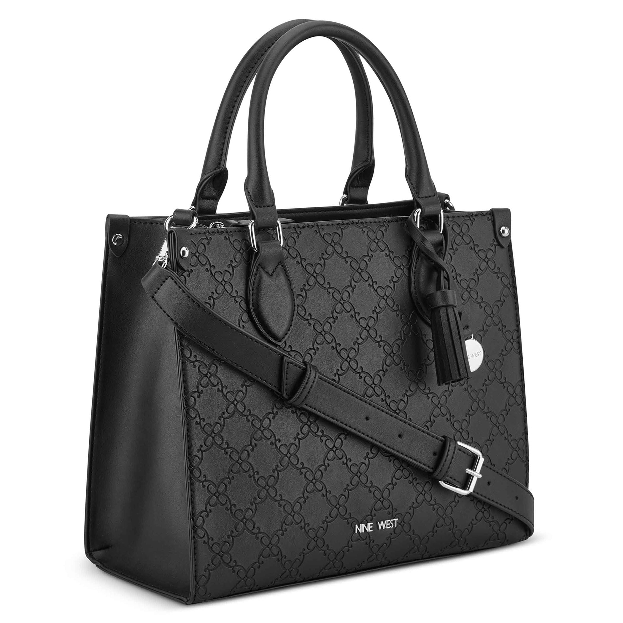 Bolsa de mano Nine West para mujer elaborado en material sintético con estampado de logotipo, fijación de imán y textura lisa.