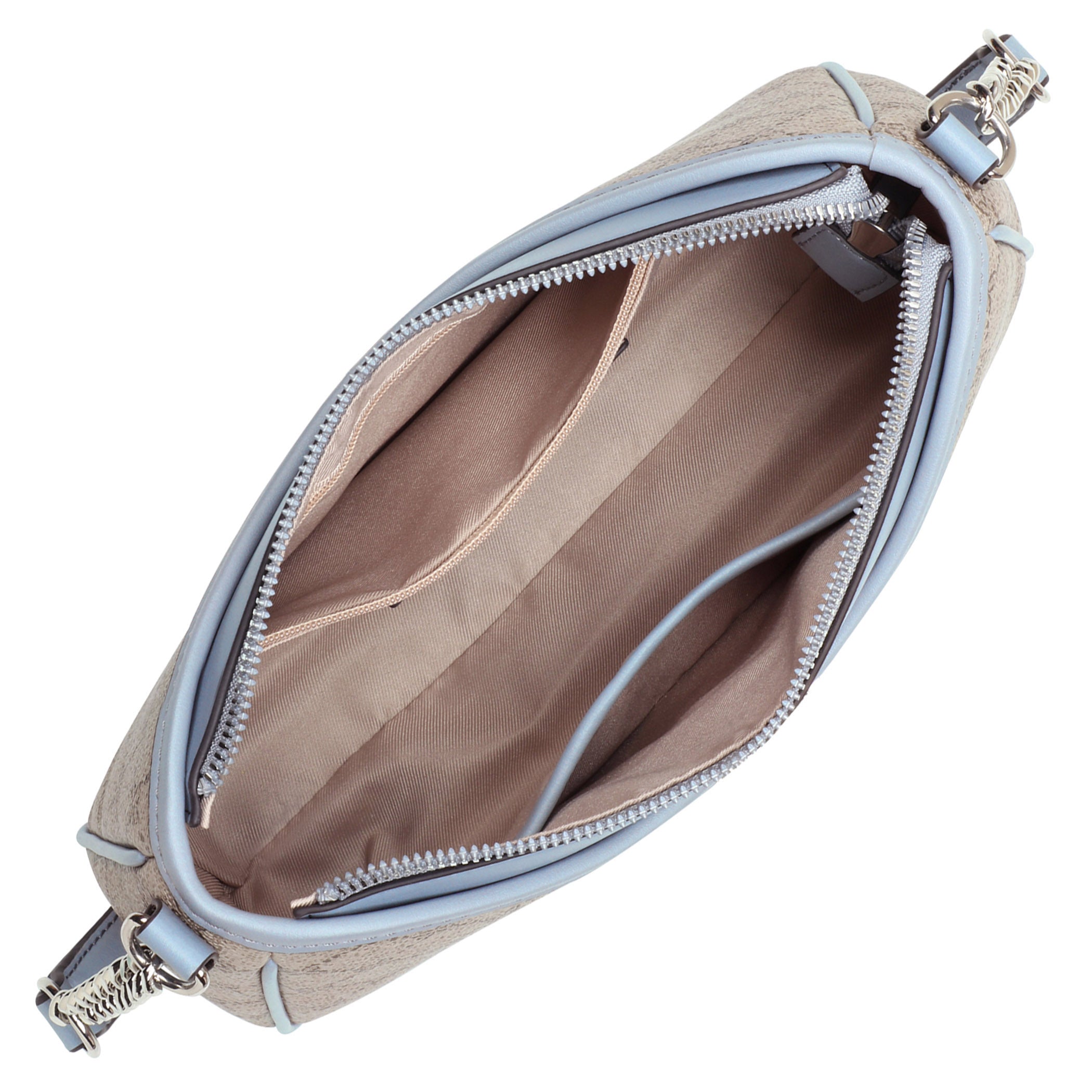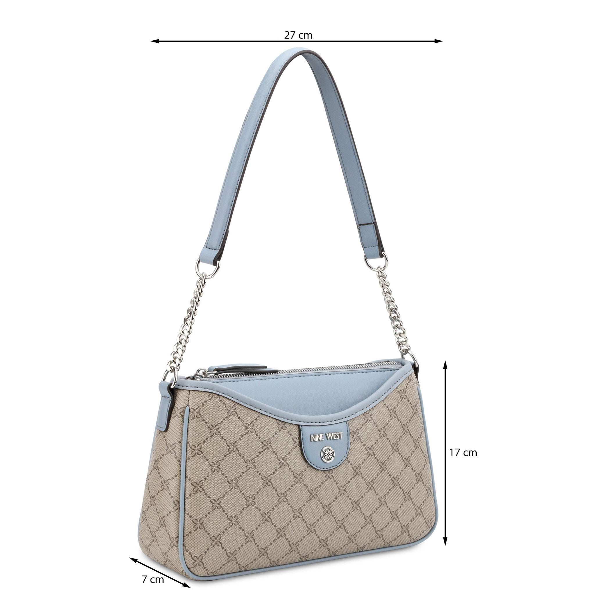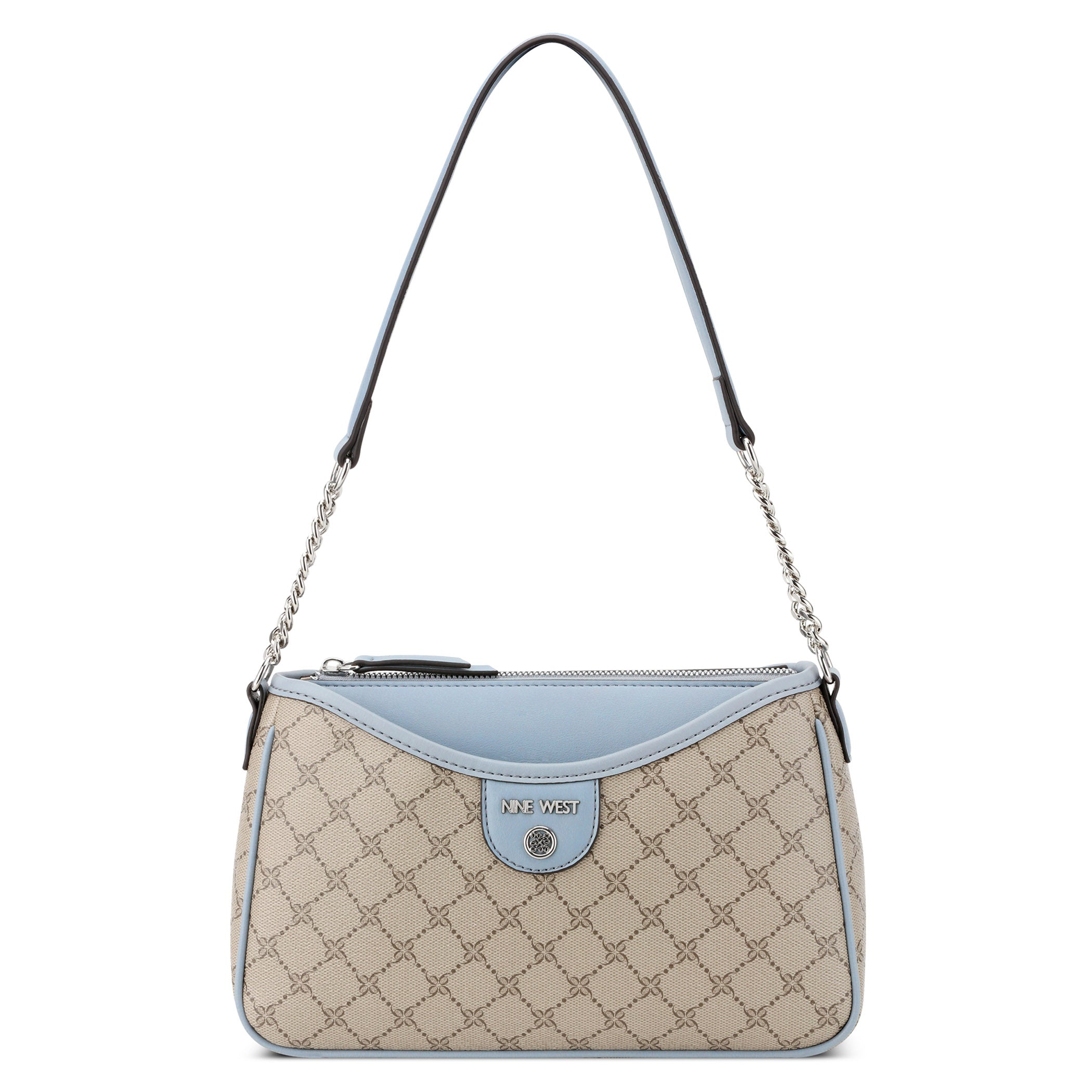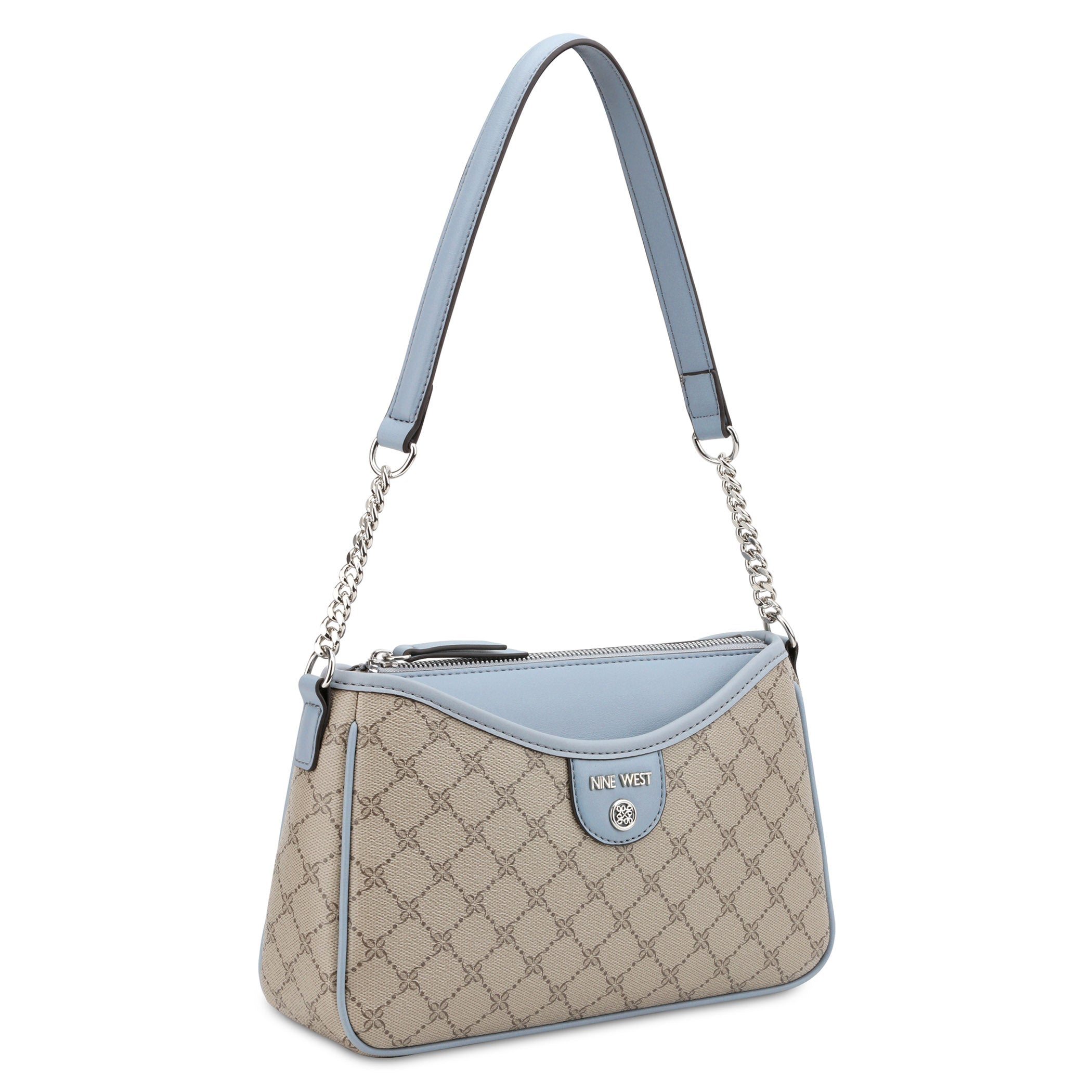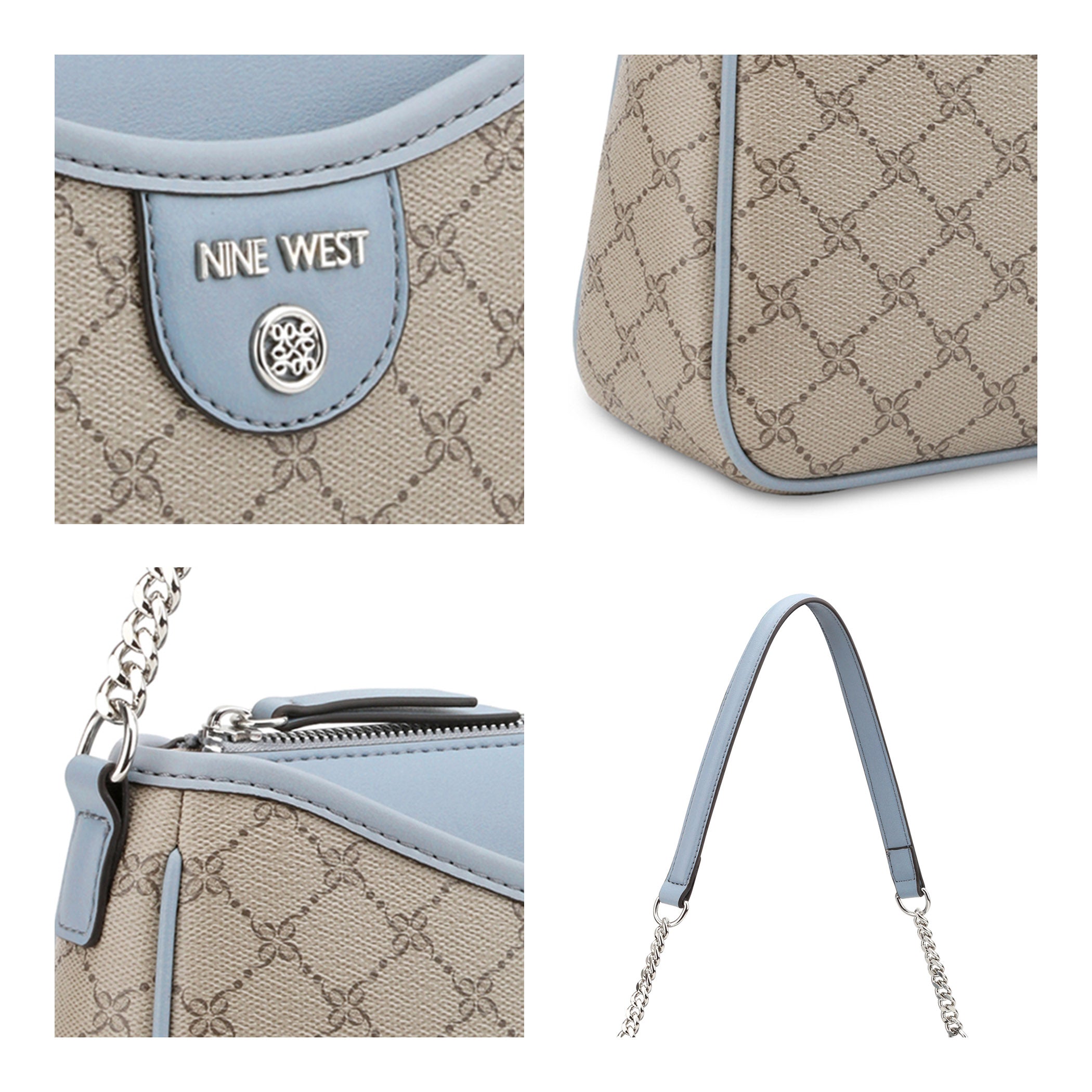 Bolsa de mano Nine West para mujer elaborada en material sintético con estampado gráfico, fijación de cierre y textura lisa.
