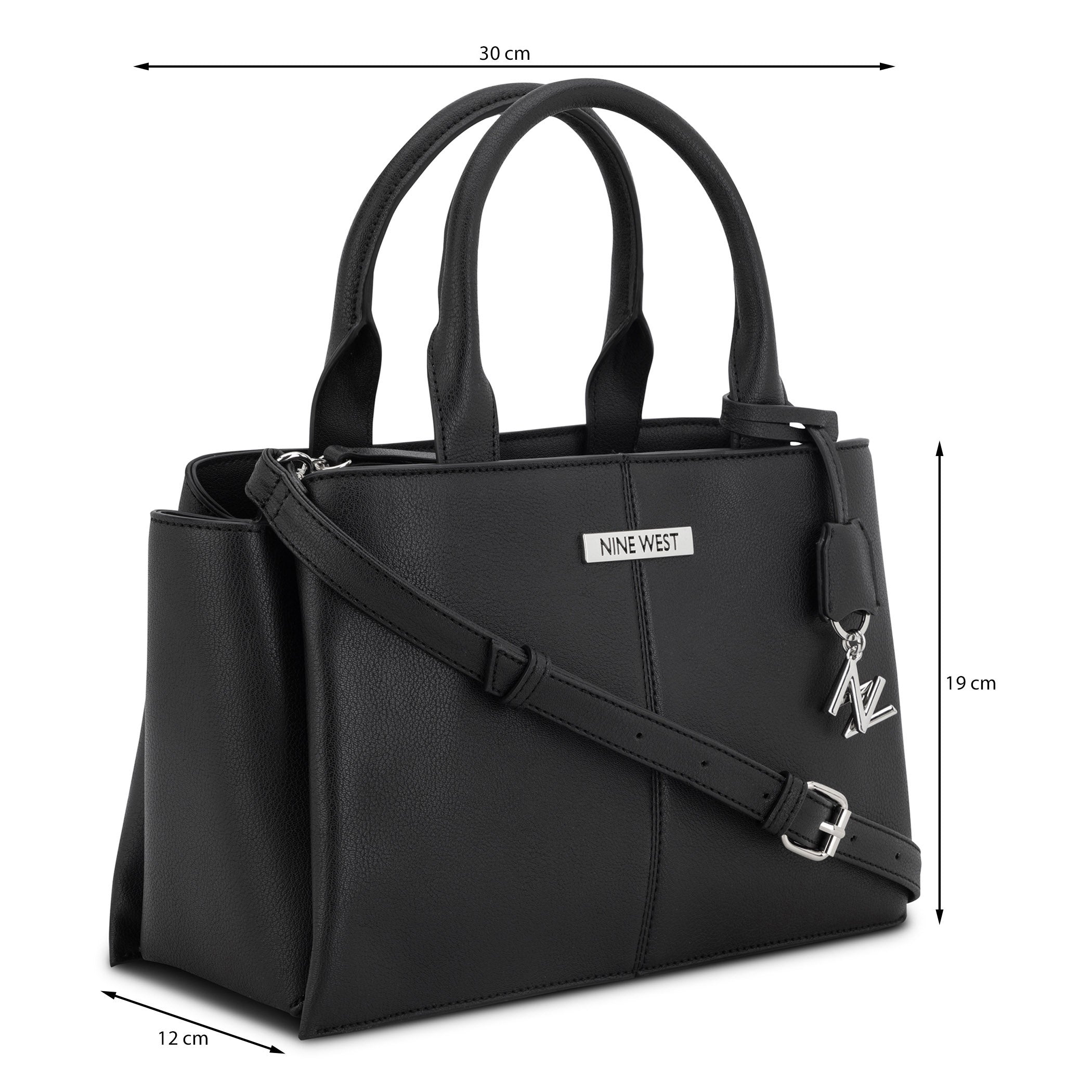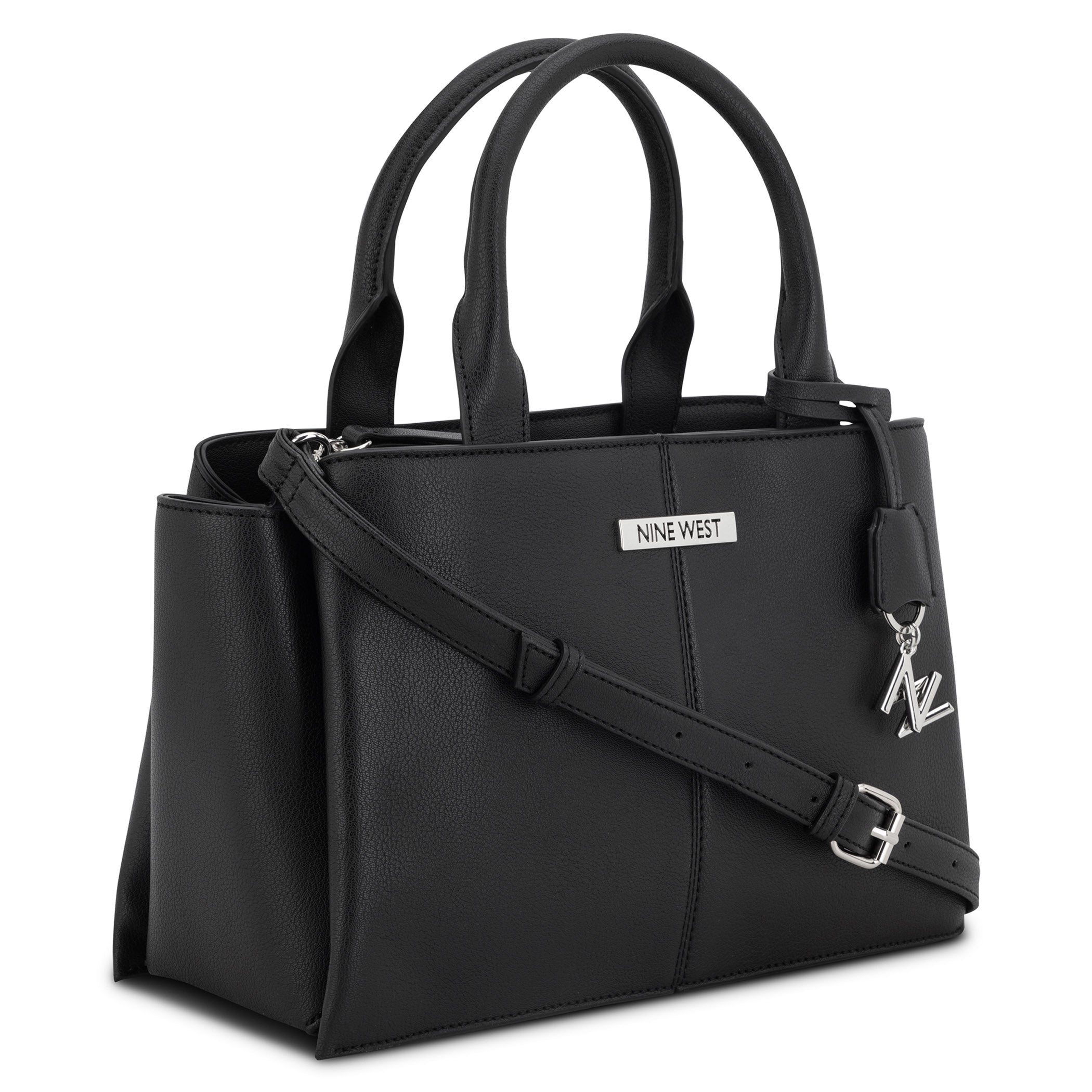 Bolsa de mano Nine West para mujer elaborada en material sintético con aplicación plateado, estampado liso, fijación de cierre y textura lisa.