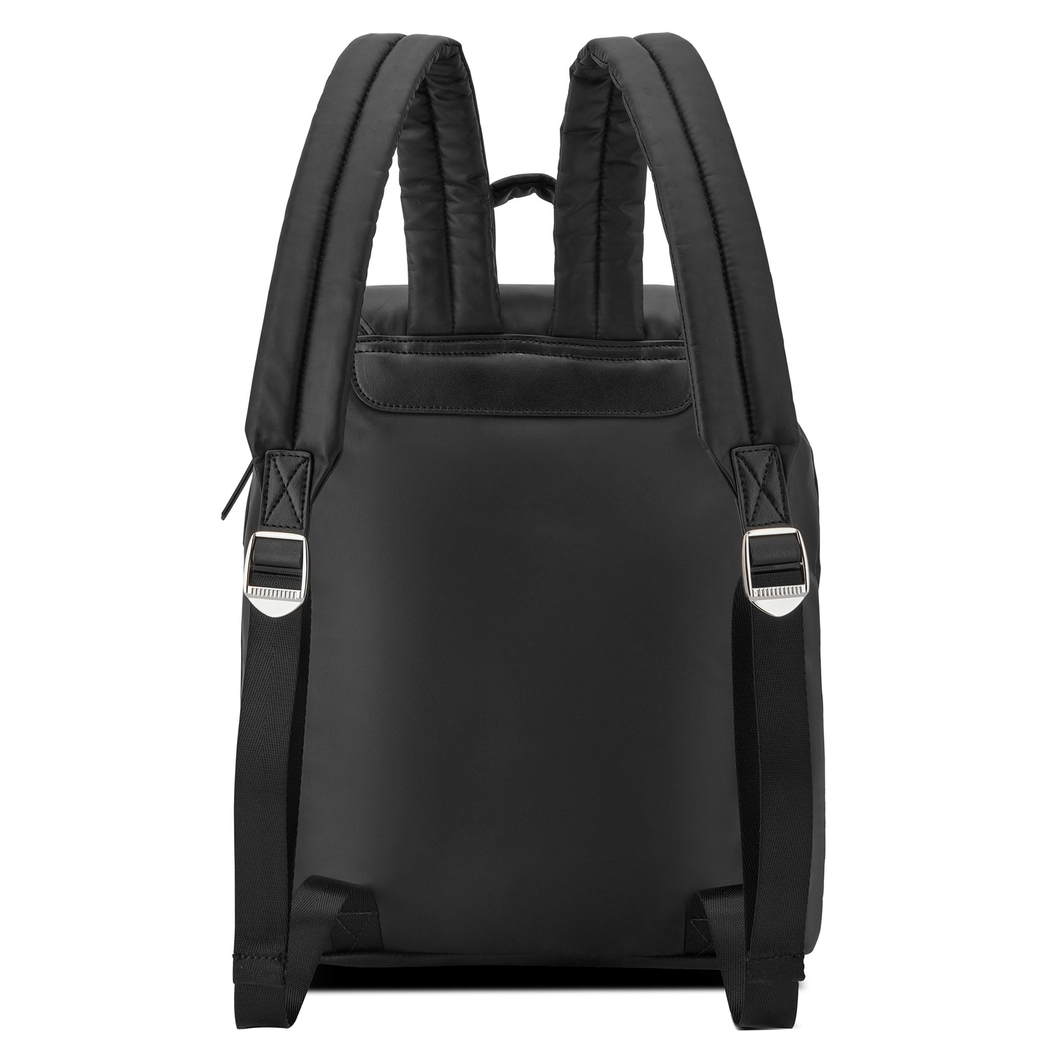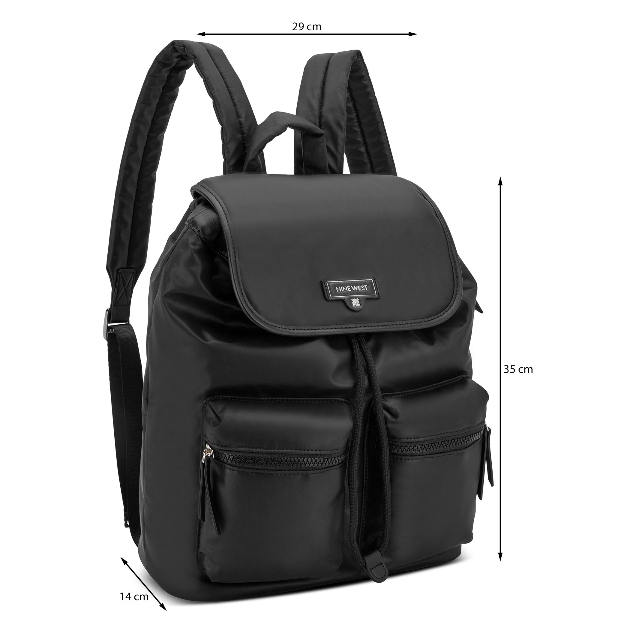 Mochila Nine West para mujer elaborada en material textil con estampado liso, fijación de imán y textura lisa.