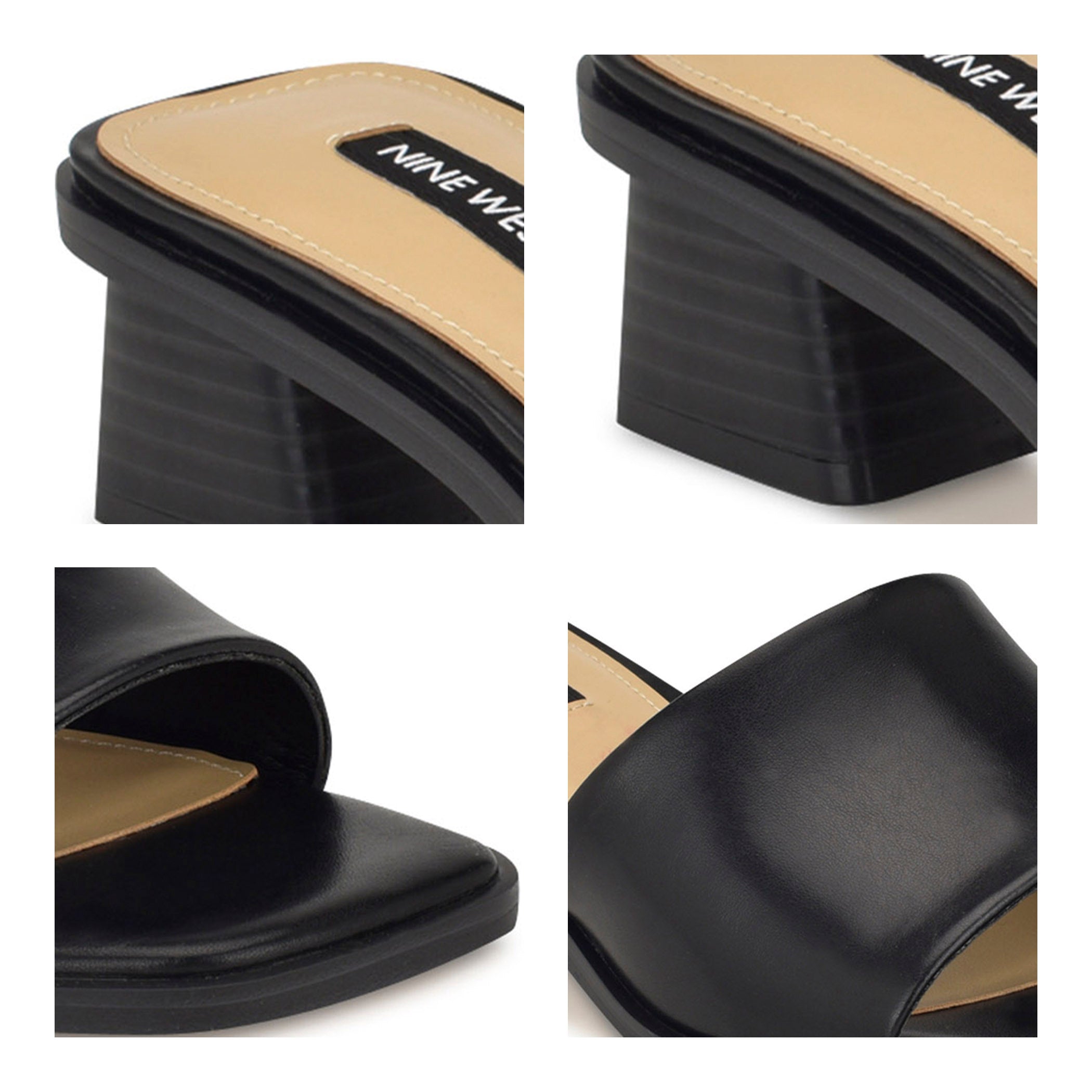 Zapatos destalonados Nine West para mujer elaborado en material sintético con estampado liso, fijación abierta, punta cuadrada, textura lisa, cuña baja y suela sintética.