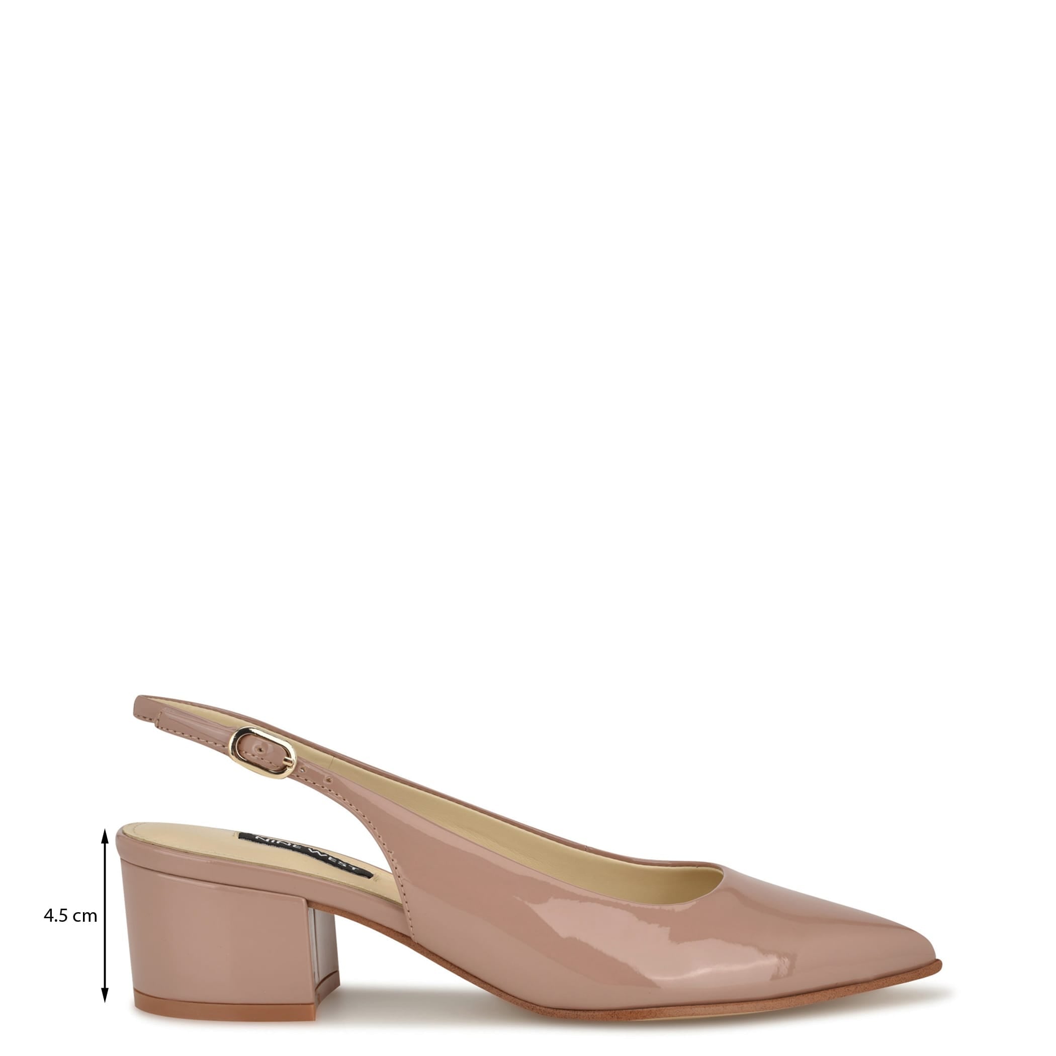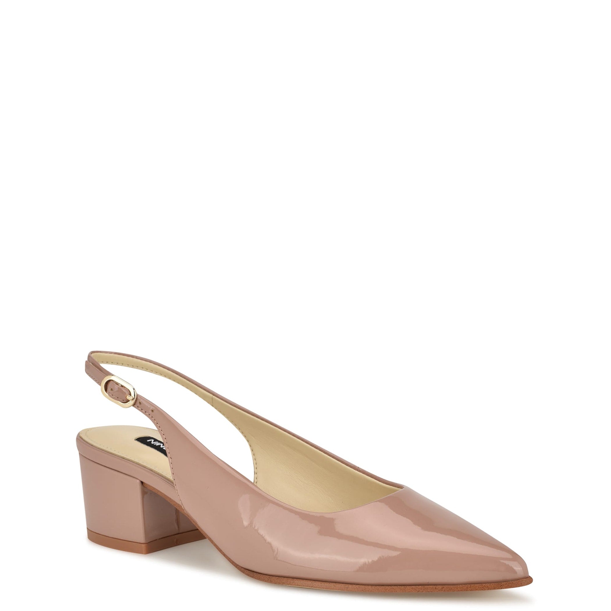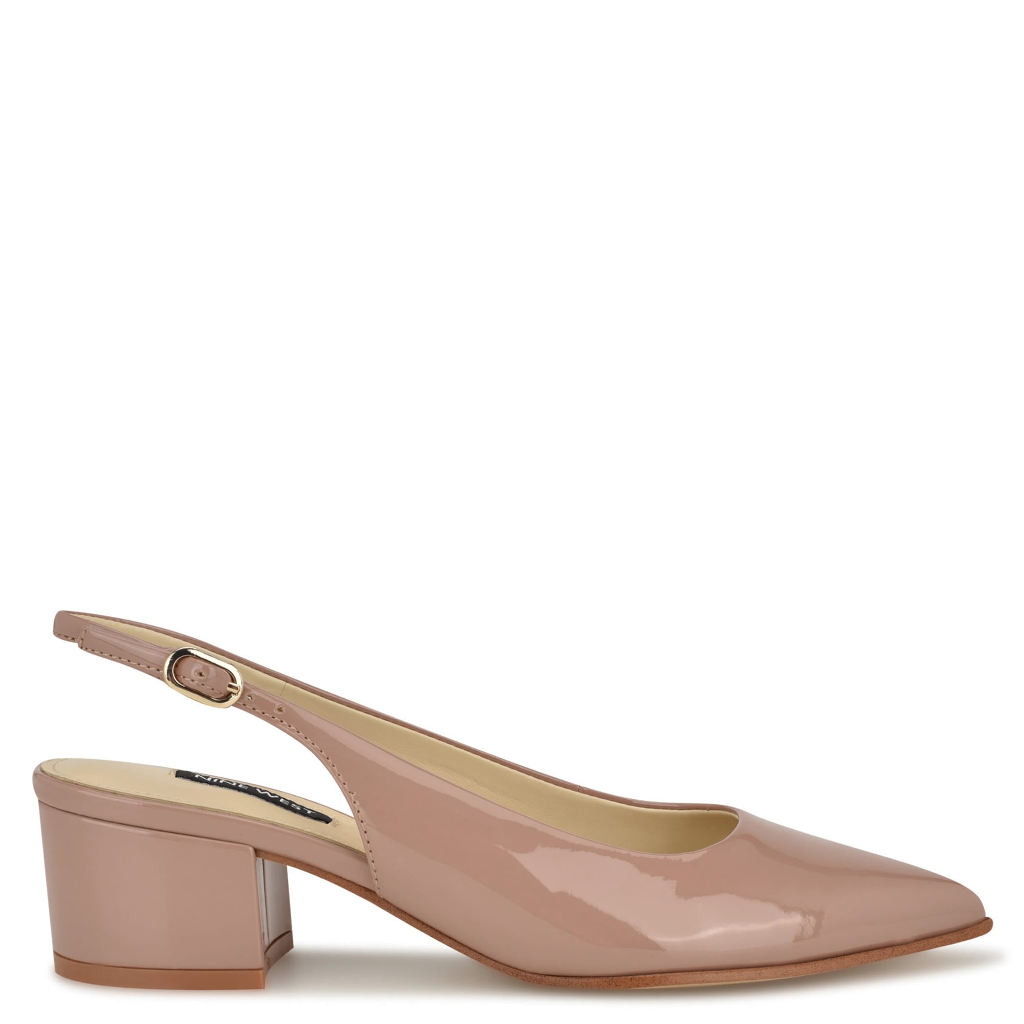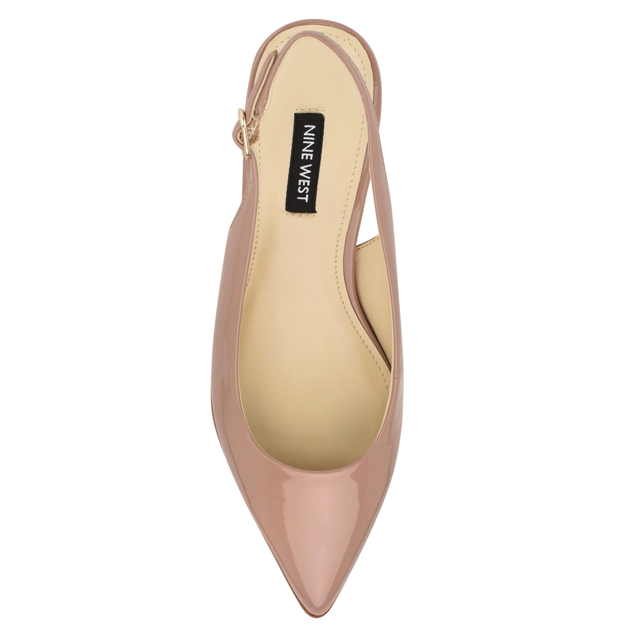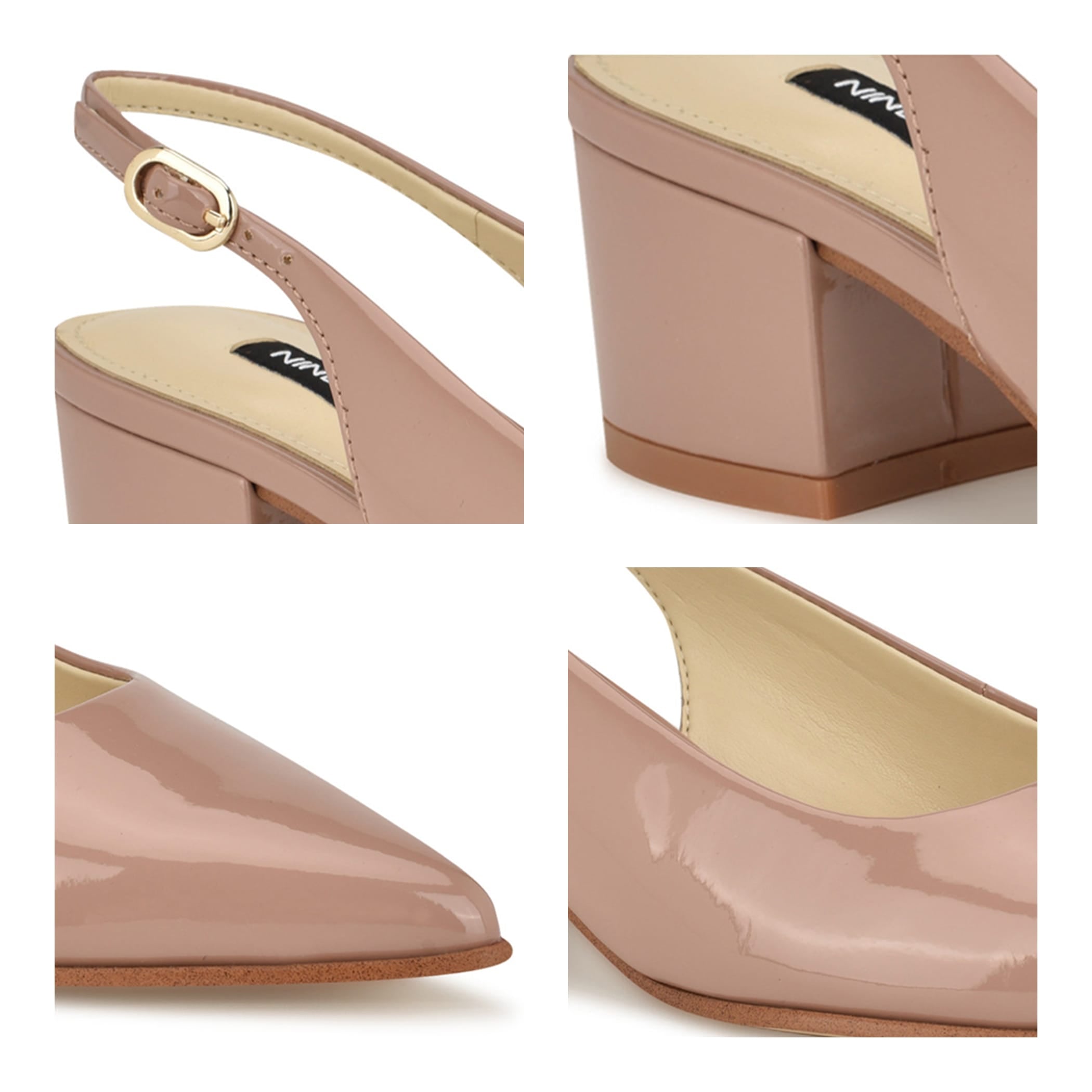 Zapatilla Nine West para mujer elaborado en material de charol con estampado liso, cuña baja, fijación hebilla, punta puntal y textura lisa.