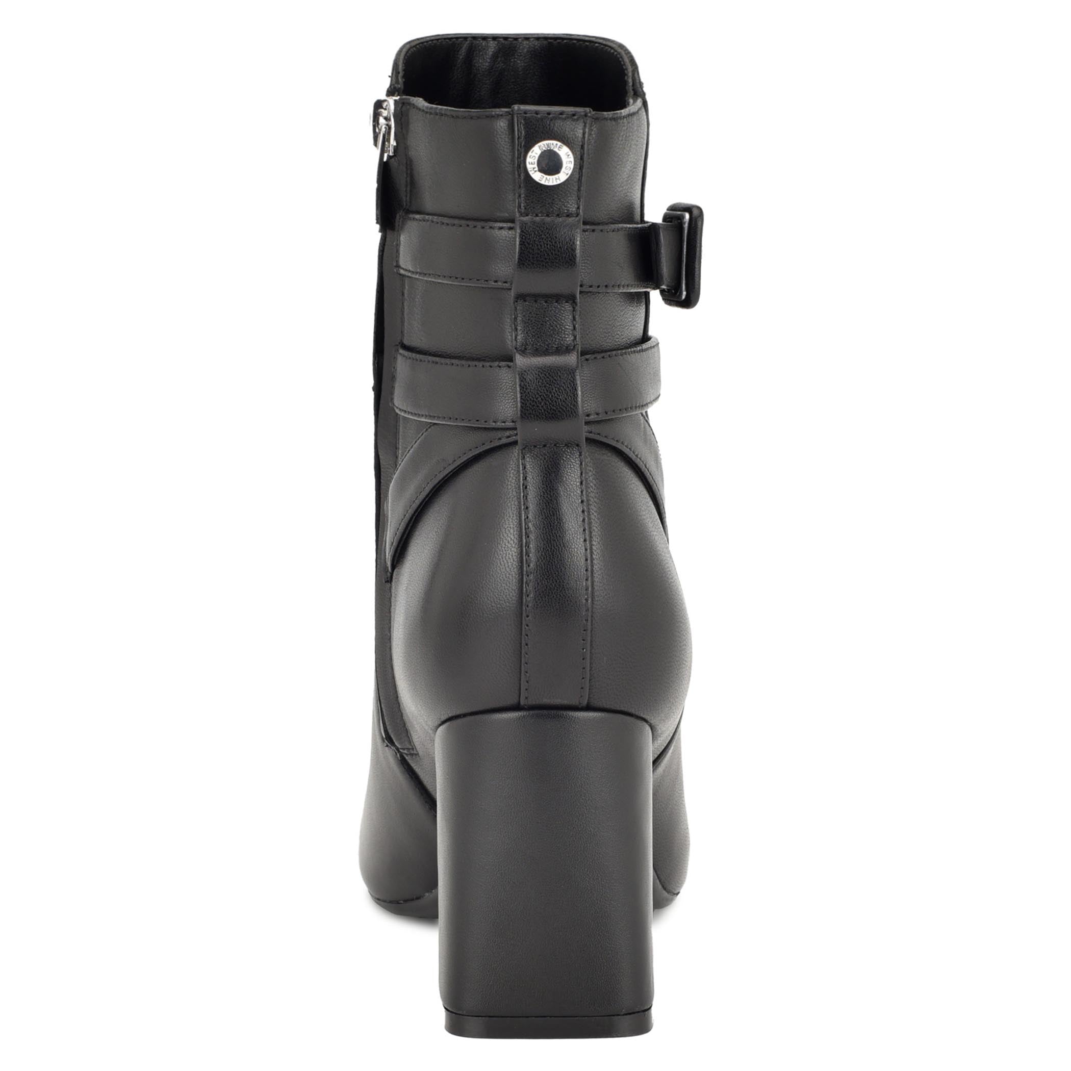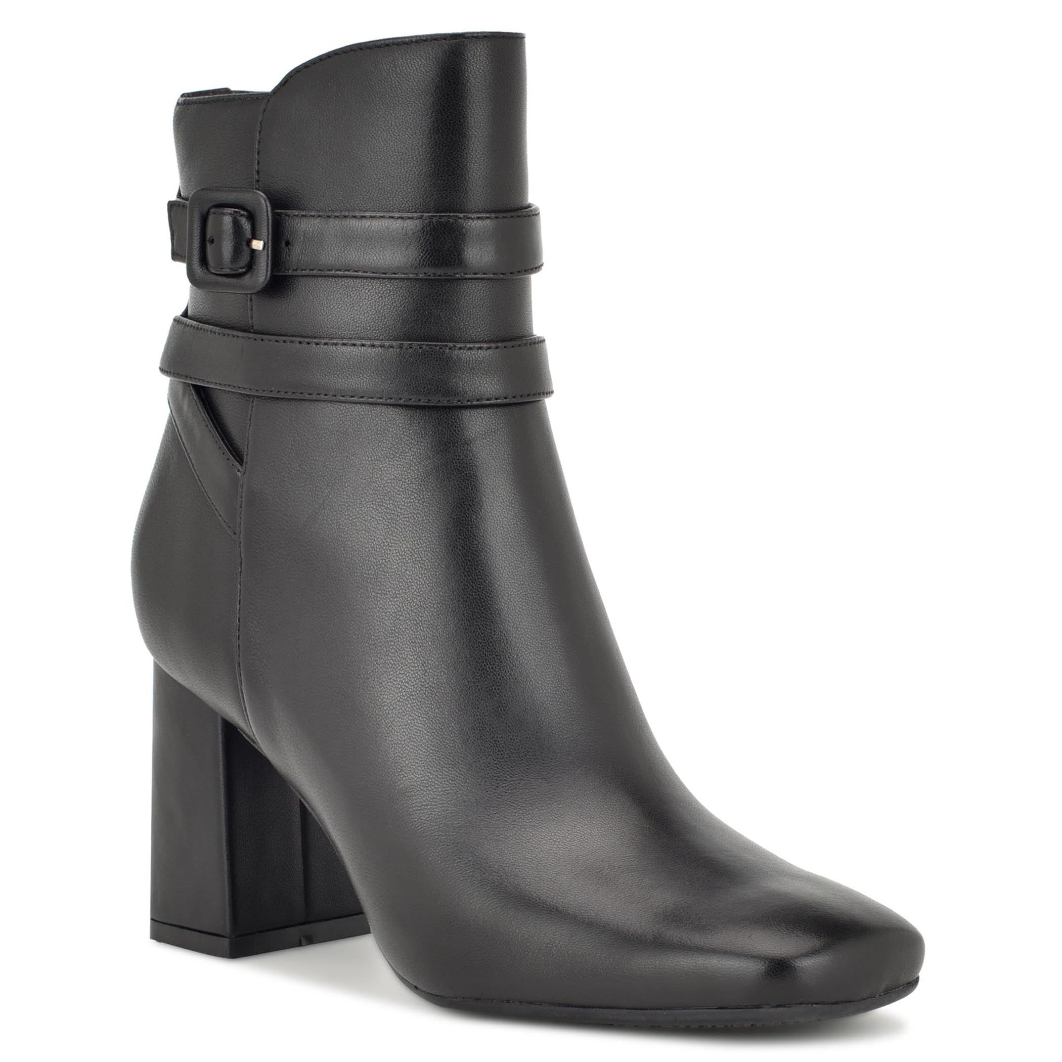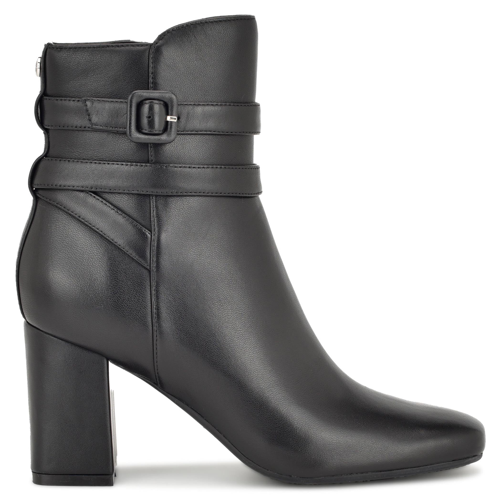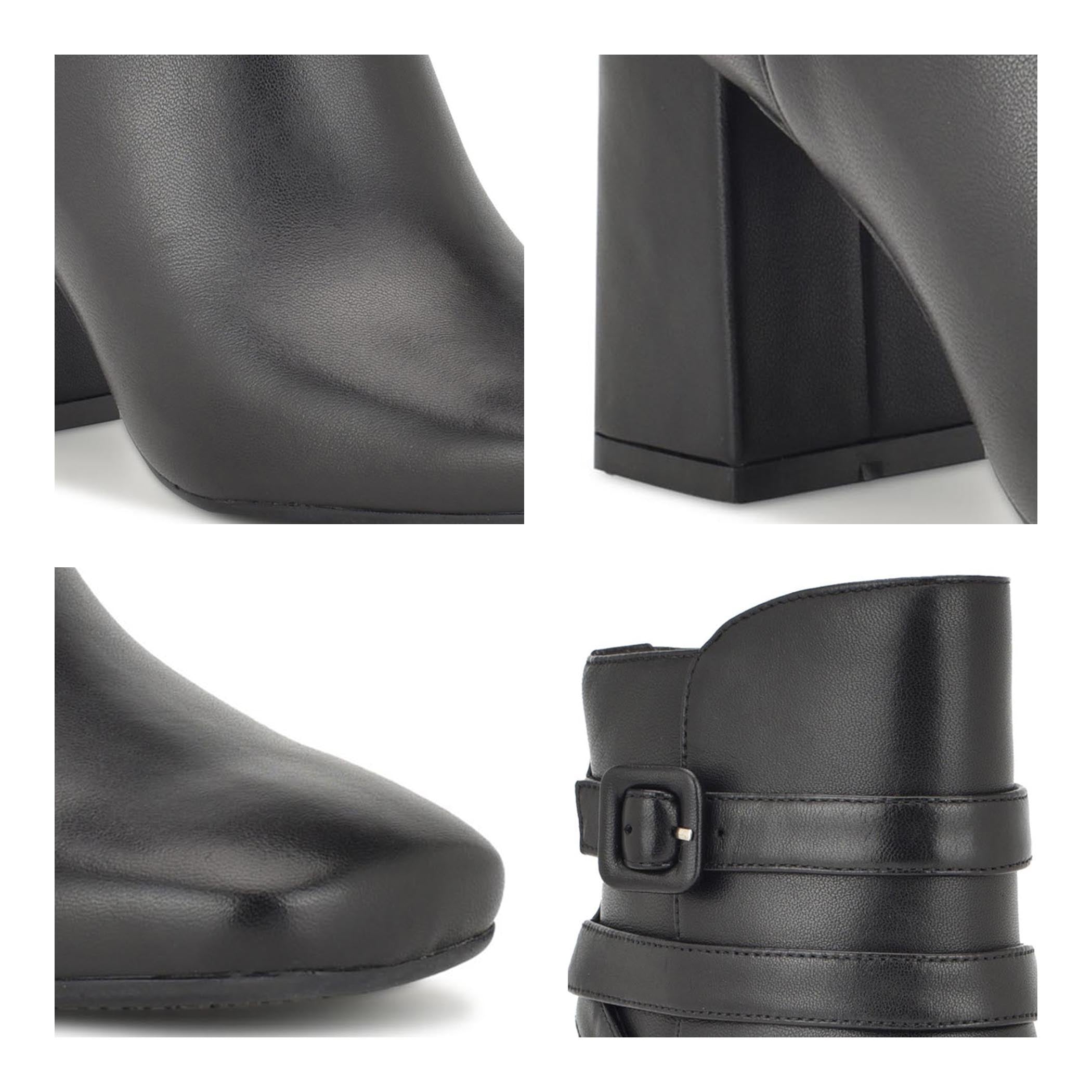 Botín Nine West para mujer elaborado en material piel con fijación de cierre, cuña alta con punta cuadrada, forro piel, suela sintética, y textura lisa.