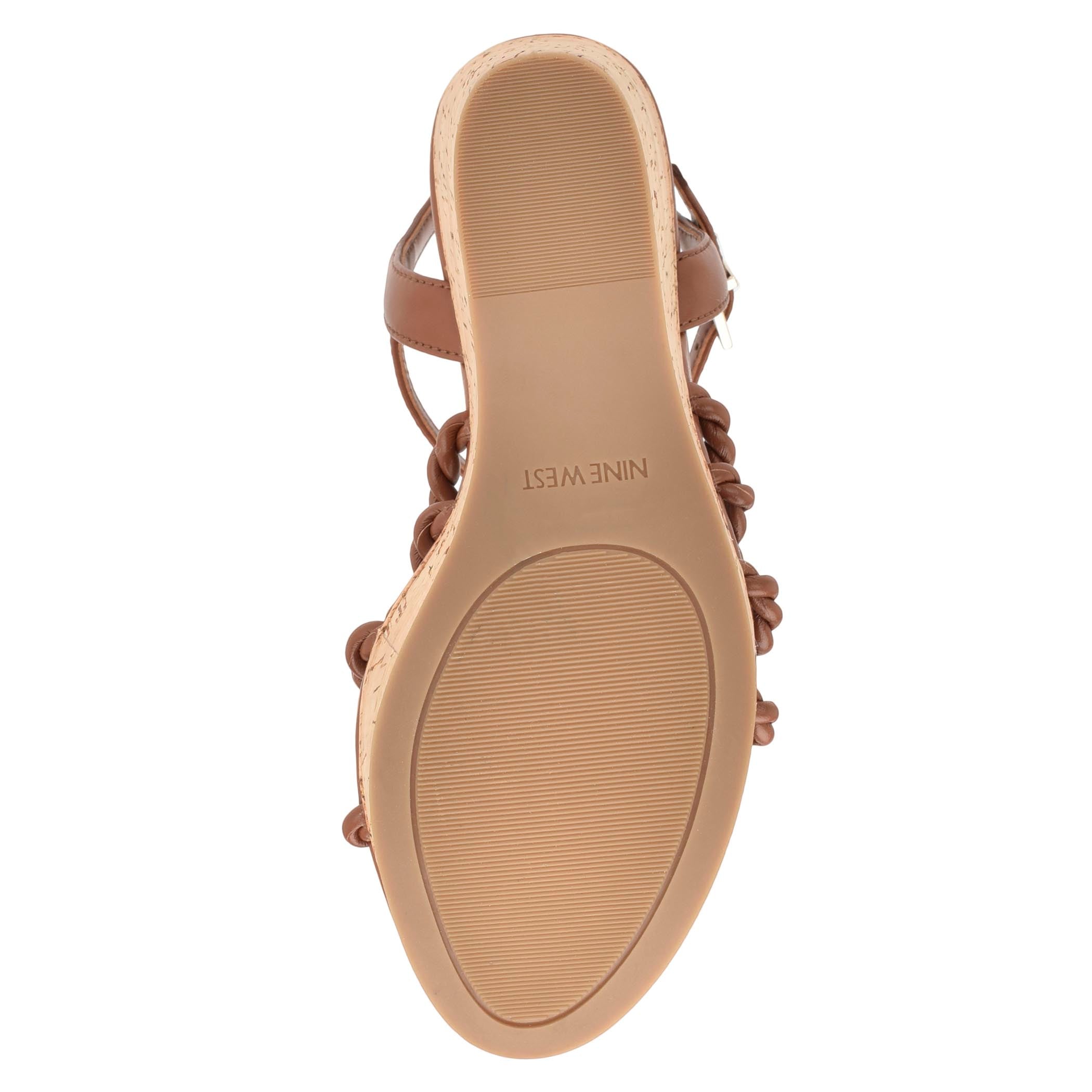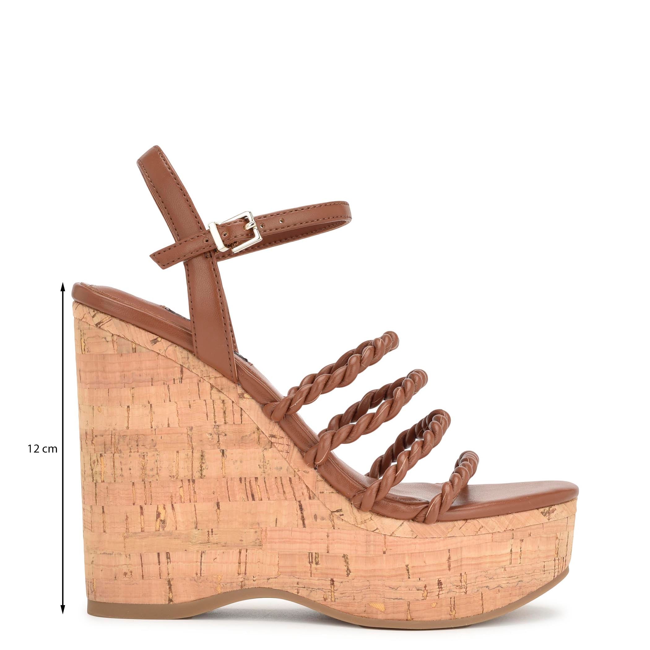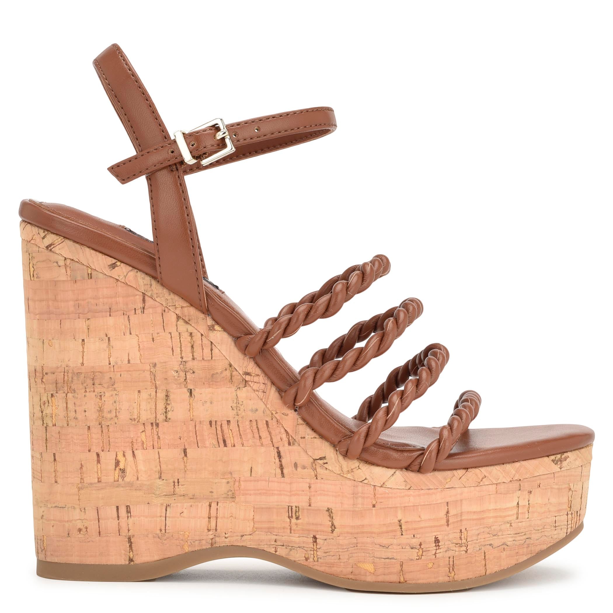 Zapatilla con plataforma Nine West para mujer elaborado en material sintético con aplicación trenzado, estampado liso, forro sintético, suela sintética, fijación hebilla, punta redonda, textura lisa, con una altura de tacón 12.1 cm.
