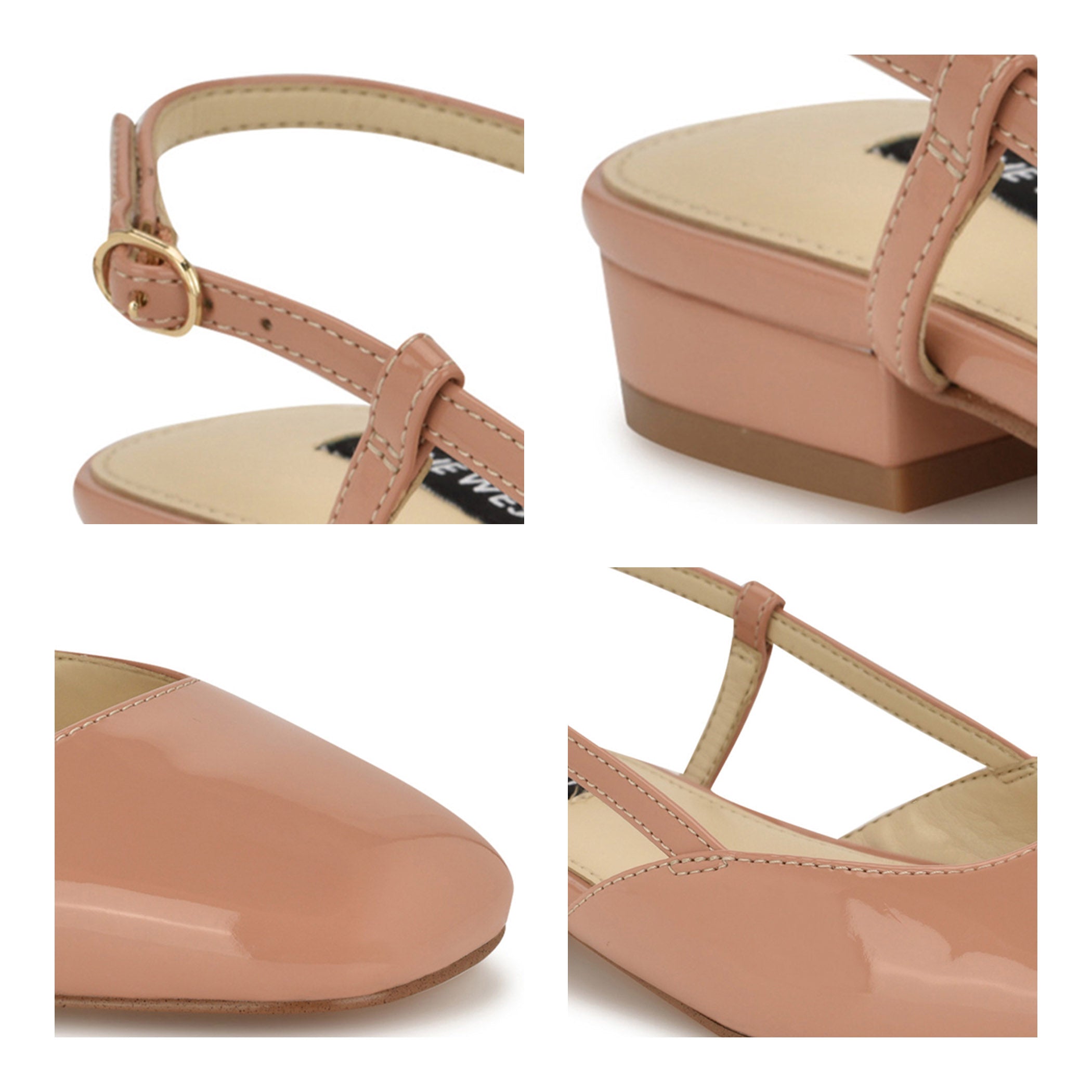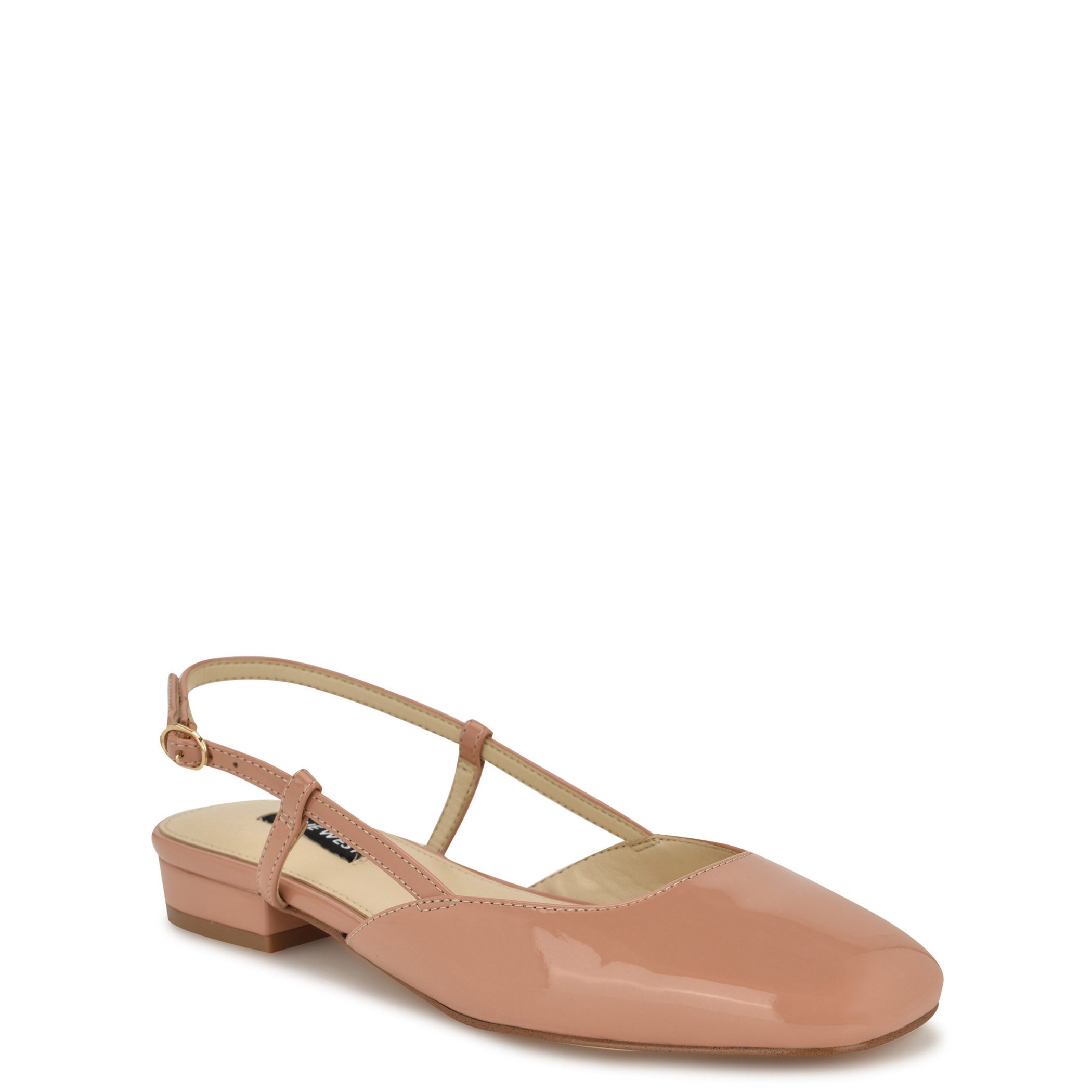 Ballerina Nine West para mujer elaborada en material sintético con estampado liso, fijación de hebilla, punta cuadrada y textura lisa.