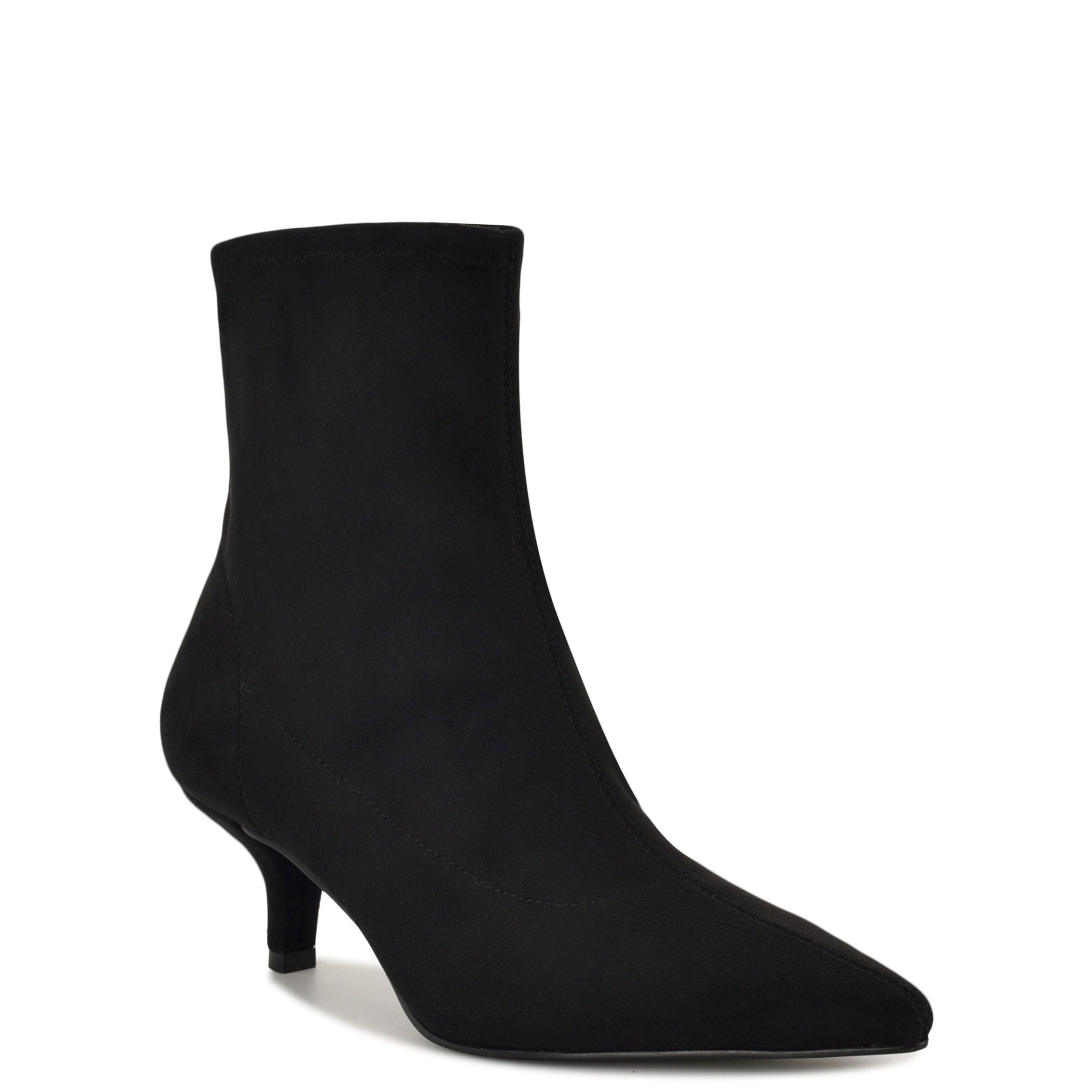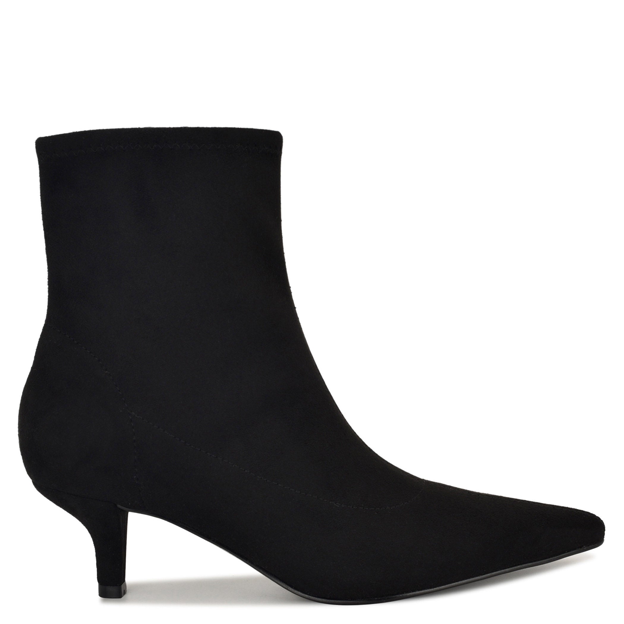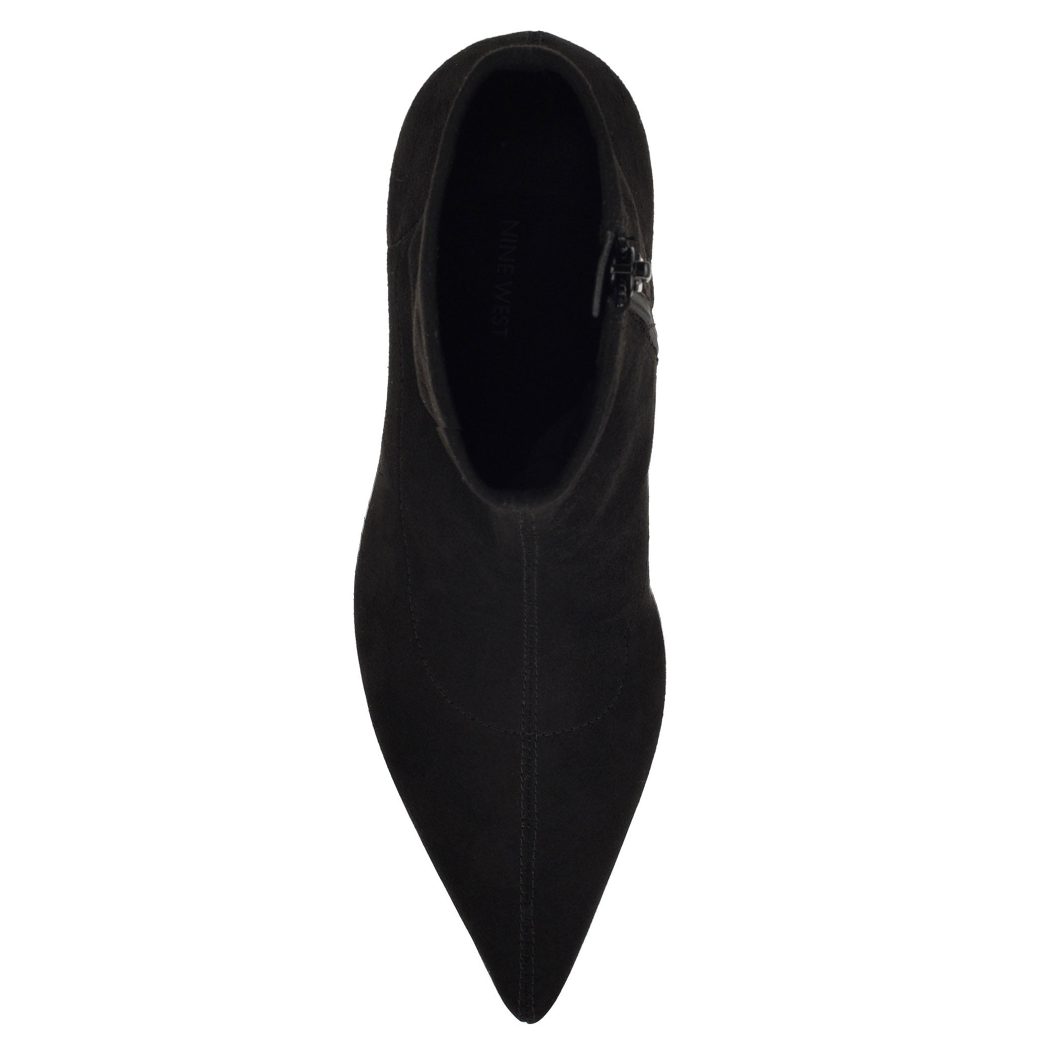 Botín con tacón Nine West para mujer elaborado en material gamuza con estampado liso, fijación de cierre, punta puntal y textura de gamuza.