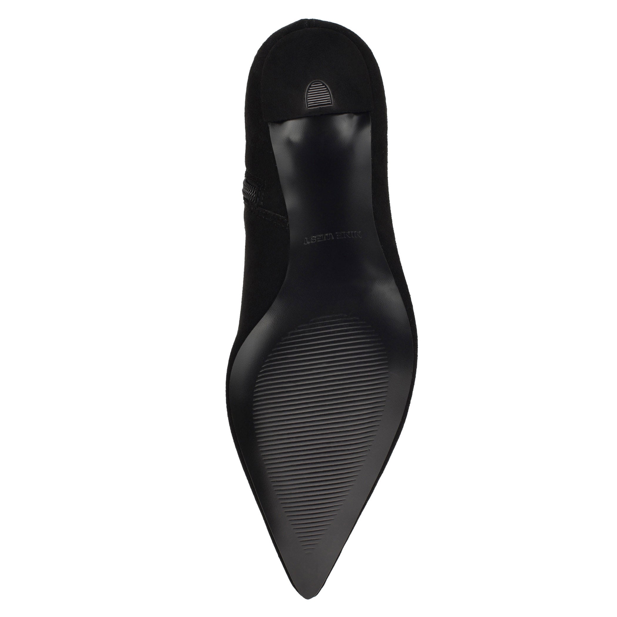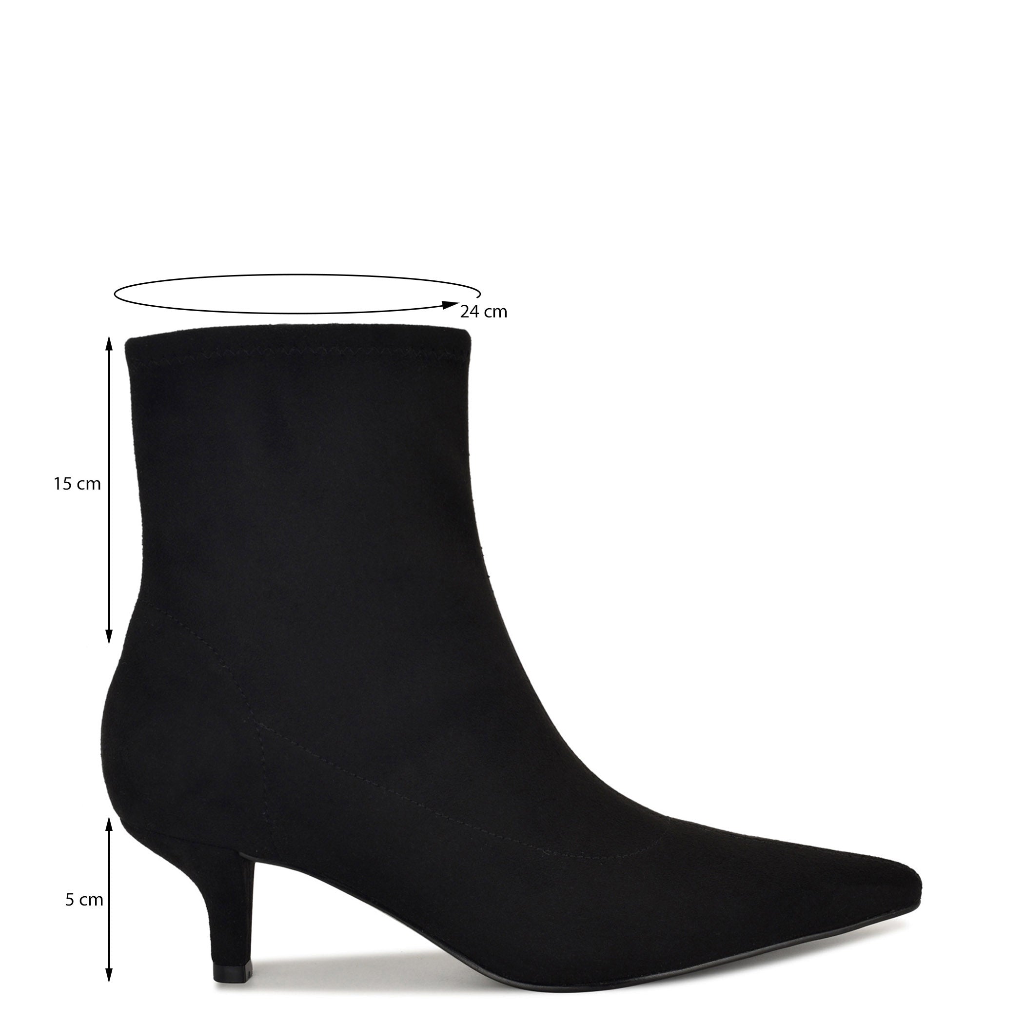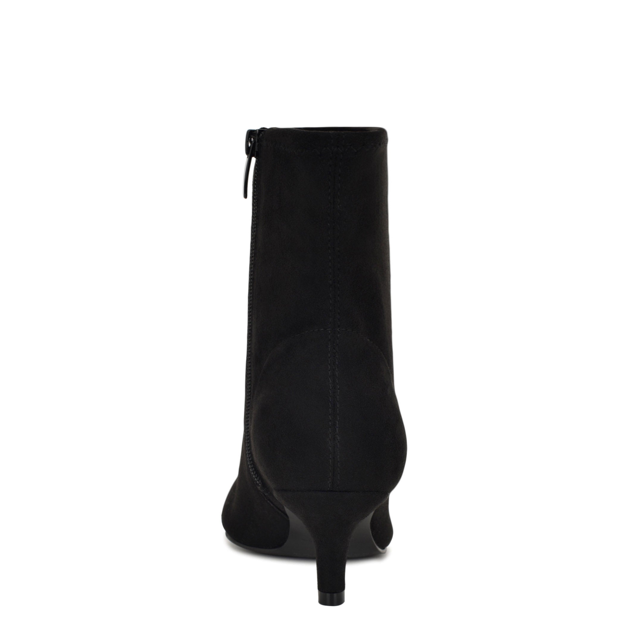Botín con tacón Nine West para mujer elaborado en material gamuza con estampado liso, fijación de cierre, punta puntal y textura de gamuza.