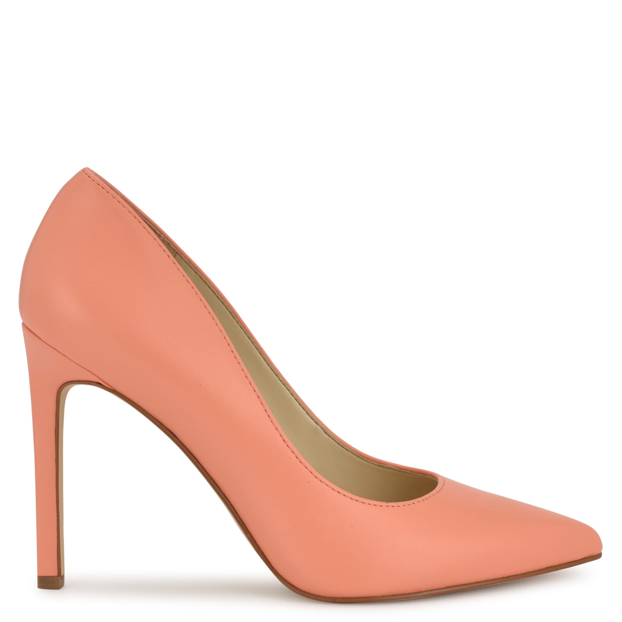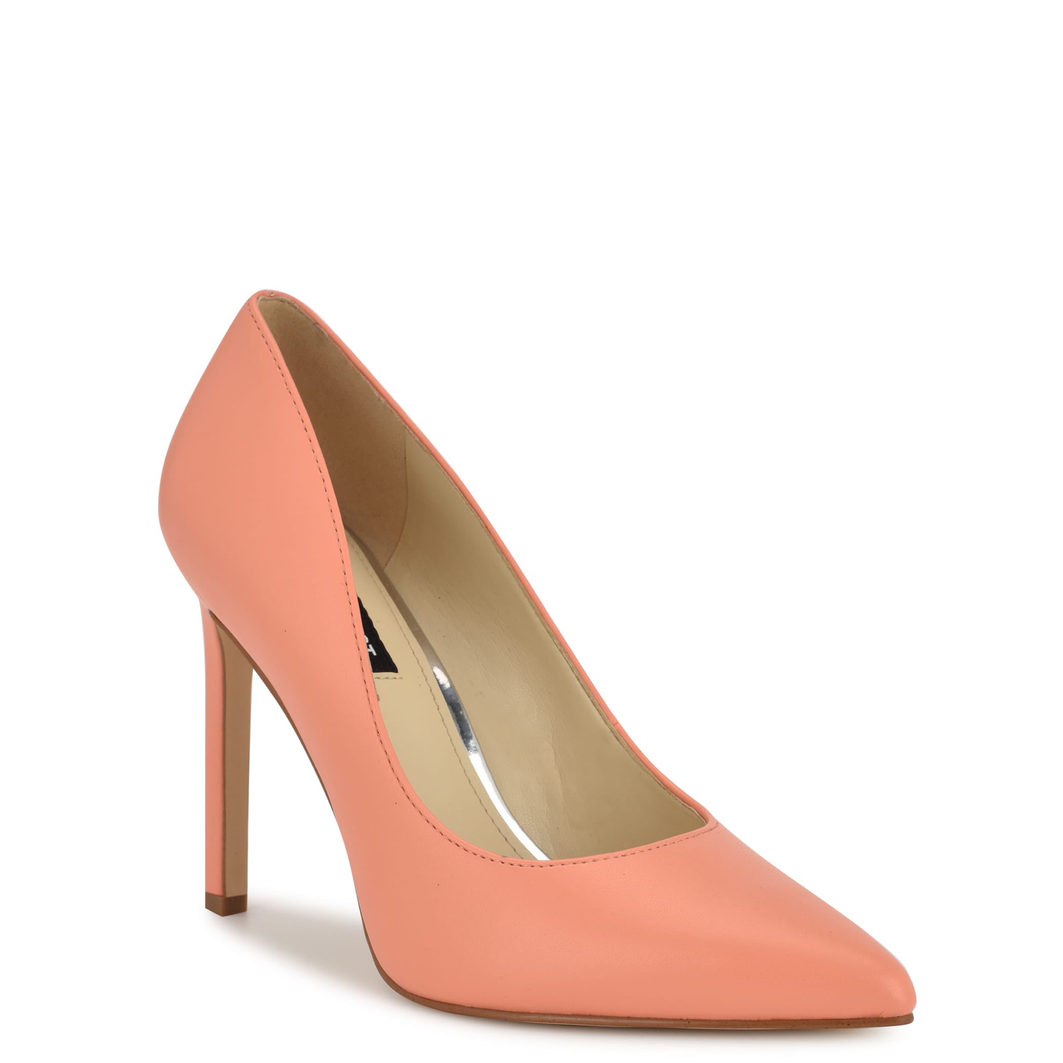 Zapatilla Nine West para mujer elaborada en material piel con fijación abierta, cuña alta, punta puntal, estampado liso y textura lisa.