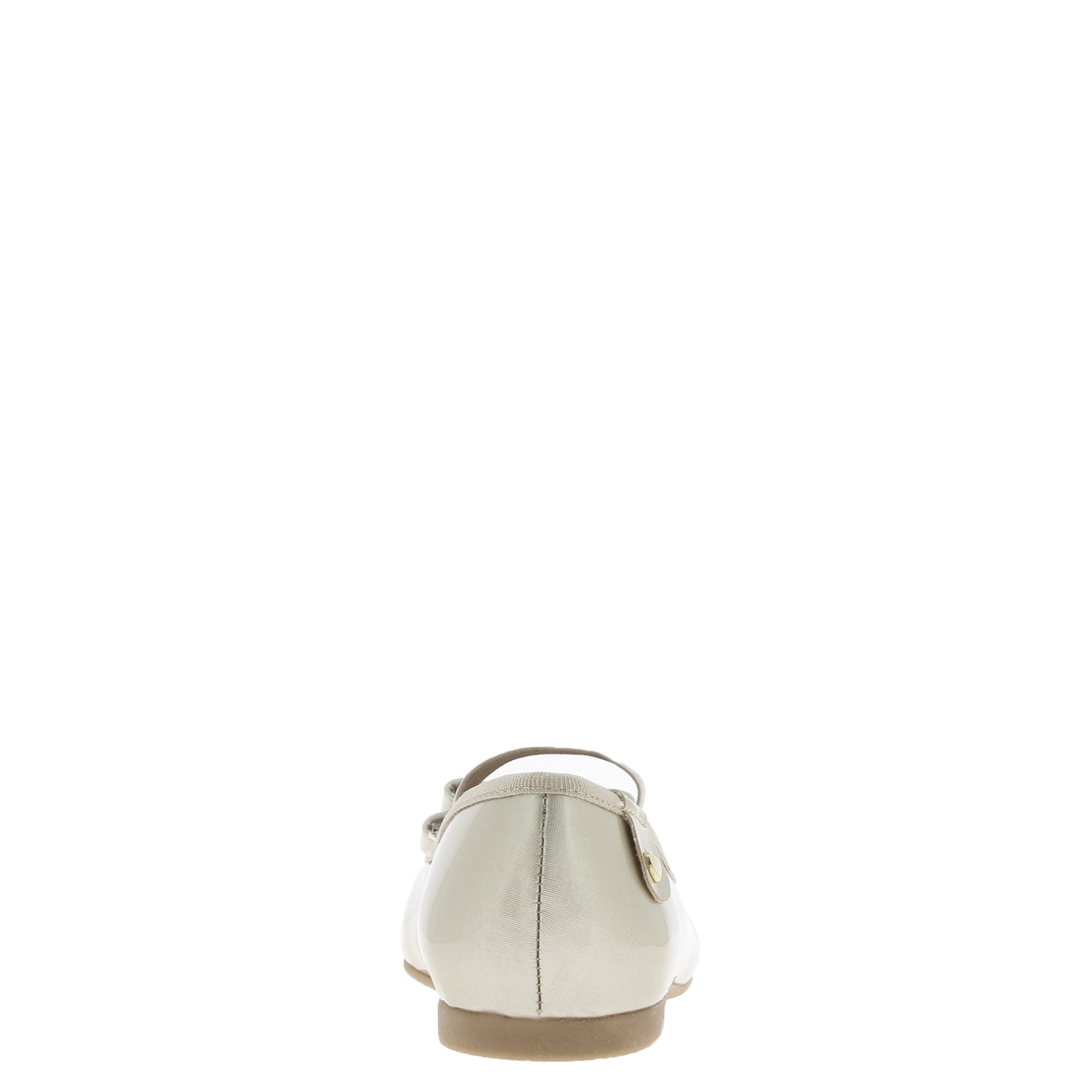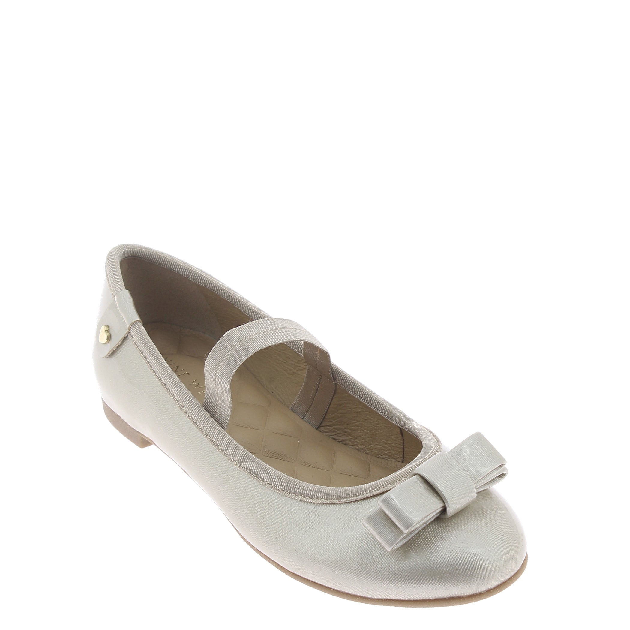 Balerina Nine West de niña, elaborada en los mejores materiales con punta redonda, aplicación de moño, suela sintética, fijación a un tiempo y estampado liso.