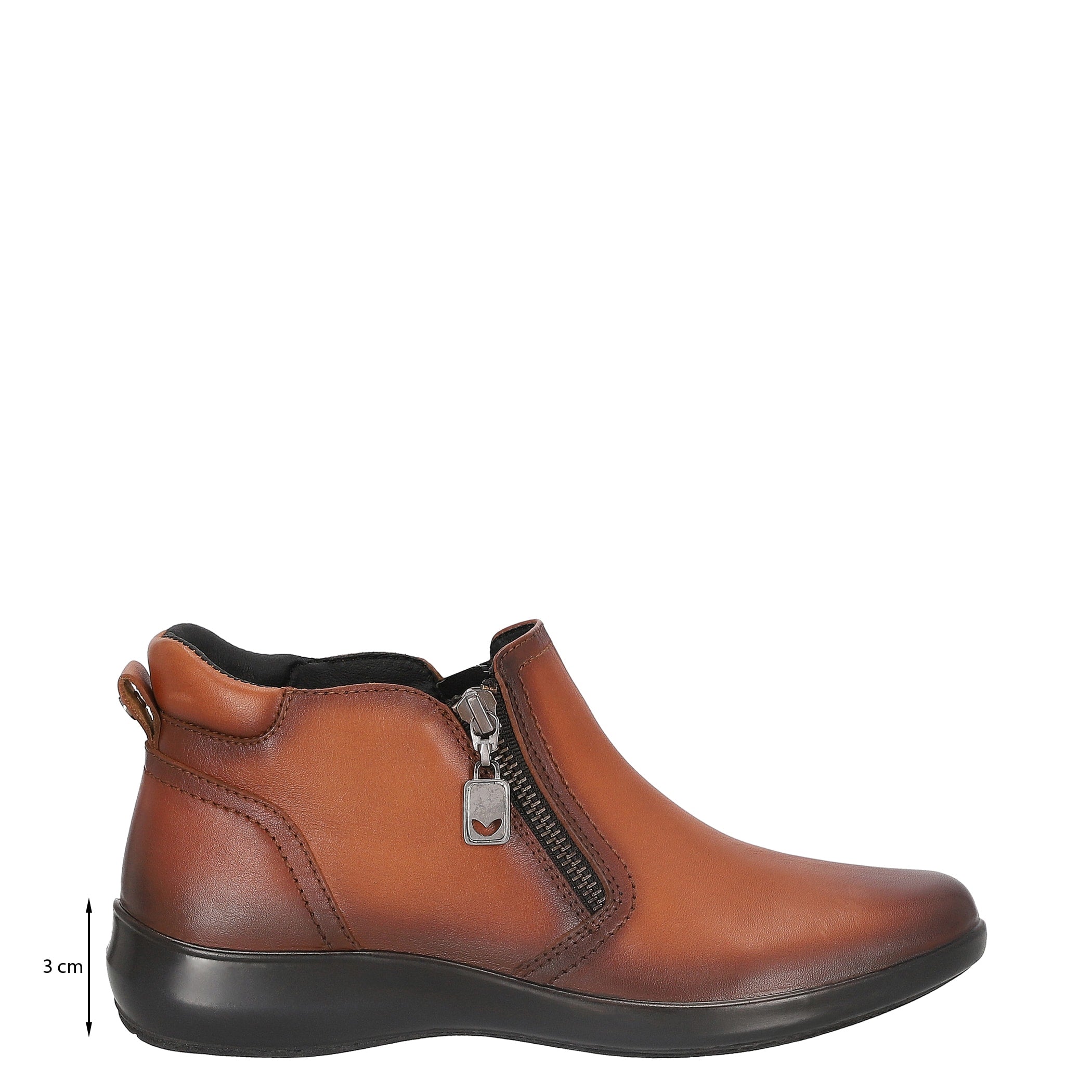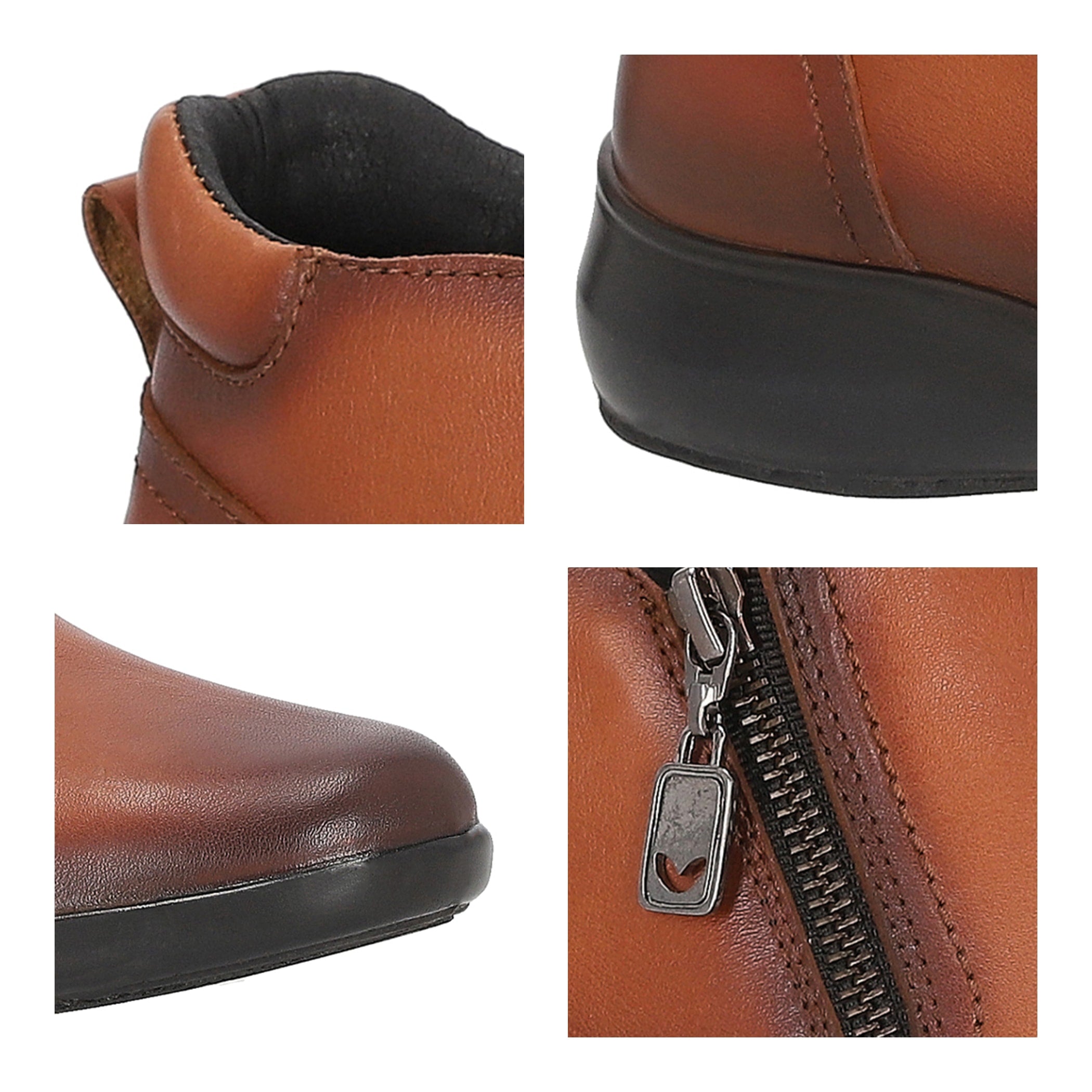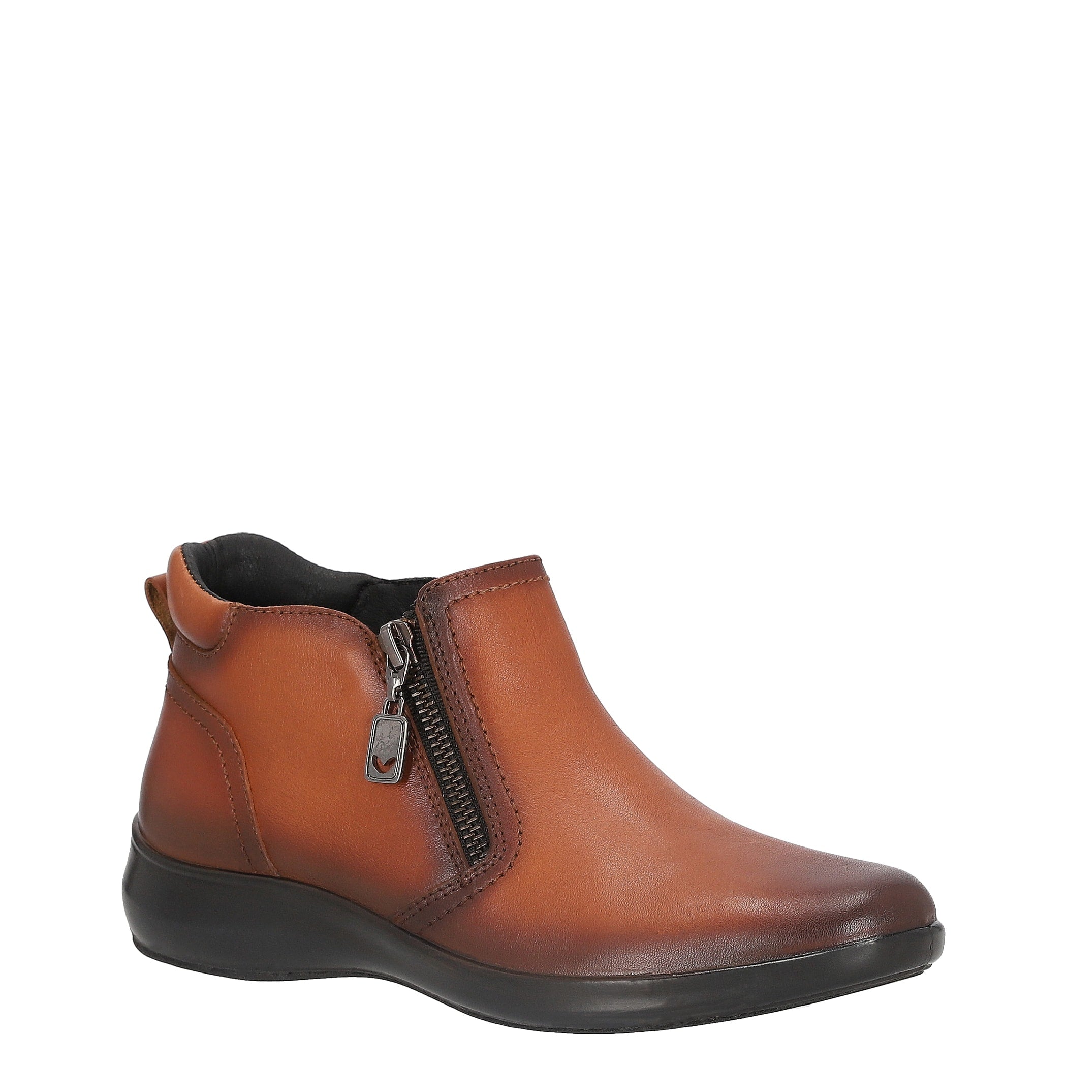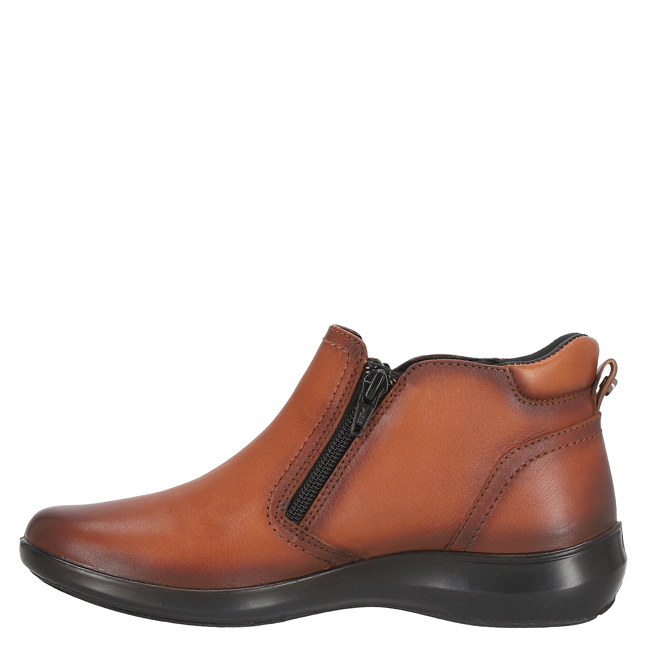 Botín W Confort para mujer elaborado en material piel con estampado liso, fijación de cierre, punta redonda, cuña baja, forro de piel y textura lisa.